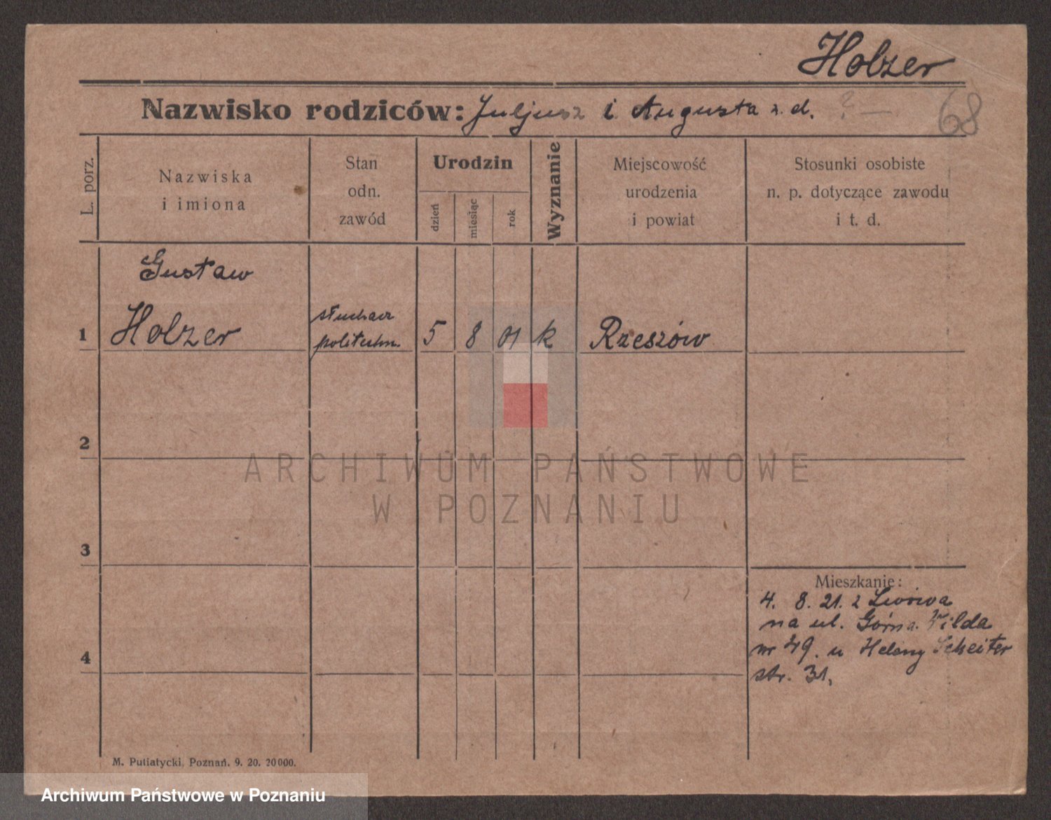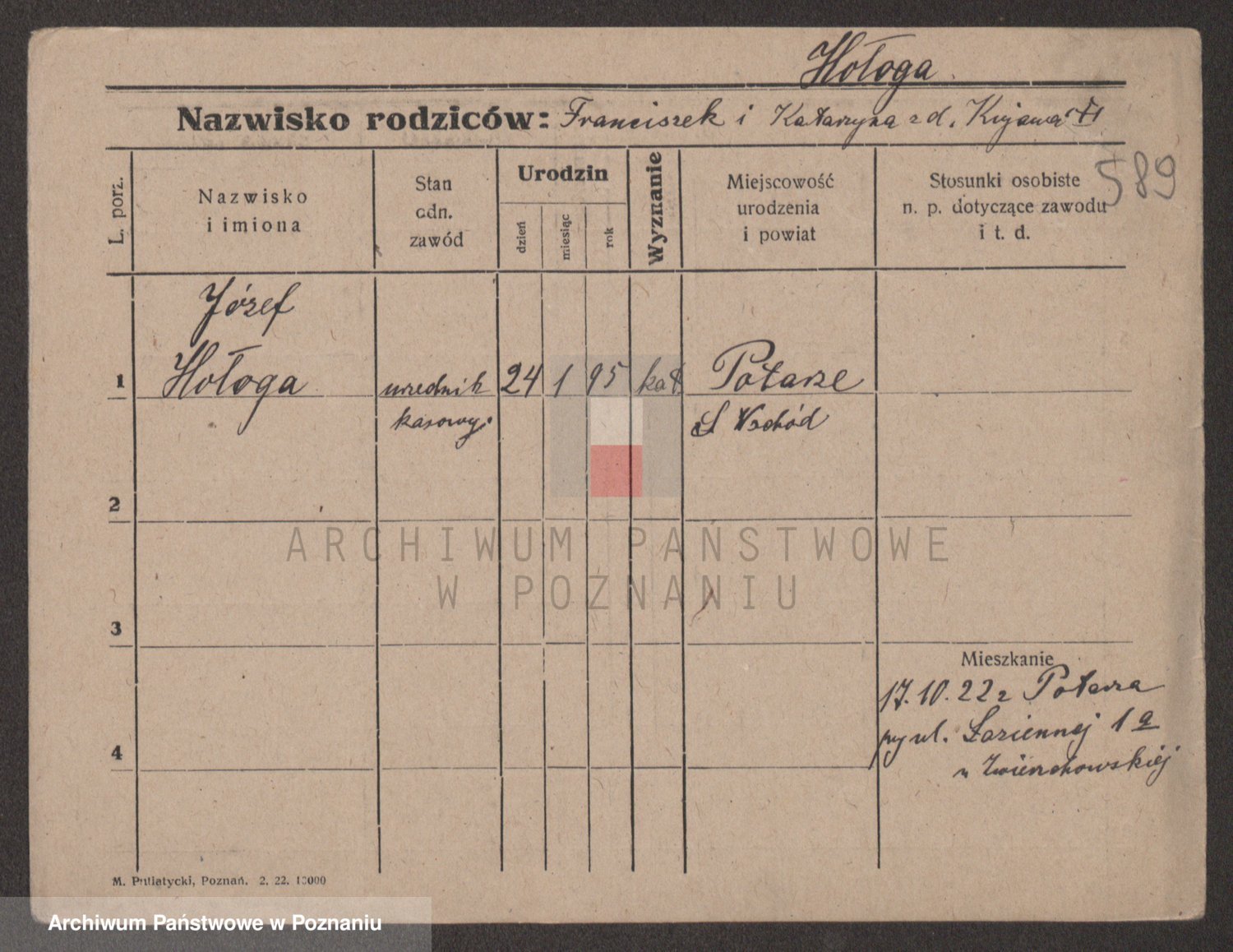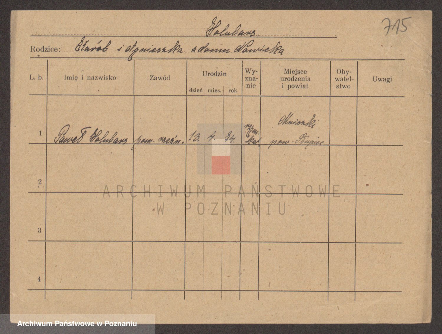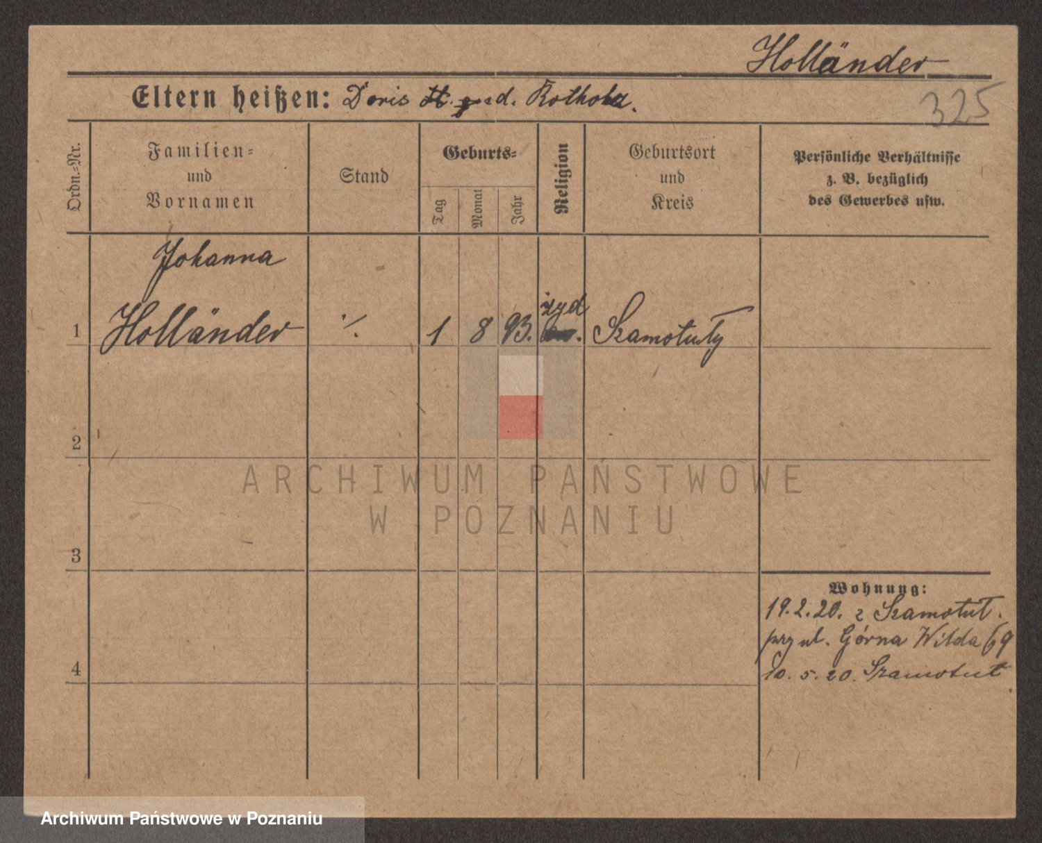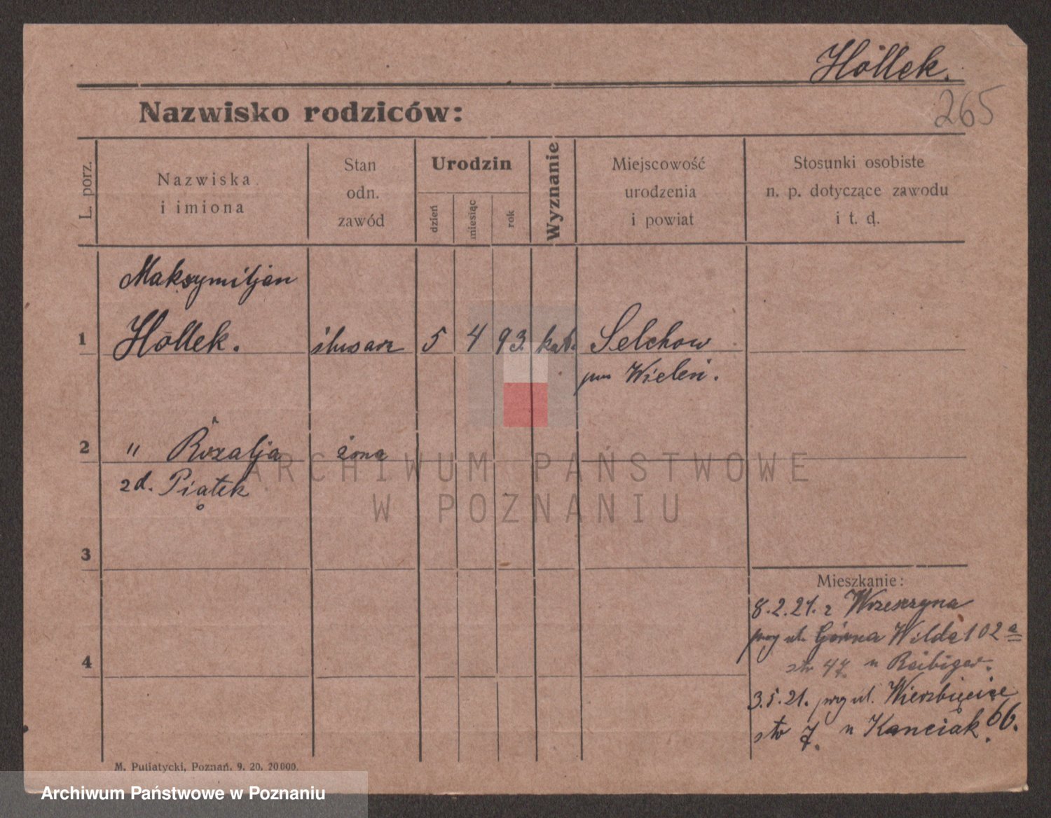 Podgląd karty osobowej dostępny jest po kliknięciu na nazwisko lub ikonkę karty. Można dokonywać powiększenia (ikony na górze) lub przechodzić między kolejnymi skanami (strzałki po bokach).