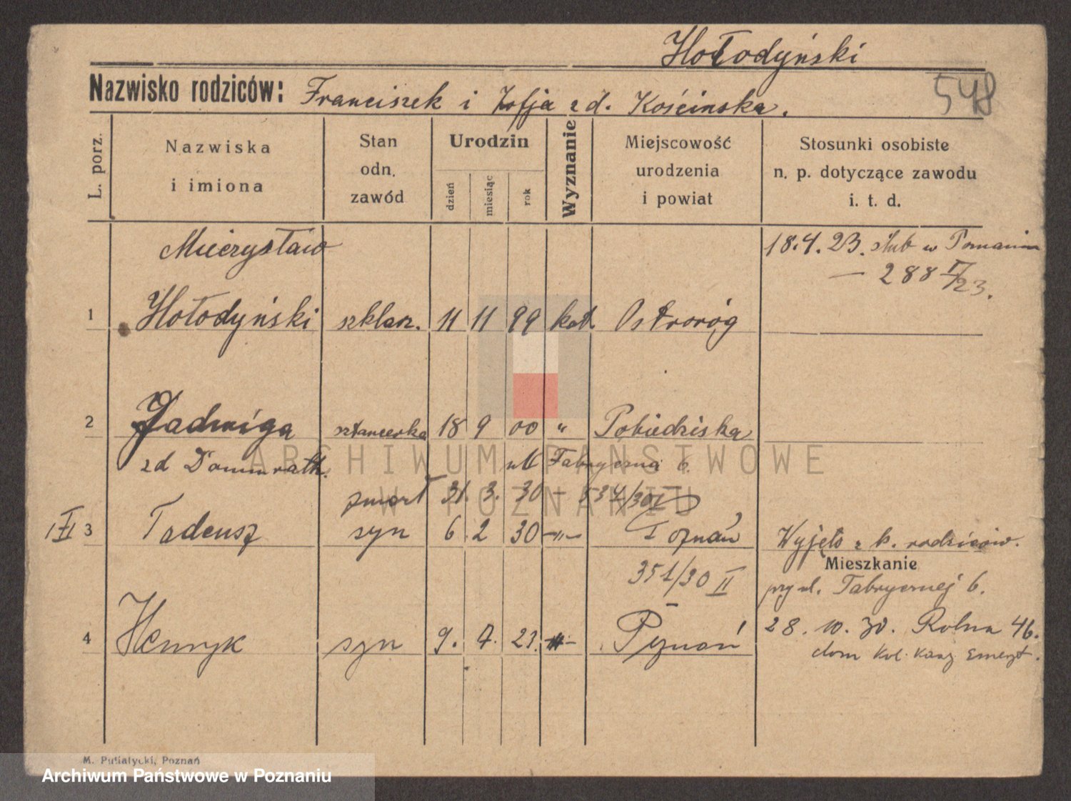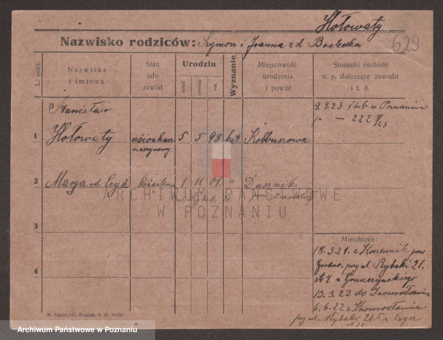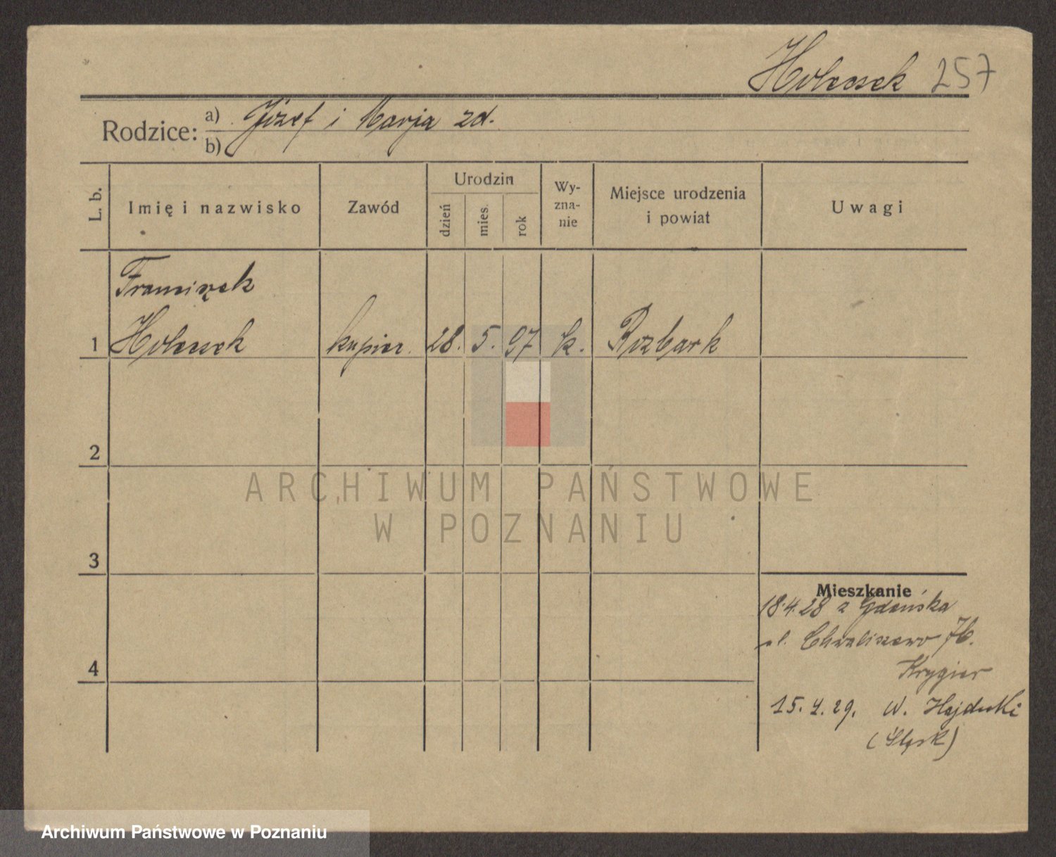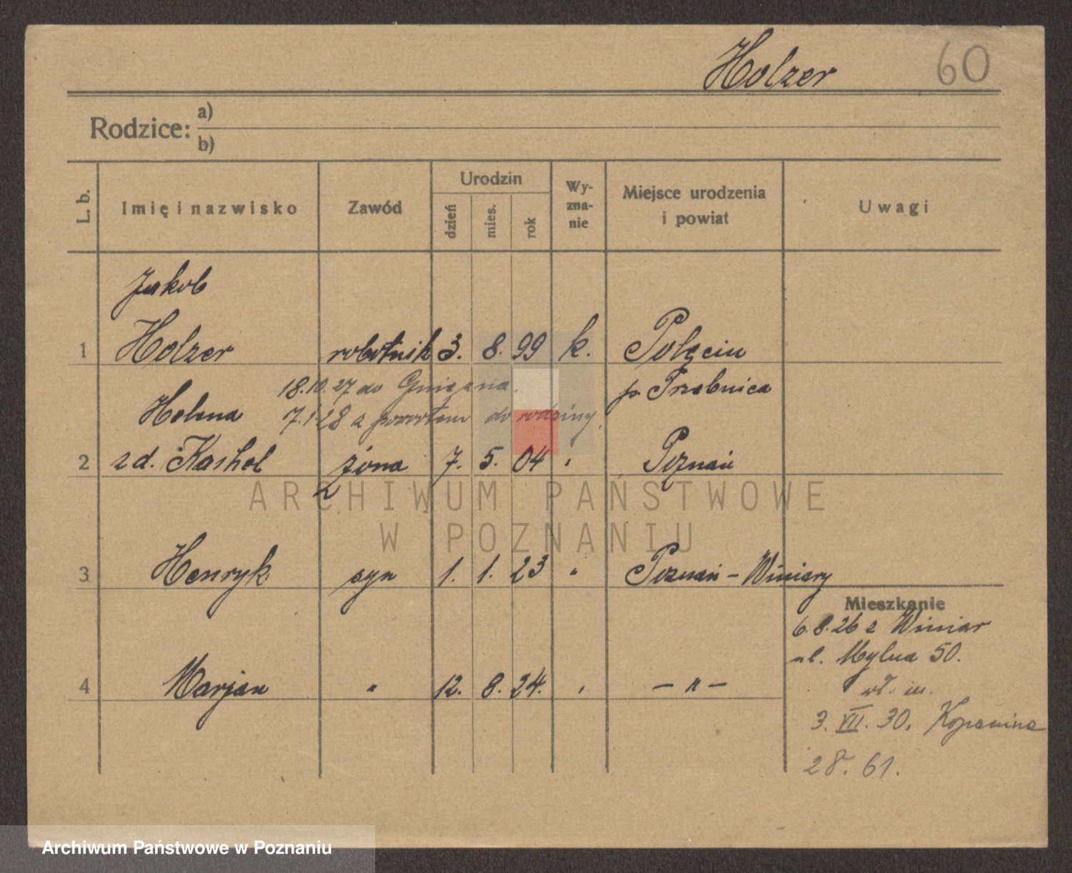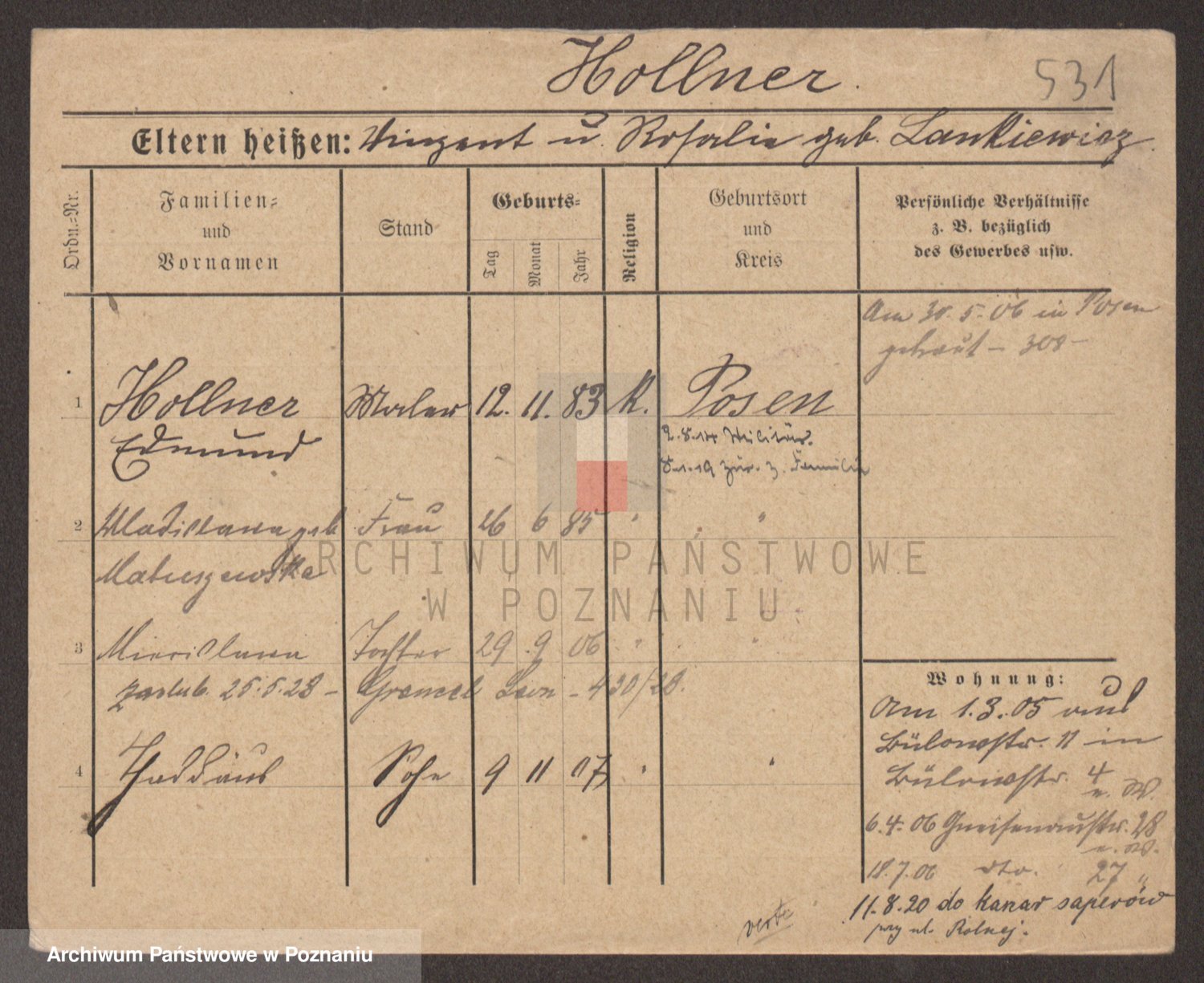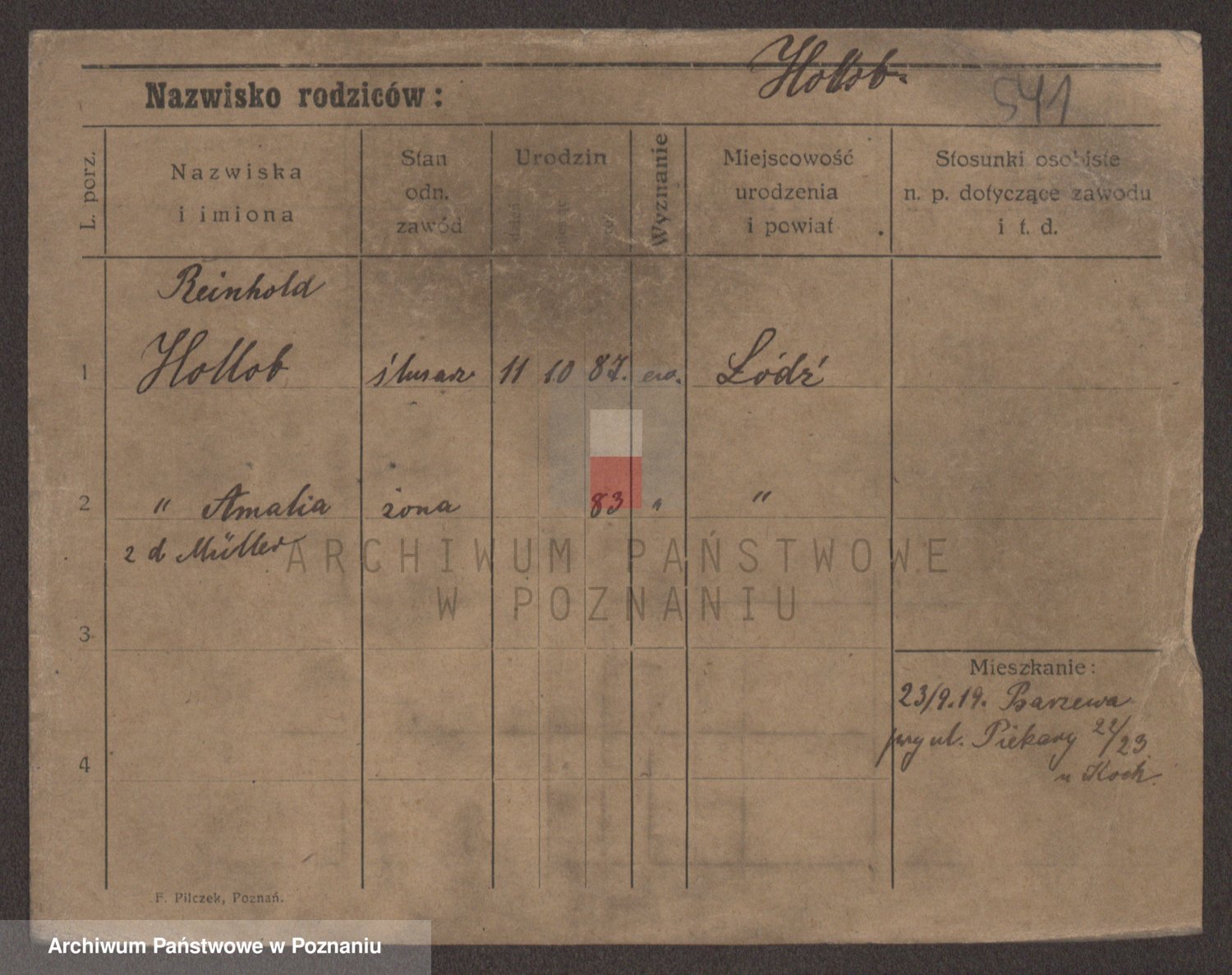 Podgląd karty osobowej dostępny jest po kliknięciu na nazwisko lub ikonkę karty. Można dokonywać powiększenia (ikony na górze) lub przechodzić między kolejnymi skanami (strzałki po bokach).