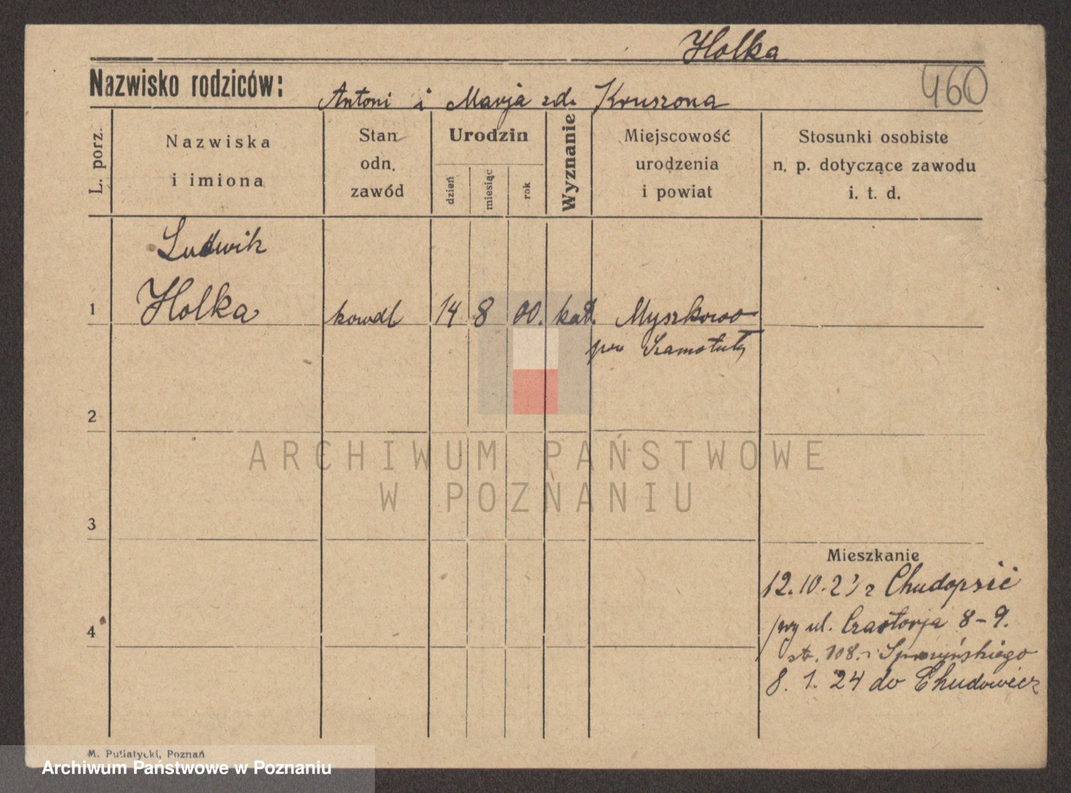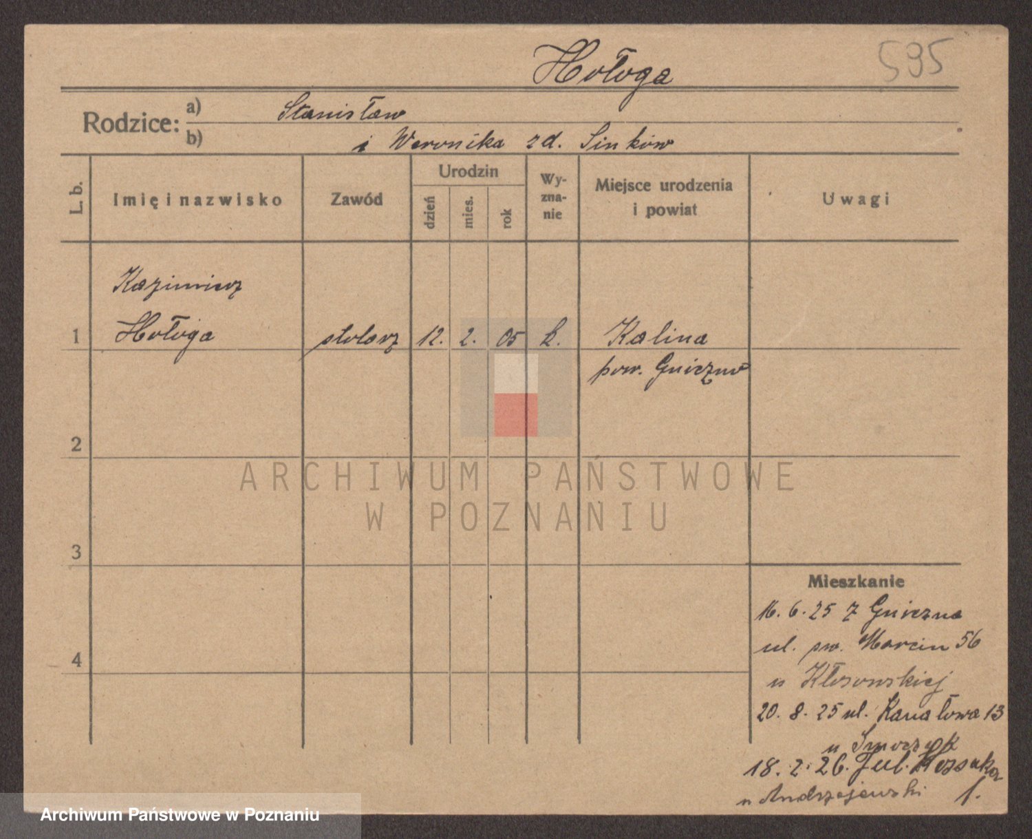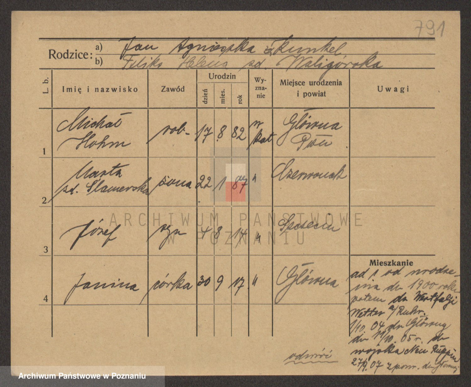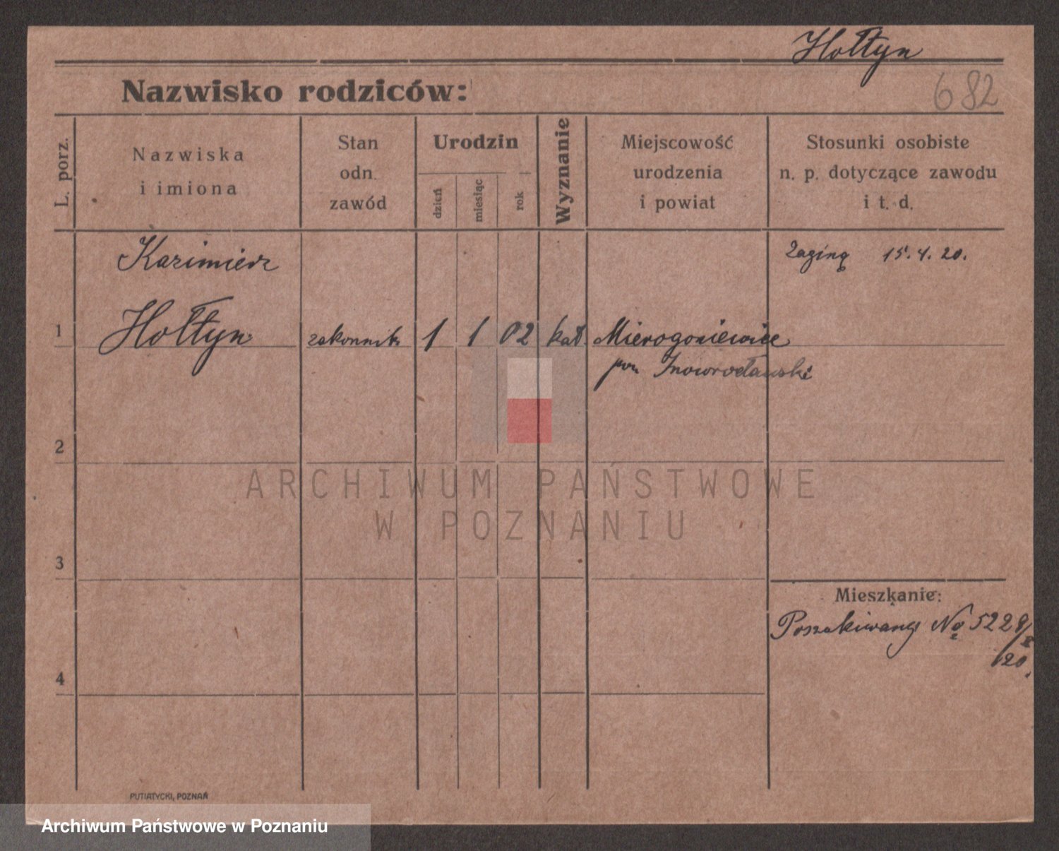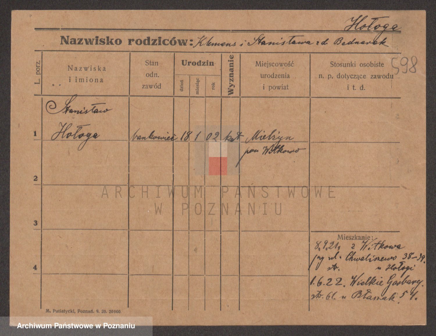 Podgląd karty osobowej dostępny jest po kliknięciu na nazwisko lub ikonkę karty. Można dokonywać powiększenia (ikony na górze) lub przechodzić między kolejnymi skanami (strzałki po bokach).