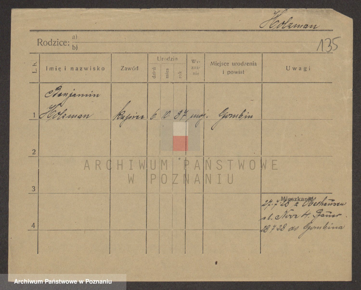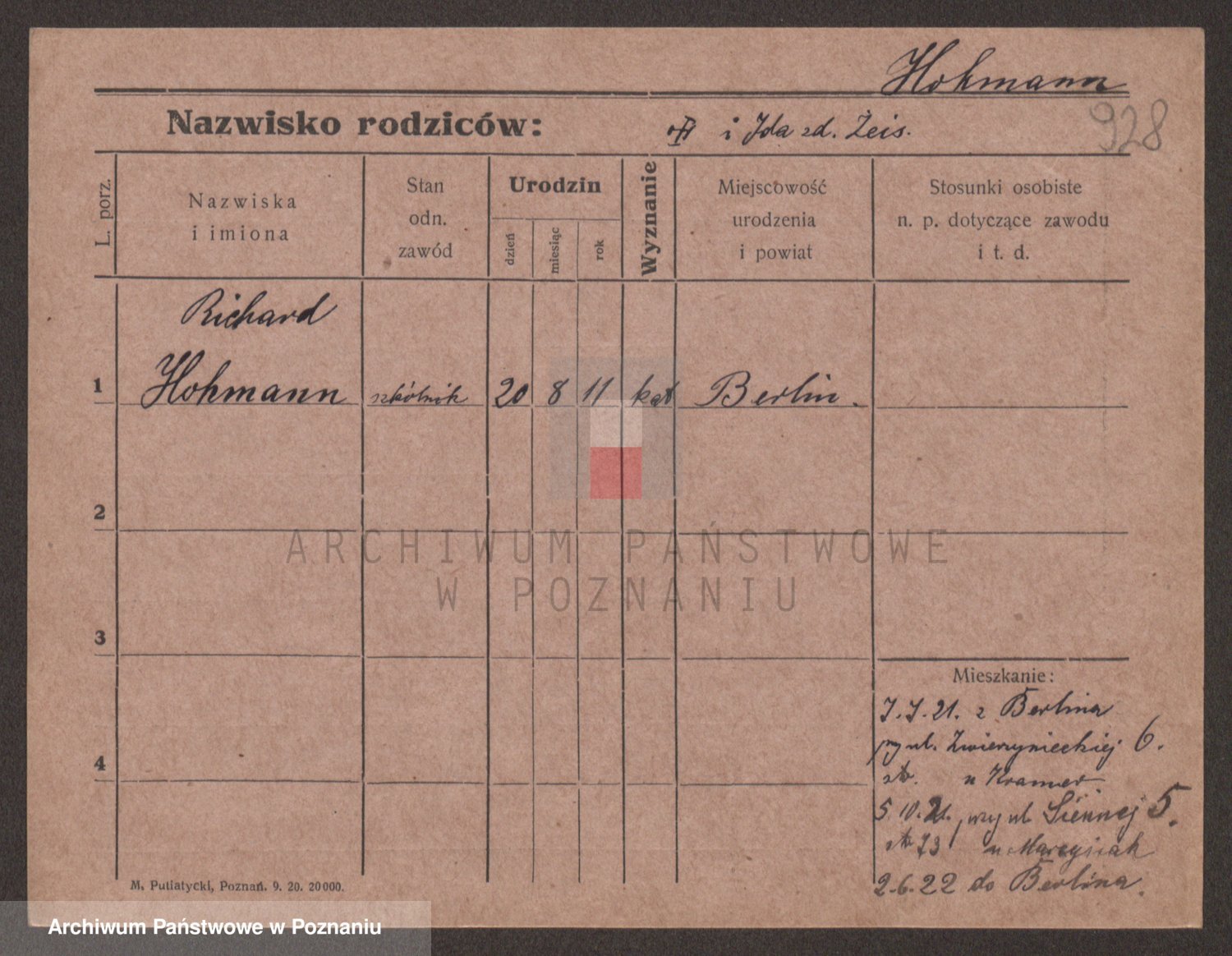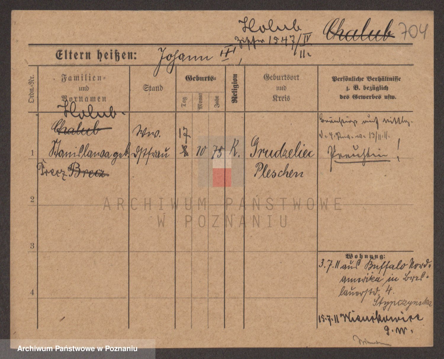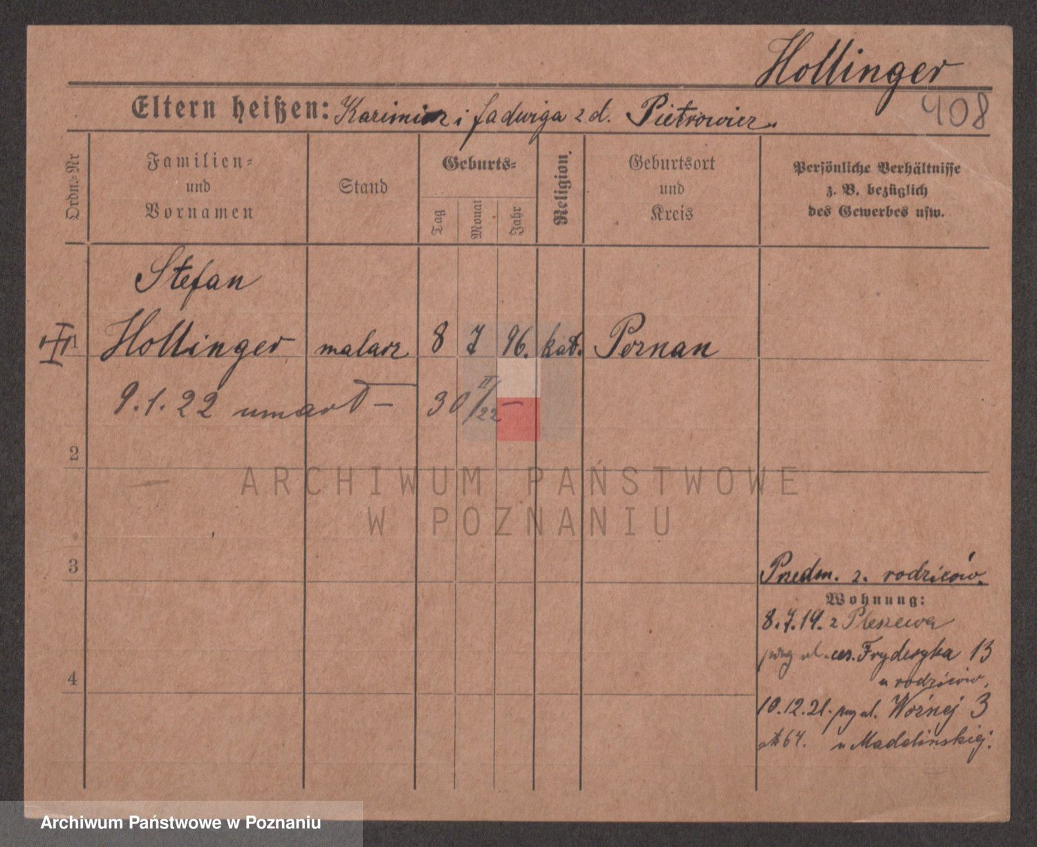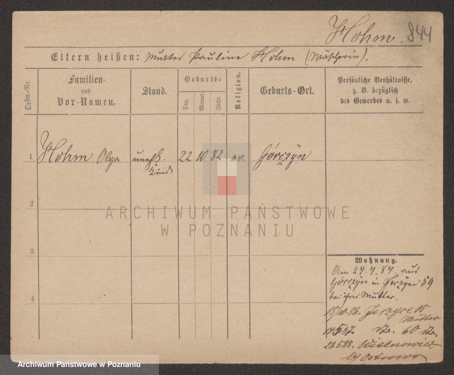Podgląd karty osobowej dostępny jest po kliknięciu na nazwisko lub ikonkę karty. Można dokonywać powiększenia (ikony na górze) lub przechodzić między kolejnymi skanami (strzałki po bokach).