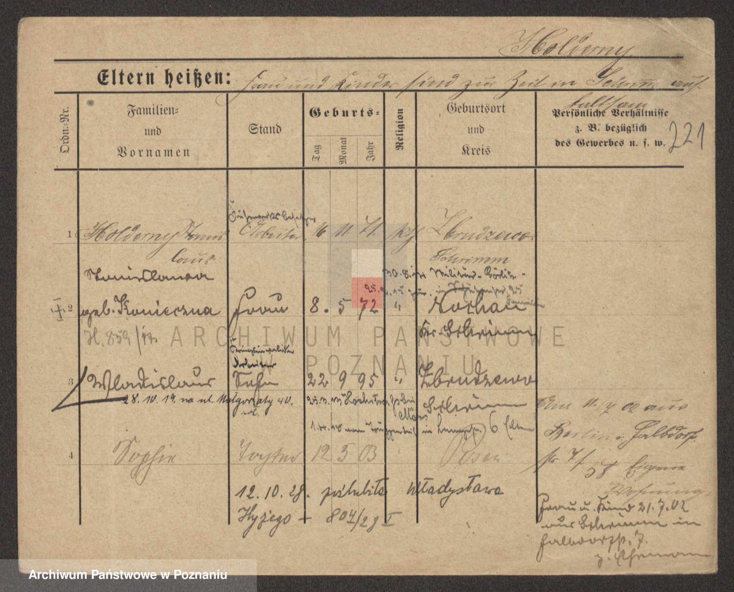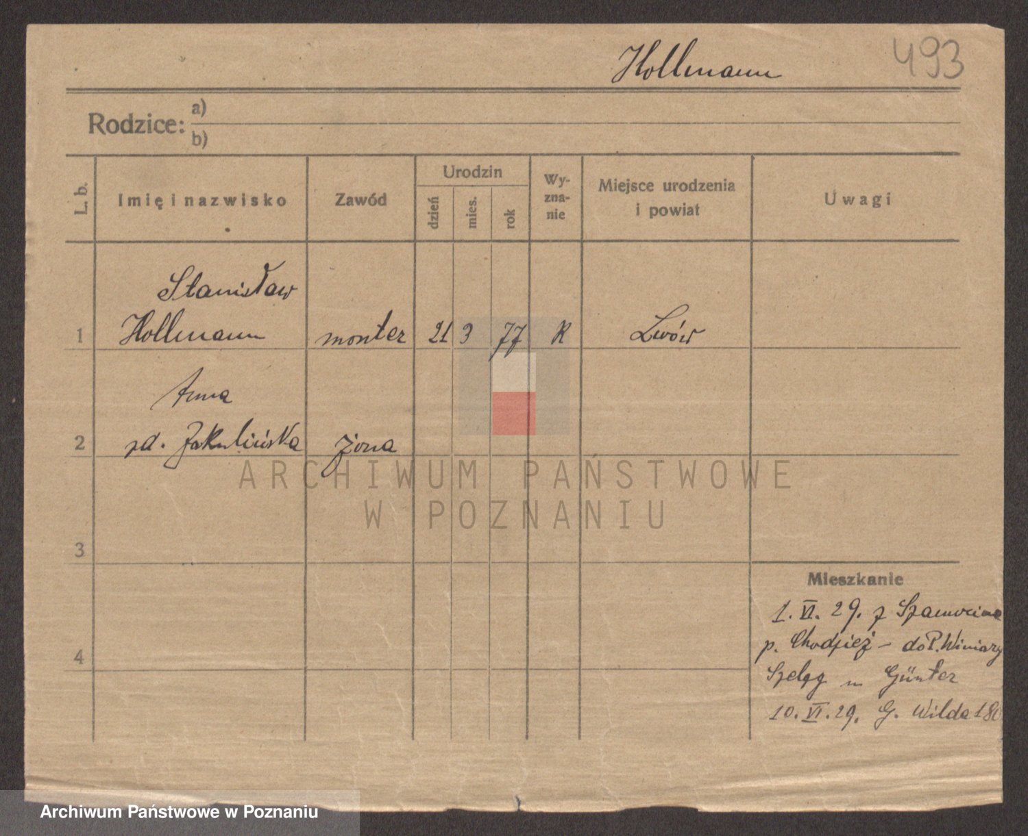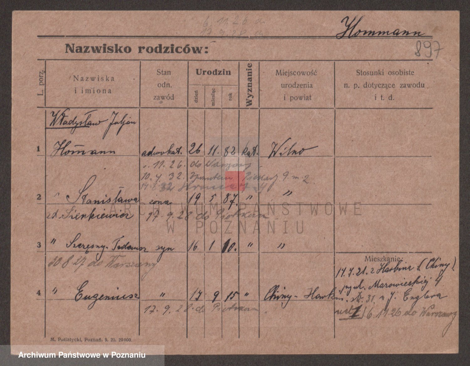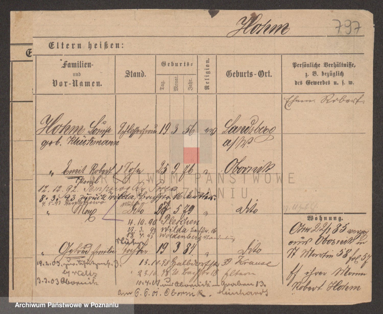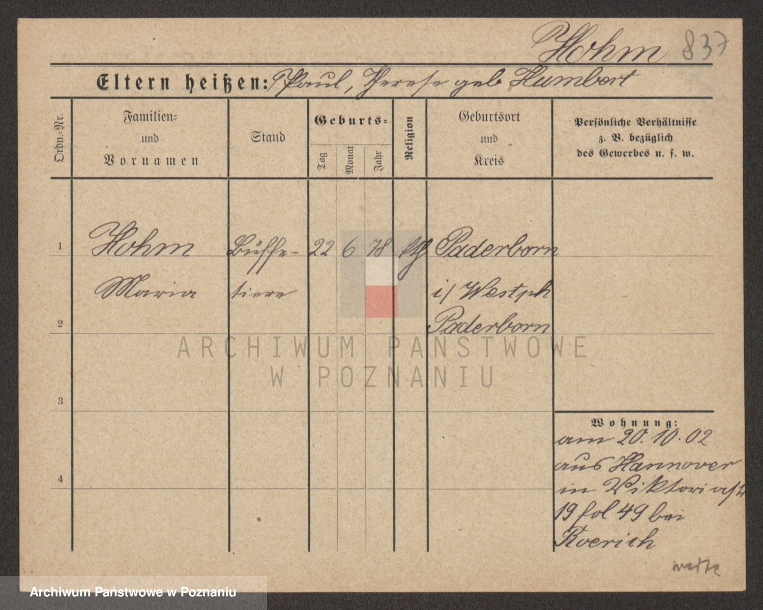 Podgląd karty osobowej dostępny jest po kliknięciu na nazwisko lub ikonkę karty. Można dokonywać powiększenia (ikony na górze) lub przechodzić między kolejnymi skanami (strzałki po bokach).