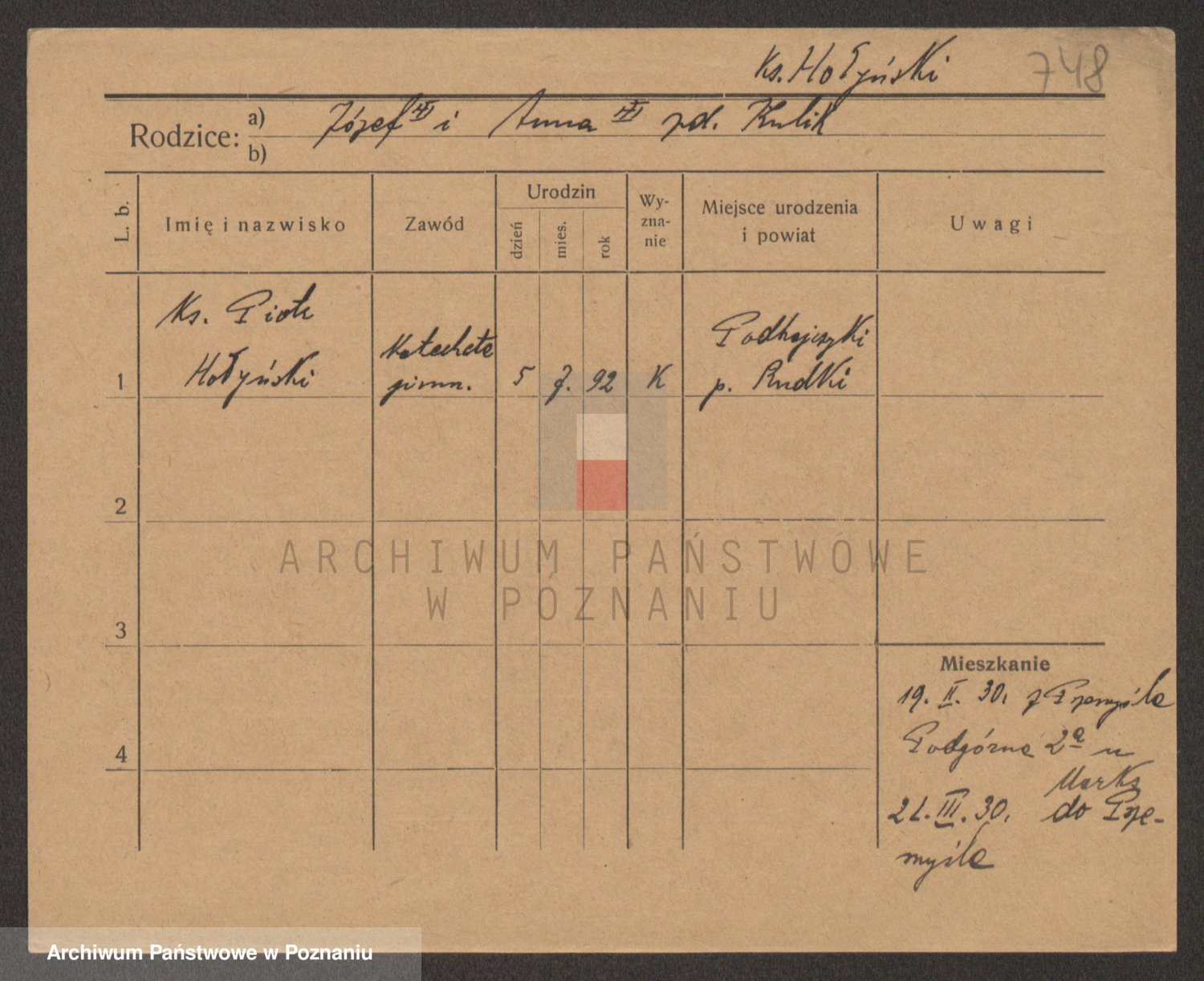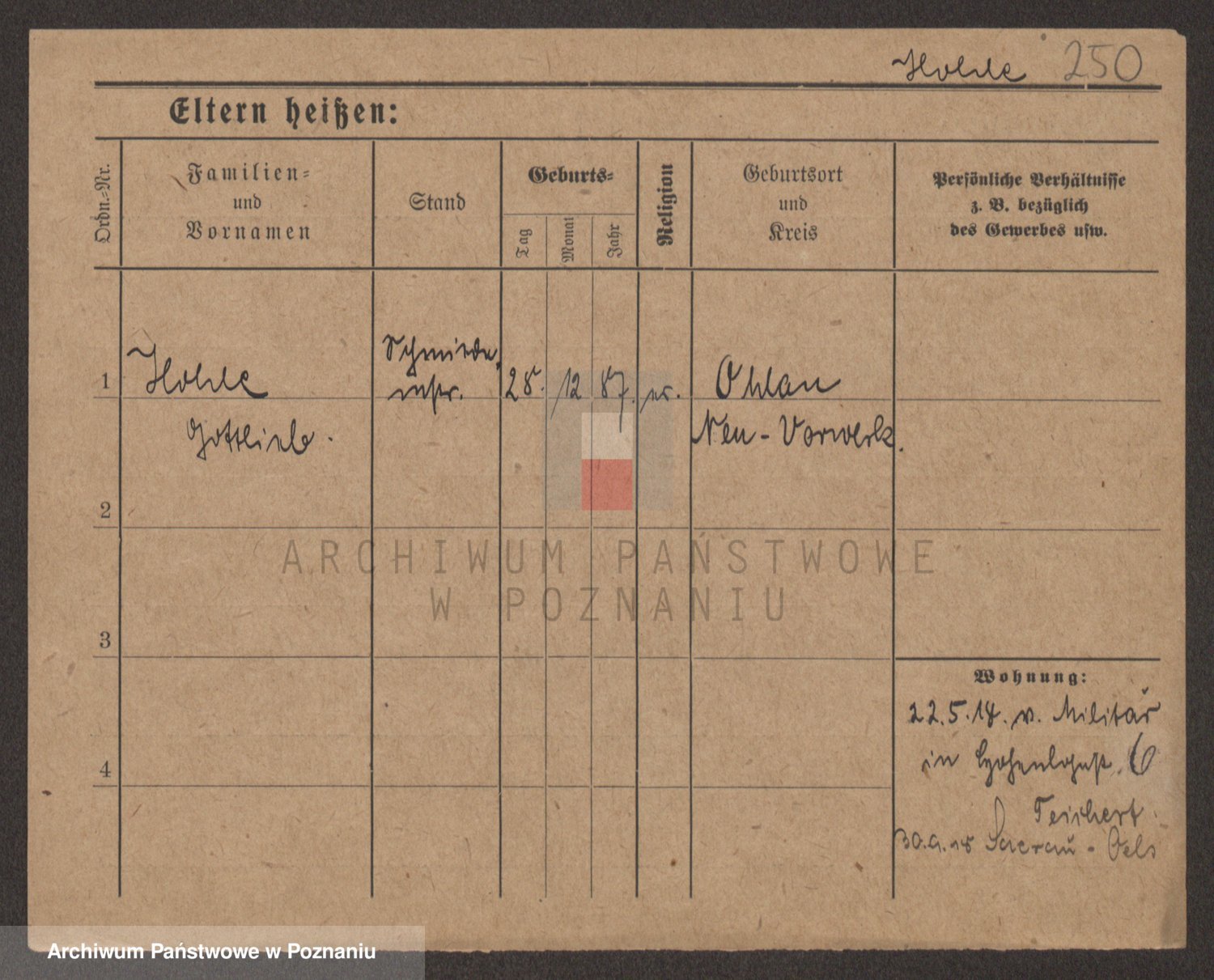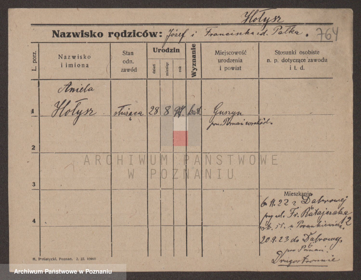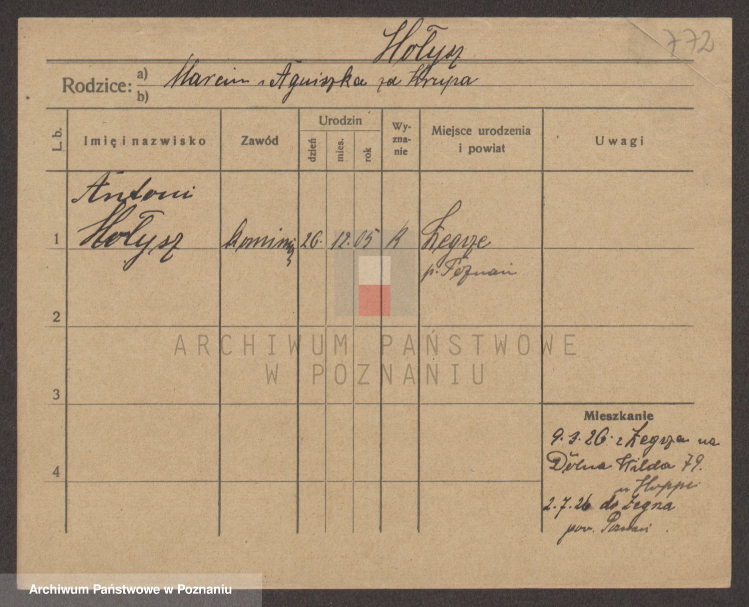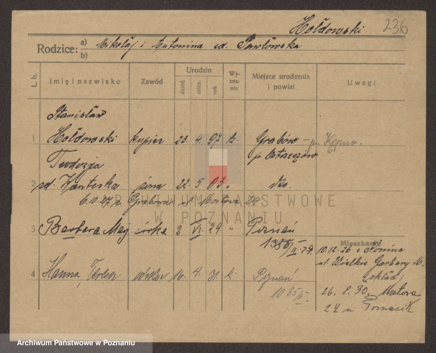 Podgląd karty osobowej dostępny jest po kliknięciu na nazwisko lub ikonkę karty. Można dokonywać powiększenia (ikony na górze) lub przechodzić między kolejnymi skanami (strzałki po bokach).