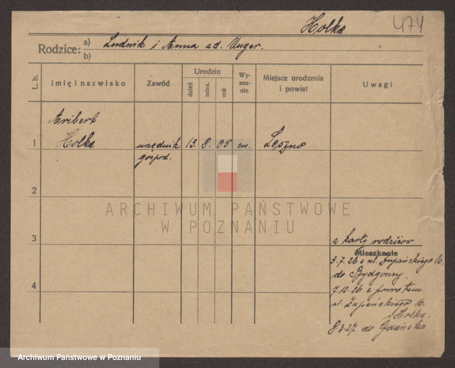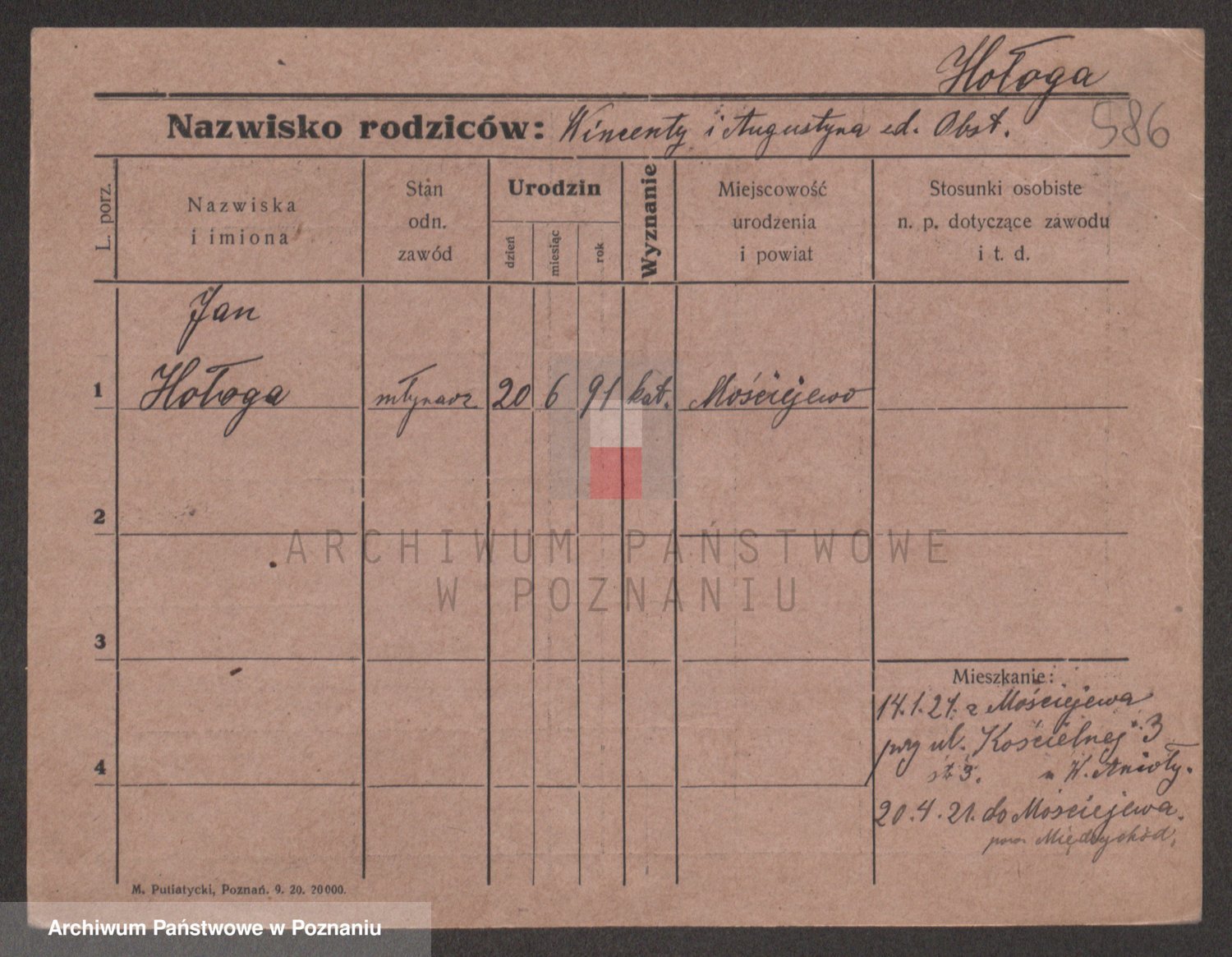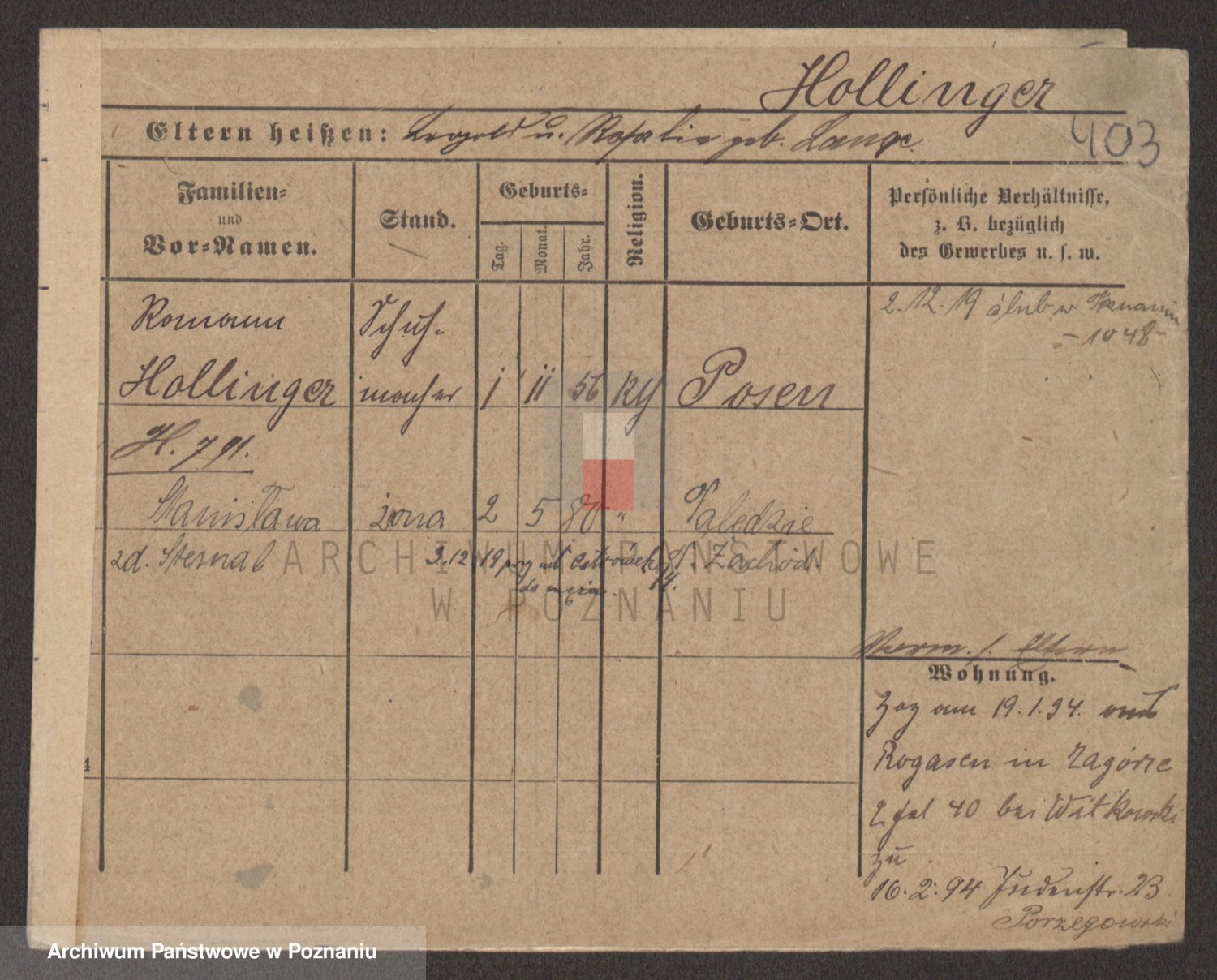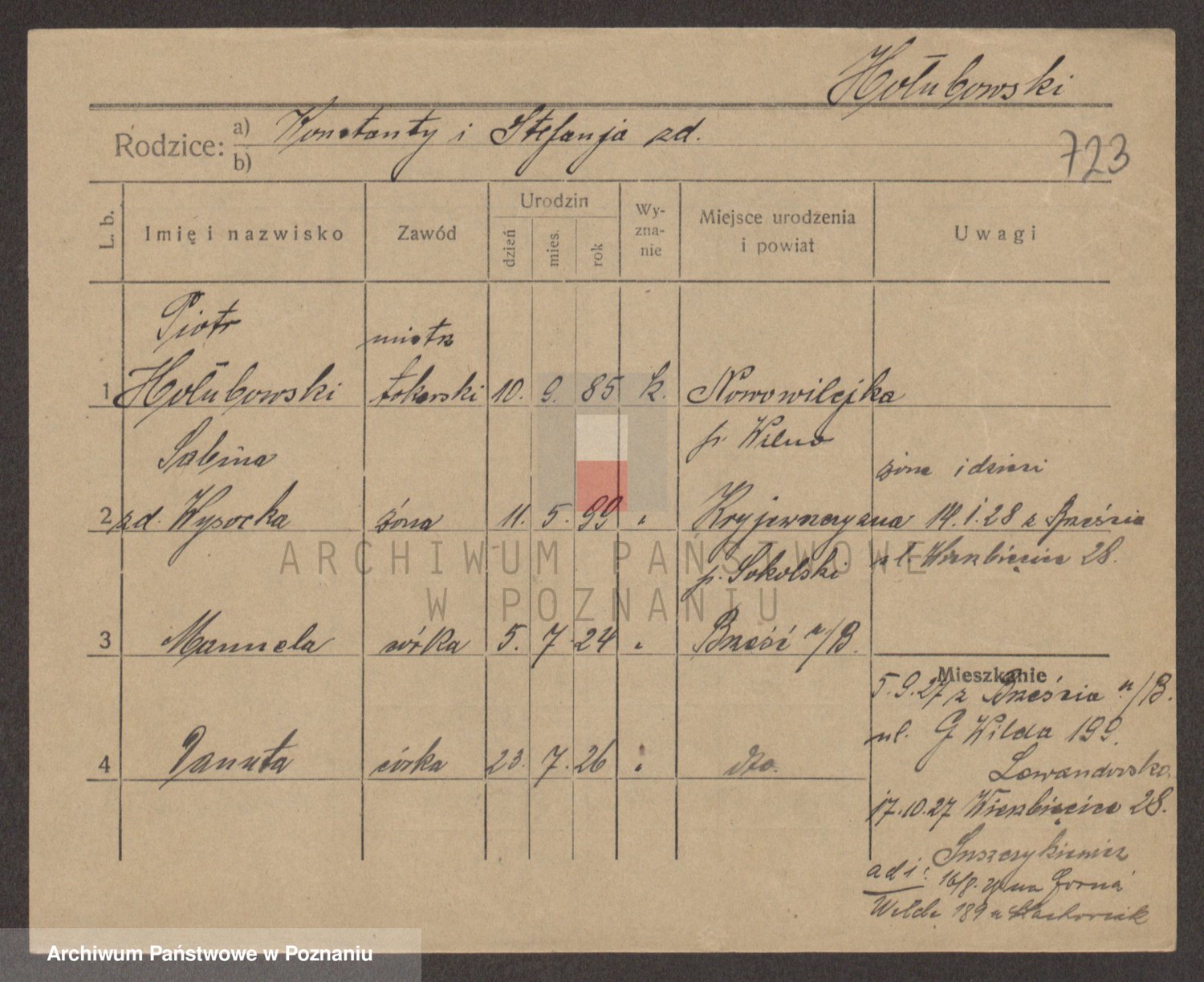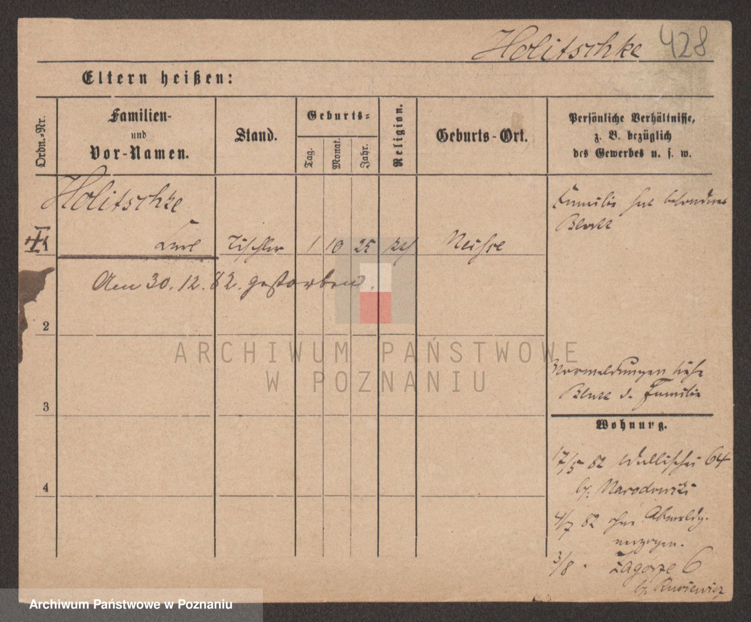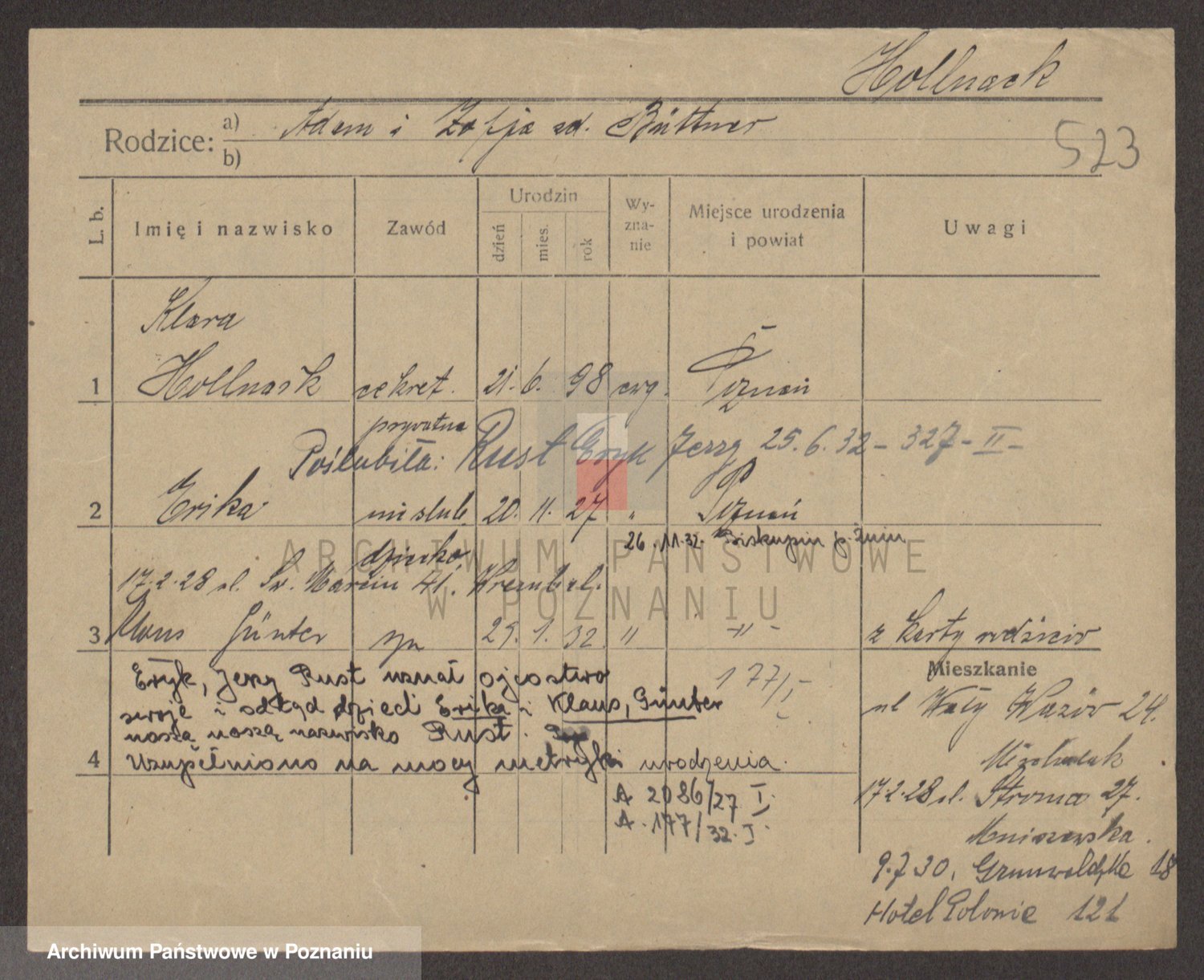 Podgląd karty osobowej dostępny jest po kliknięciu na nazwisko lub ikonkę karty. Można dokonywać powiększenia (ikony na górze) lub przechodzić między kolejnymi skanami (strzałki po bokach).