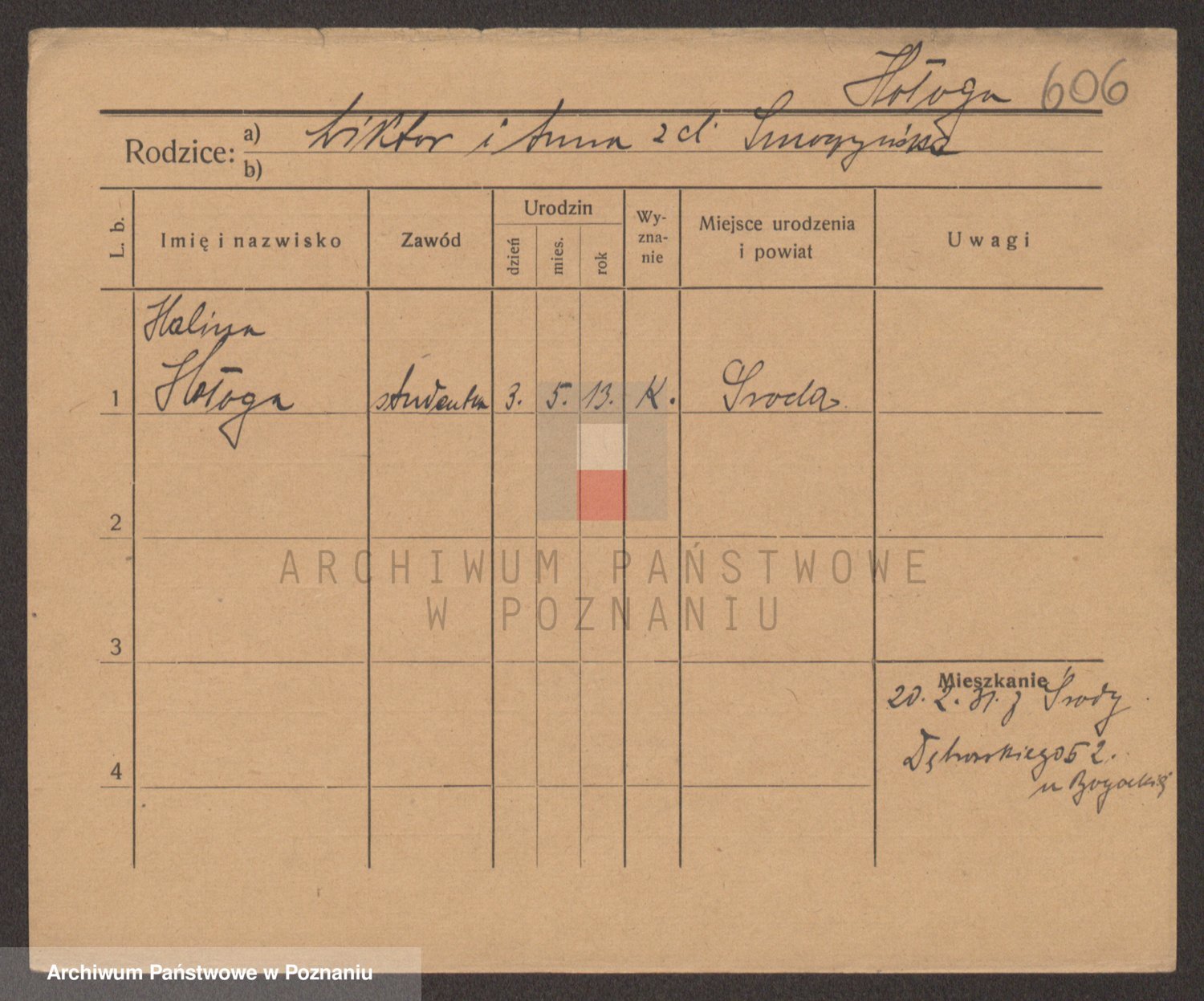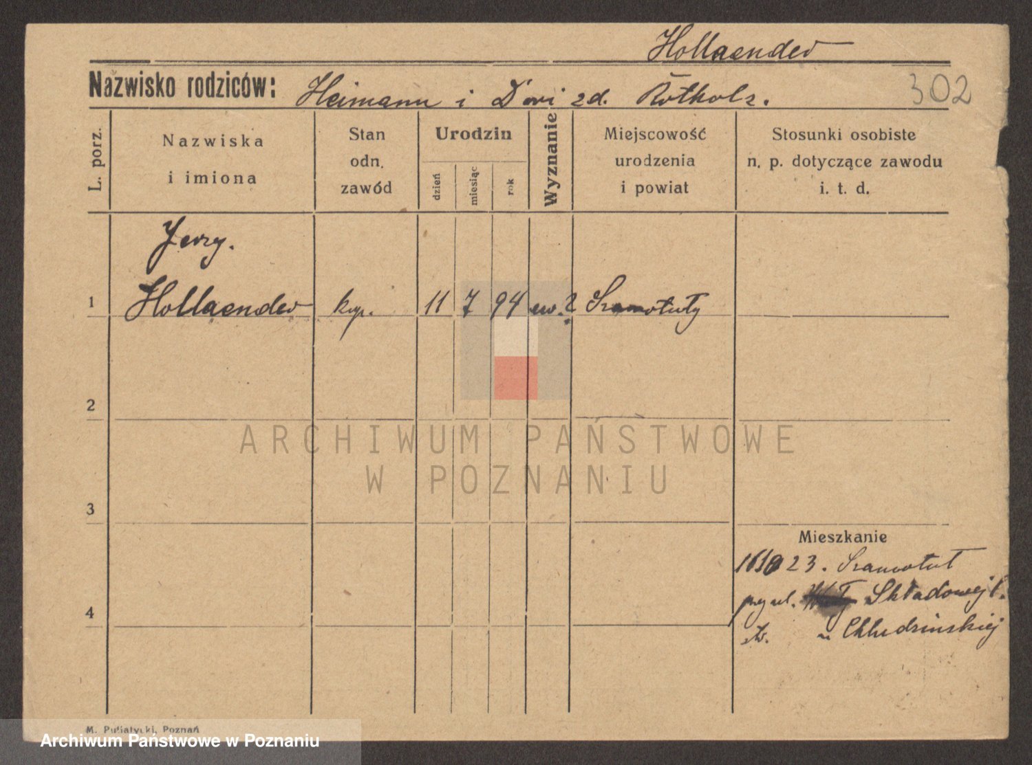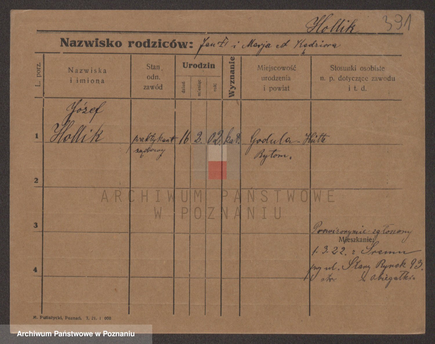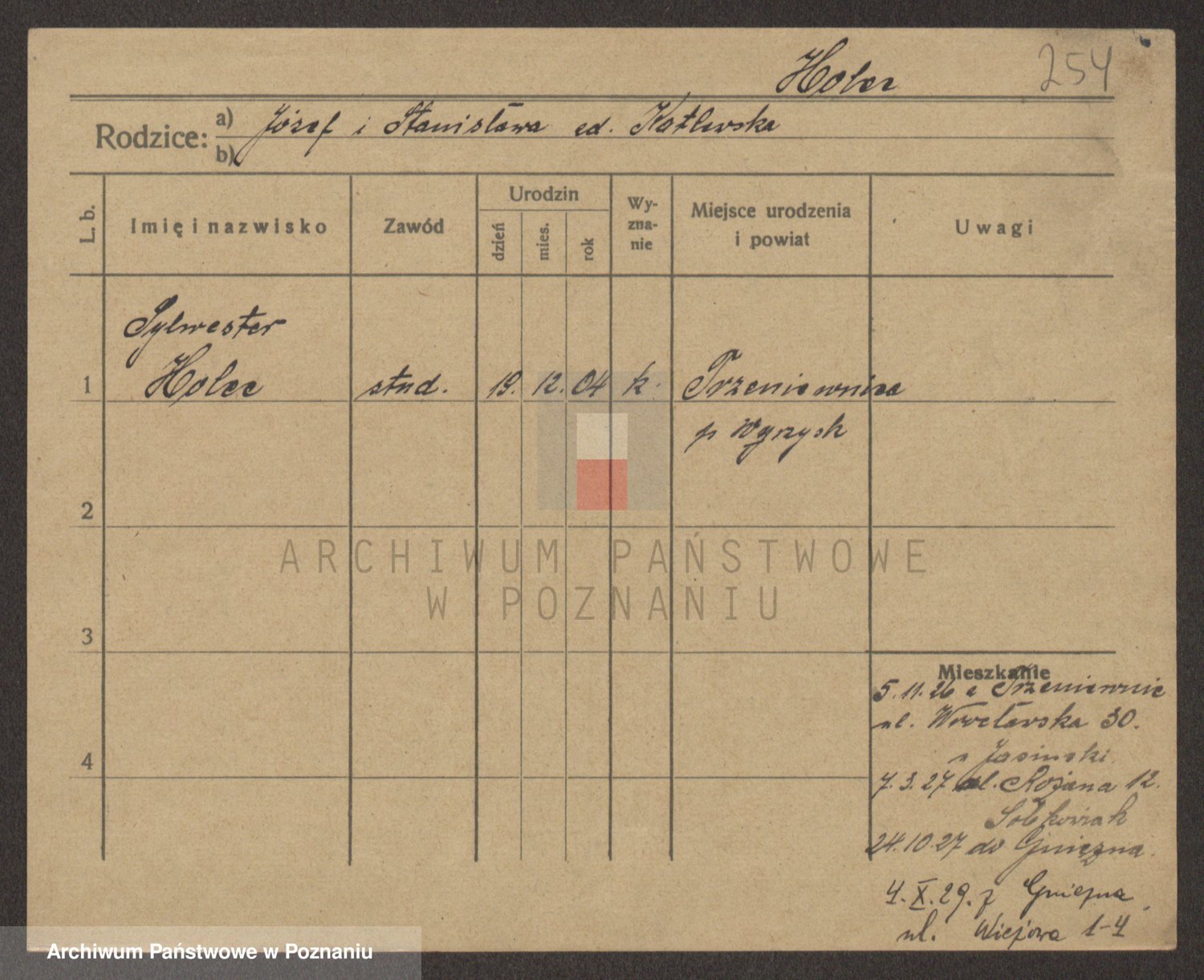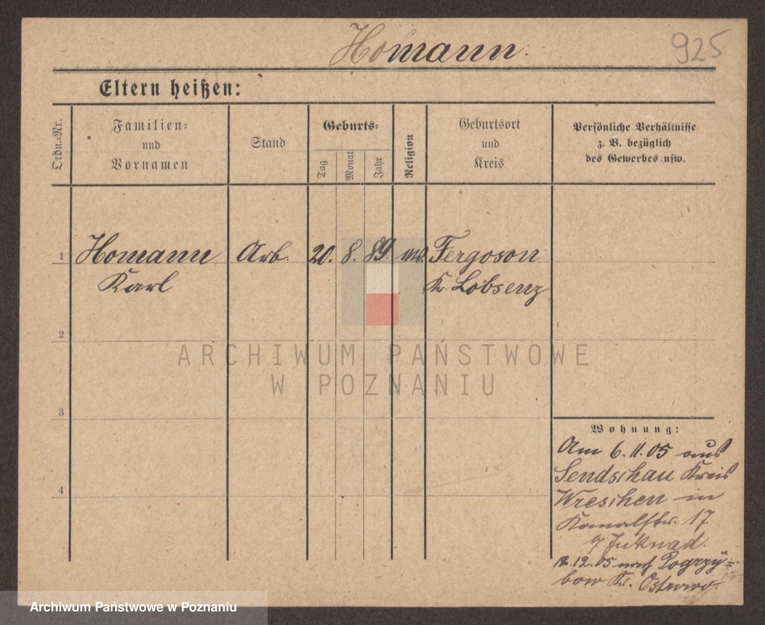 Podgląd karty osobowej dostępny jest po kliknięciu na nazwisko lub ikonkę karty. Można dokonywać powiększenia (ikony na górze) lub przechodzić między kolejnymi skanami (strzałki po bokach).
