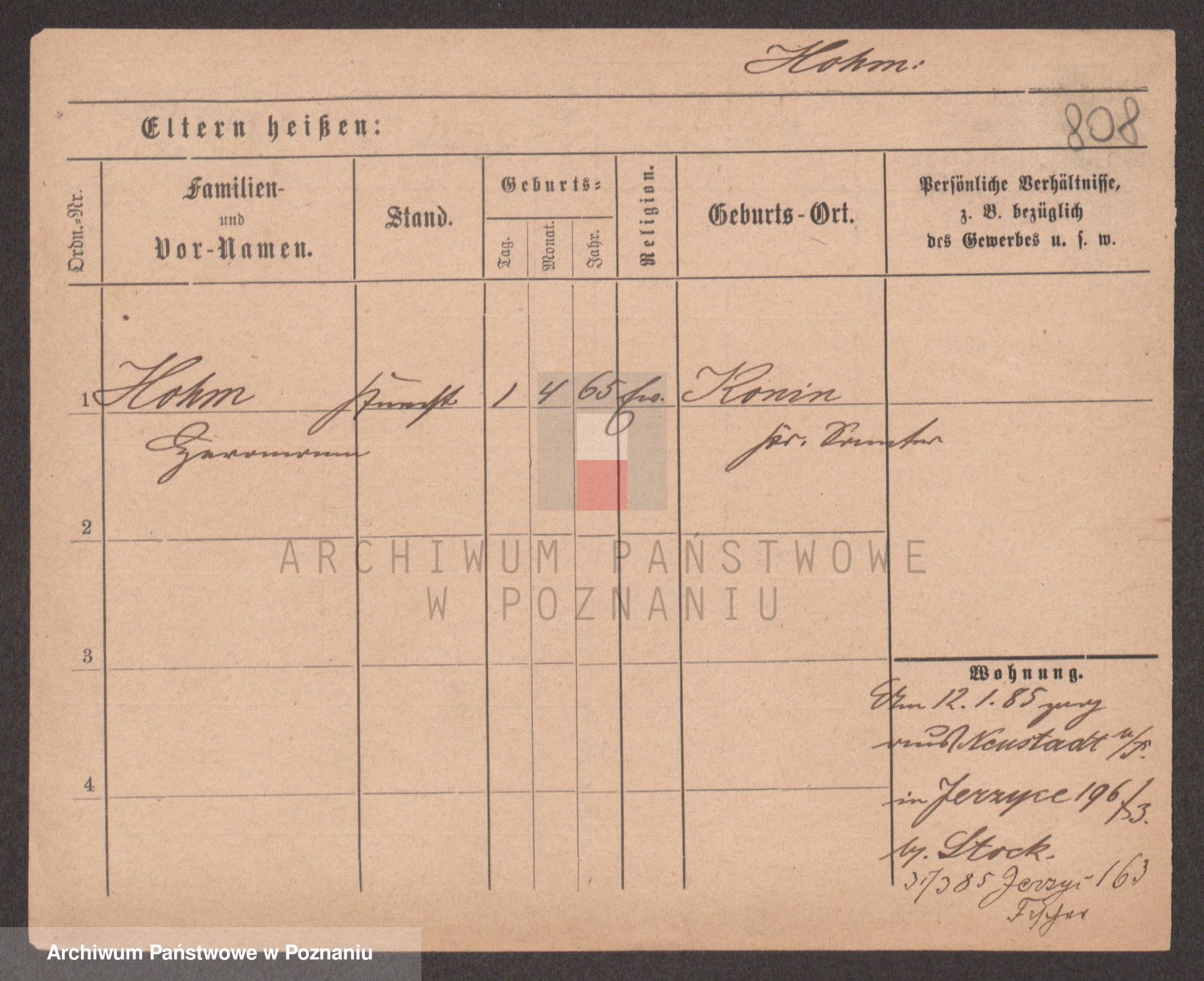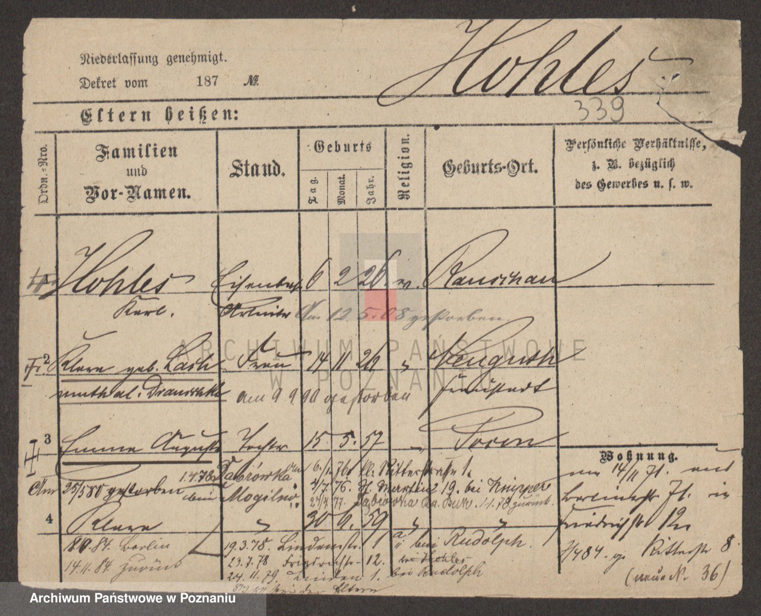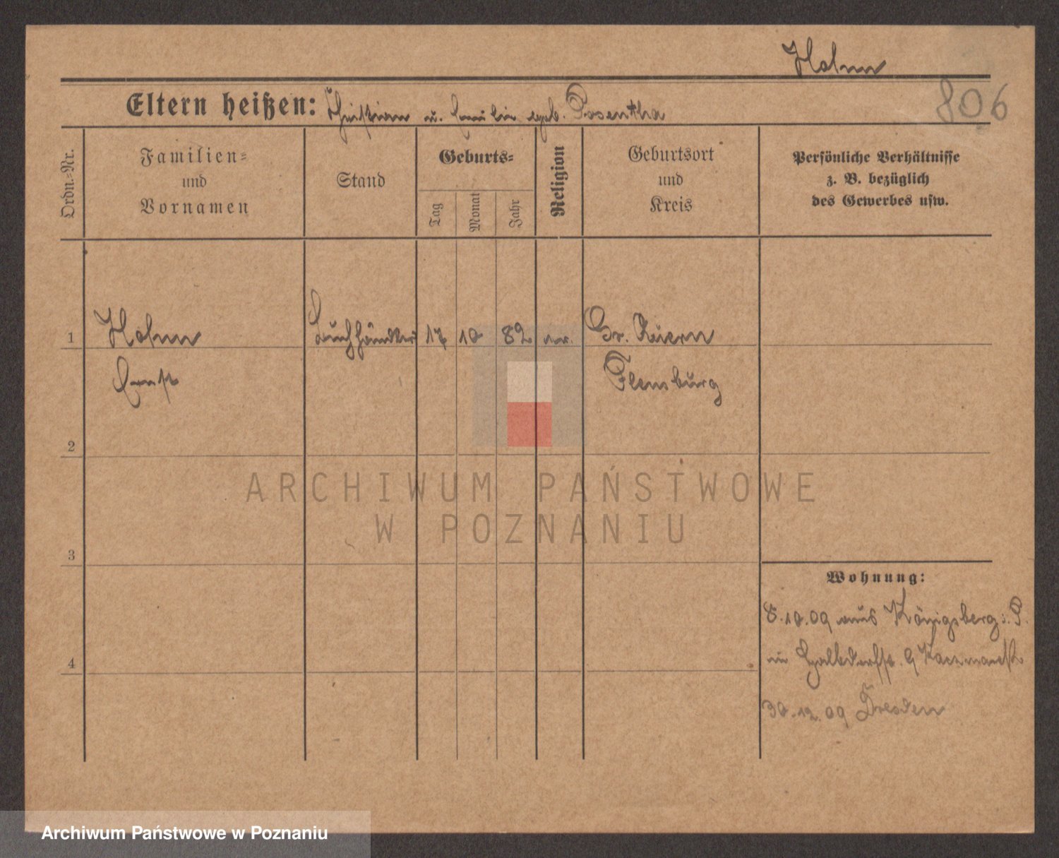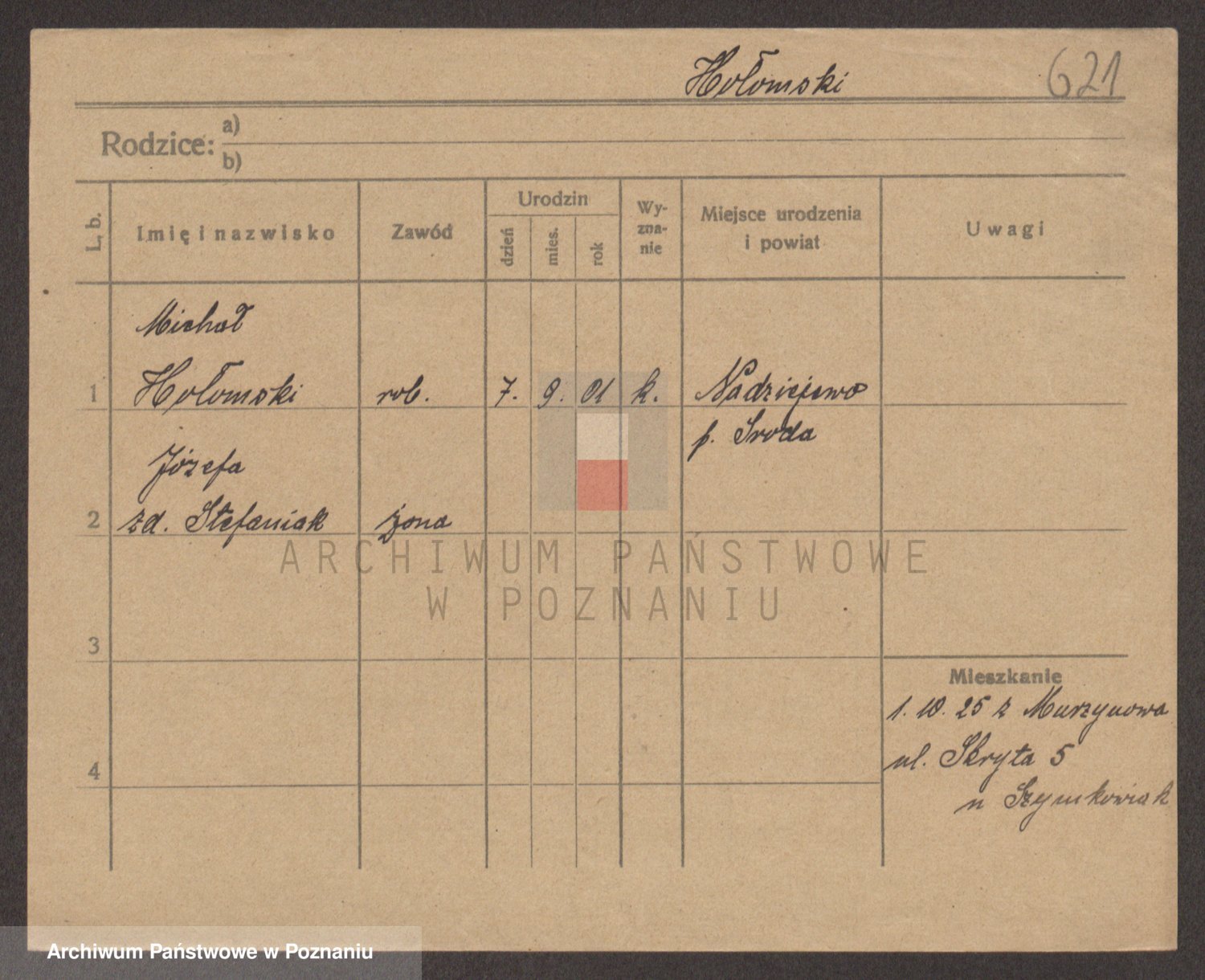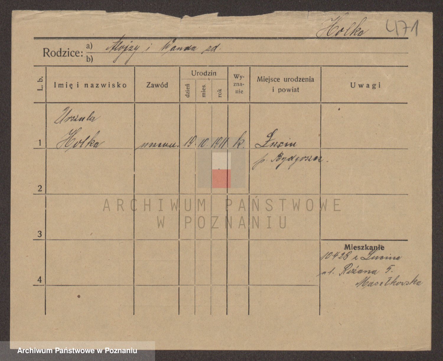 Podgląd karty osobowej dostępny jest po kliknięciu na nazwisko lub ikonkę karty. Można dokonywać powiększenia (ikony na górze) lub przechodzić między kolejnymi skanami (strzałki po bokach).