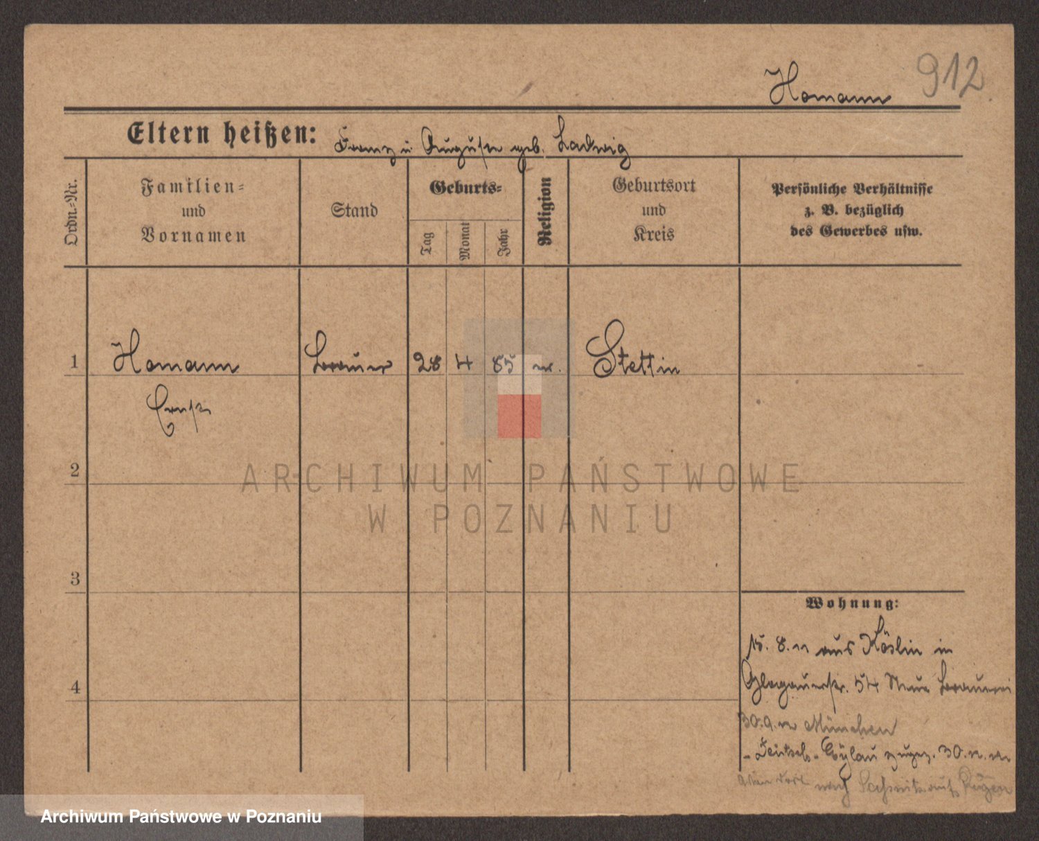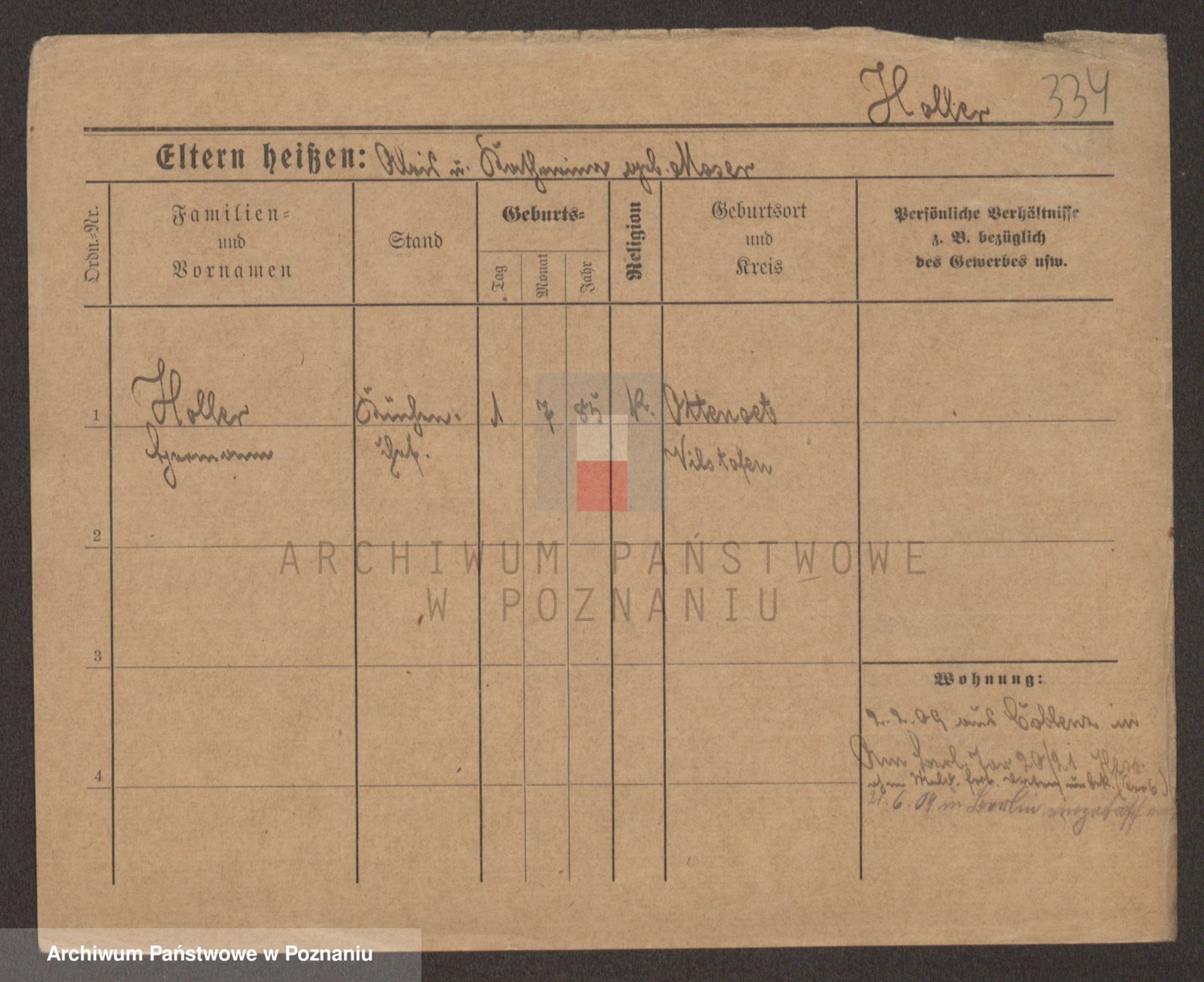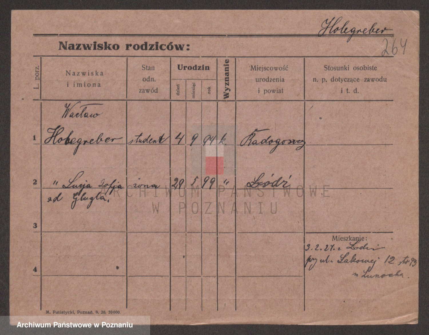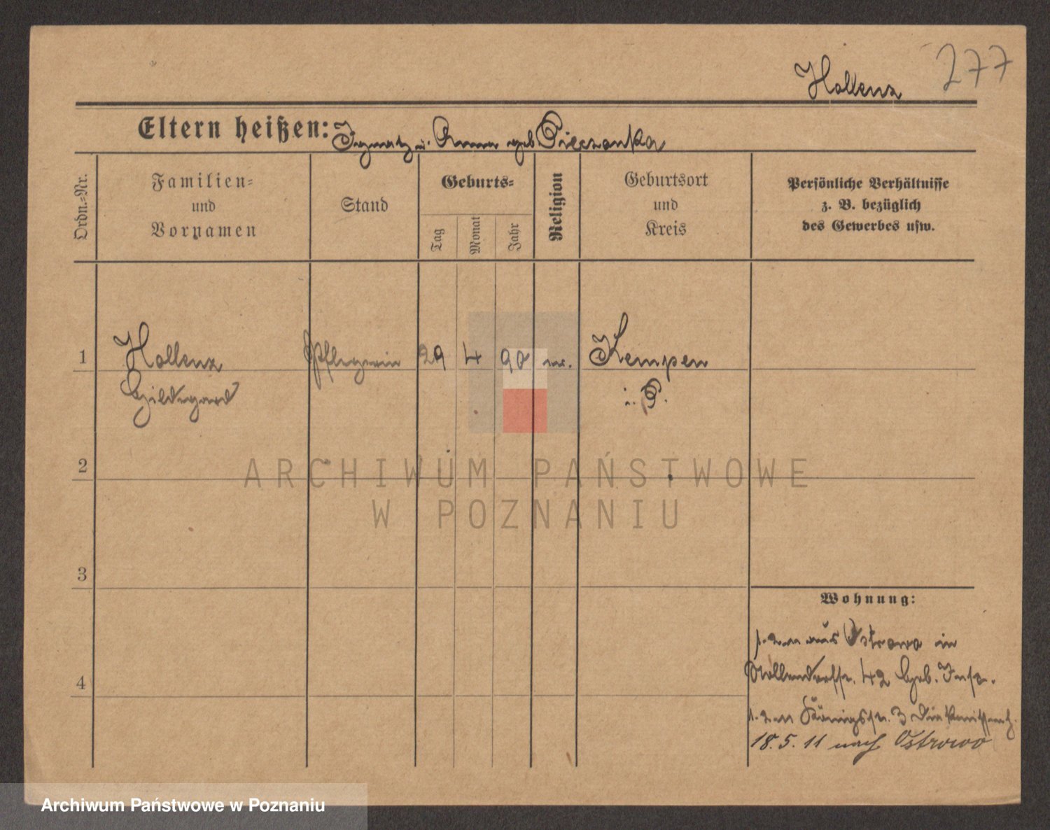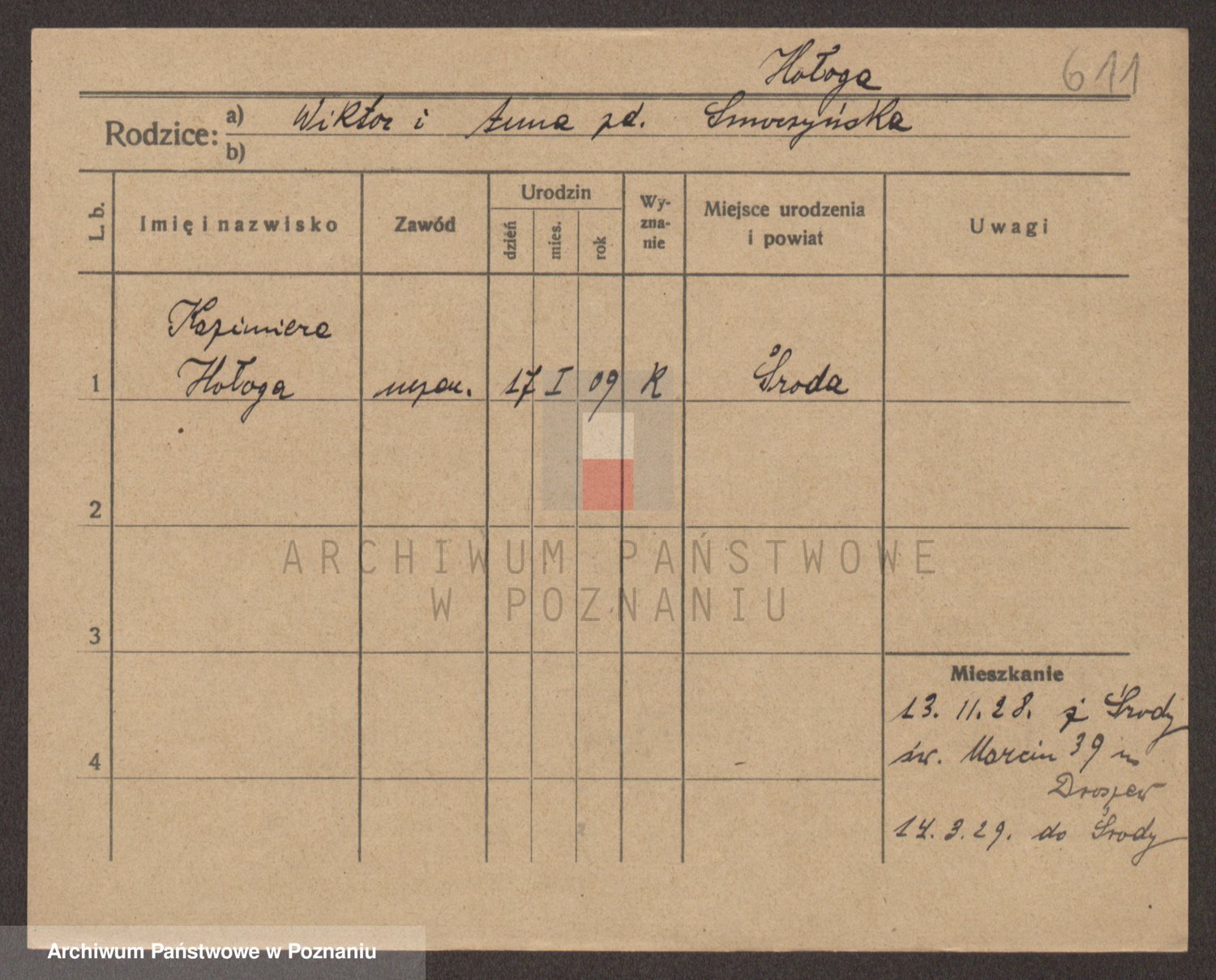 Podgląd karty osobowej dostępny jest po kliknięciu na nazwisko lub ikonkę karty. Można dokonywać powiększenia (ikony na górze) lub przechodzić między kolejnymi skanami (strzałki po bokach).