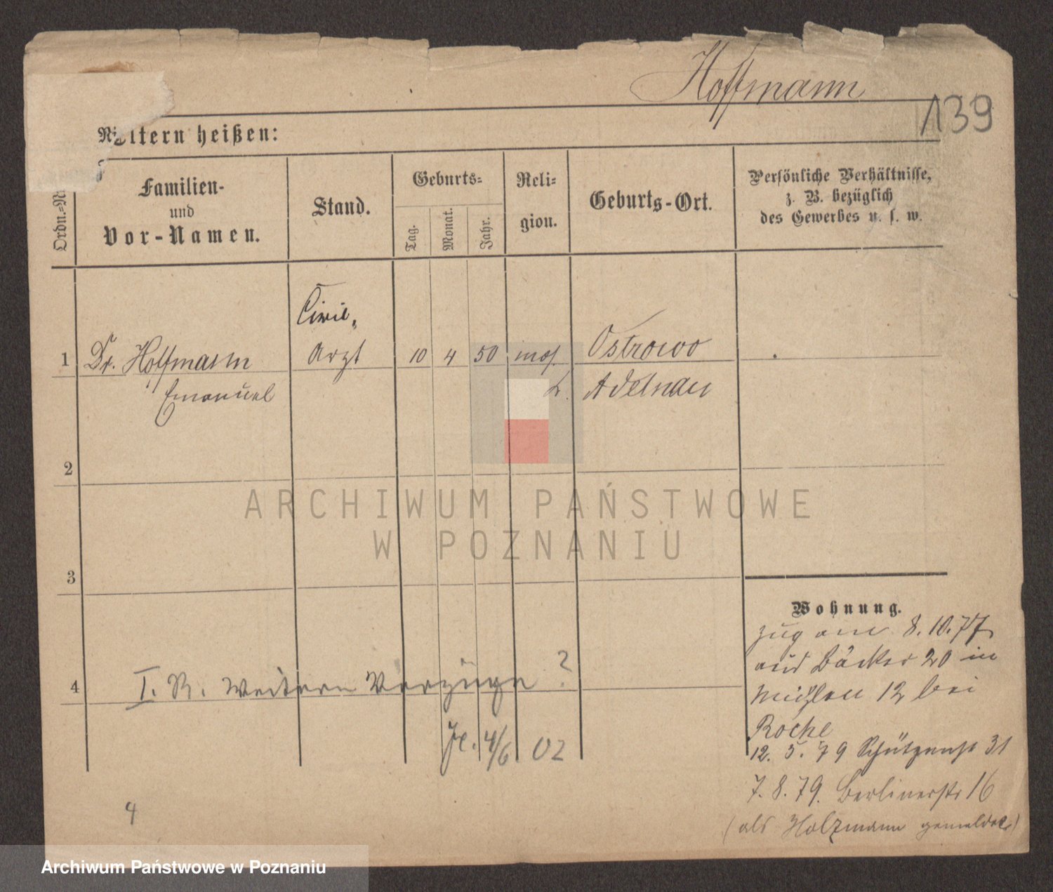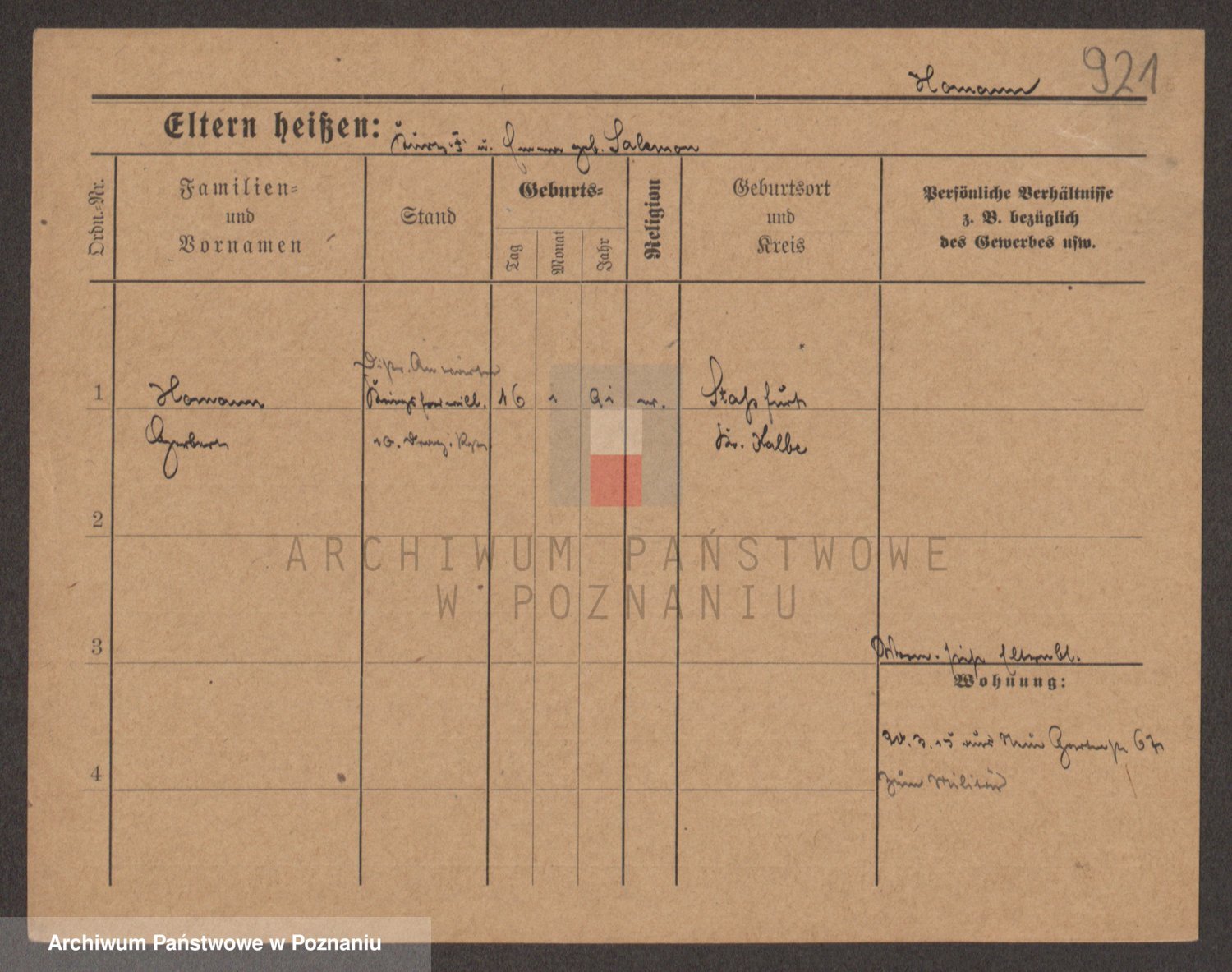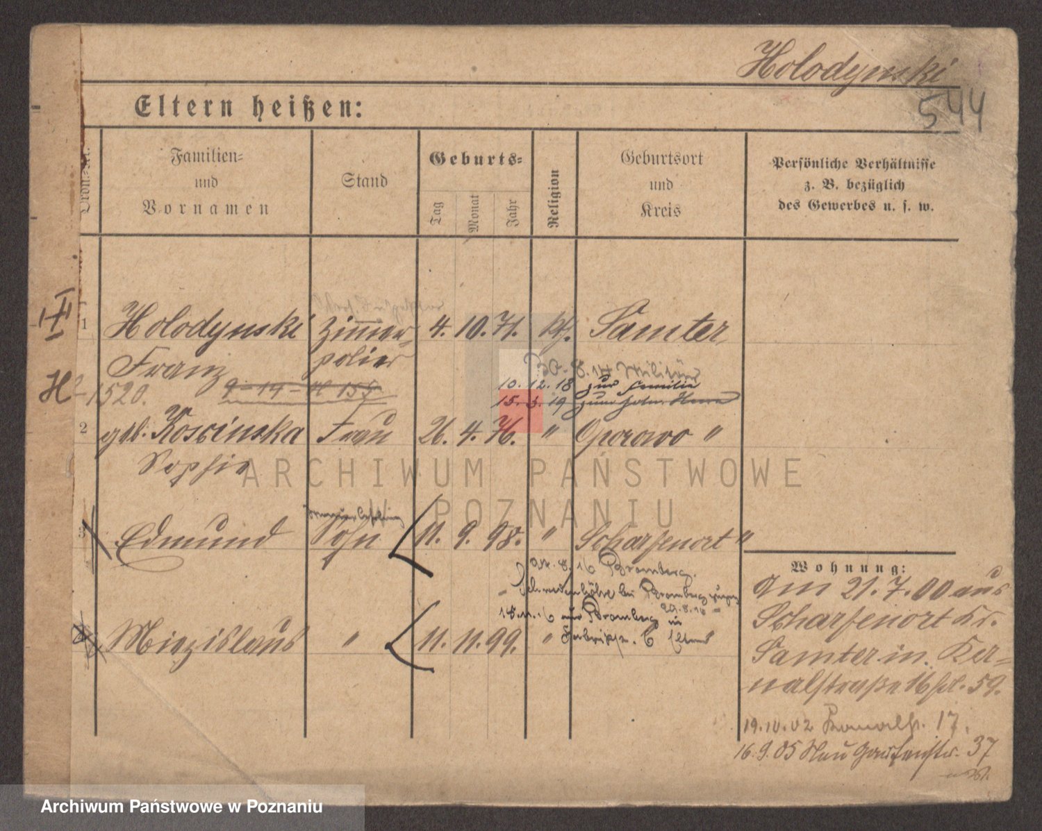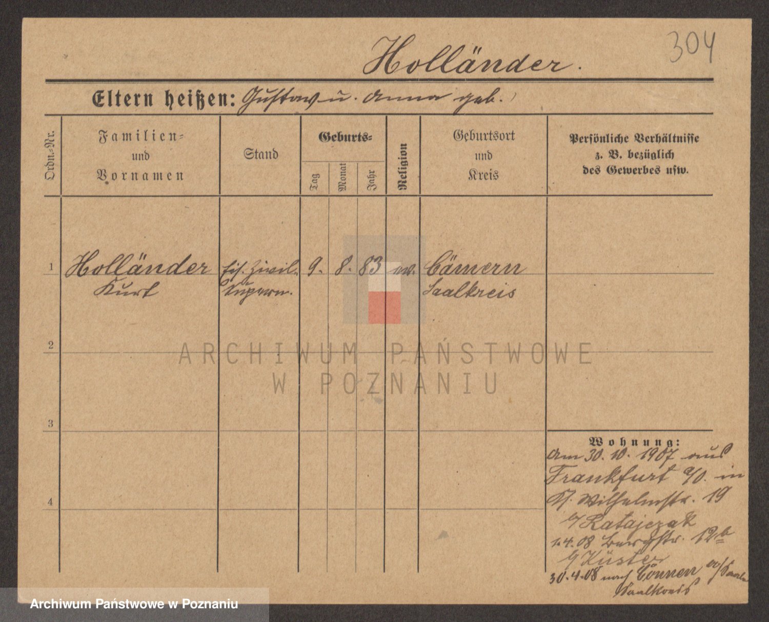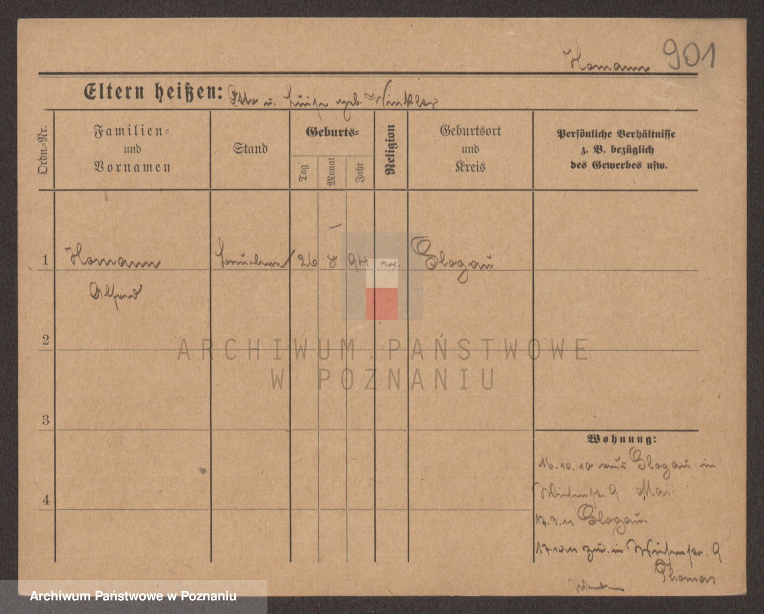 Podgląd karty osobowej dostępny jest po kliknięciu na nazwisko lub ikonkę karty. Można dokonywać powiększenia (ikony na górze) lub przechodzić między kolejnymi skanami (strzałki po bokach).