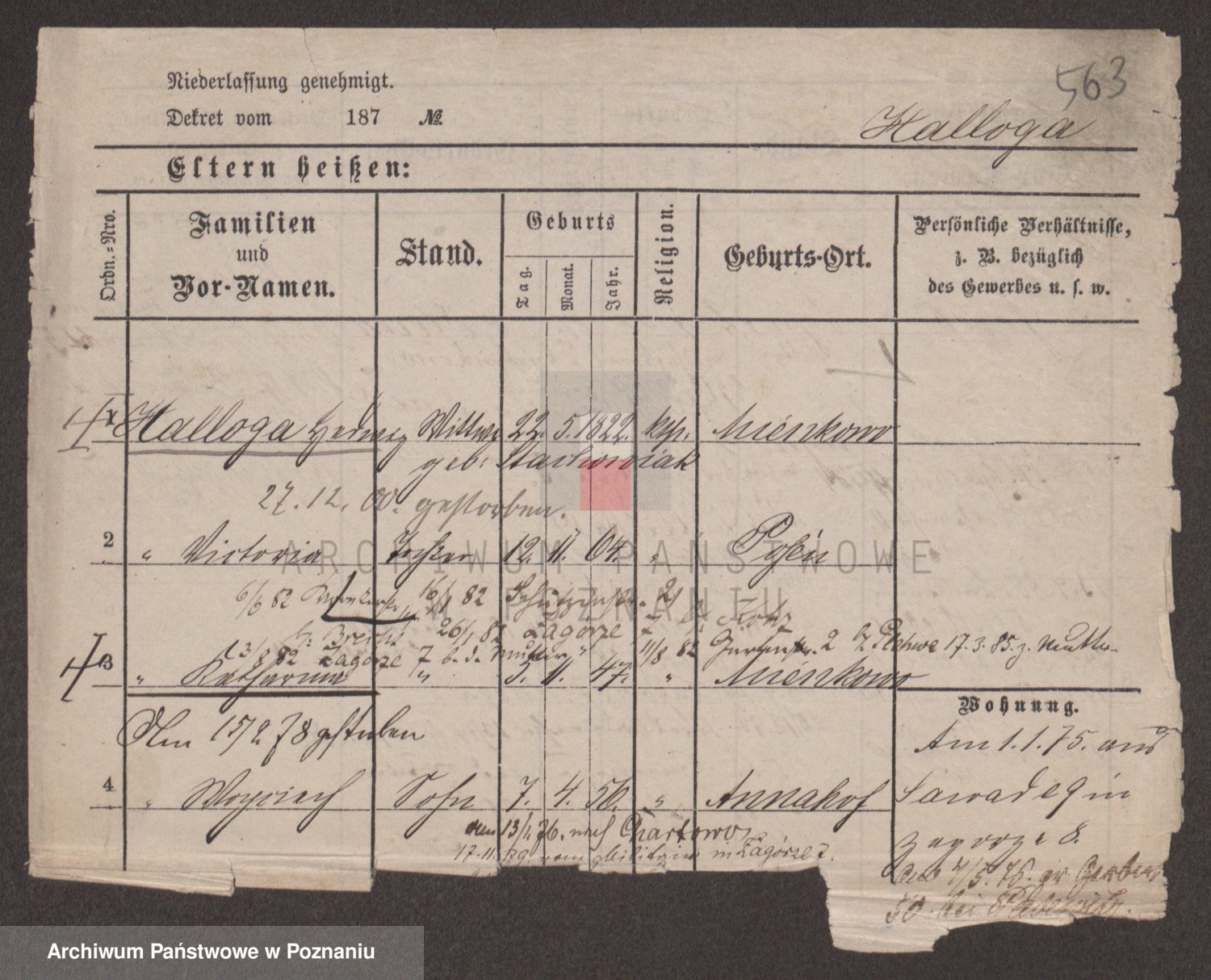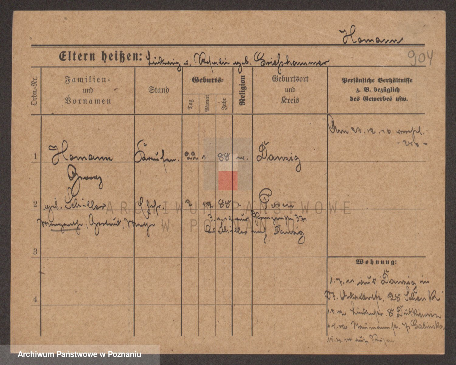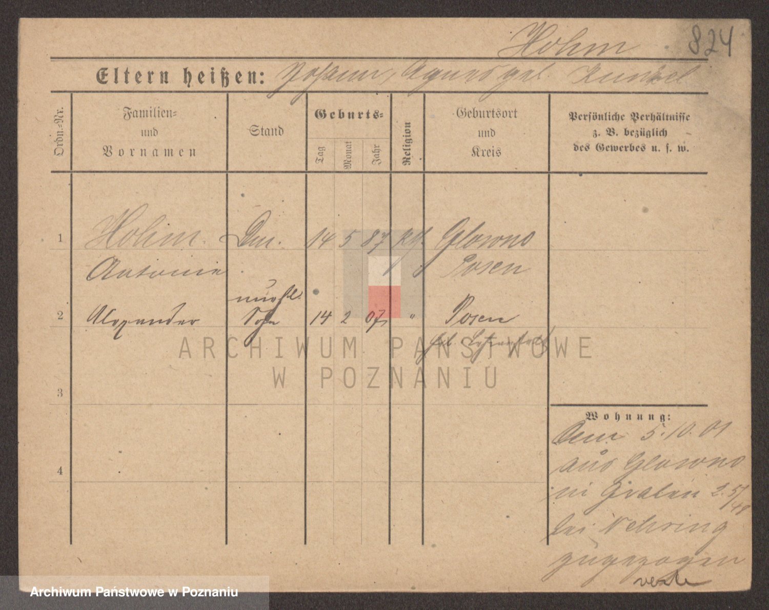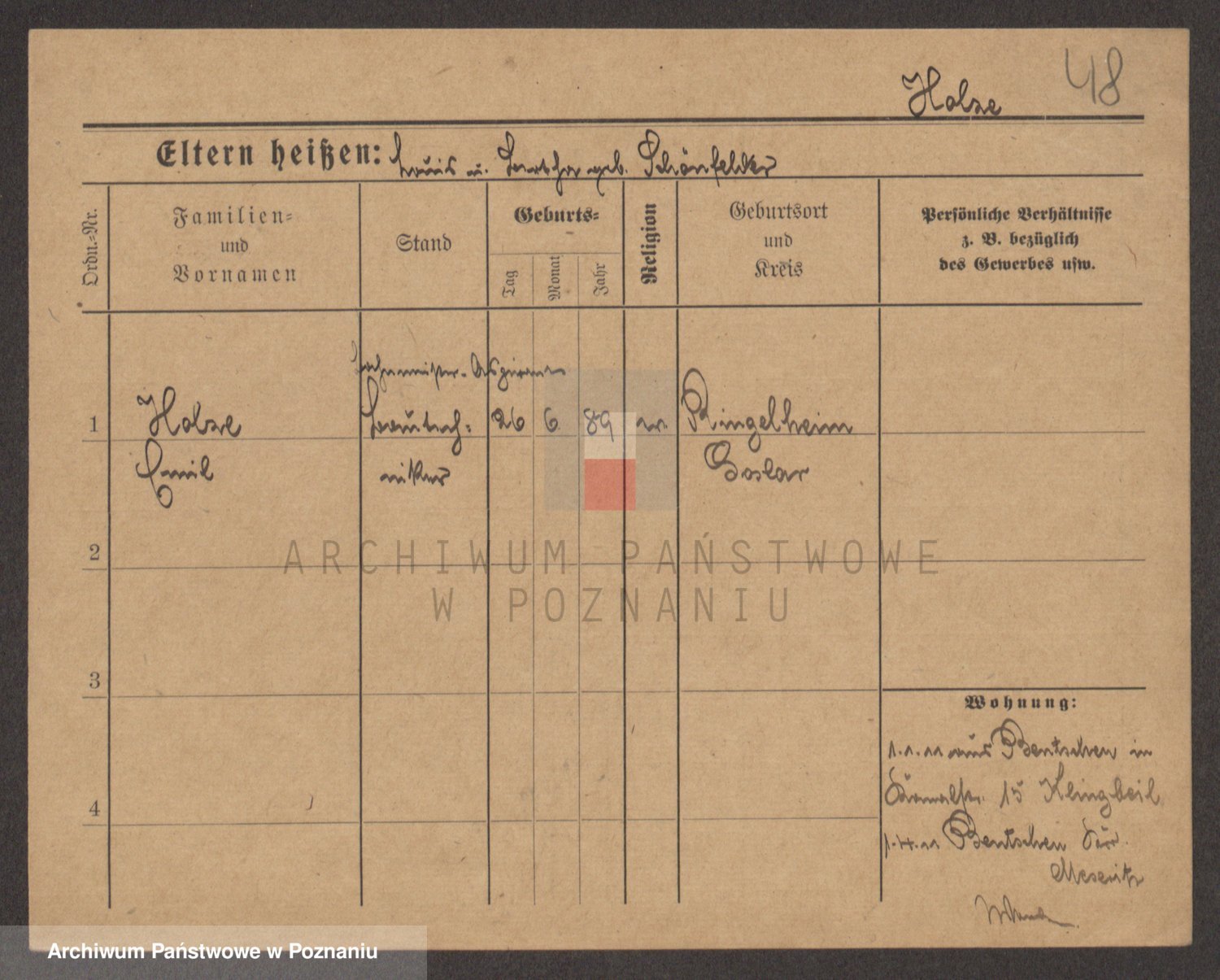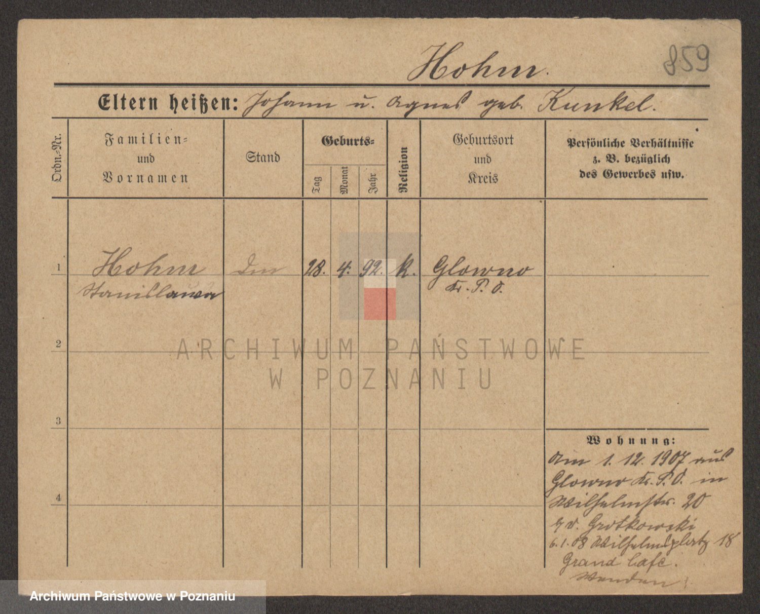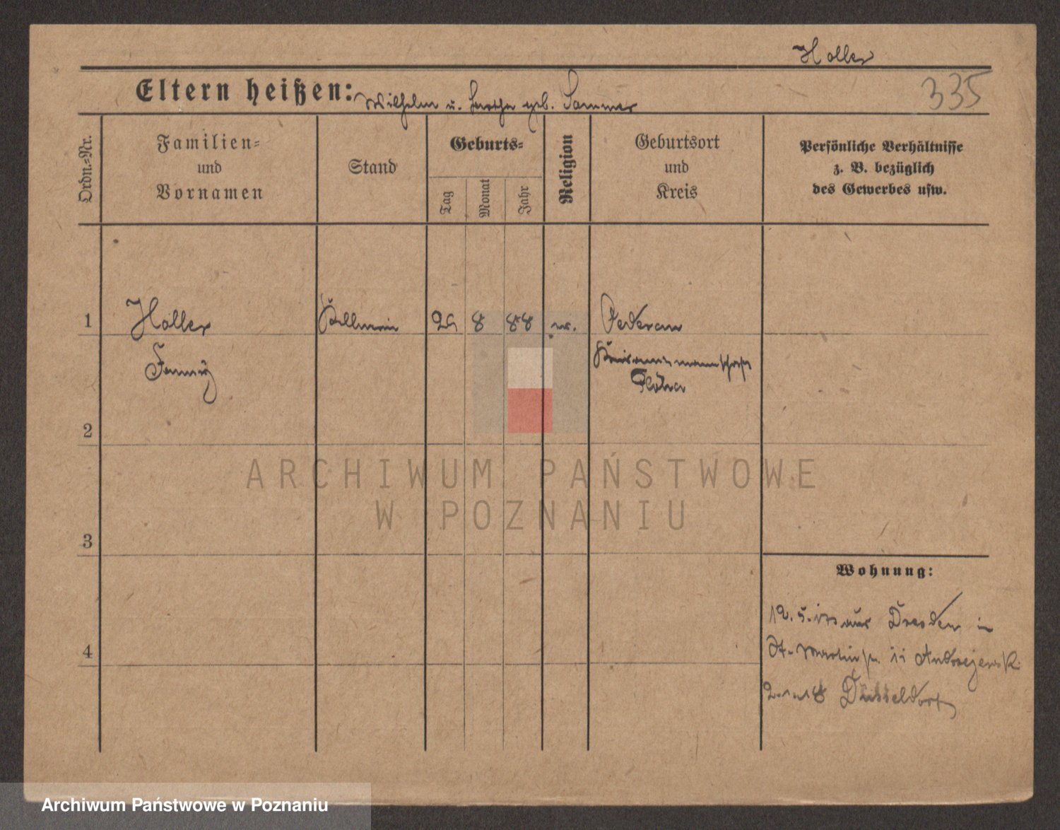 Podgląd karty osobowej dostępny jest po kliknięciu na nazwisko lub ikonkę karty. Można dokonywać powiększenia (ikony na górze) lub przechodzić między kolejnymi skanami (strzałki po bokach).