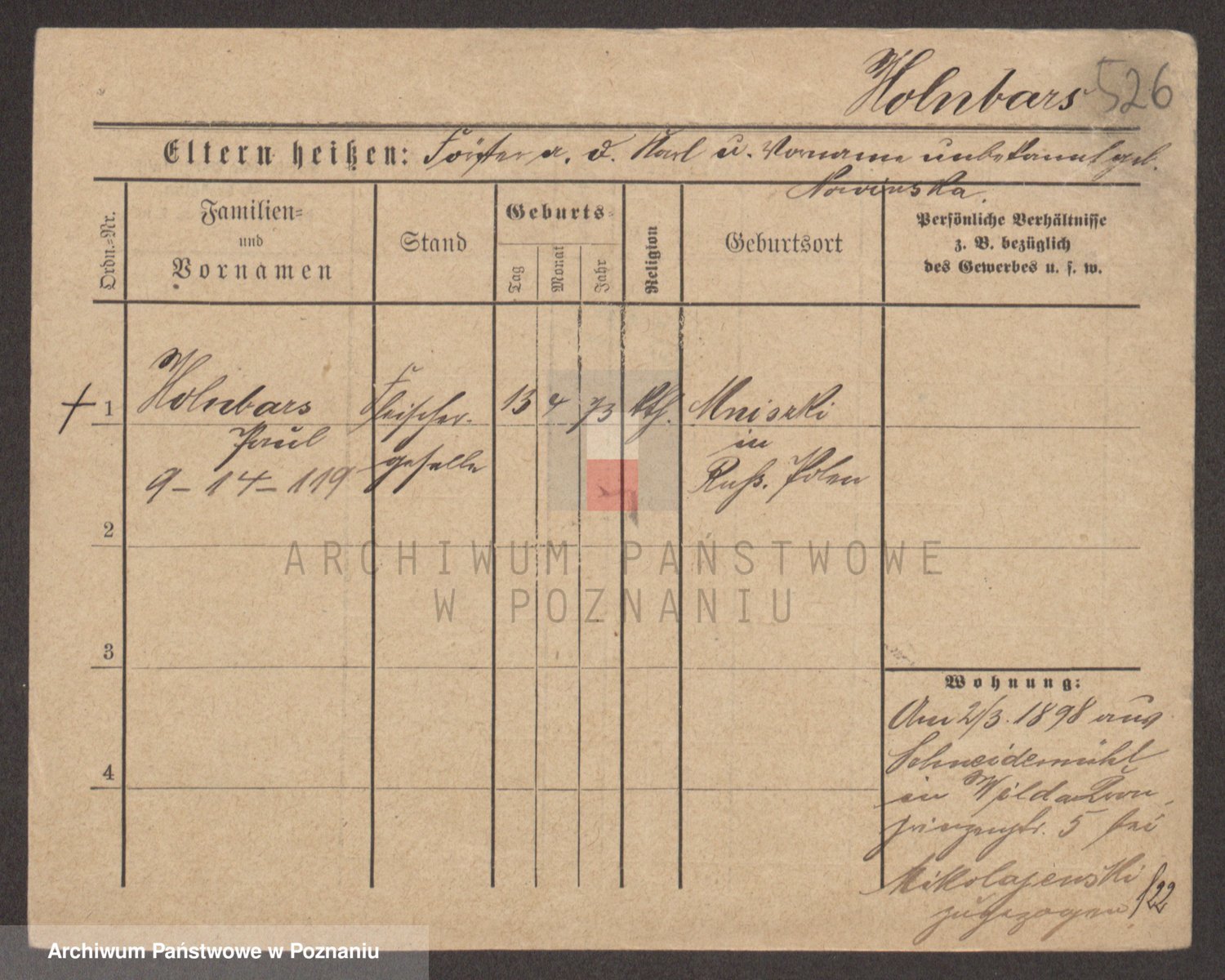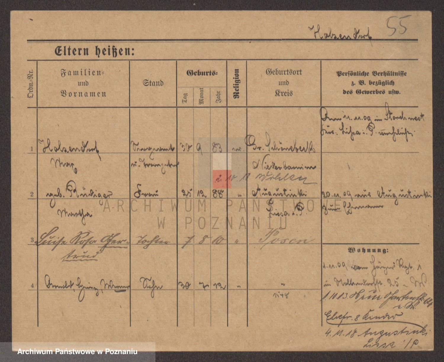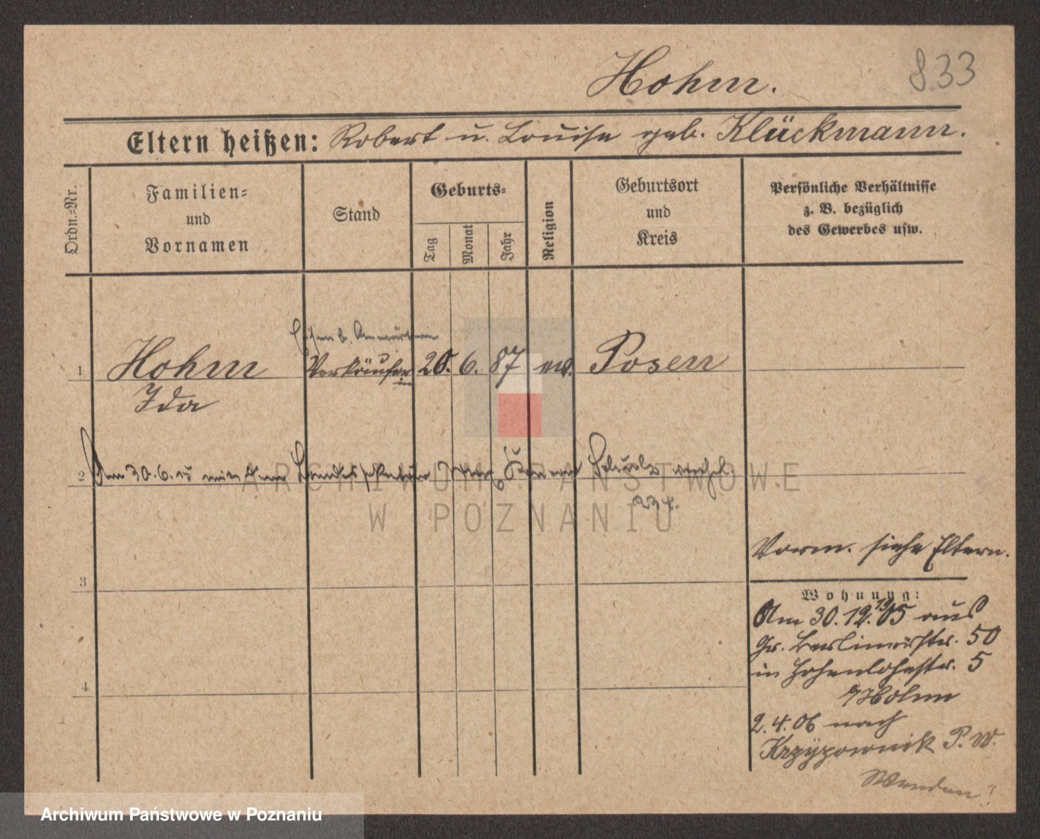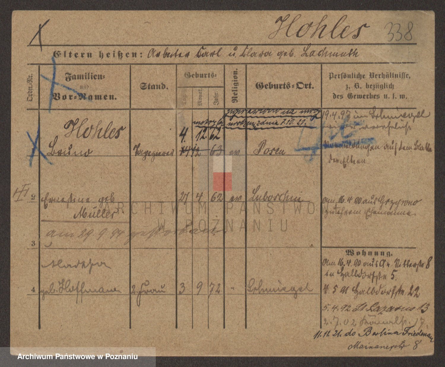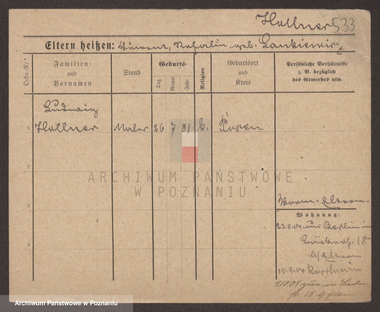 Podgląd karty osobowej dostępny jest po kliknięciu na nazwisko lub ikonkę karty. Można dokonywać powiększenia (ikony na górze) lub przechodzić między kolejnymi skanami (strzałki po bokach).