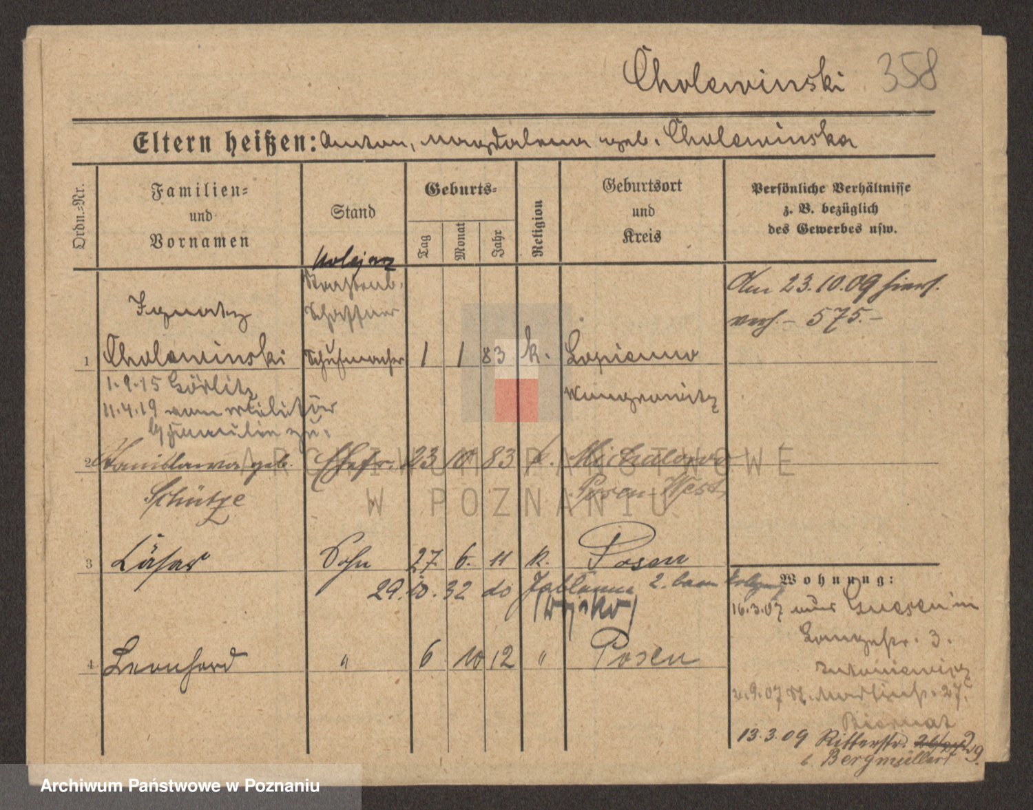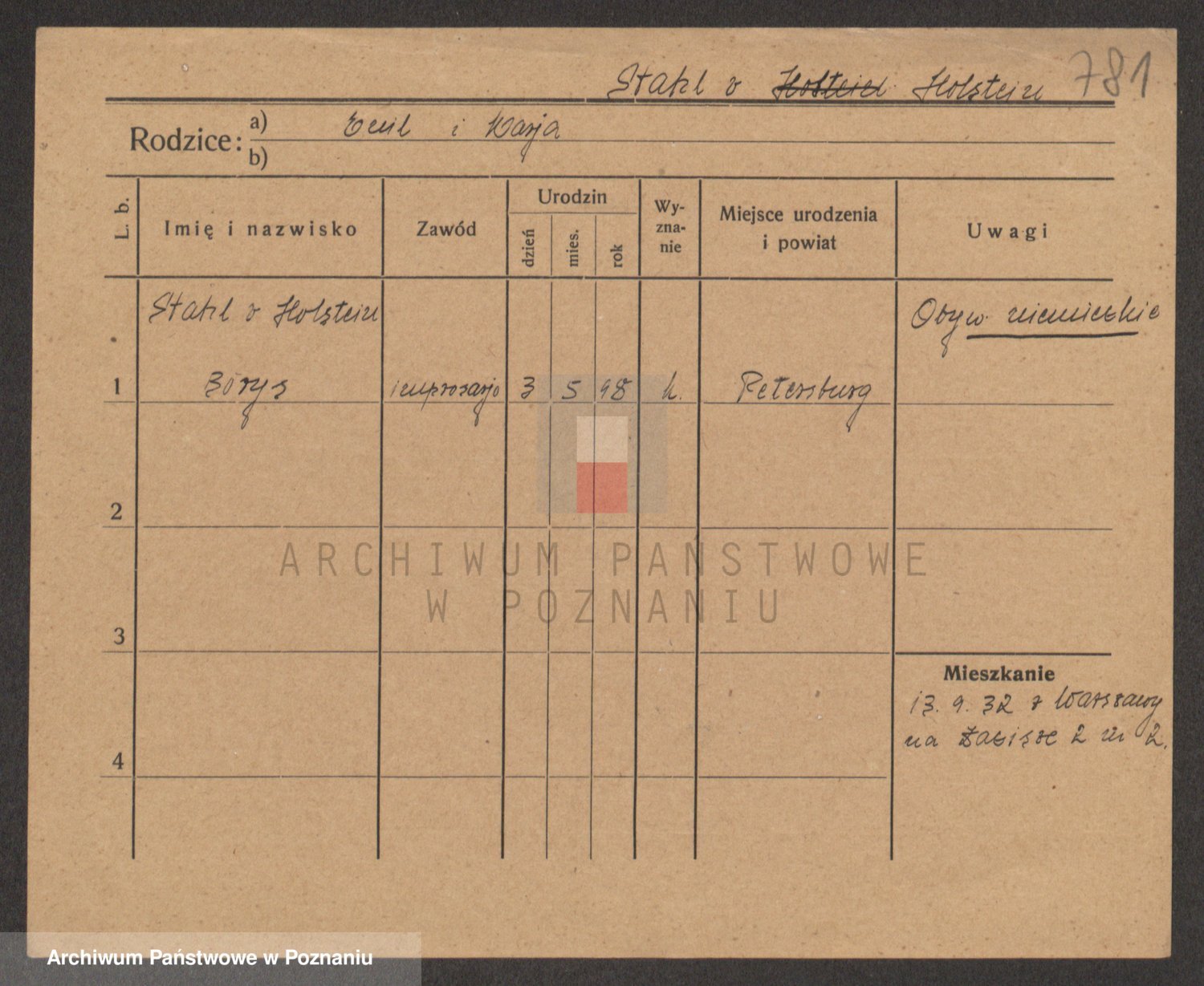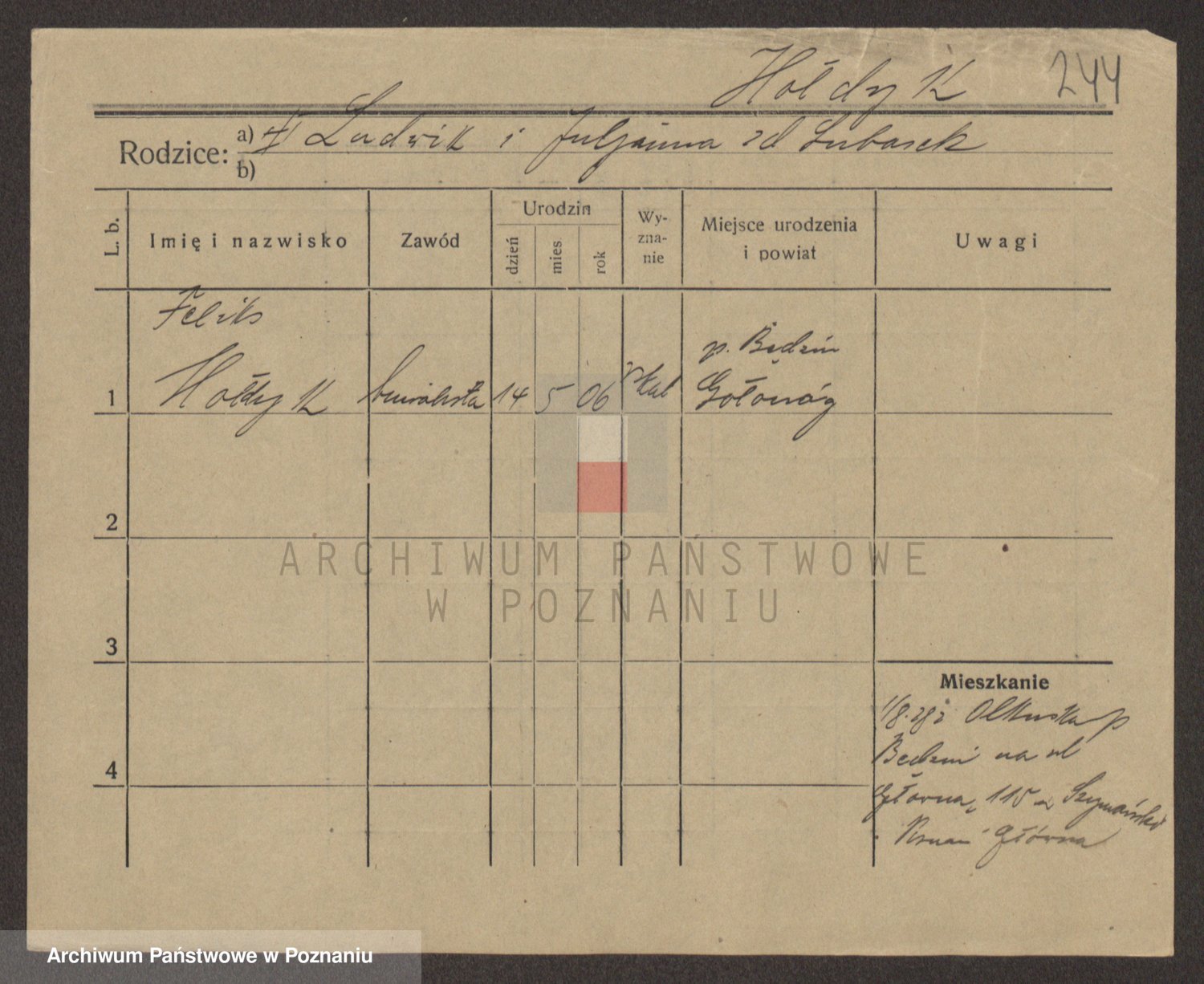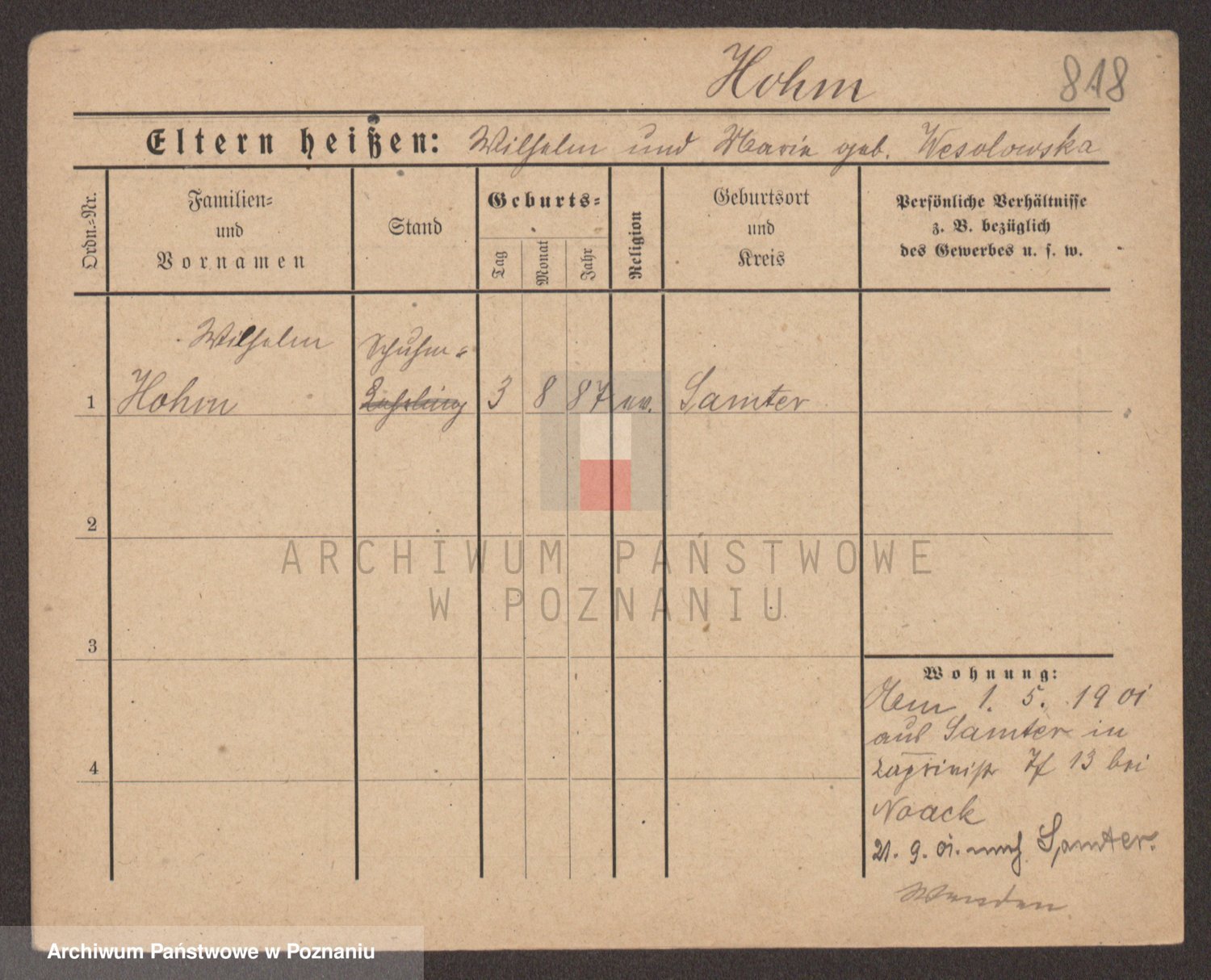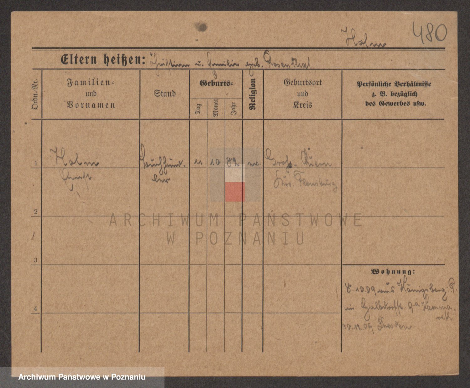 Podgląd karty osobowej dostępny jest po kliknięciu na nazwisko lub ikonkę karty. Można dokonywać powiększenia (ikony na górze) lub przechodzić między kolejnymi skanami (strzałki po bokach).
