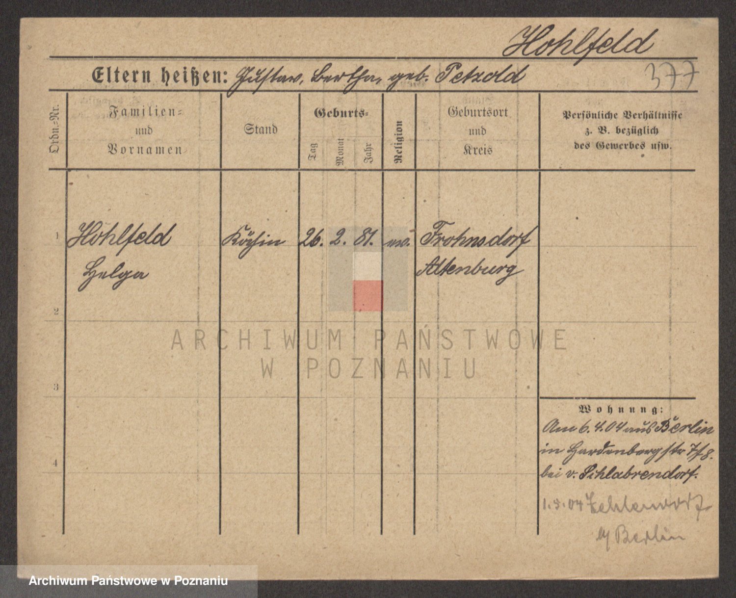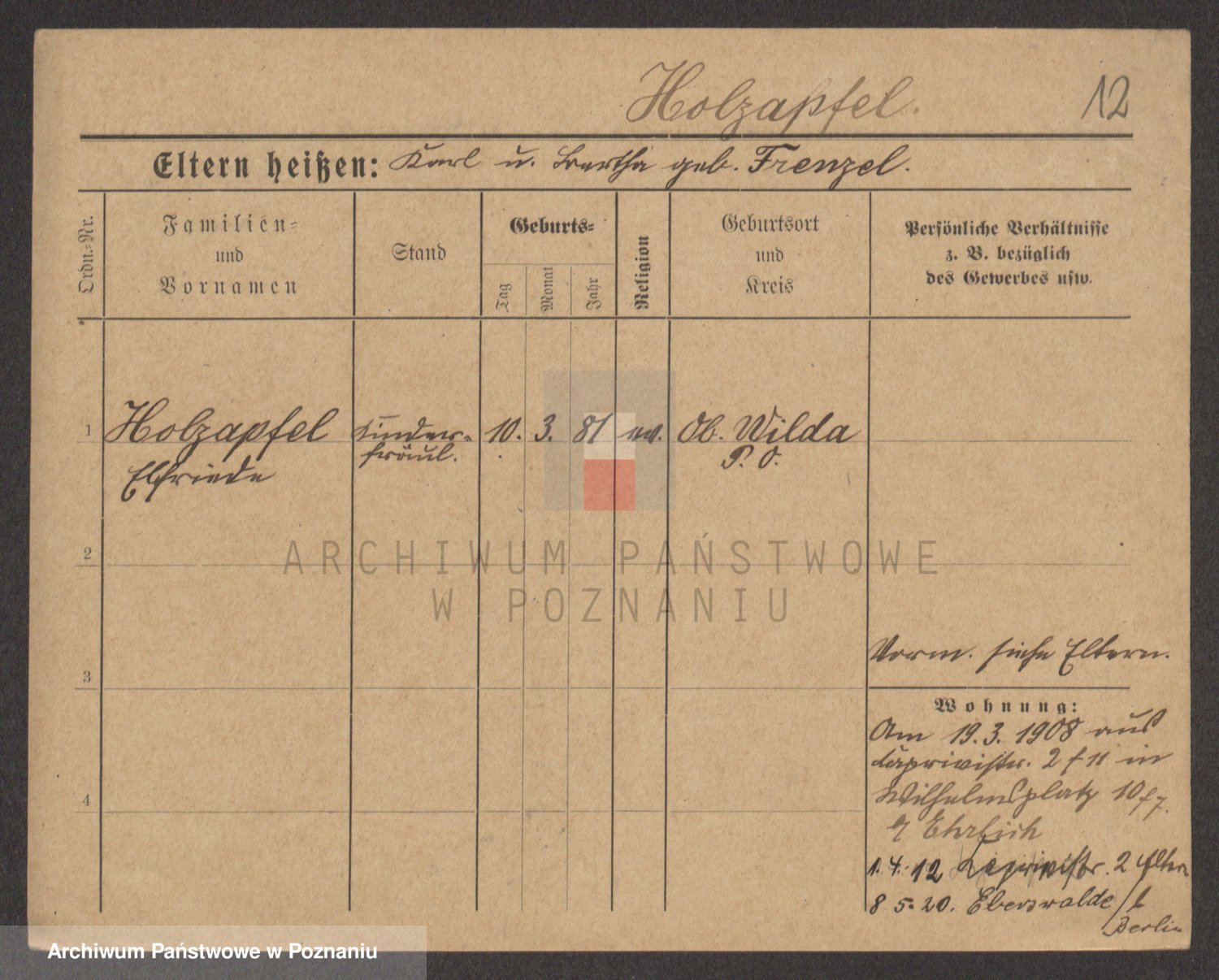 Holzapfel z d. Frenzel, Bertha