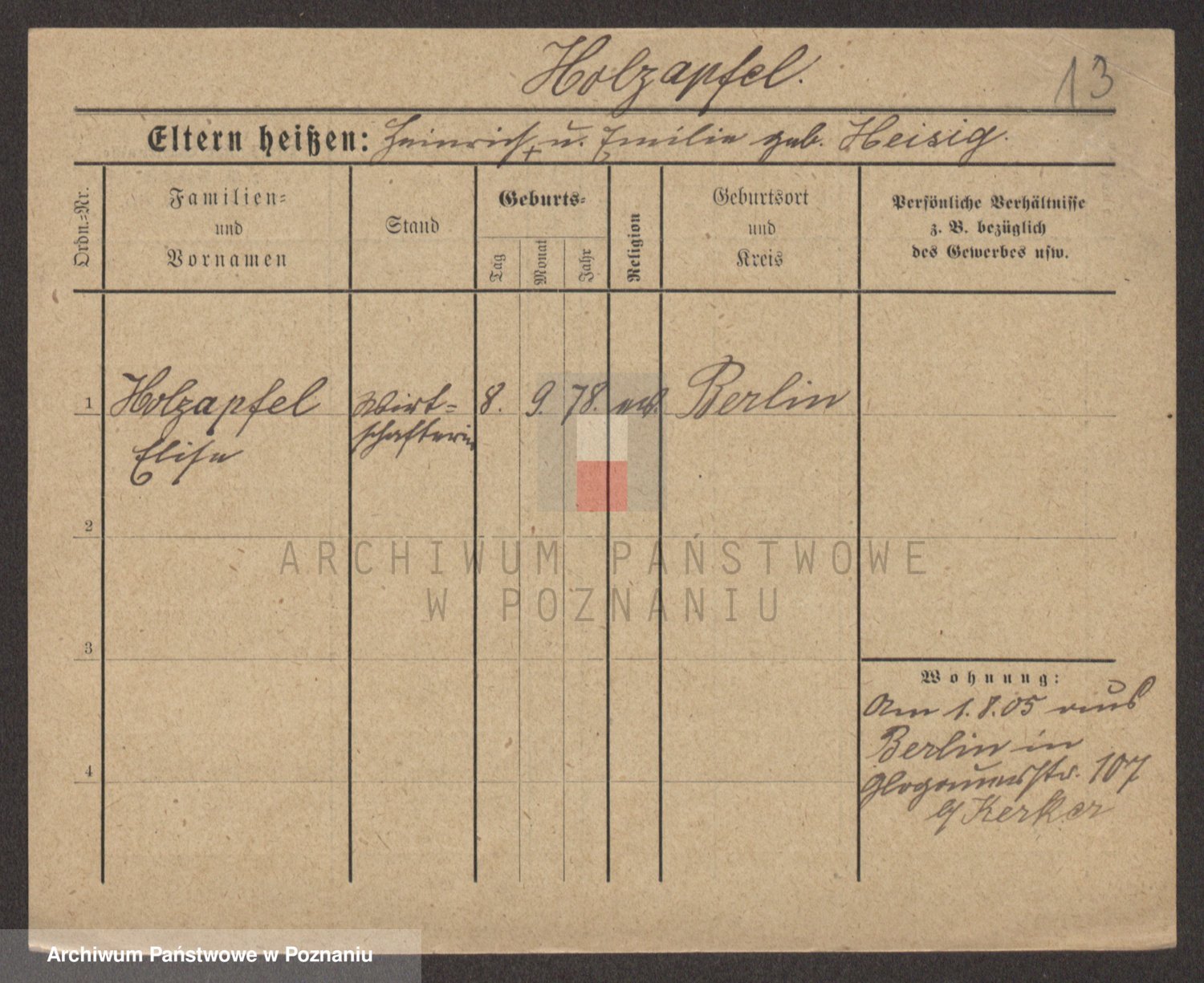 Holzapfel z d. Grzynow, Elisa Noemy