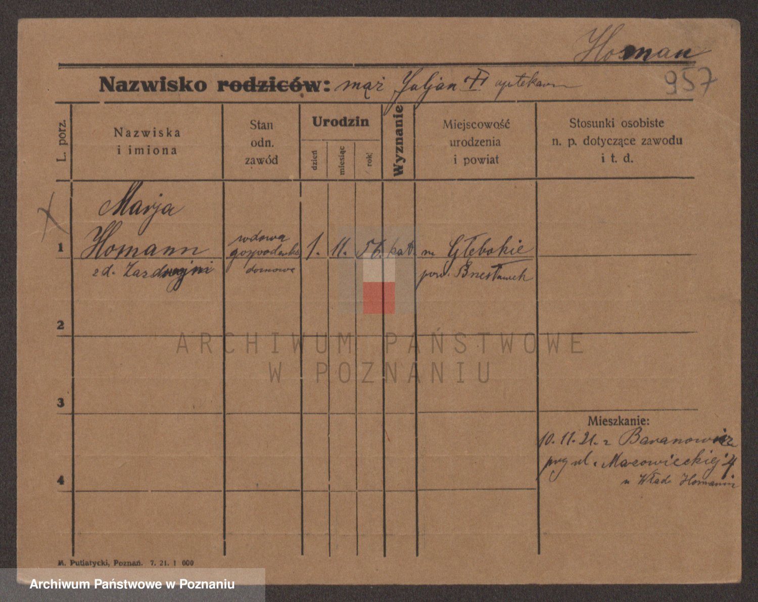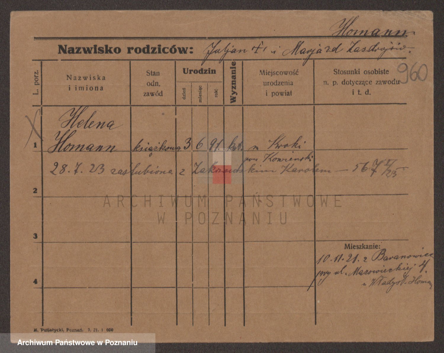 Homann z d. Zazdroj?, Marja