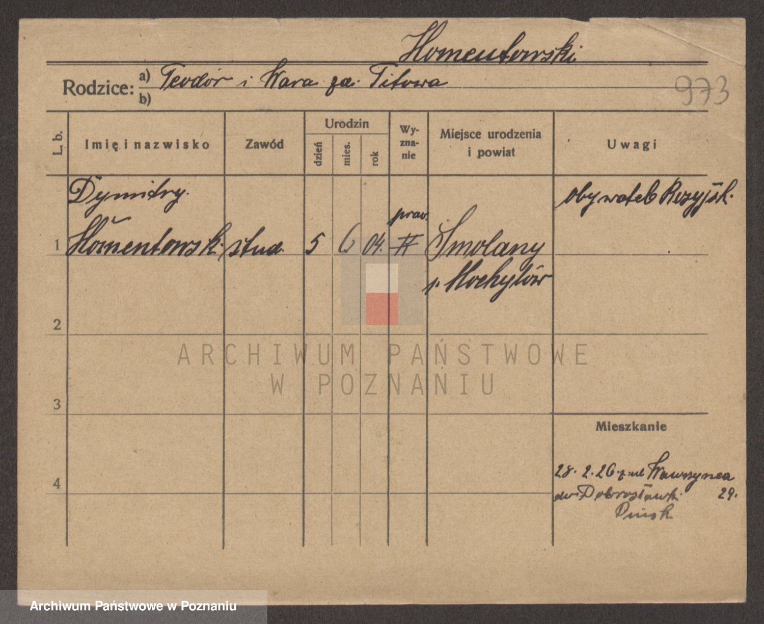 Homentowski, Dymitry