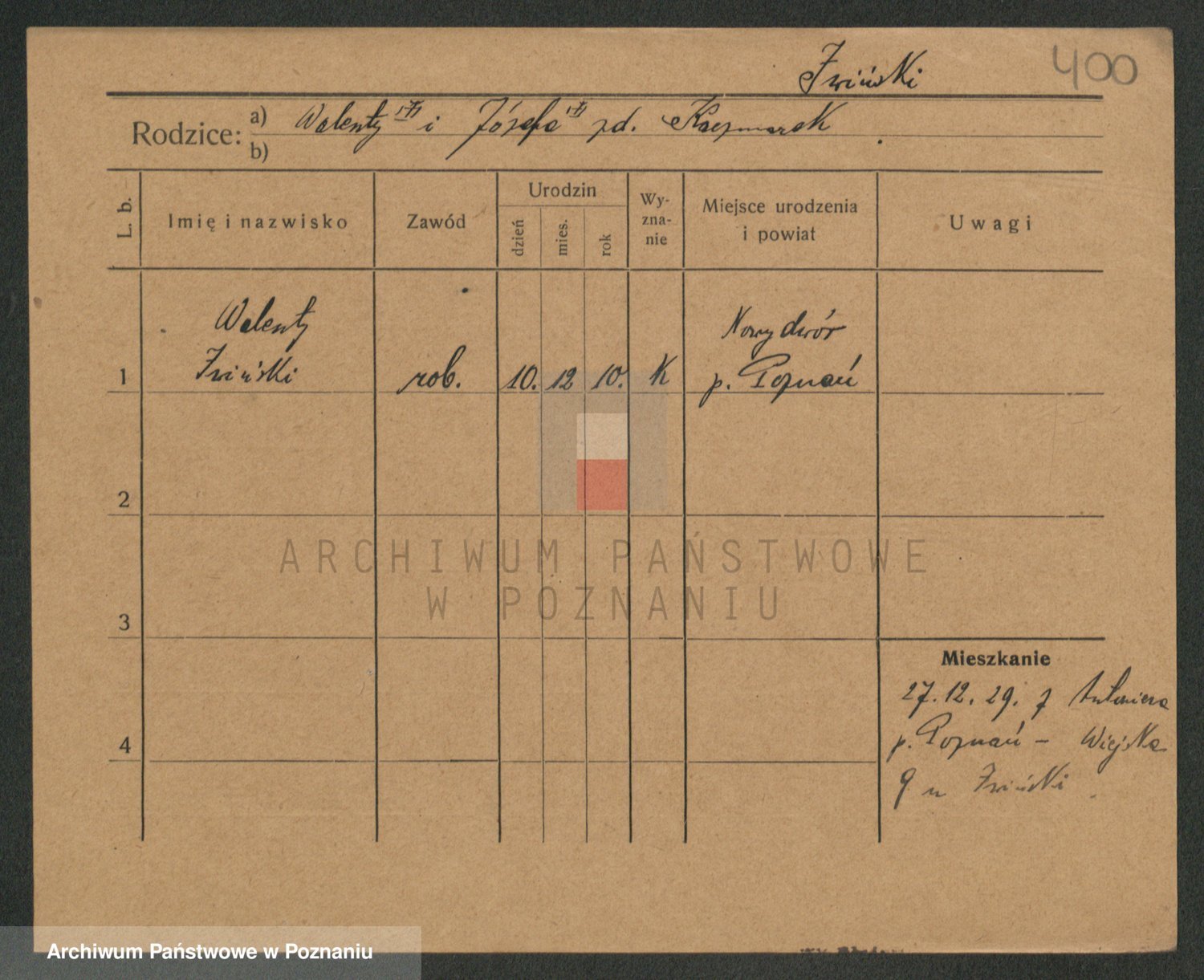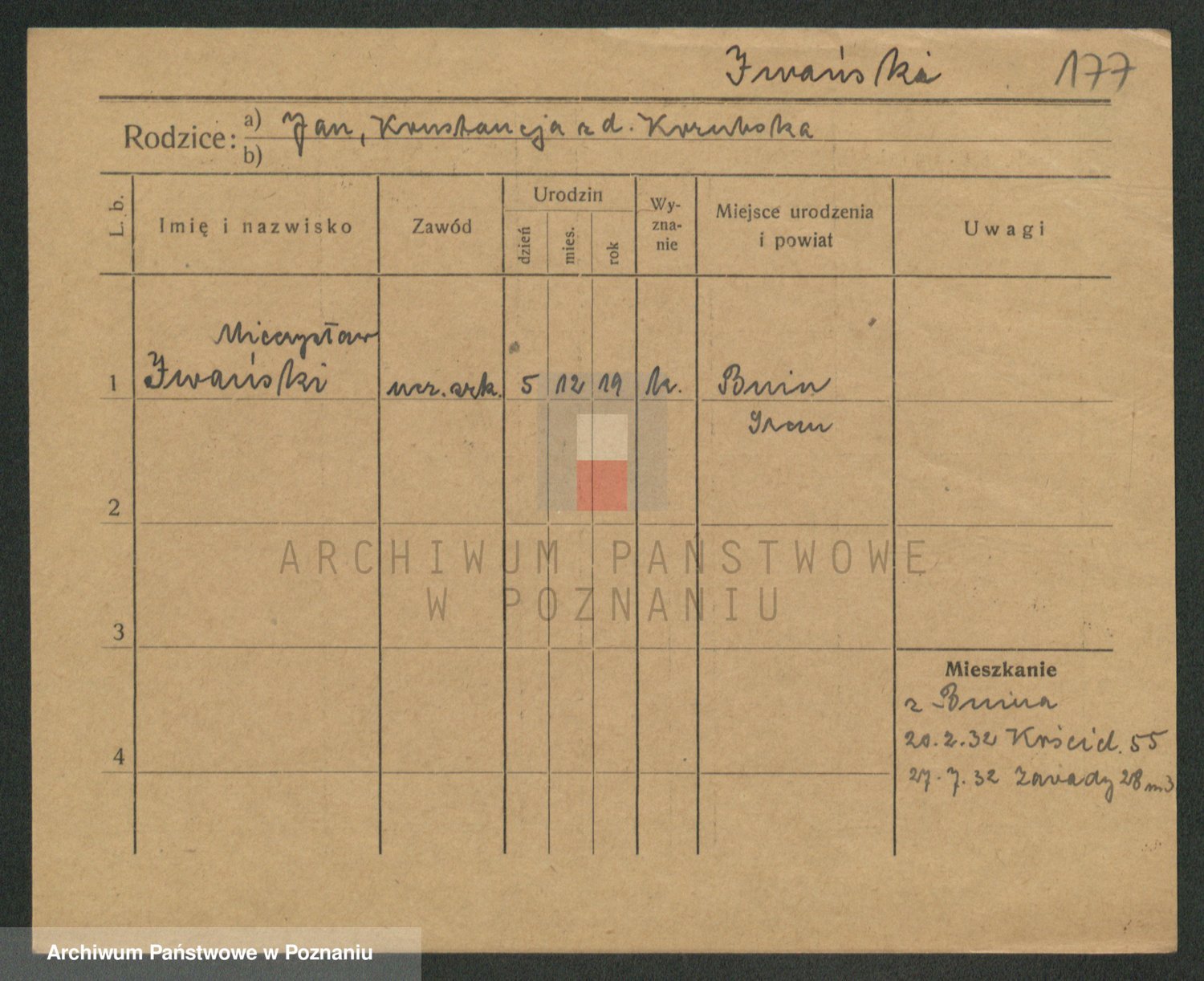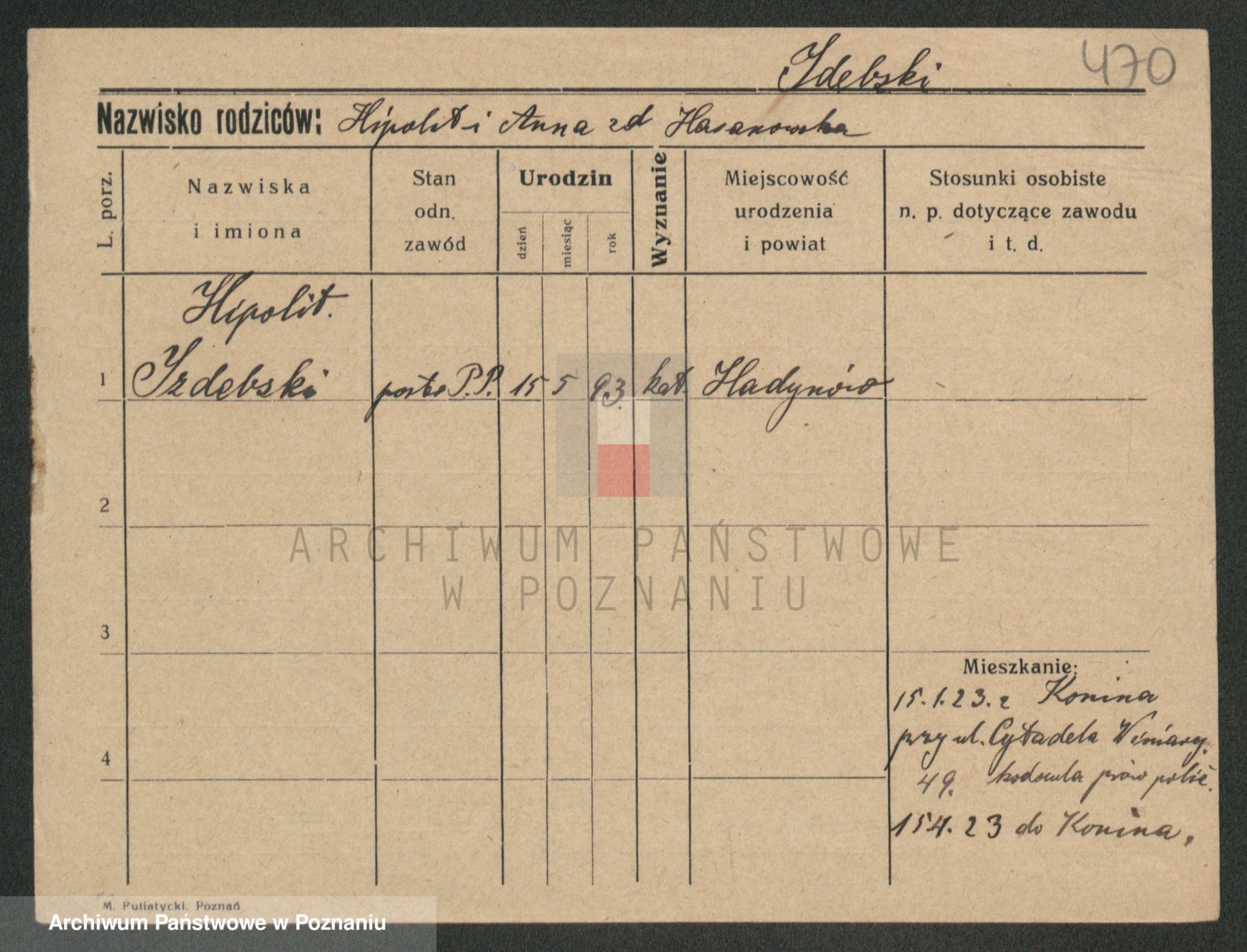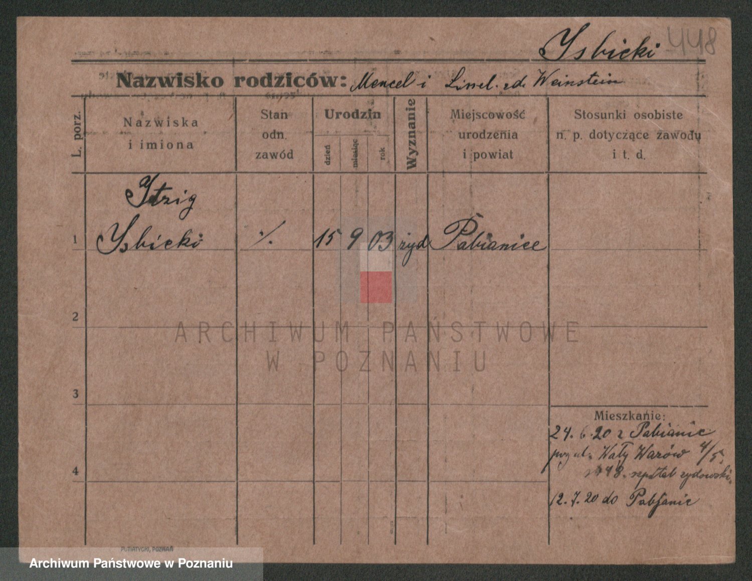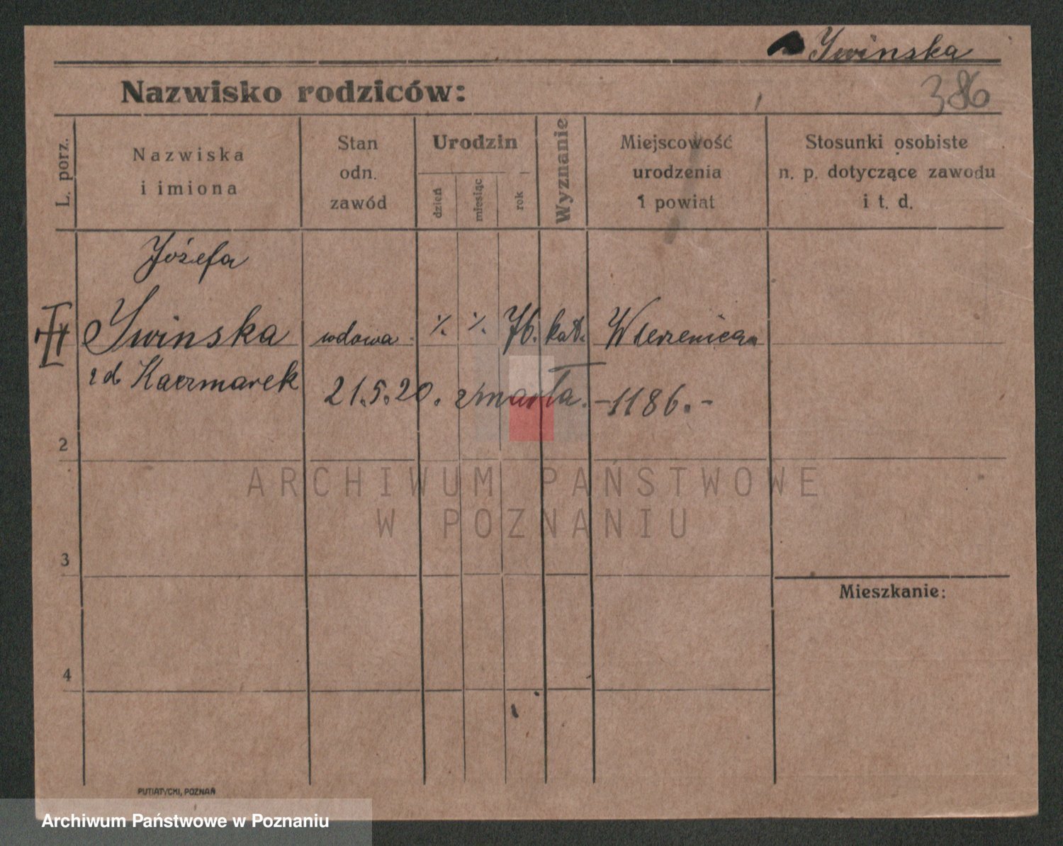 Podgląd karty osobowej dostępny jest po kliknięciu na nazwisko lub ikonkę karty. Można dokonywać powiększenia (ikony na górze) lub przechodzić między kolejnymi skanami (strzałki po bokach).