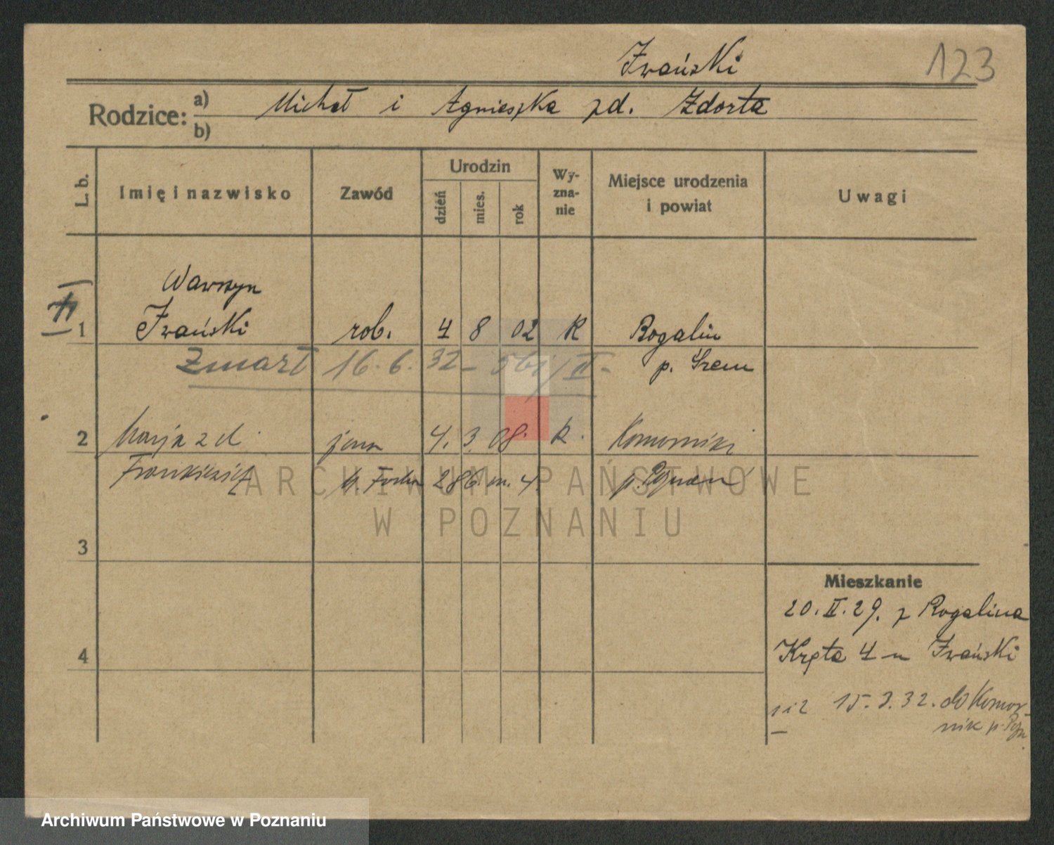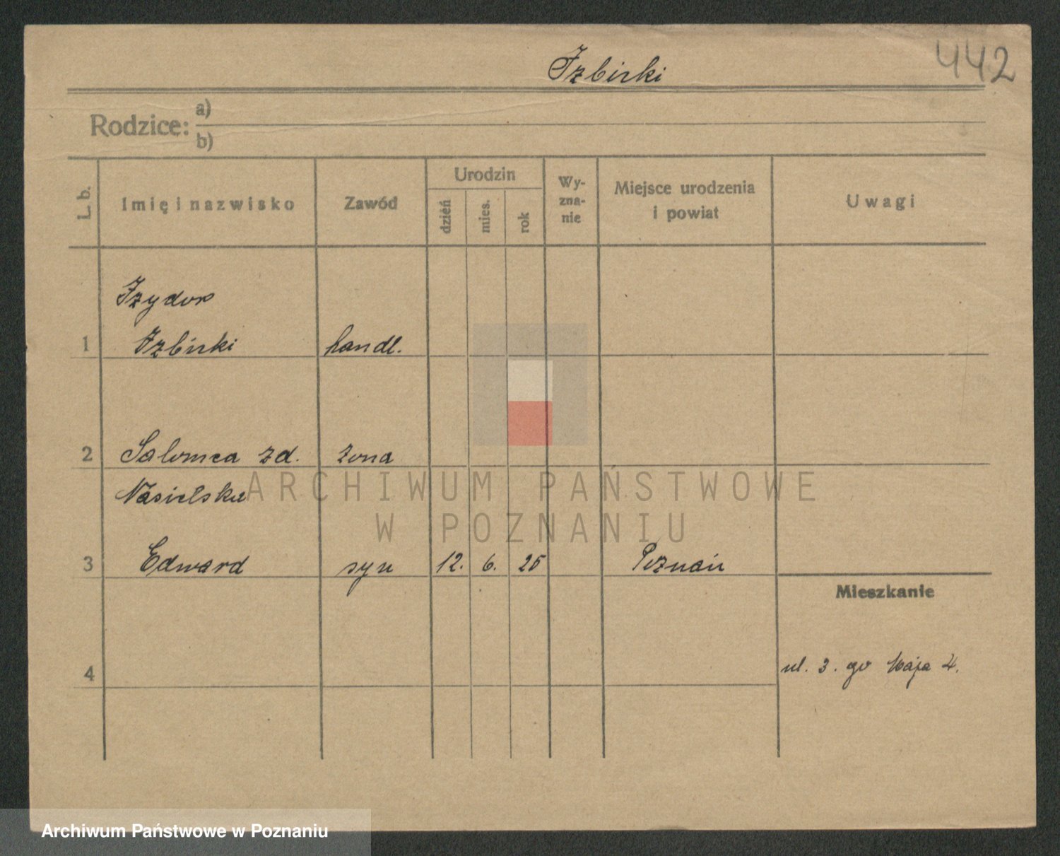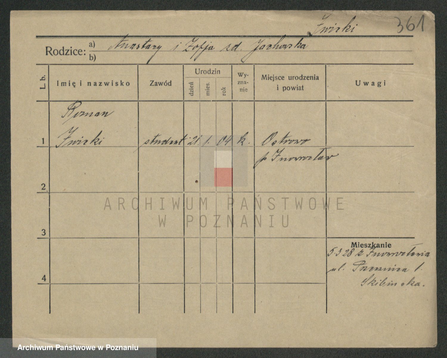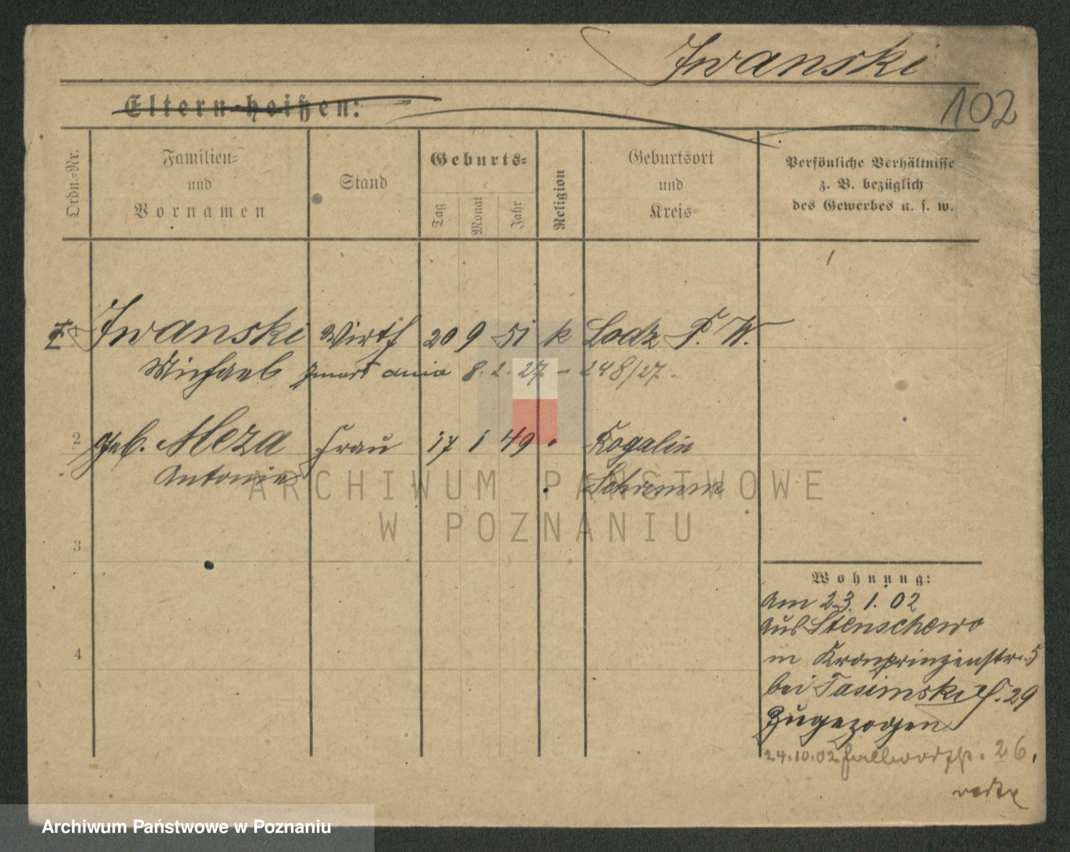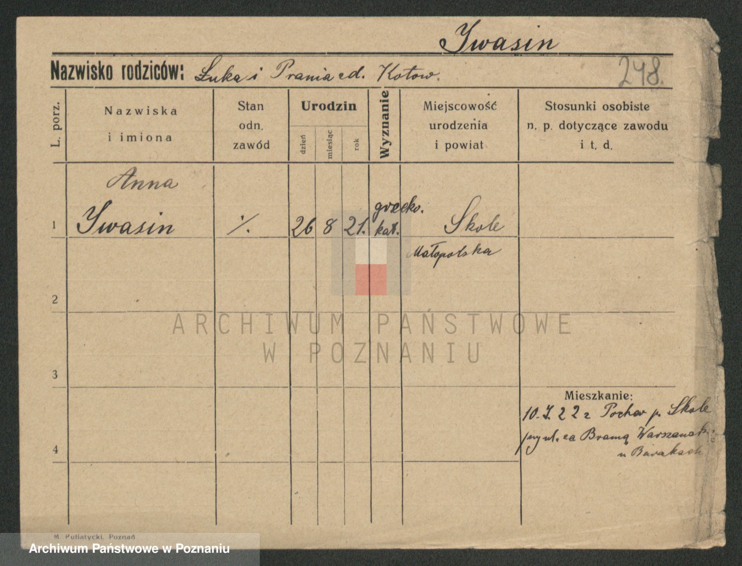 Podgląd karty osobowej dostępny jest po kliknięciu na nazwisko lub ikonkę karty. Można dokonywać powiększenia (ikony na górze) lub przechodzić między kolejnymi skanami (strzałki po bokach).