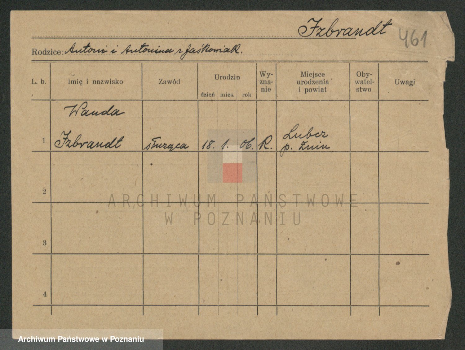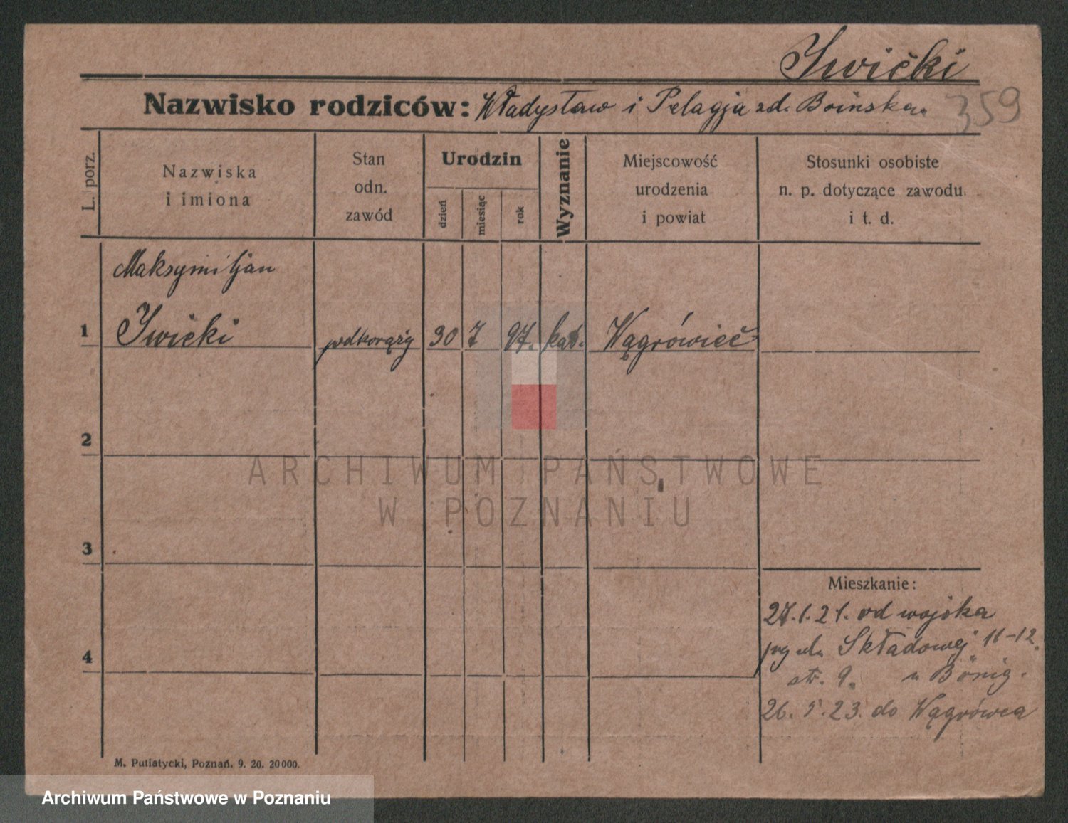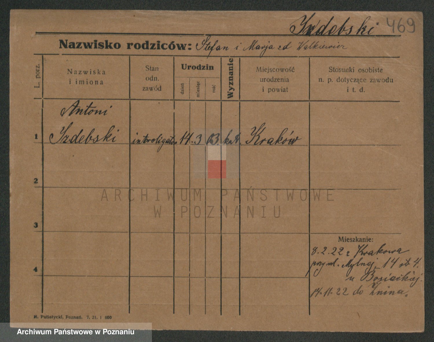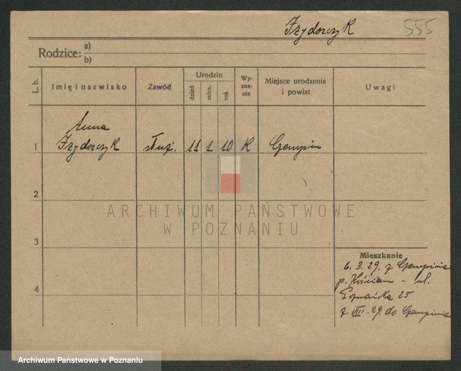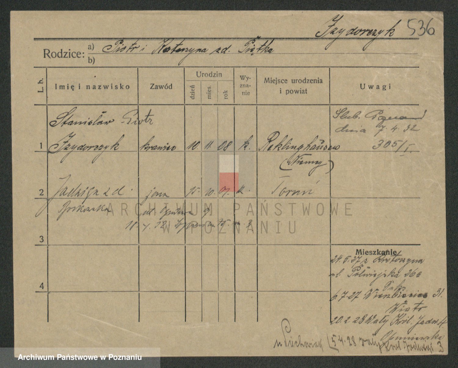 Podgląd karty osobowej dostępny jest po kliknięciu na nazwisko lub ikonkę karty. Można dokonywać powiększenia (ikony na górze) lub przechodzić między kolejnymi skanami (strzałki po bokach).