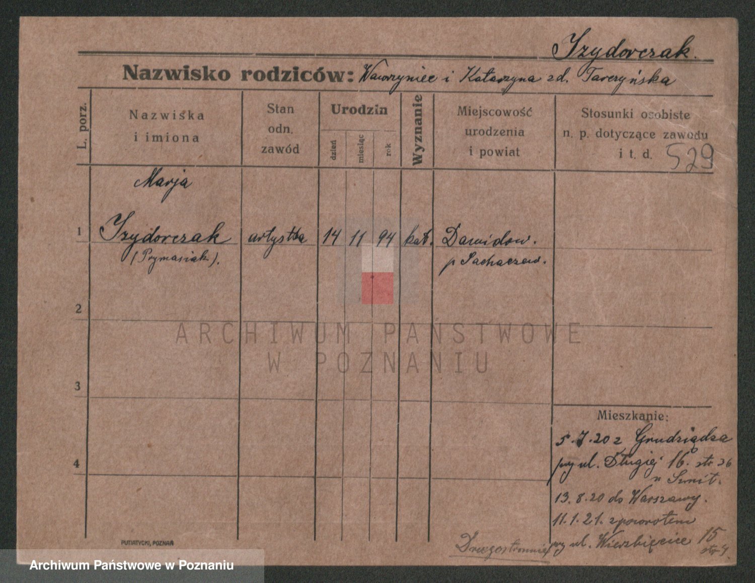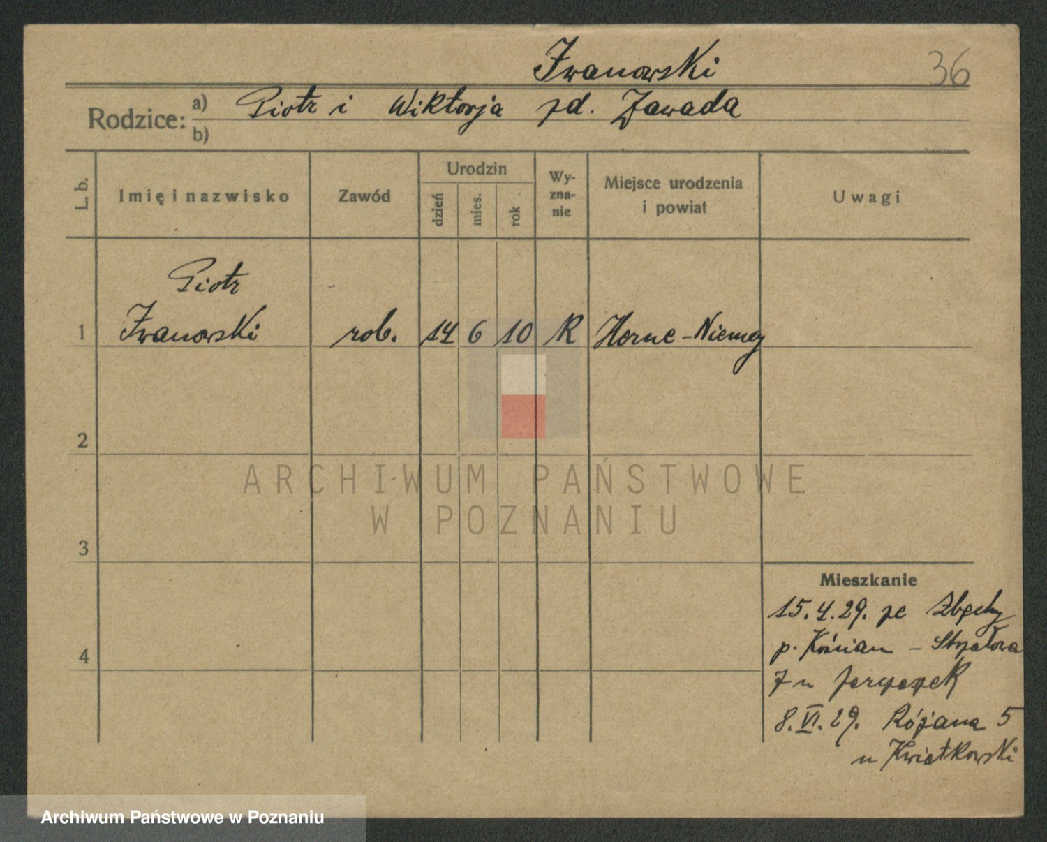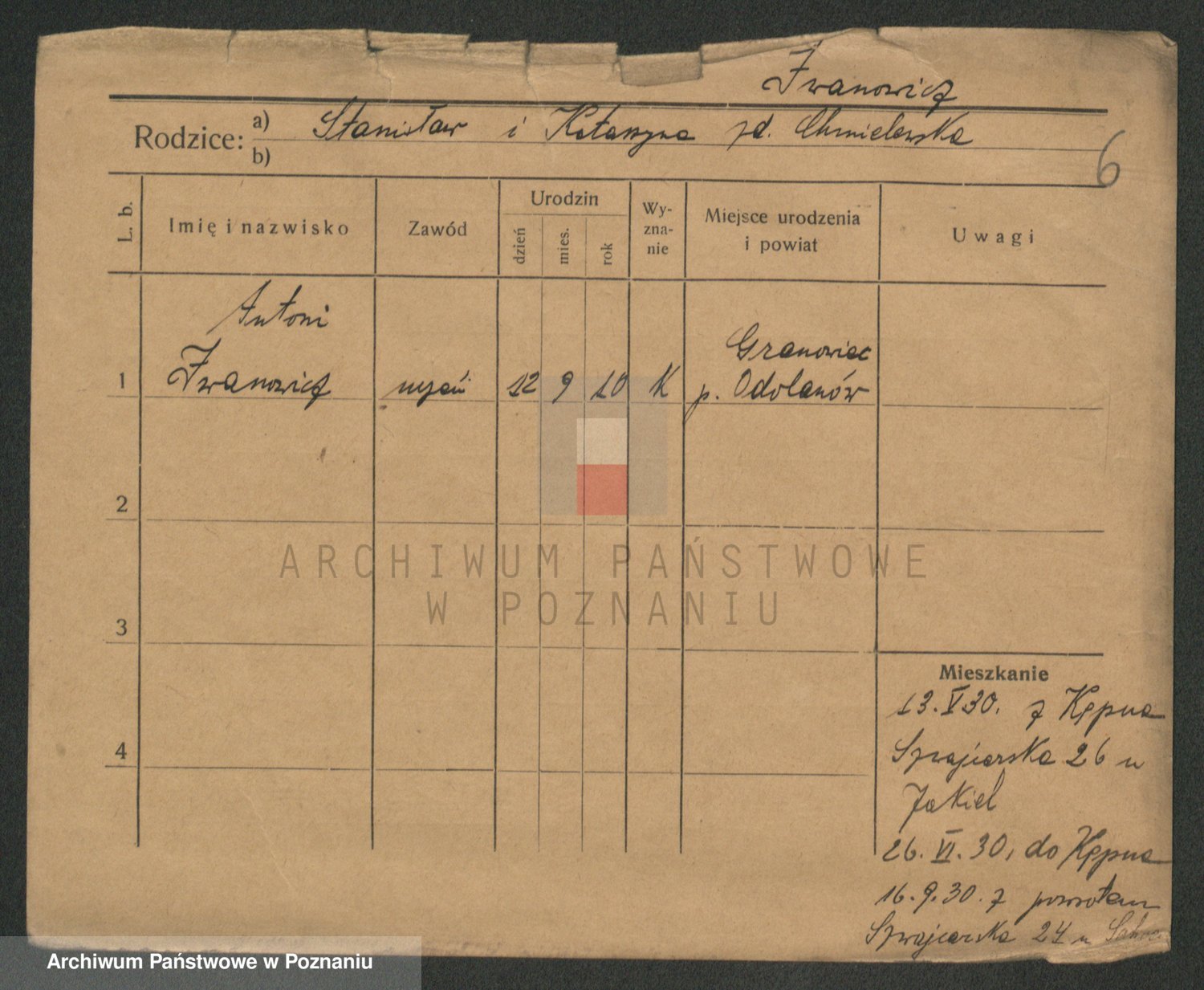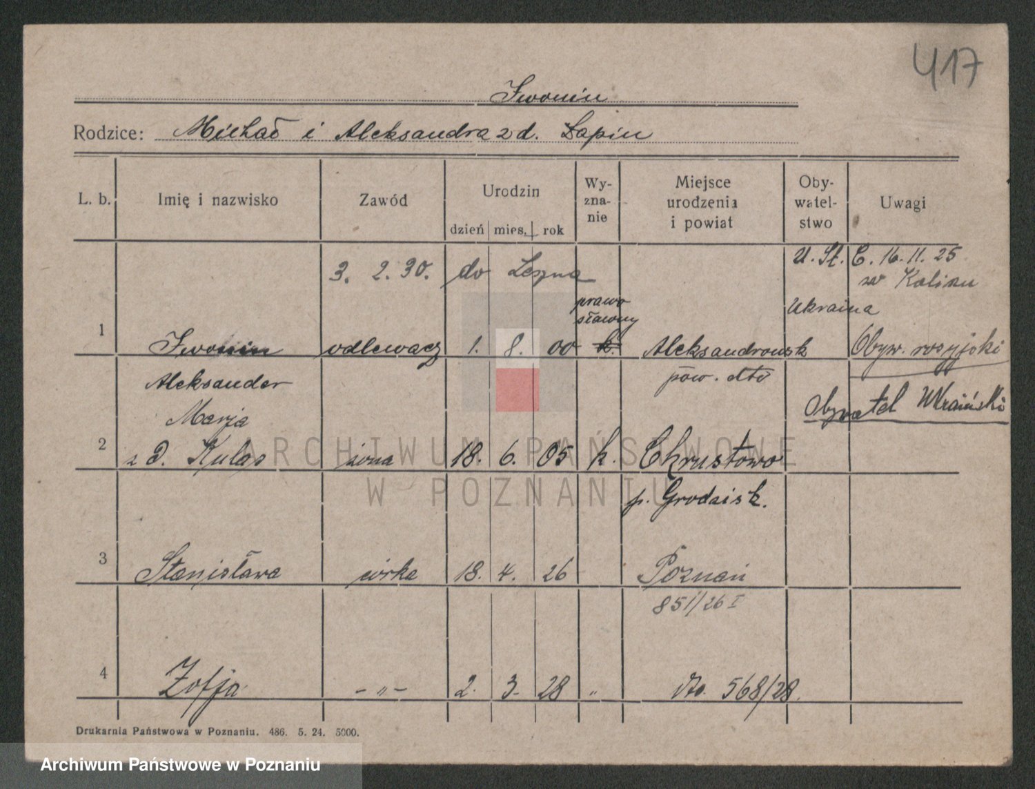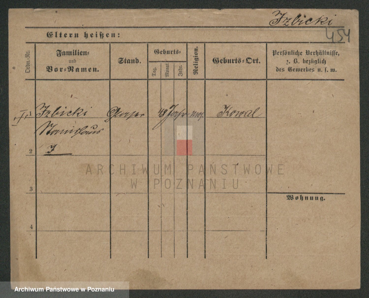 Podgląd karty osobowej dostępny jest po kliknięciu na nazwisko lub ikonkę karty. Można dokonywać powiększenia (ikony na górze) lub przechodzić między kolejnymi skanami (strzałki po bokach).