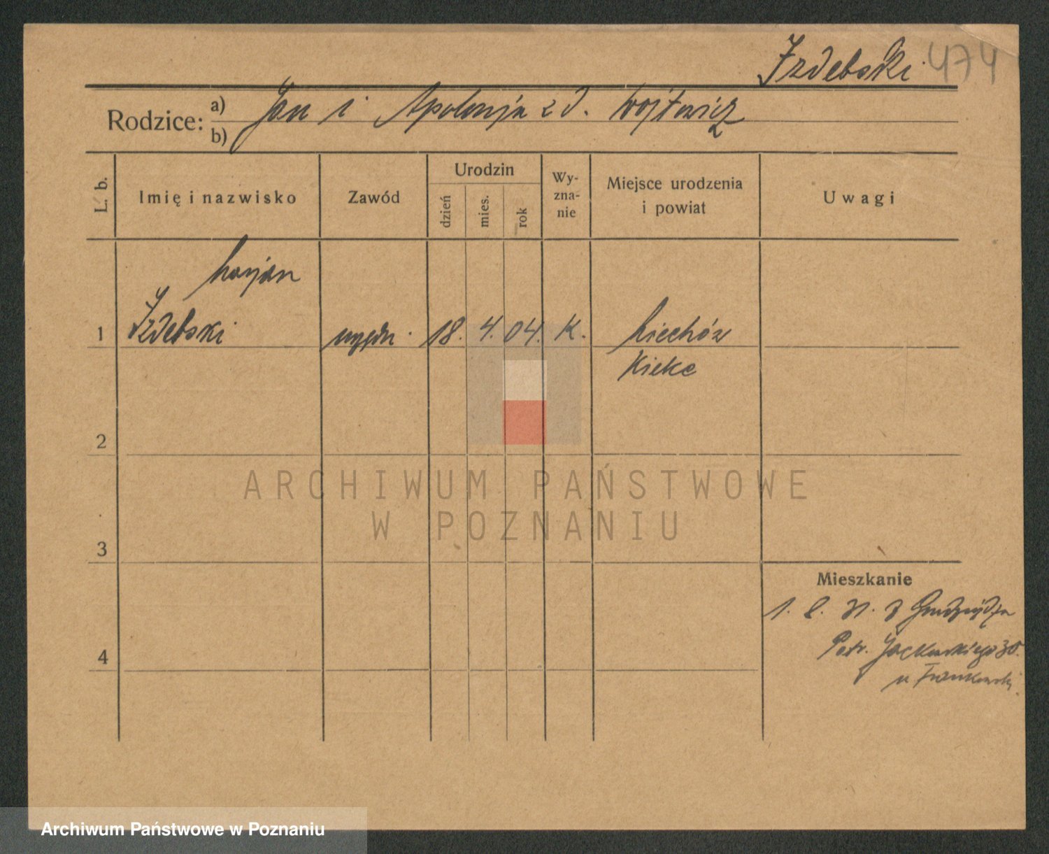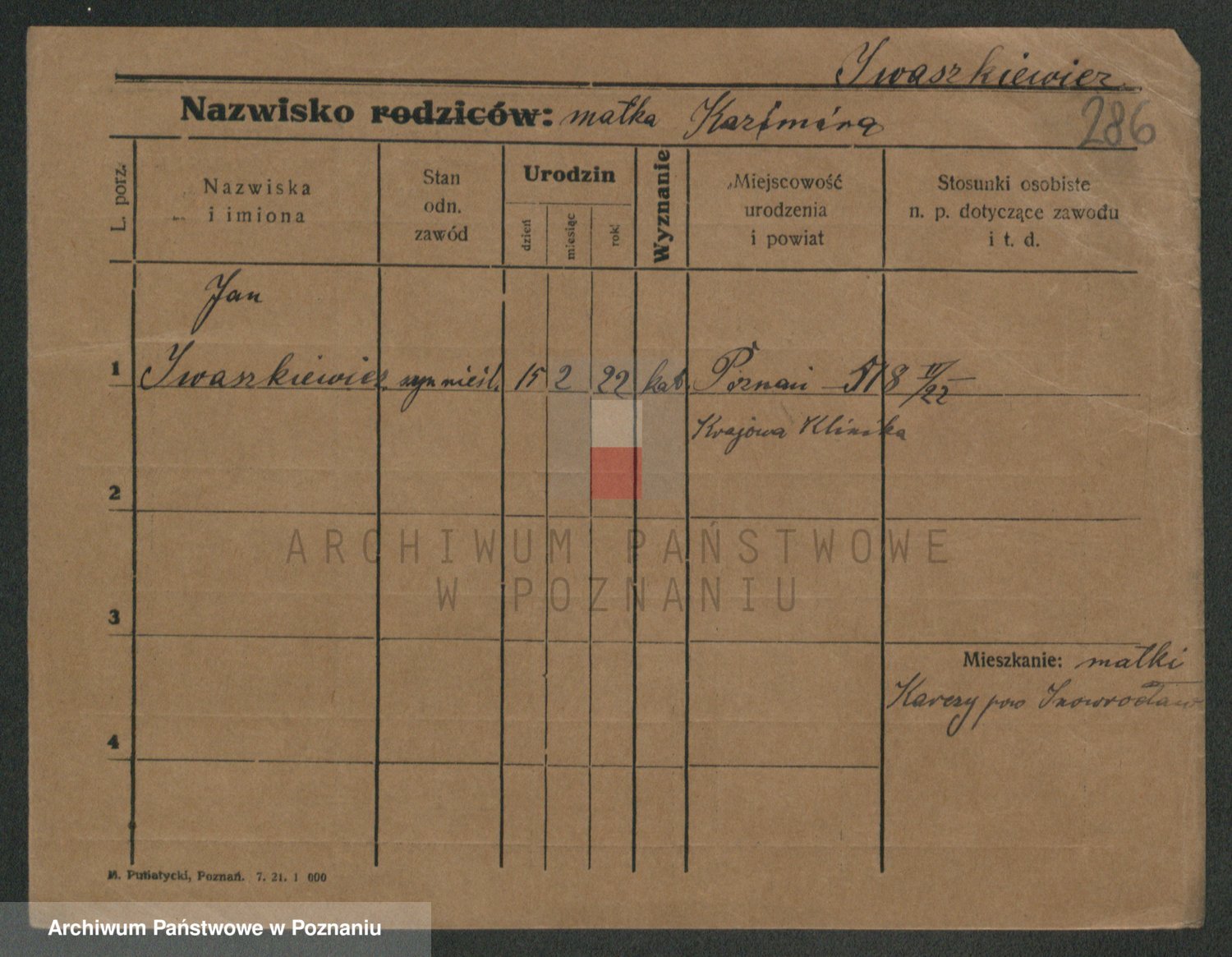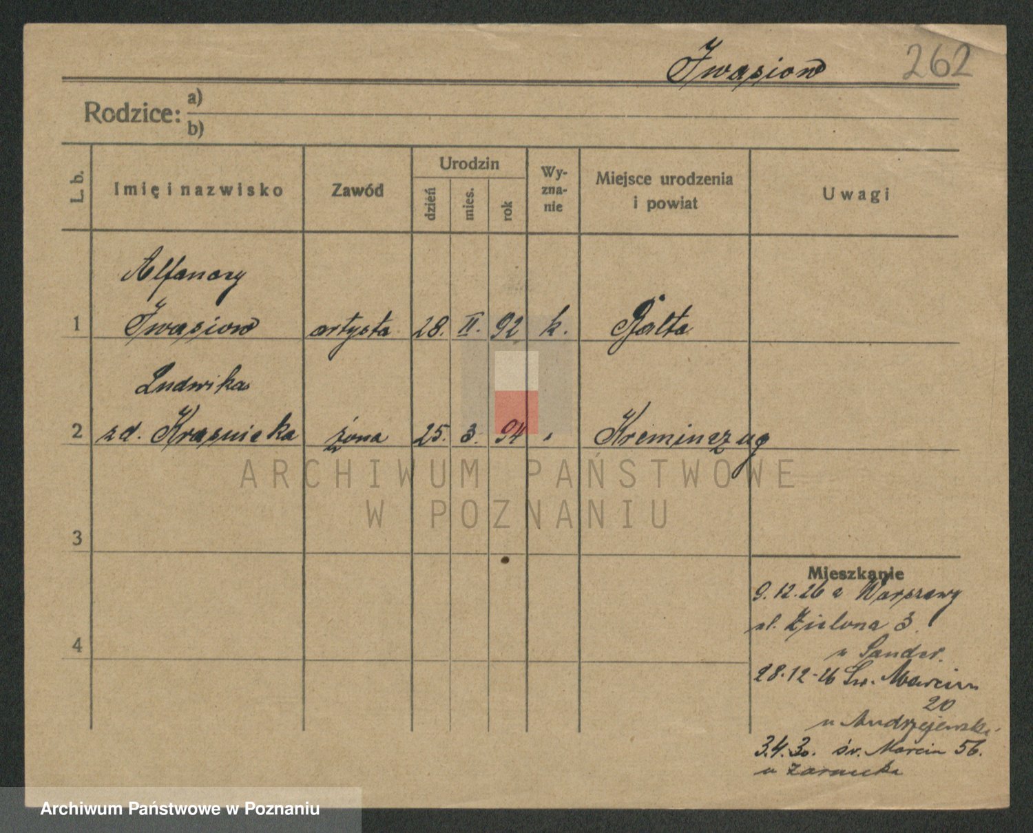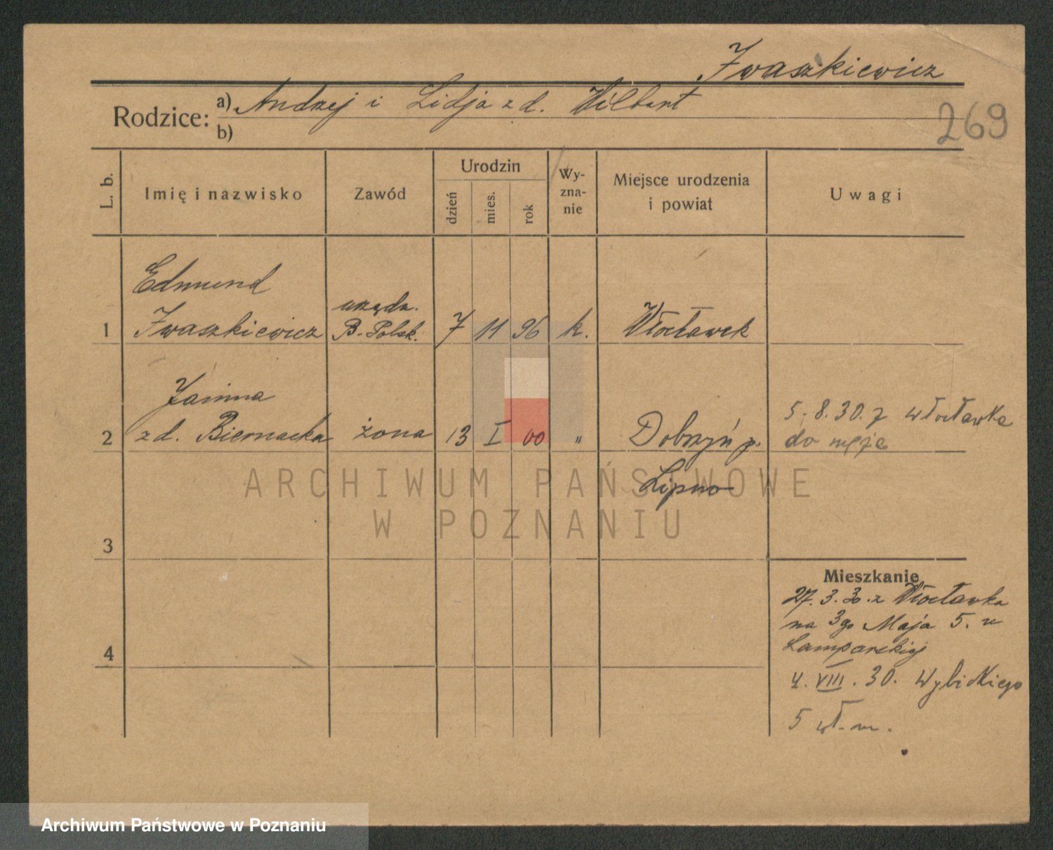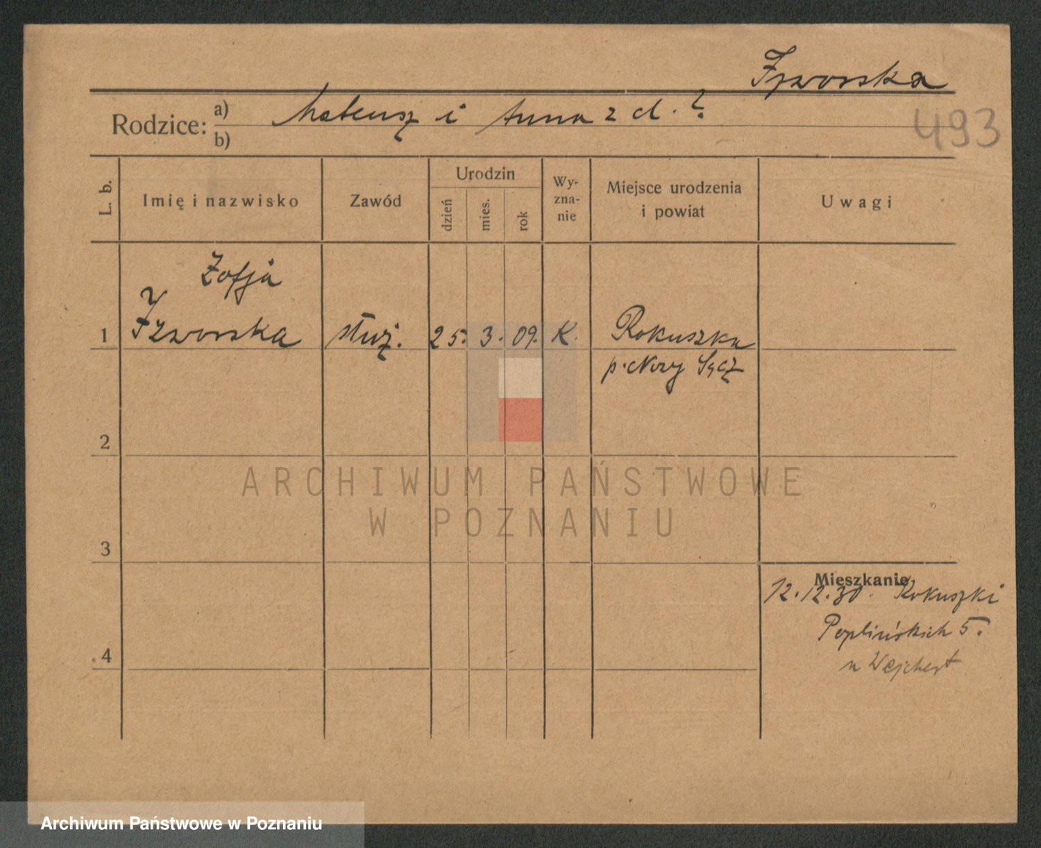 Podgląd karty osobowej dostępny jest po kliknięciu na nazwisko lub ikonkę karty. Można dokonywać powiększenia (ikony na górze) lub przechodzić między kolejnymi skanami (strzałki po bokach).