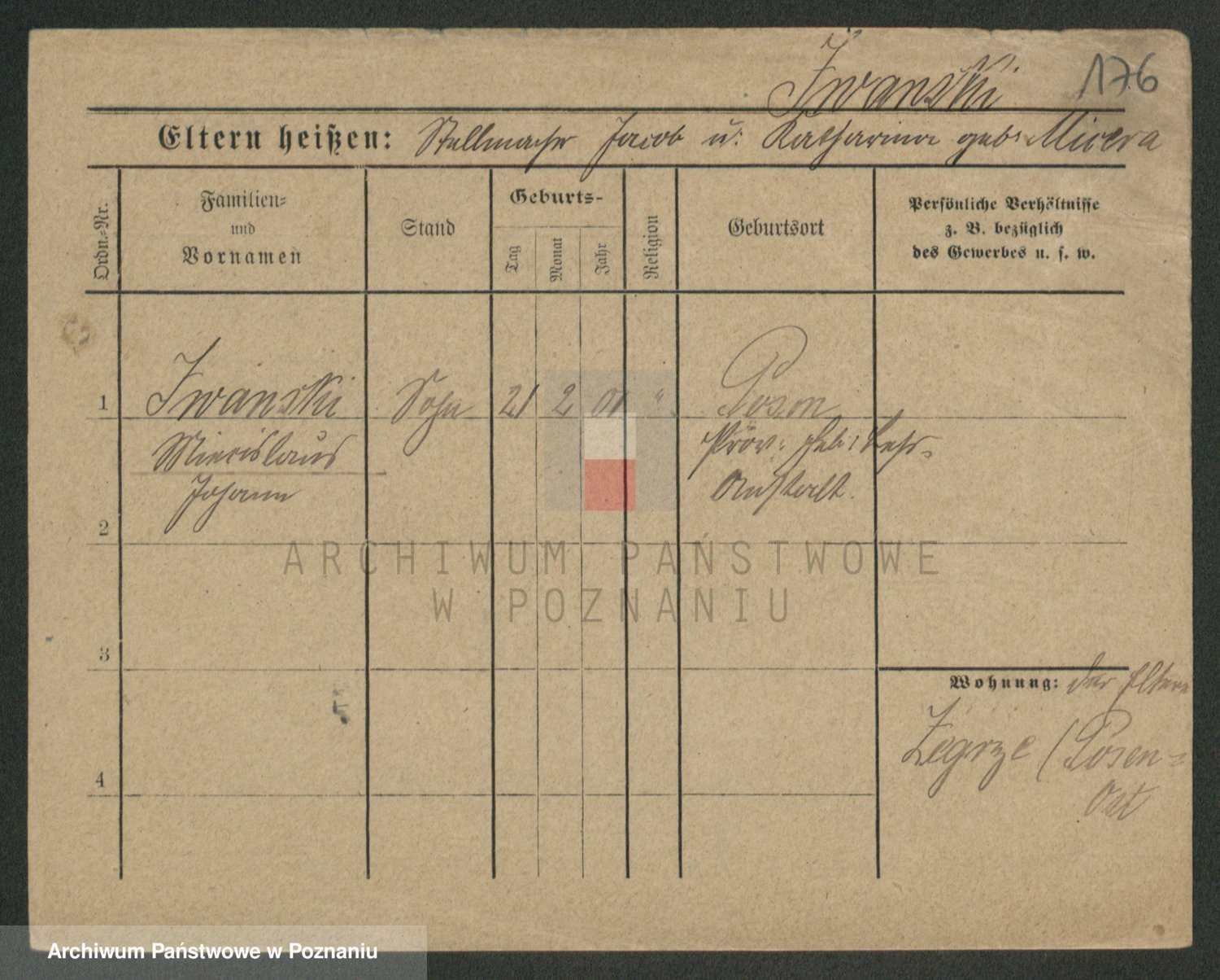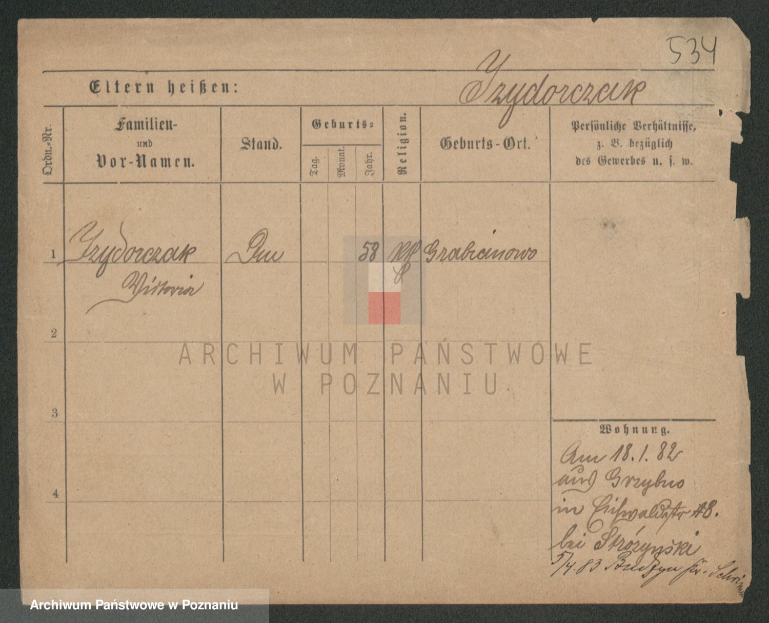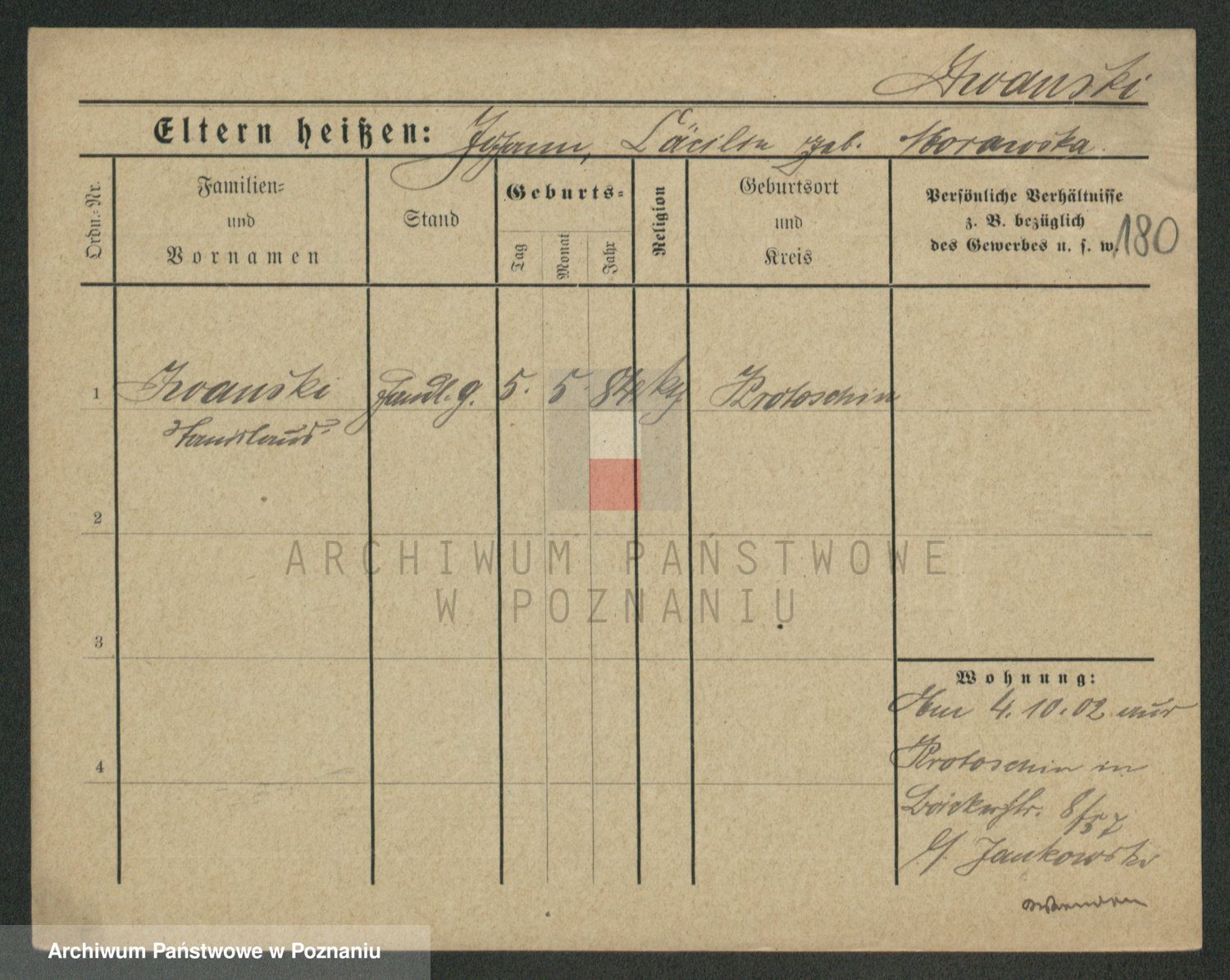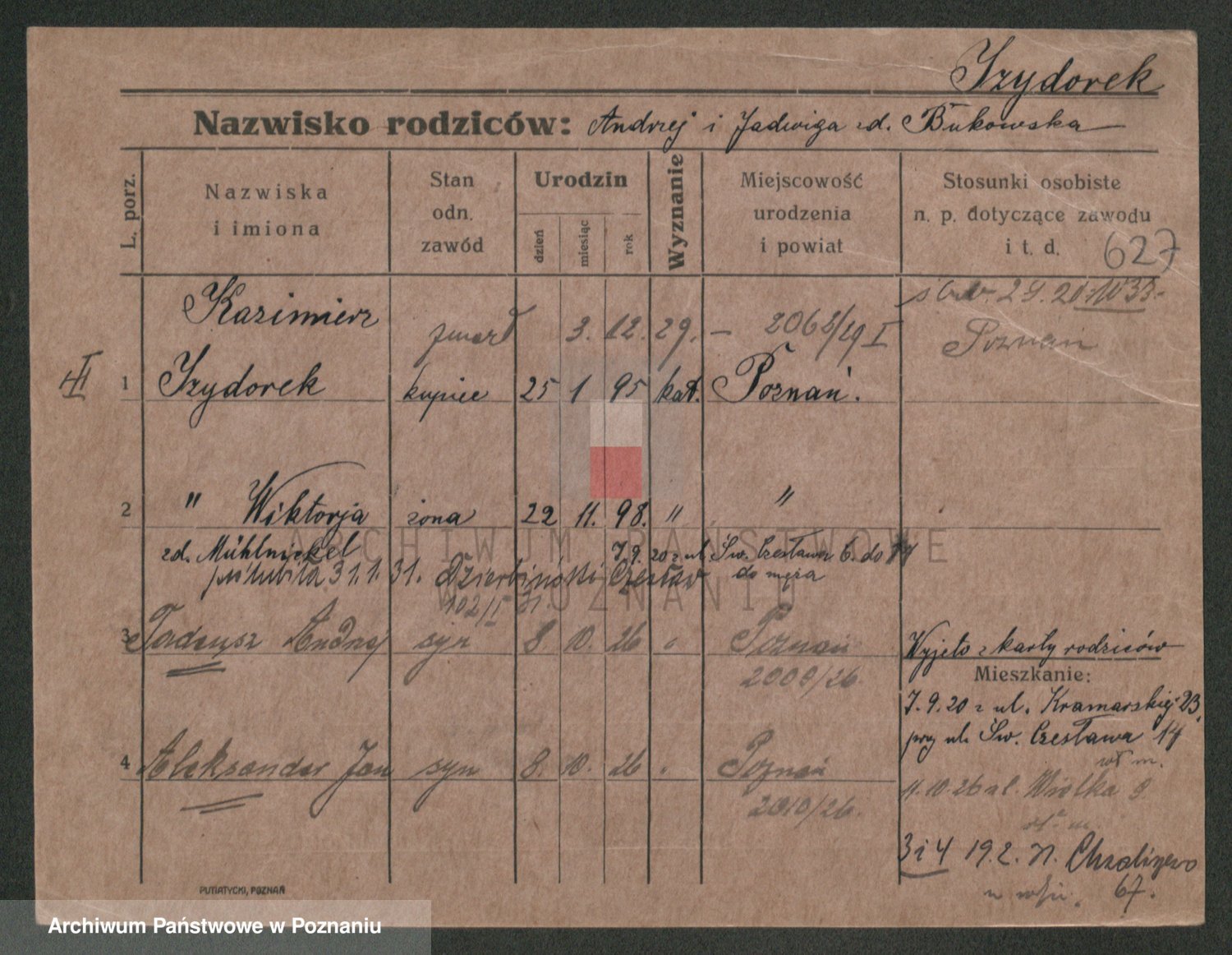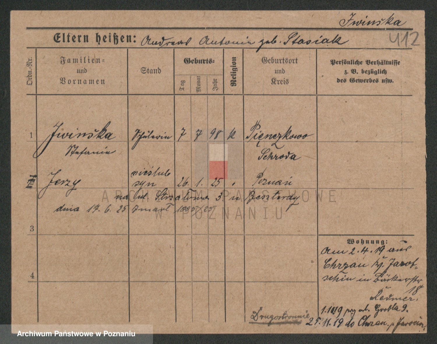 Podgląd karty osobowej dostępny jest po kliknięciu na nazwisko lub ikonkę karty. Można dokonywać powiększenia (ikony na górze) lub przechodzić między kolejnymi skanami (strzałki po bokach).