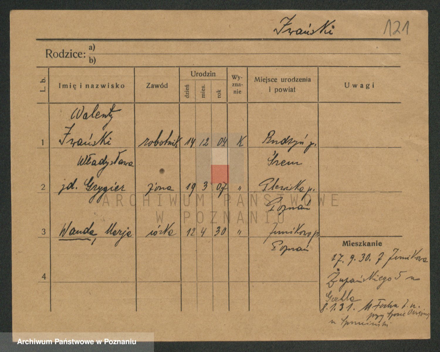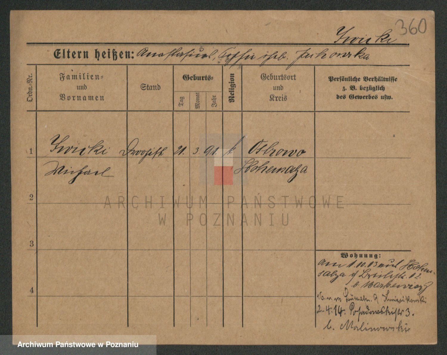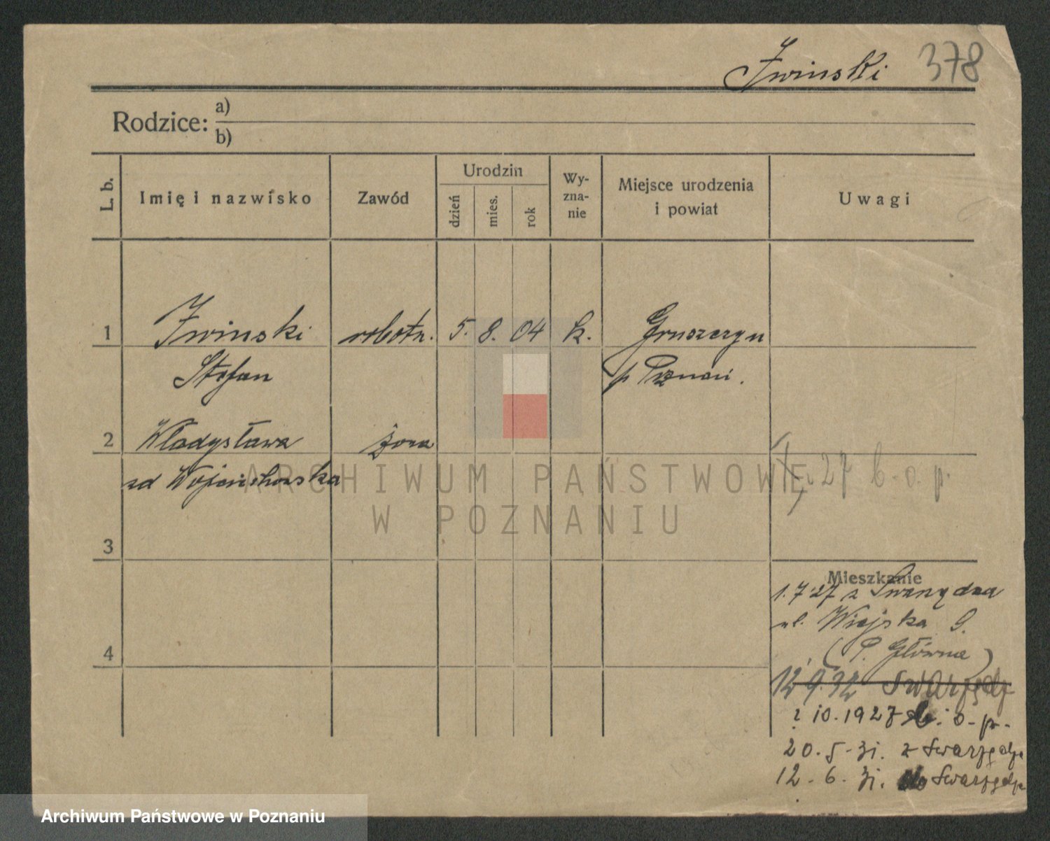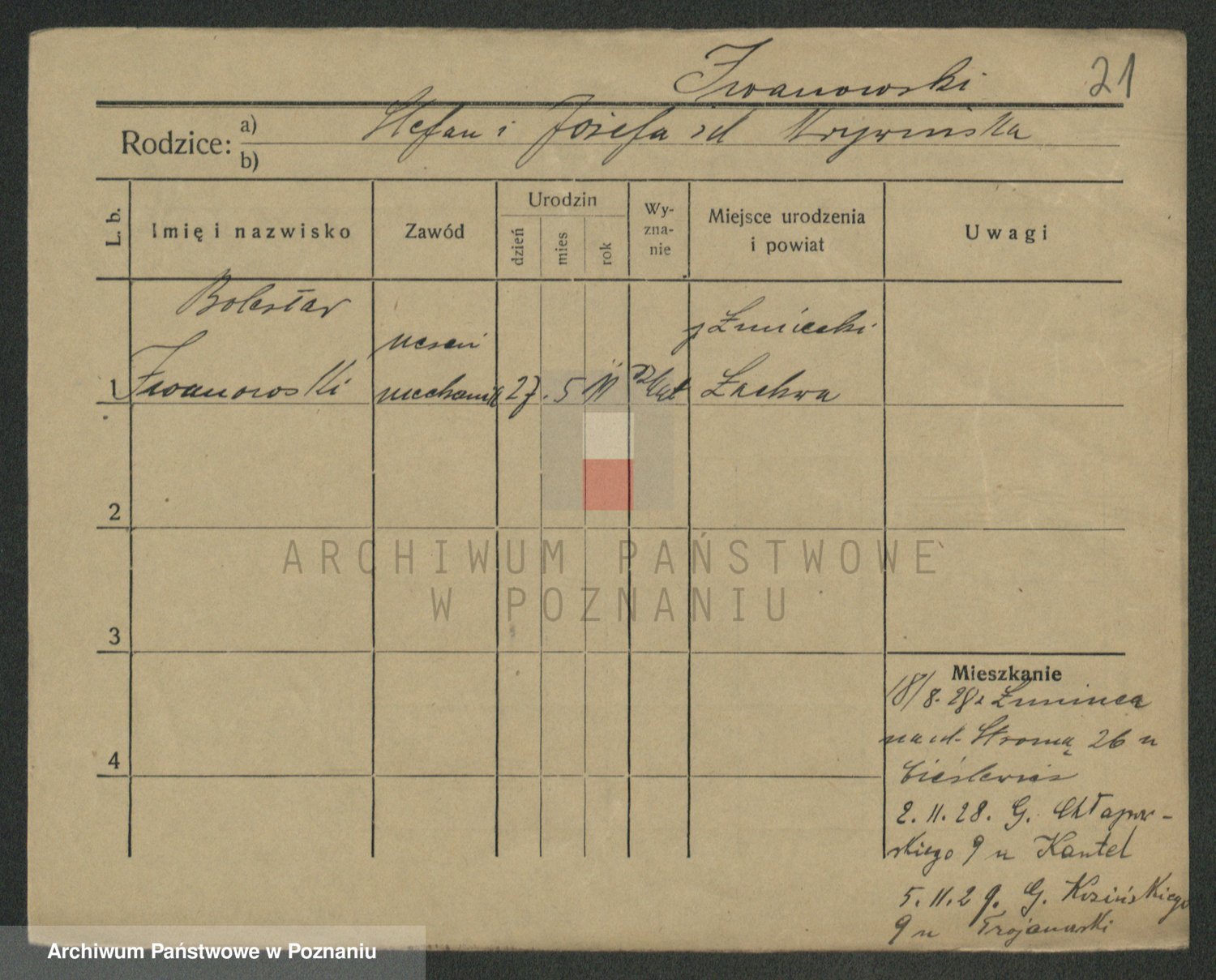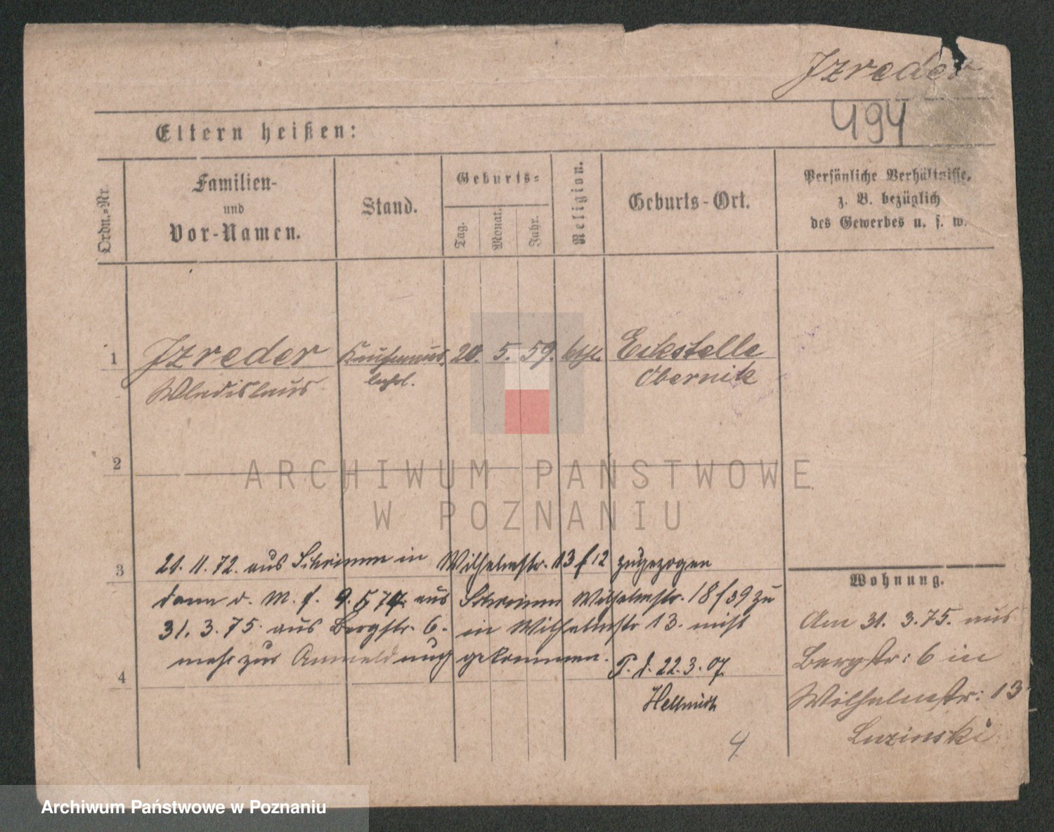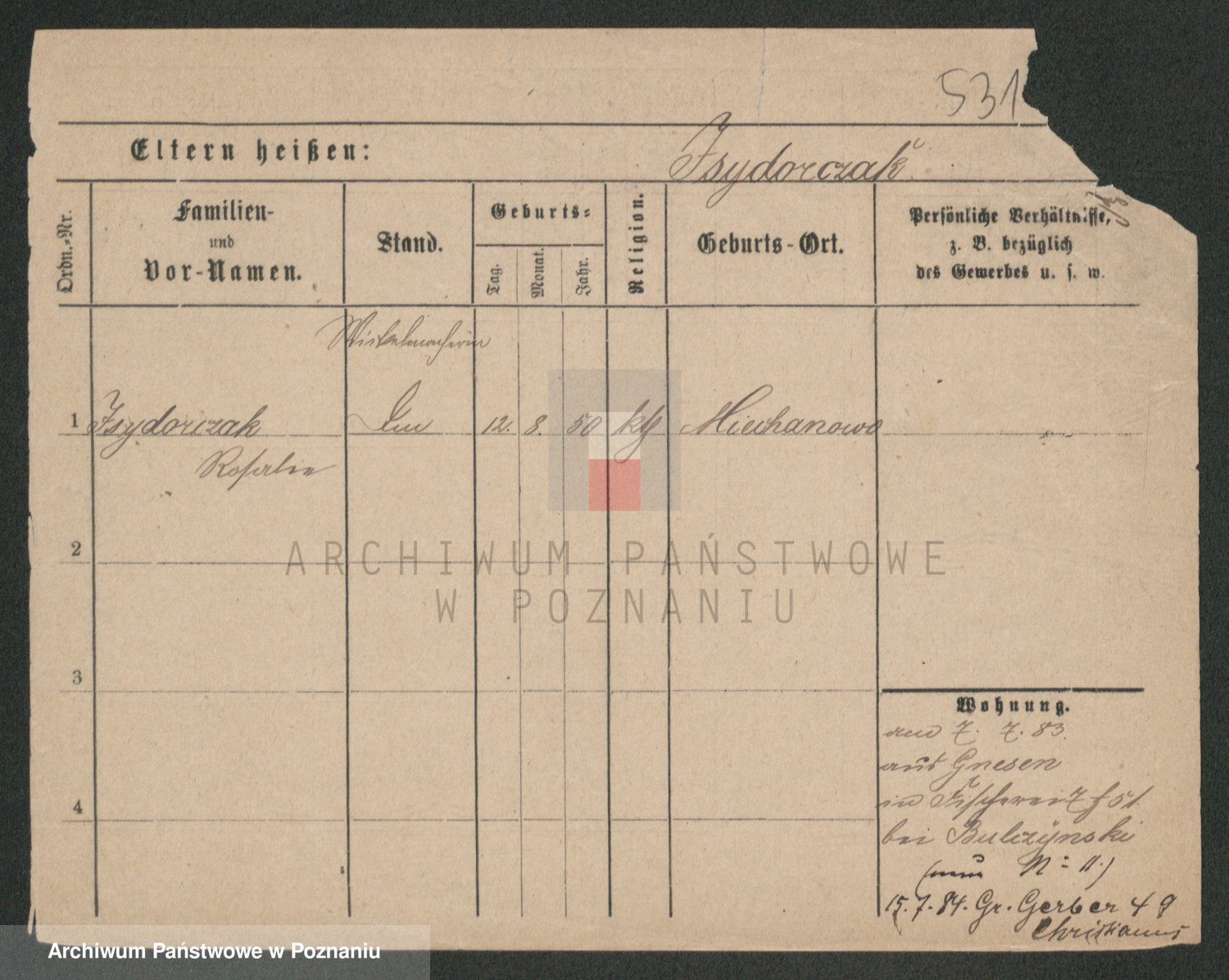 Podgląd karty osobowej dostępny jest po kliknięciu na nazwisko lub ikonkę karty. Można dokonywać powiększenia (ikony na górze) lub przechodzić między kolejnymi skanami (strzałki po bokach).