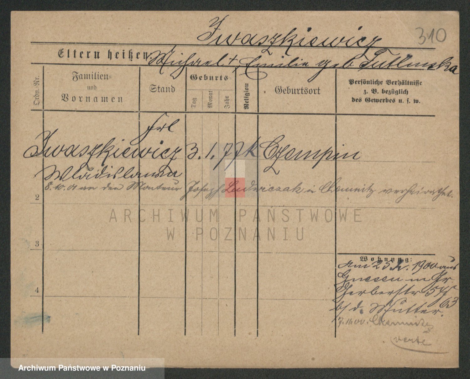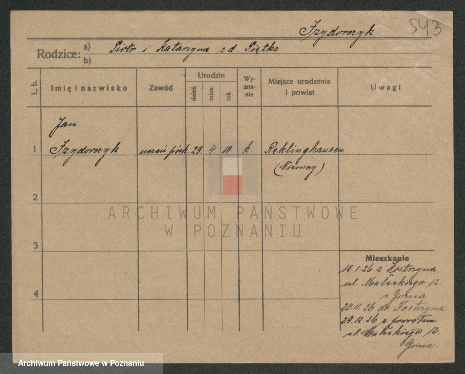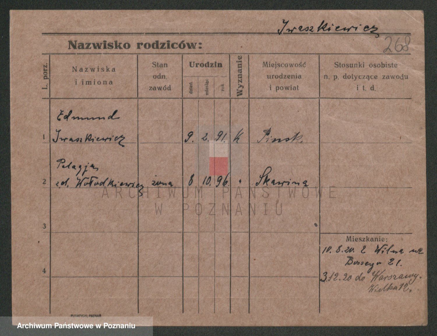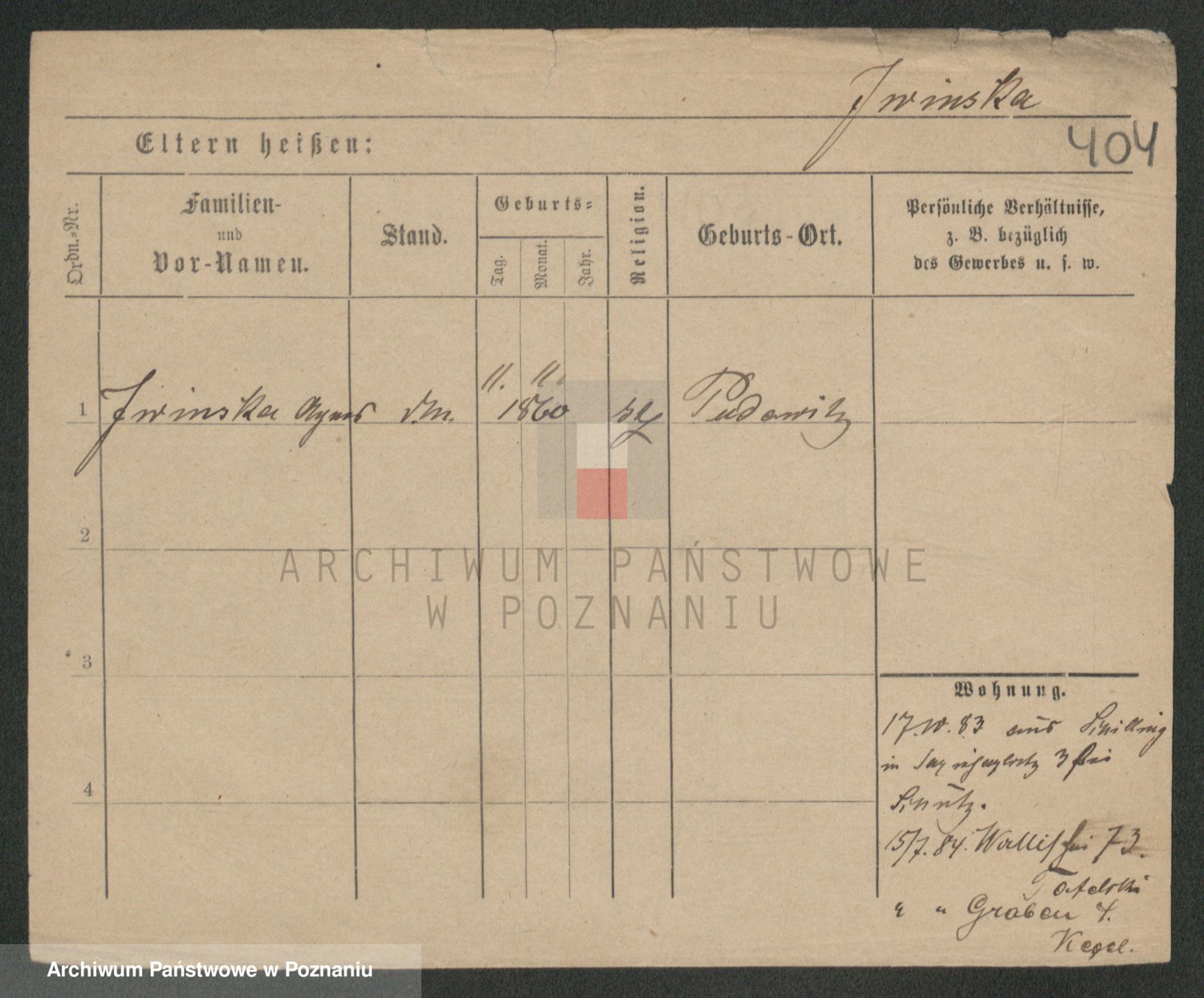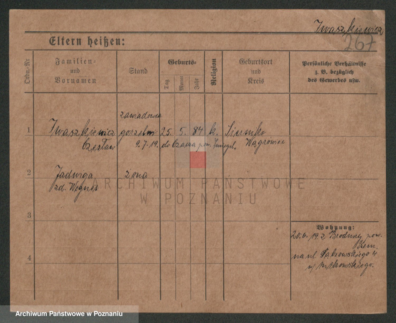 Podgląd karty osobowej dostępny jest po kliknięciu na nazwisko lub ikonkę karty. Można dokonywać powiększenia (ikony na górze) lub przechodzić między kolejnymi skanami (strzałki po bokach).
