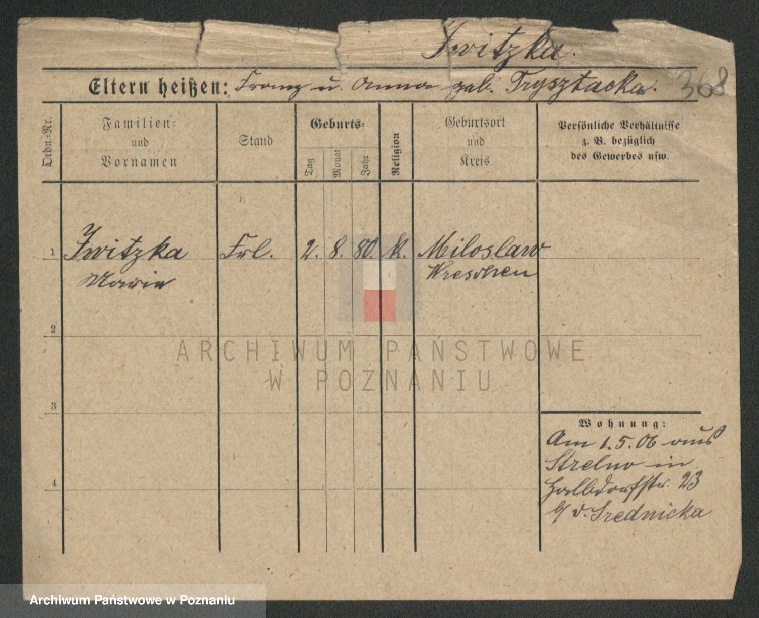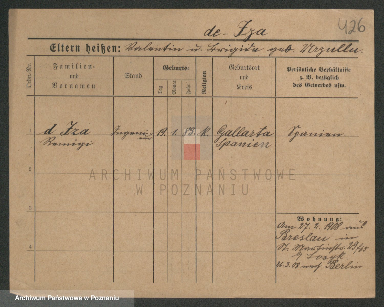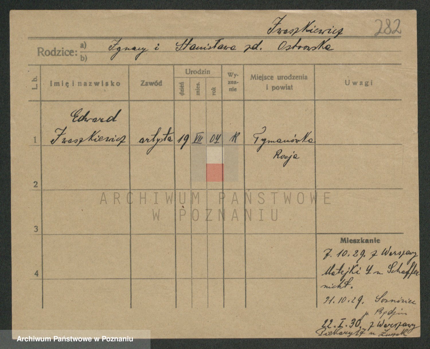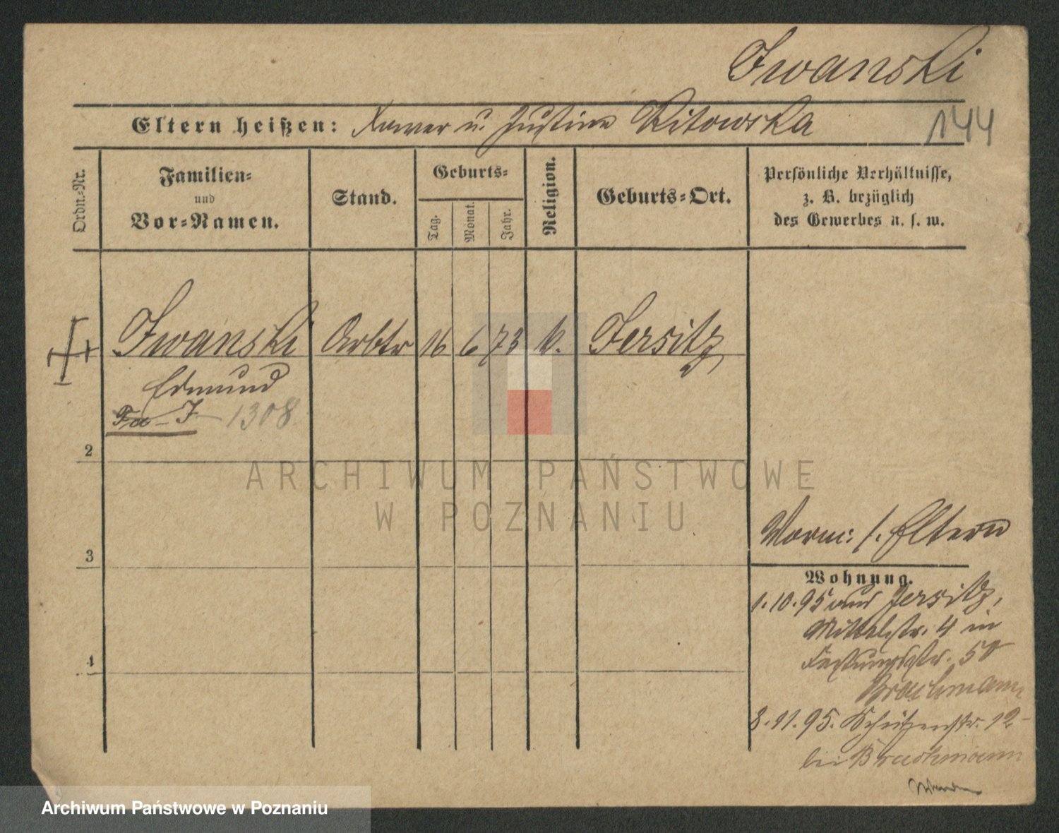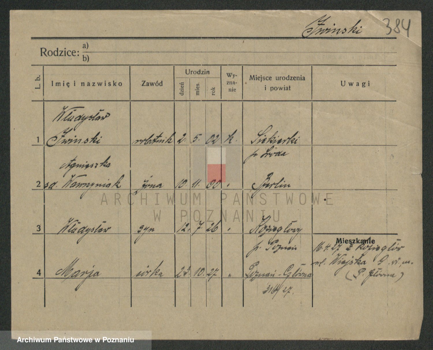 Podgląd karty osobowej dostępny jest po kliknięciu na nazwisko lub ikonkę karty. Można dokonywać powiększenia (ikony na górze) lub przechodzić między kolejnymi skanami (strzałki po bokach).