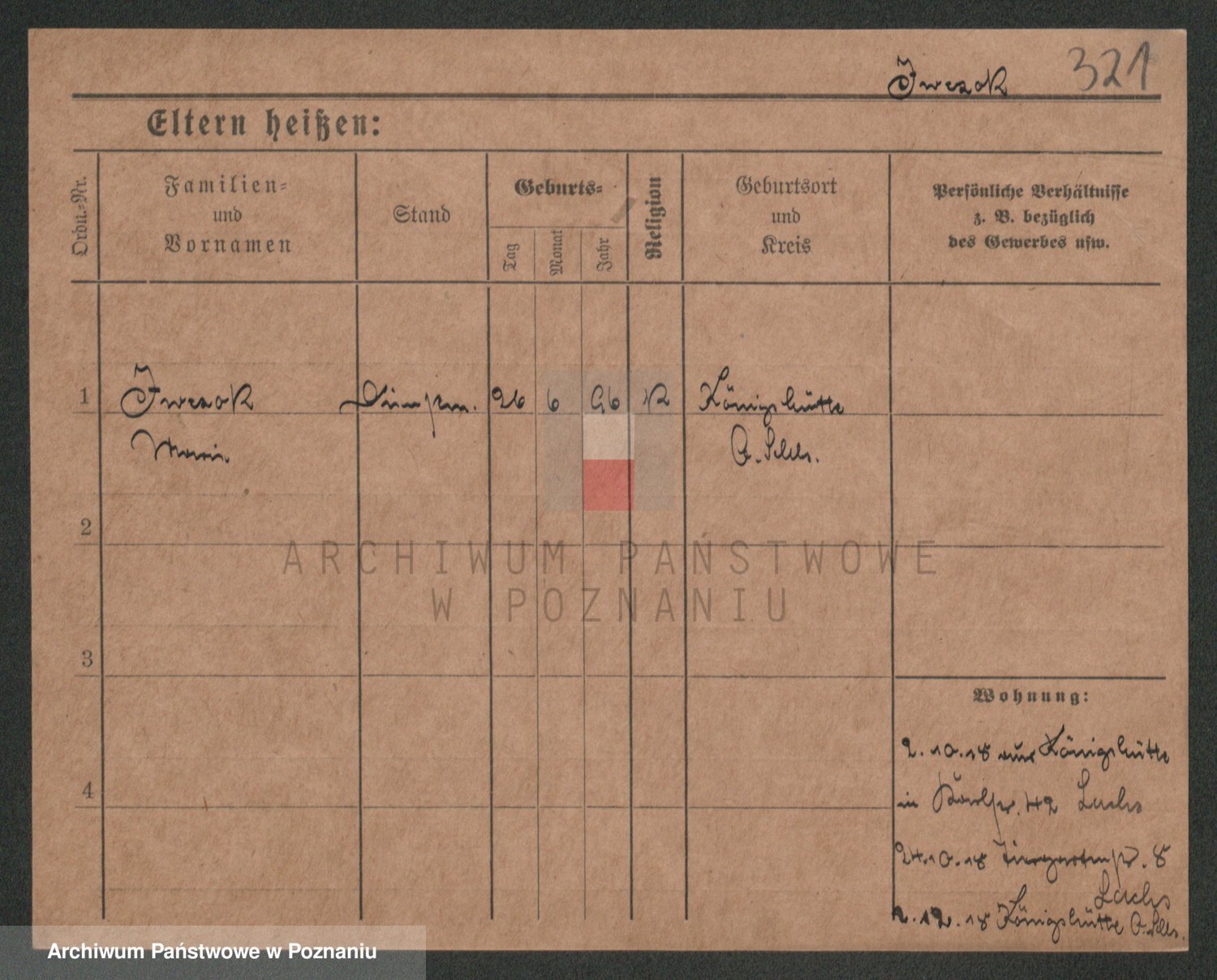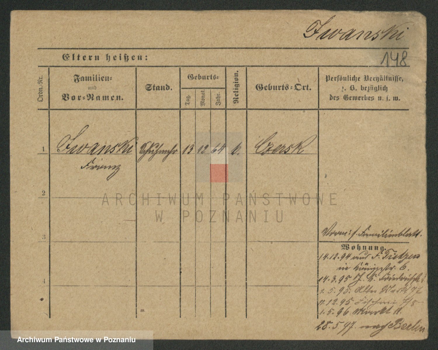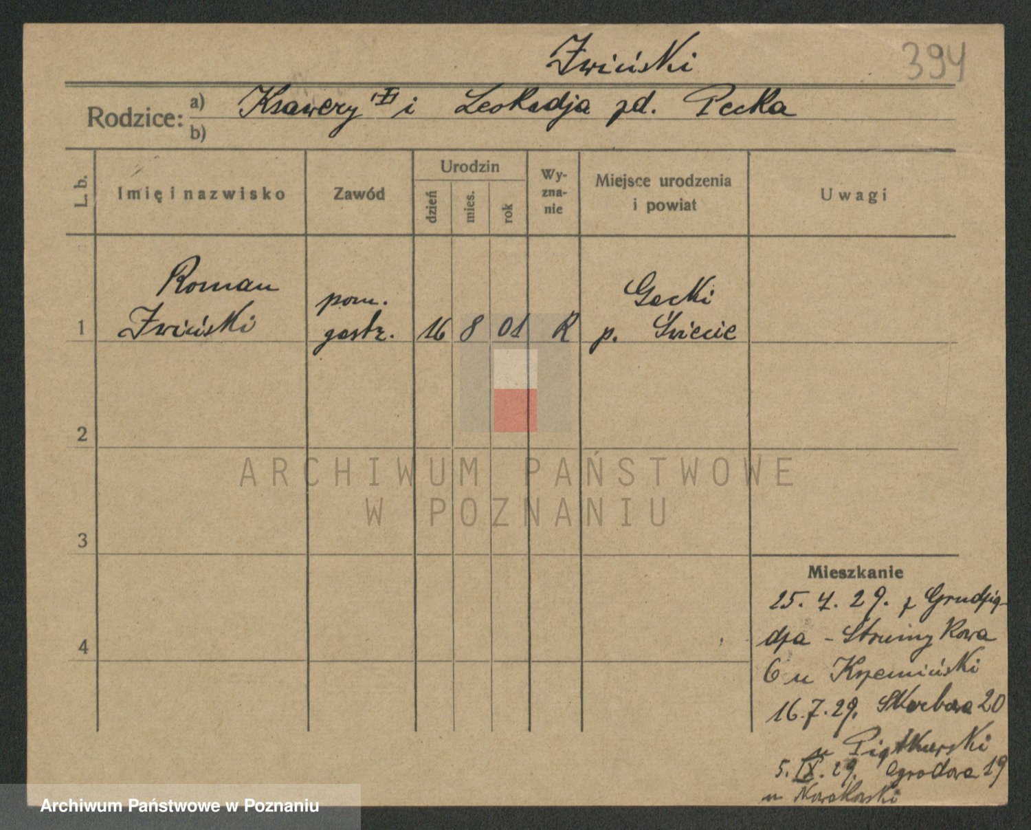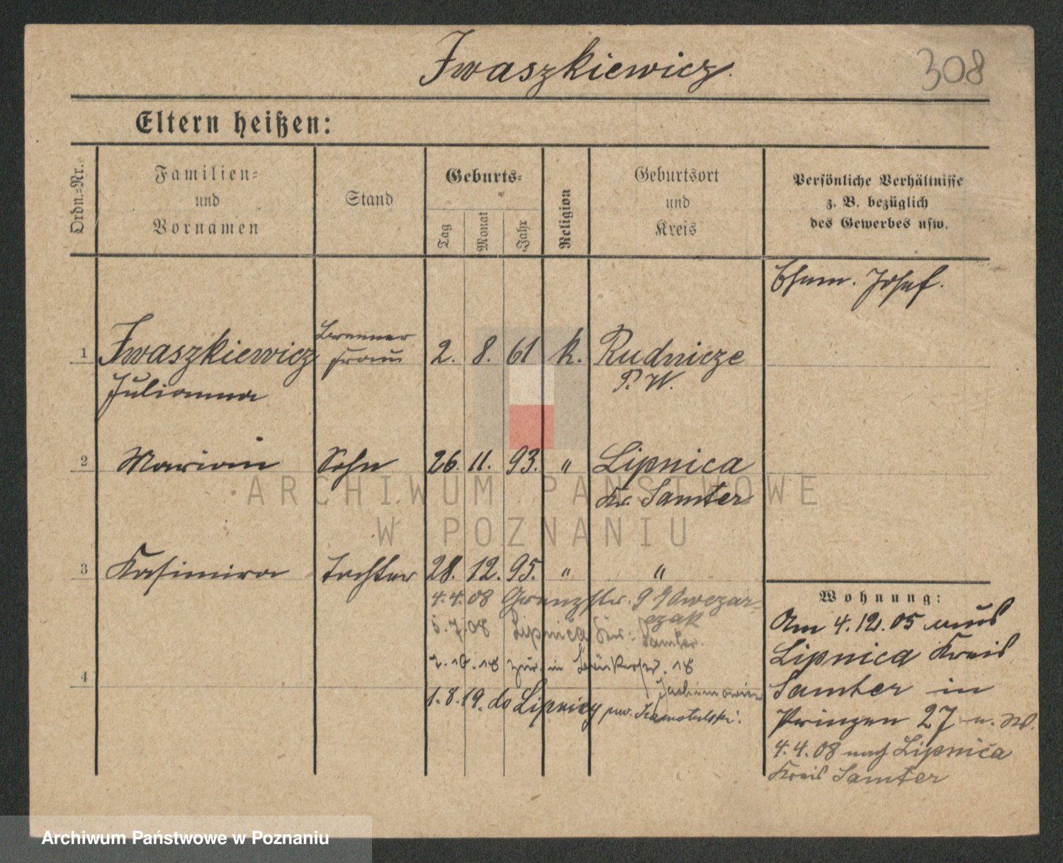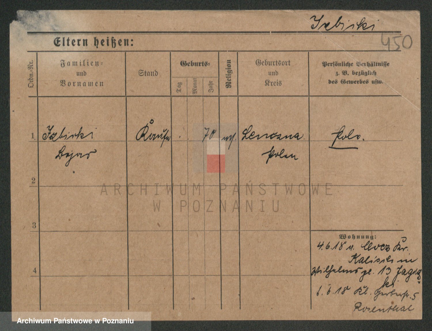 Podgląd karty osobowej dostępny jest po kliknięciu na nazwisko lub ikonkę karty. Można dokonywać powiększenia (ikony na górze) lub przechodzić między kolejnymi skanami (strzałki po bokach).