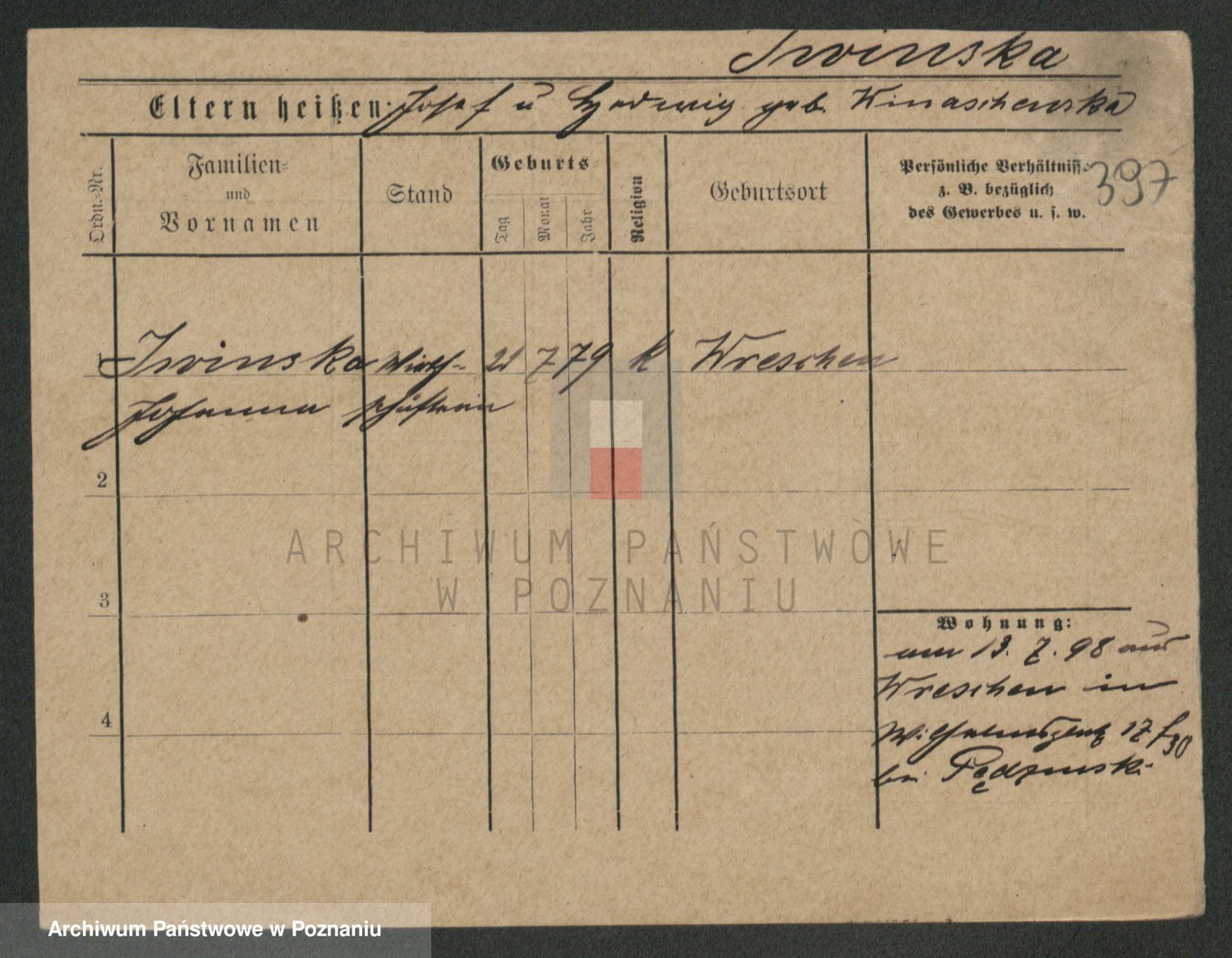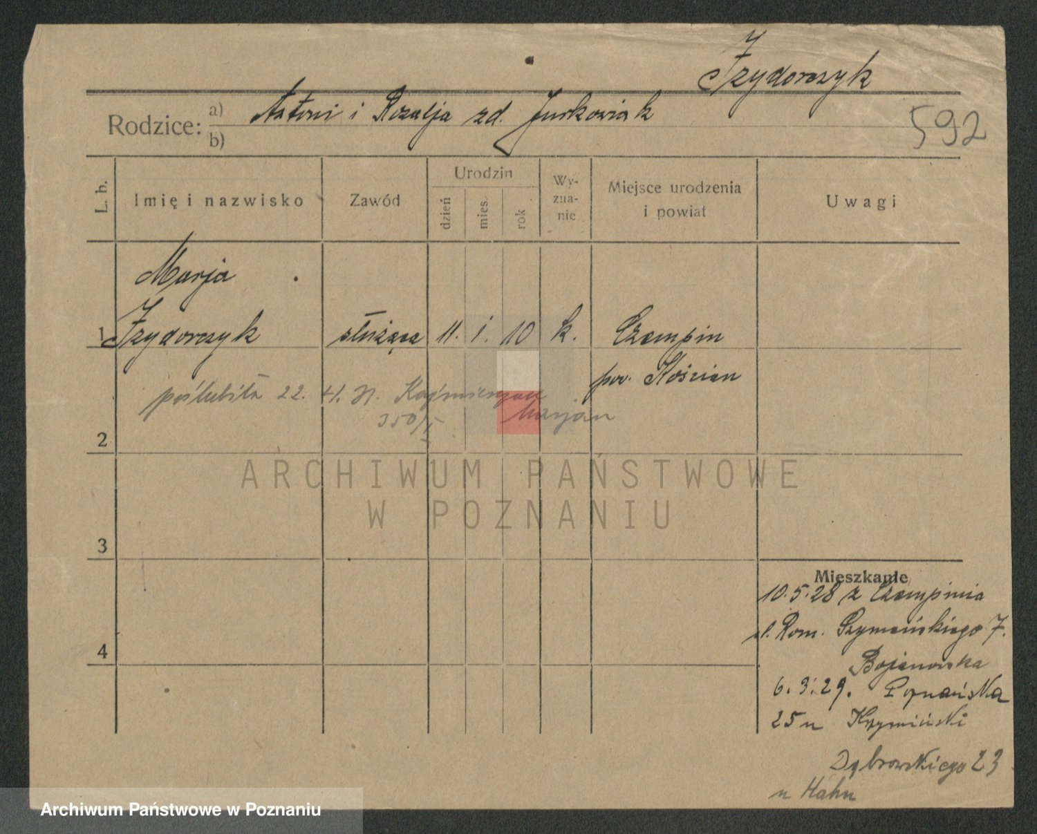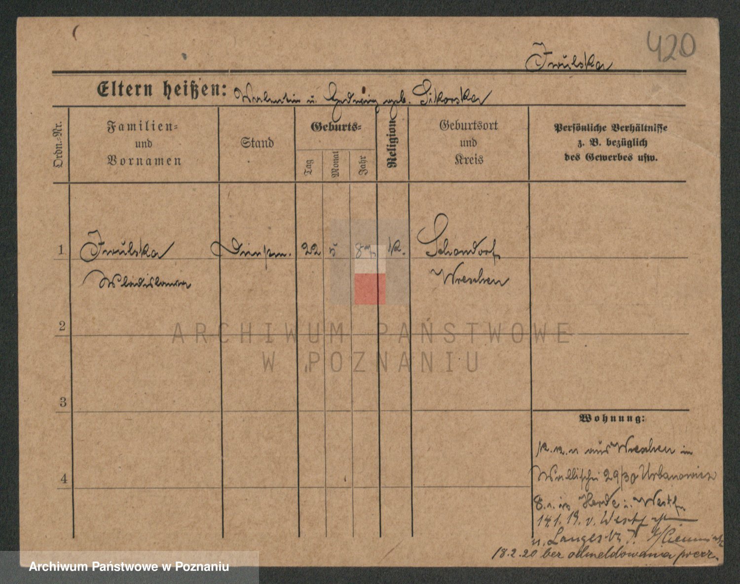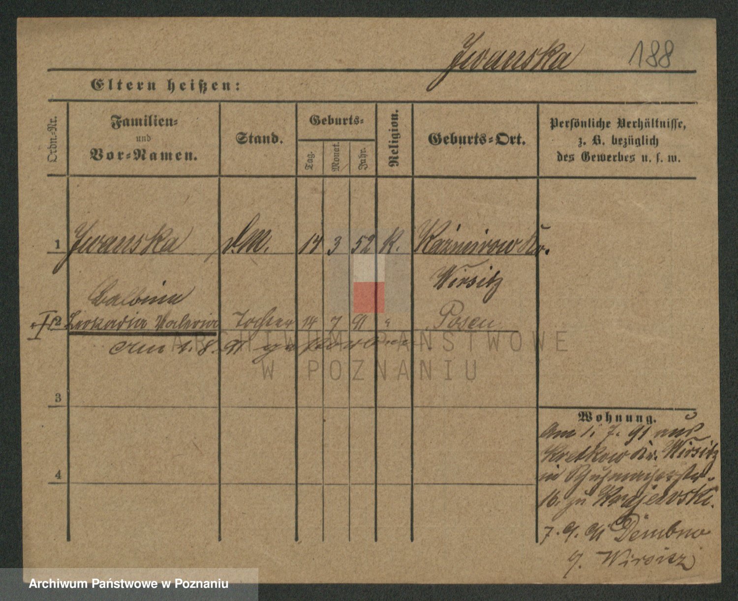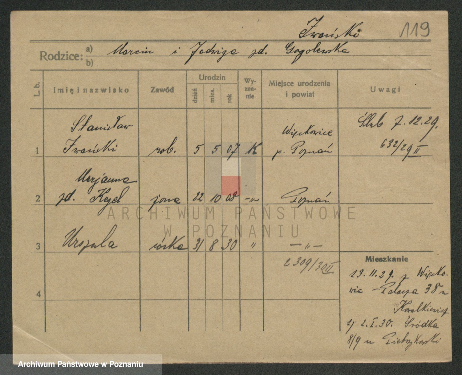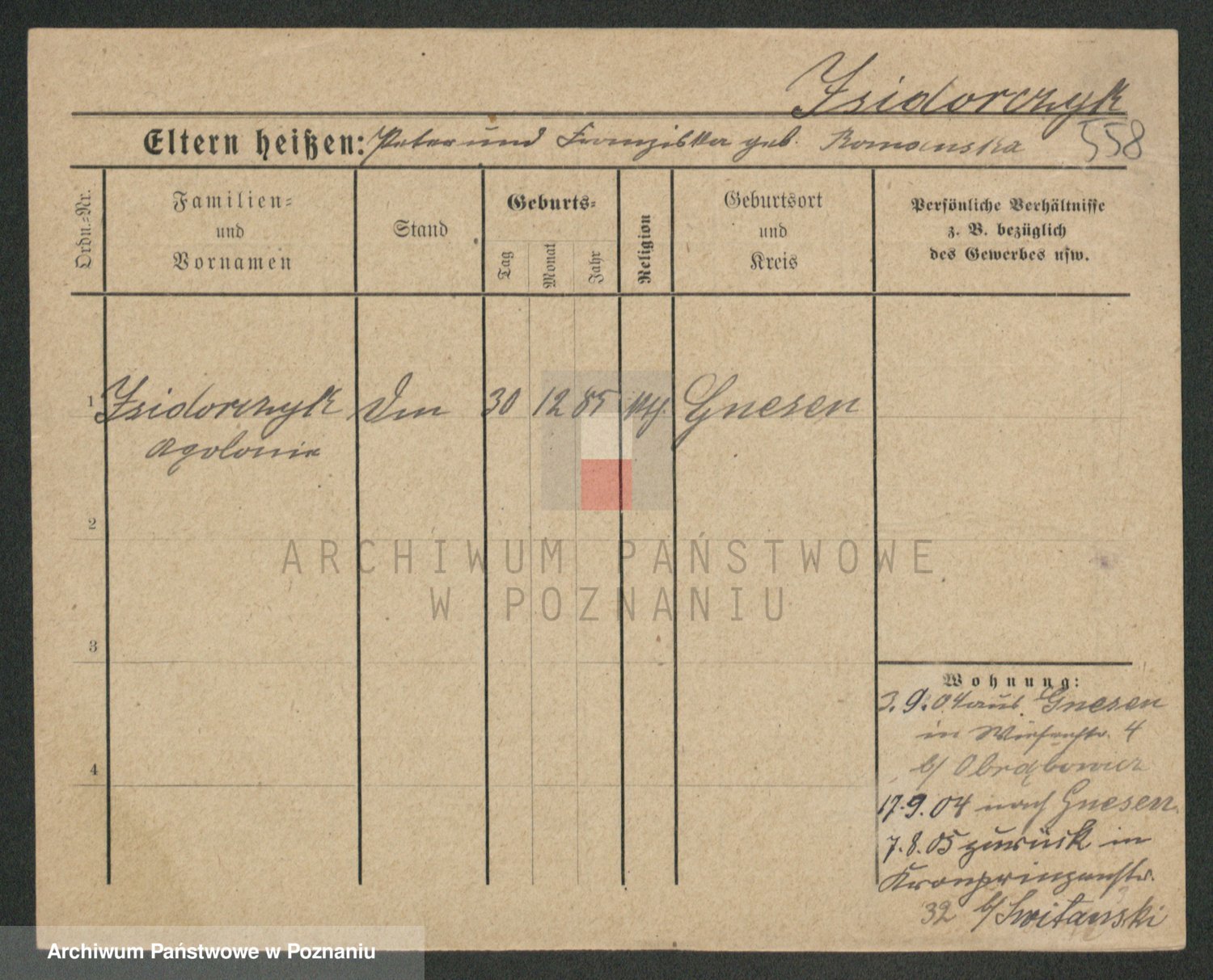 Podgląd karty osobowej dostępny jest po kliknięciu na nazwisko lub ikonkę karty. Można dokonywać powiększenia (ikony na górze) lub przechodzić między kolejnymi skanami (strzałki po bokach).