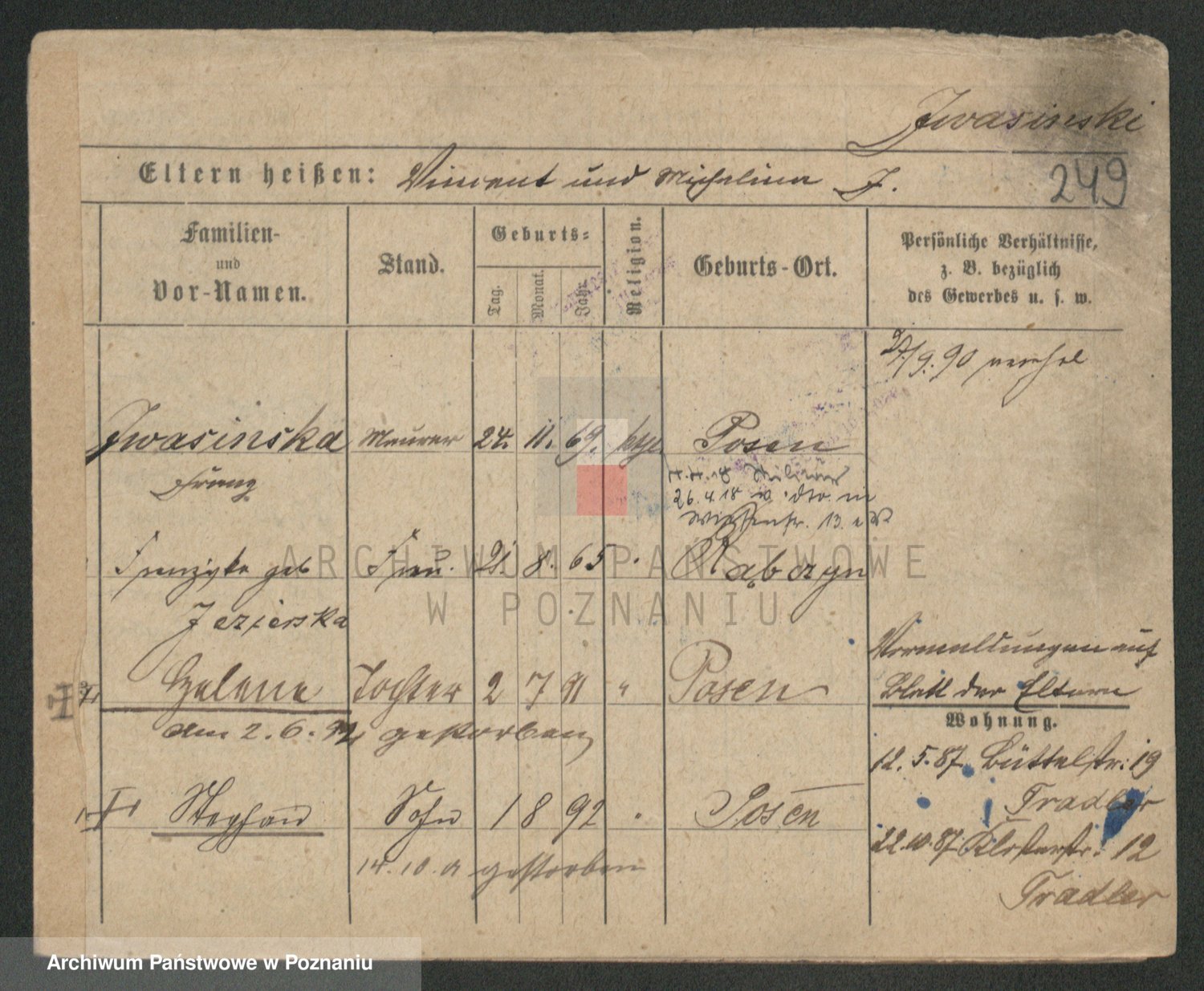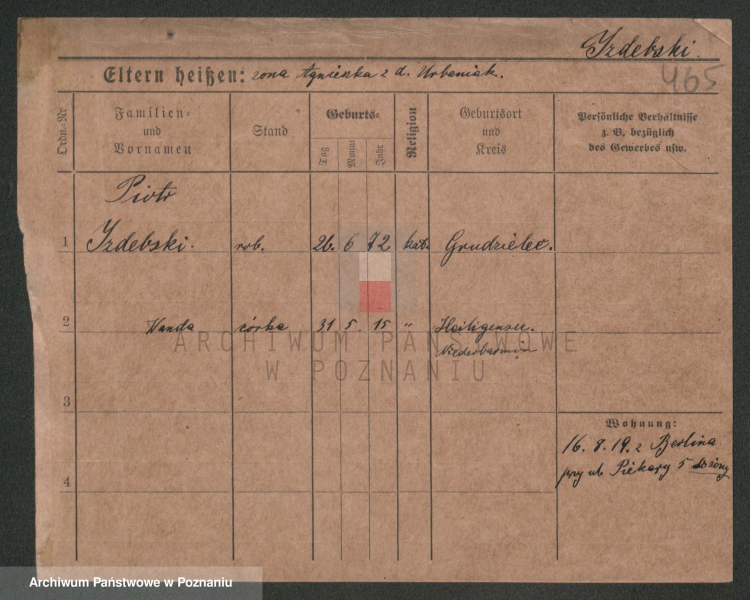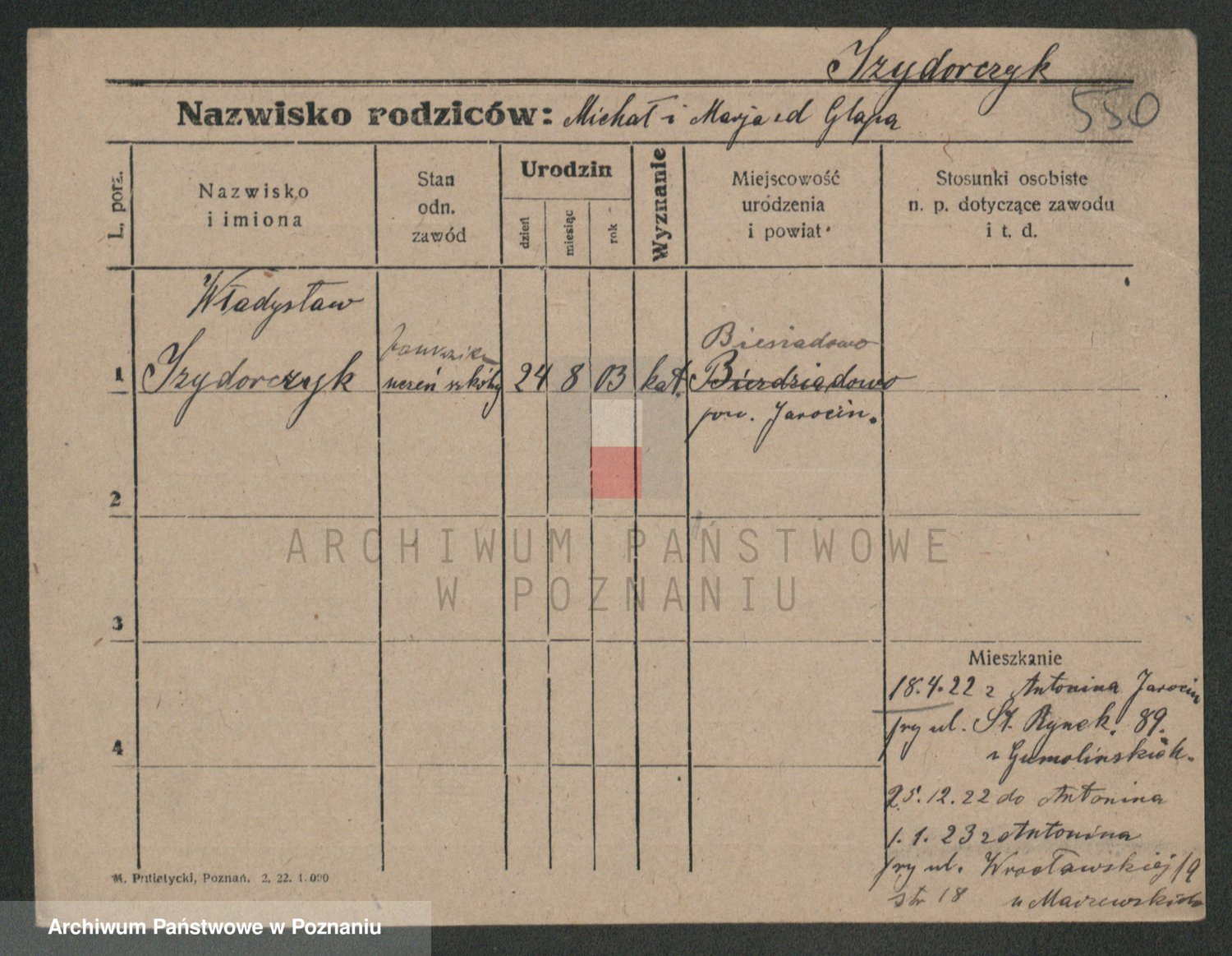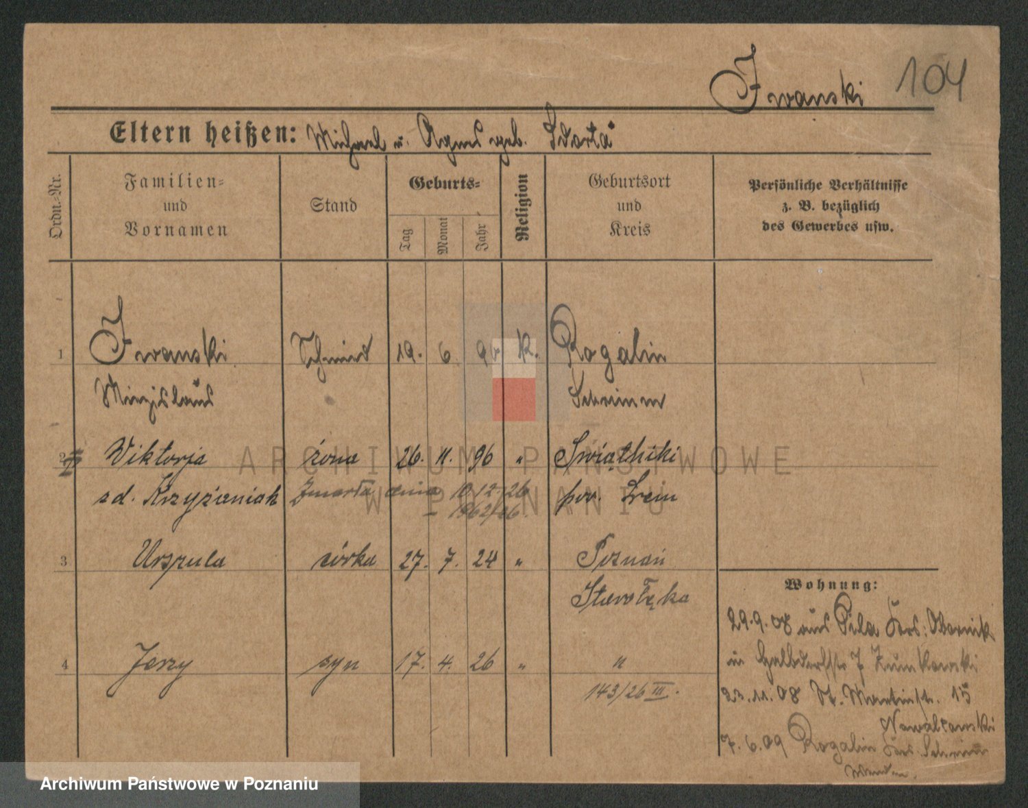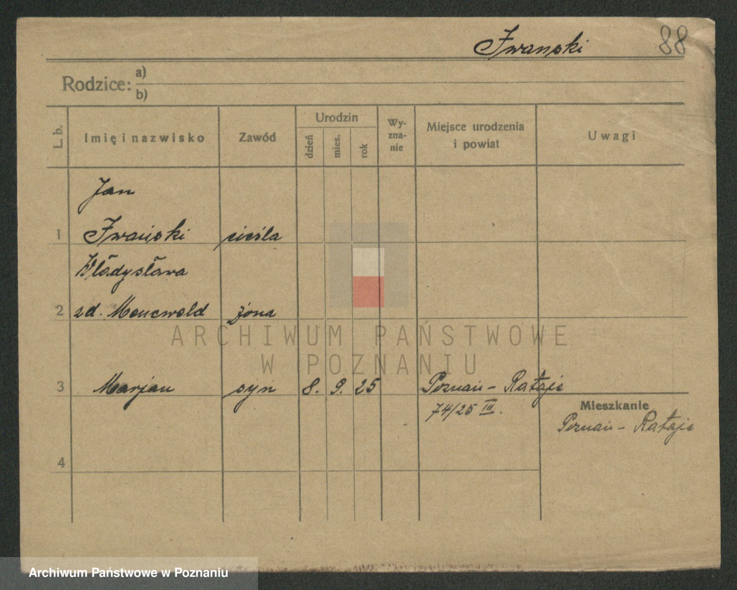 Podgląd karty osobowej dostępny jest po kliknięciu na nazwisko lub ikonkę karty. Można dokonywać powiększenia (ikony na górze) lub przechodzić między kolejnymi skanami (strzałki po bokach).
