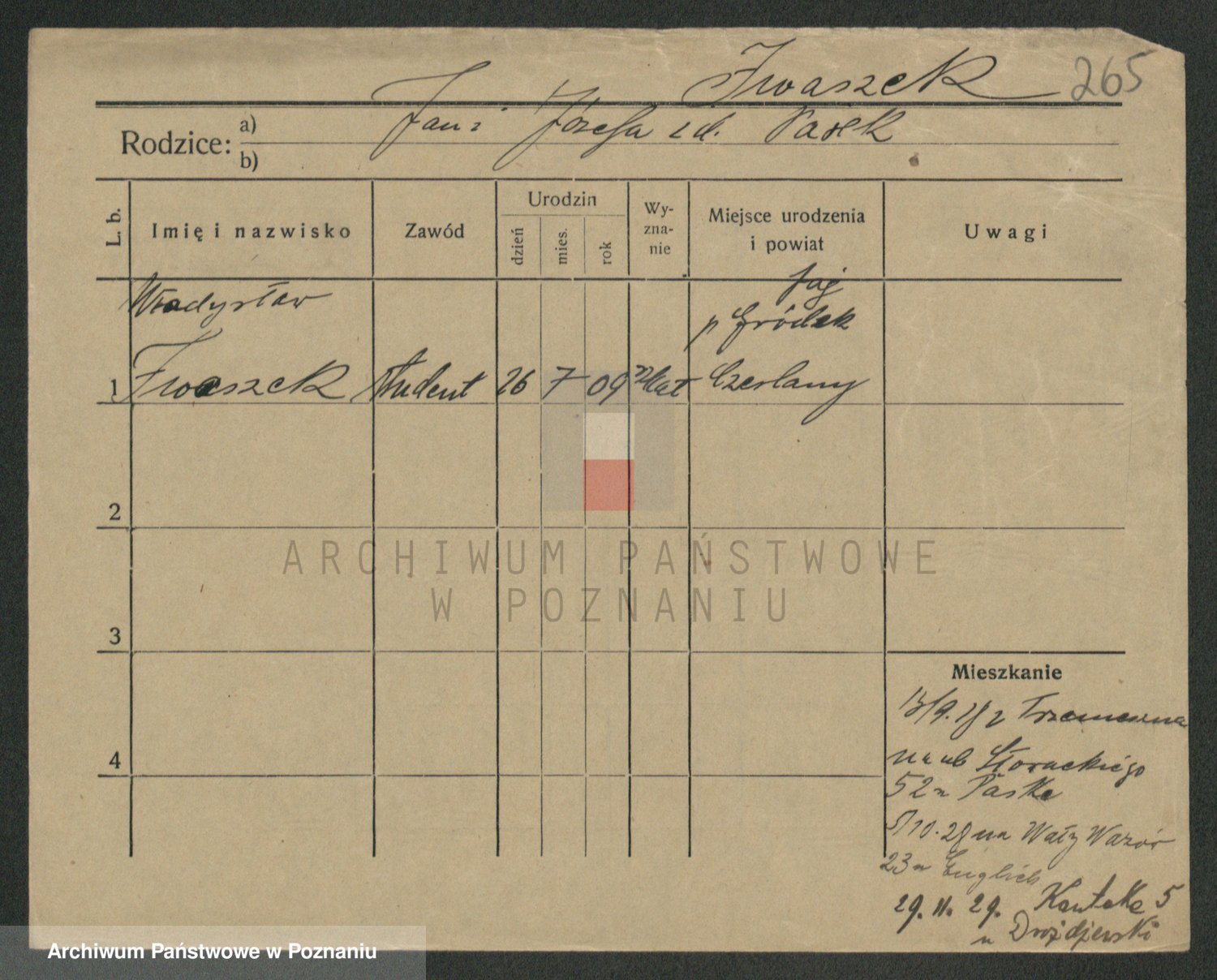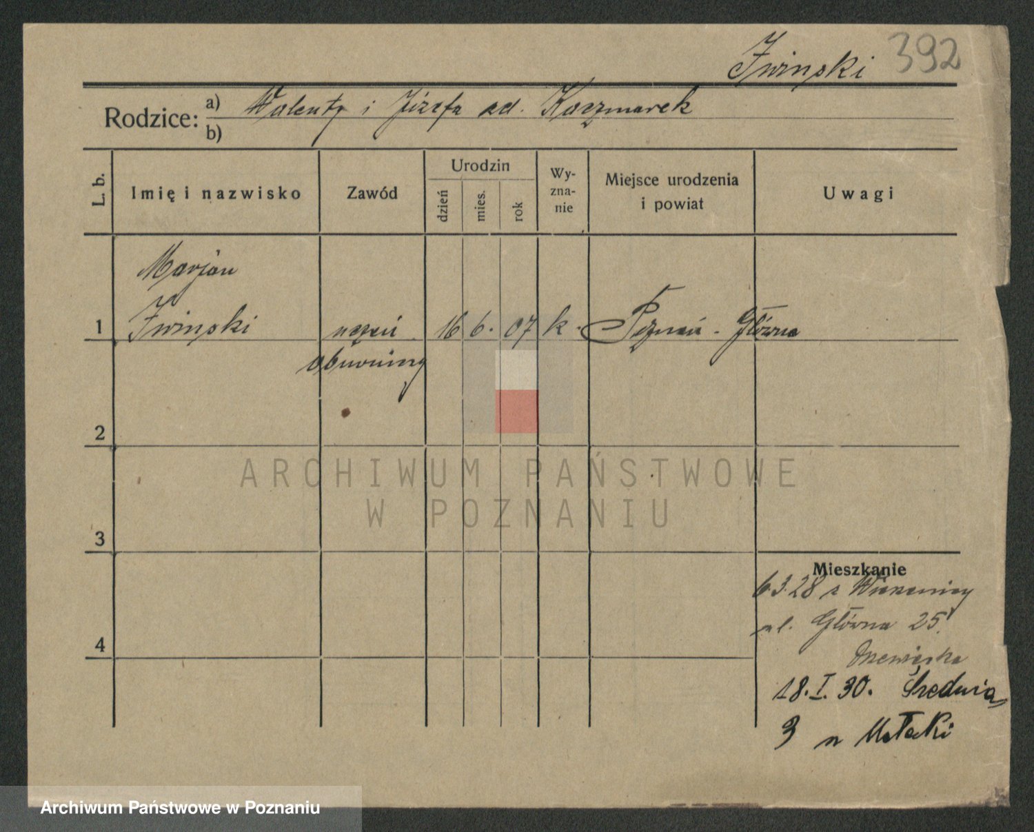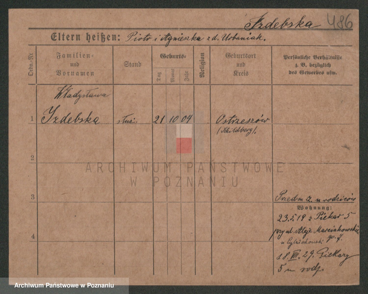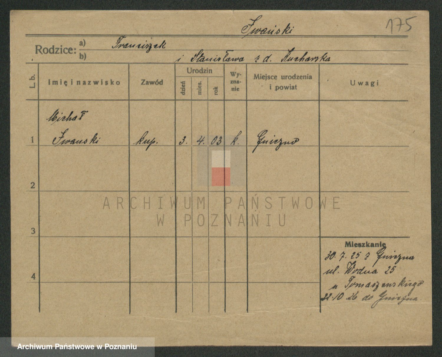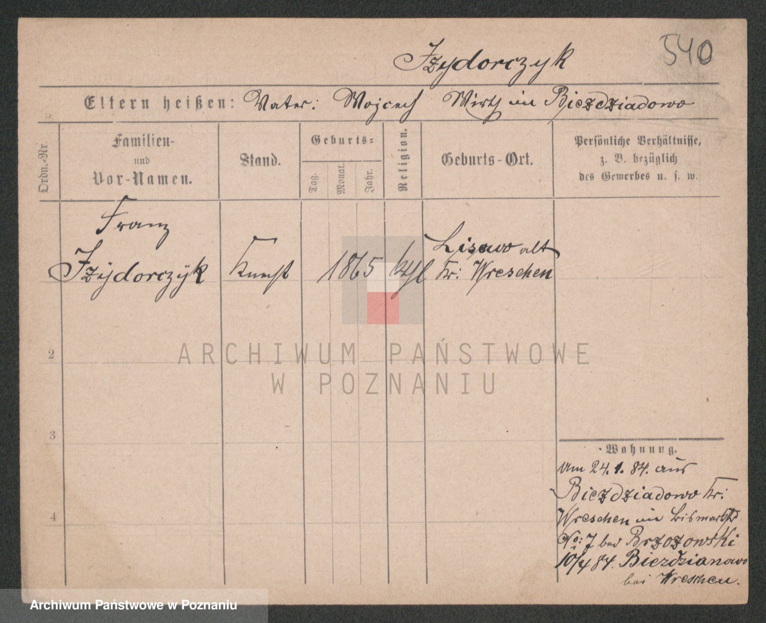 Podgląd karty osobowej dostępny jest po kliknięciu na nazwisko lub ikonkę karty. Można dokonywać powiększenia (ikony na górze) lub przechodzić między kolejnymi skanami (strzałki po bokach).