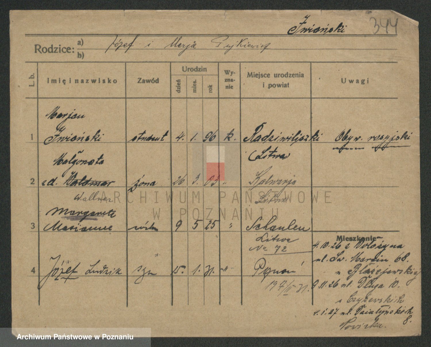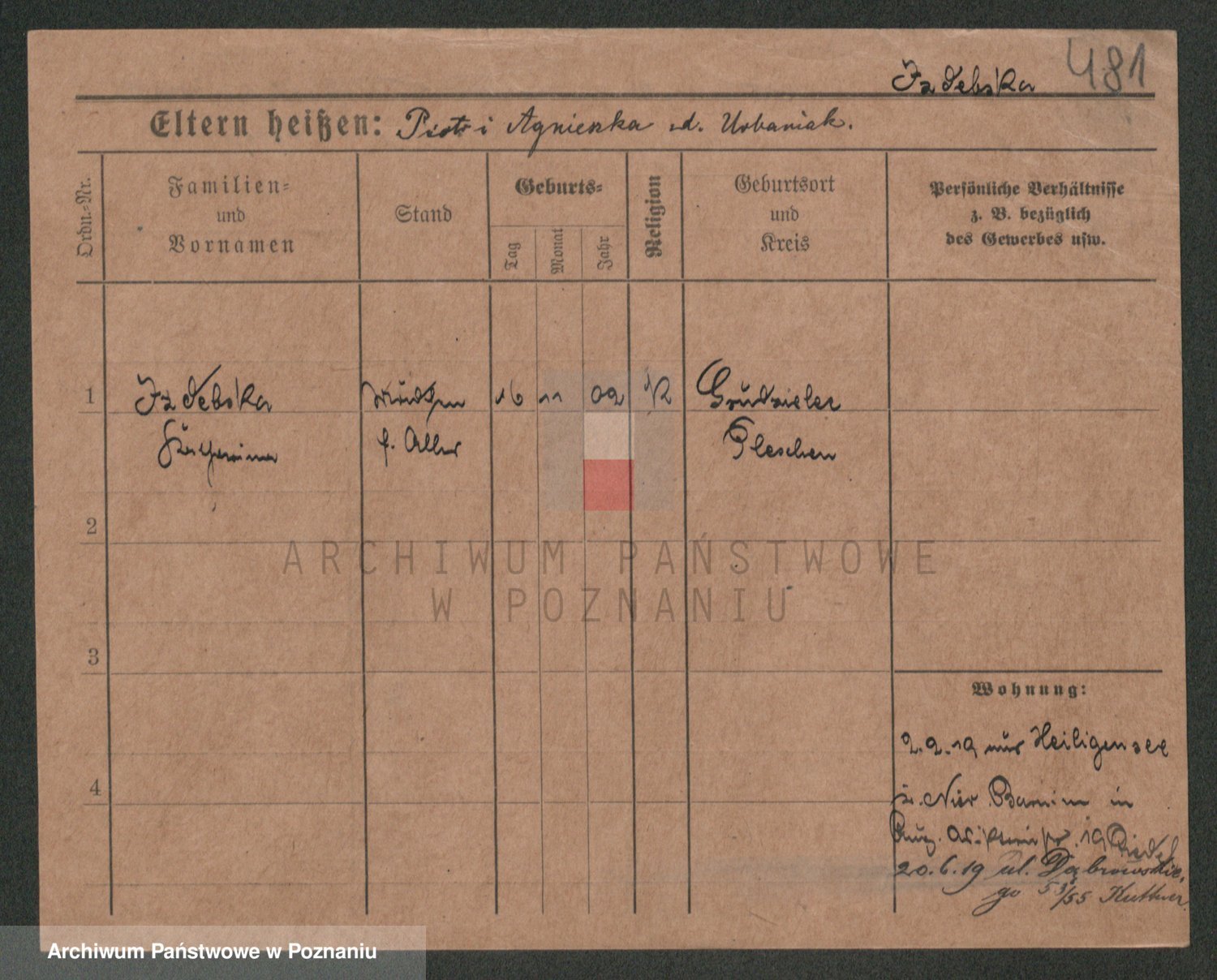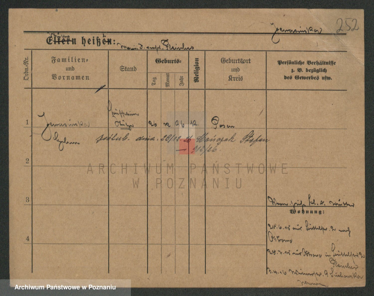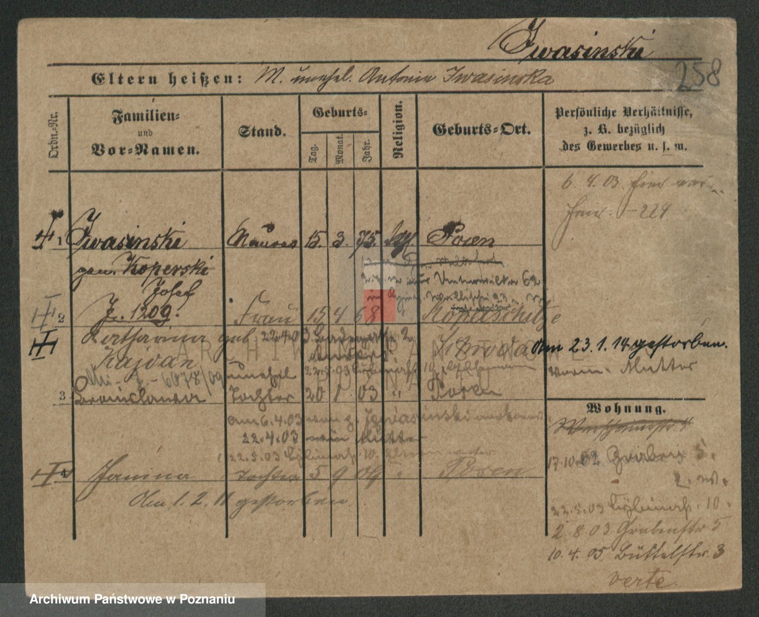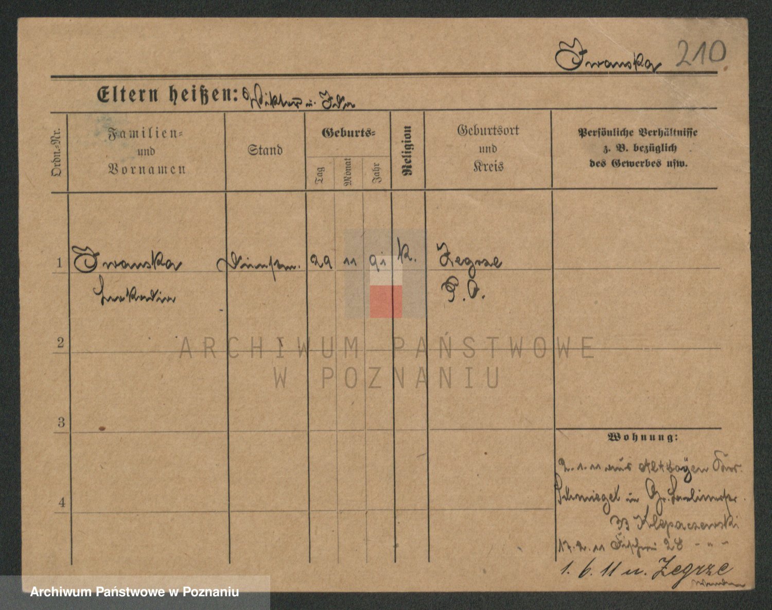 Podgląd karty osobowej dostępny jest po kliknięciu na nazwisko lub ikonkę karty. Można dokonywać powiększenia (ikony na górze) lub przechodzić między kolejnymi skanami (strzałki po bokach).