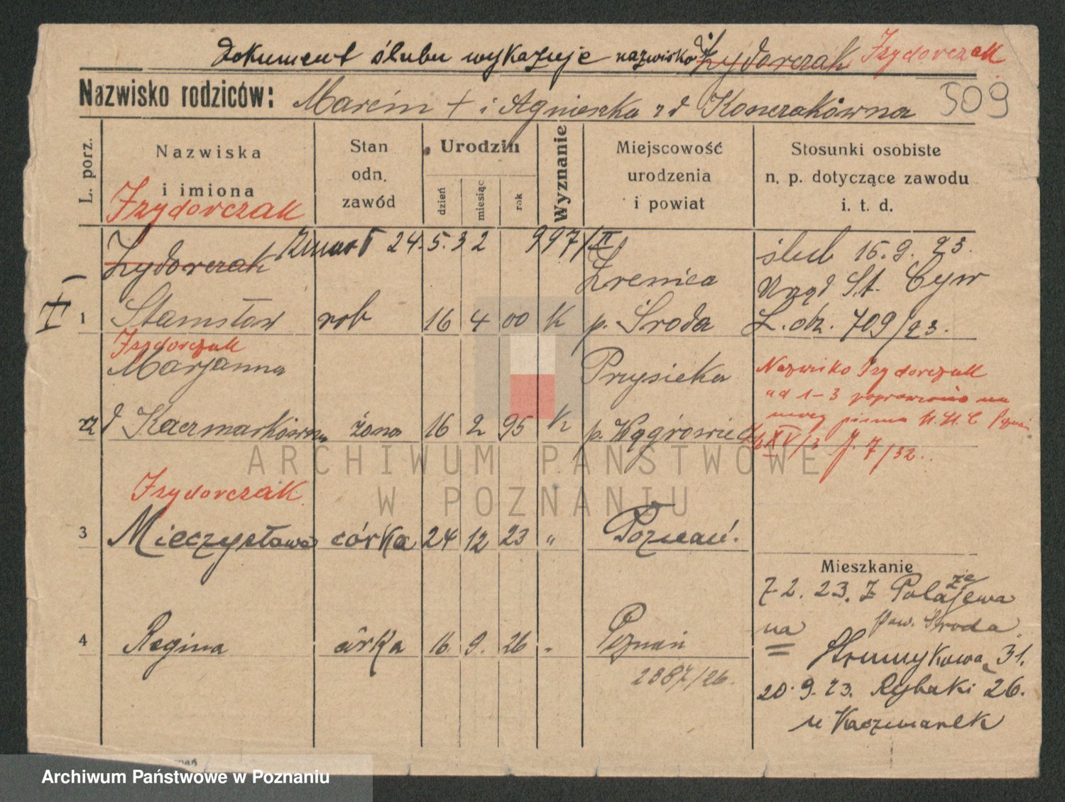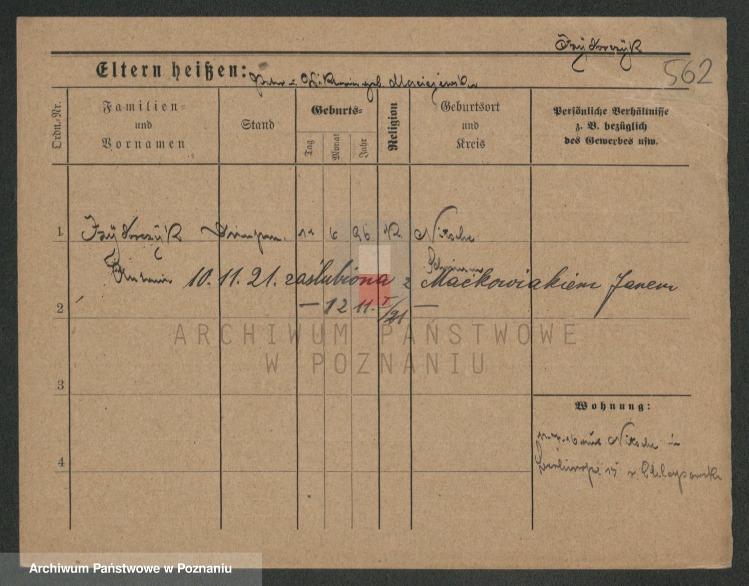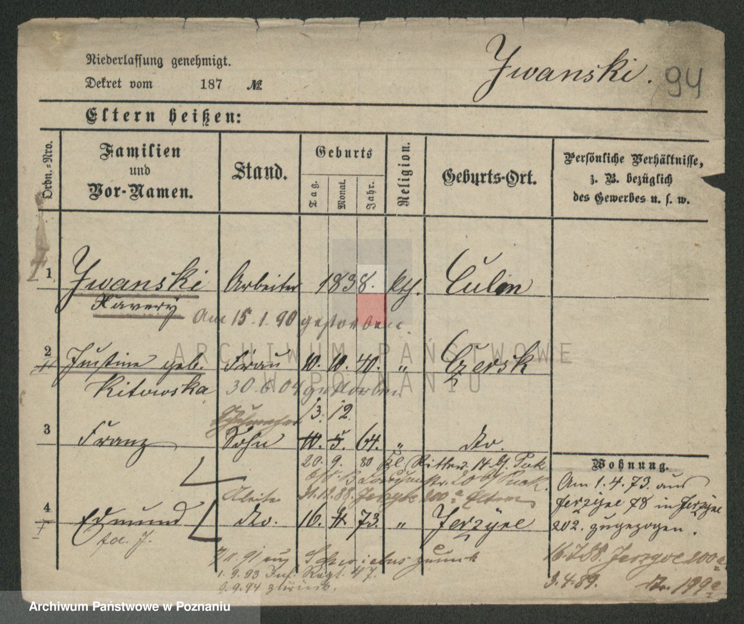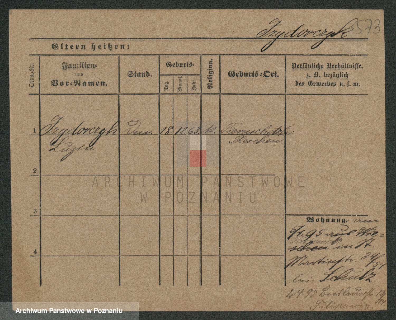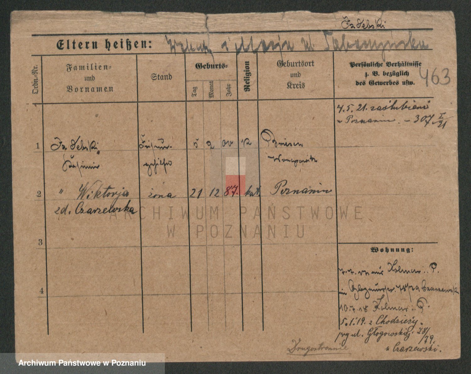 Podgląd karty osobowej dostępny jest po kliknięciu na nazwisko lub ikonkę karty. Można dokonywać powiększenia (ikony na górze) lub przechodzić między kolejnymi skanami (strzałki po bokach).