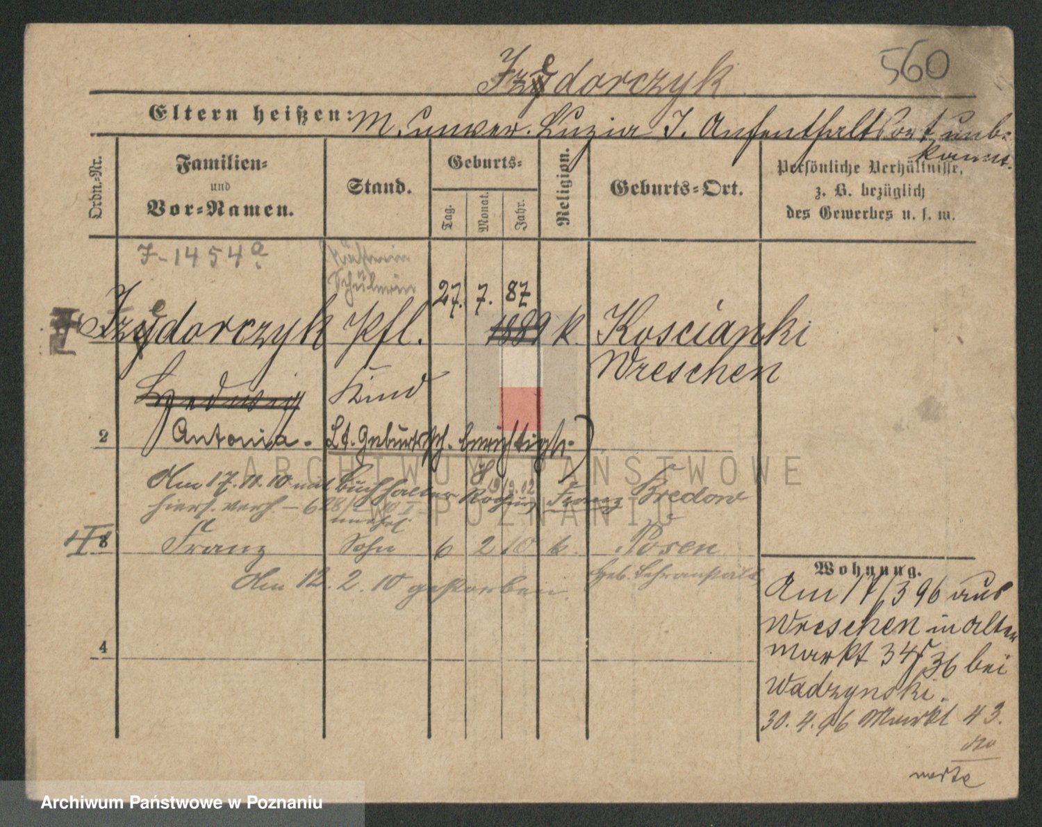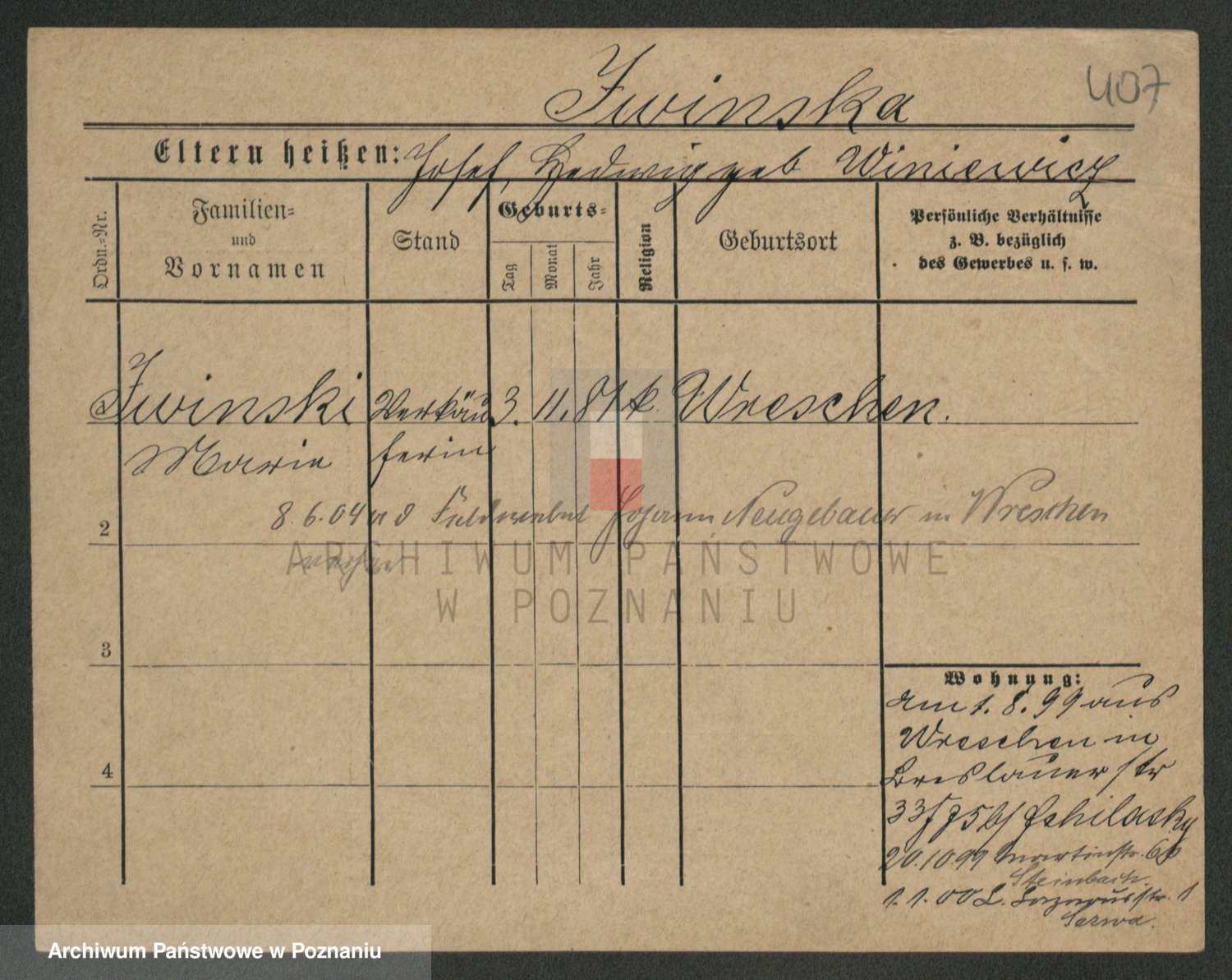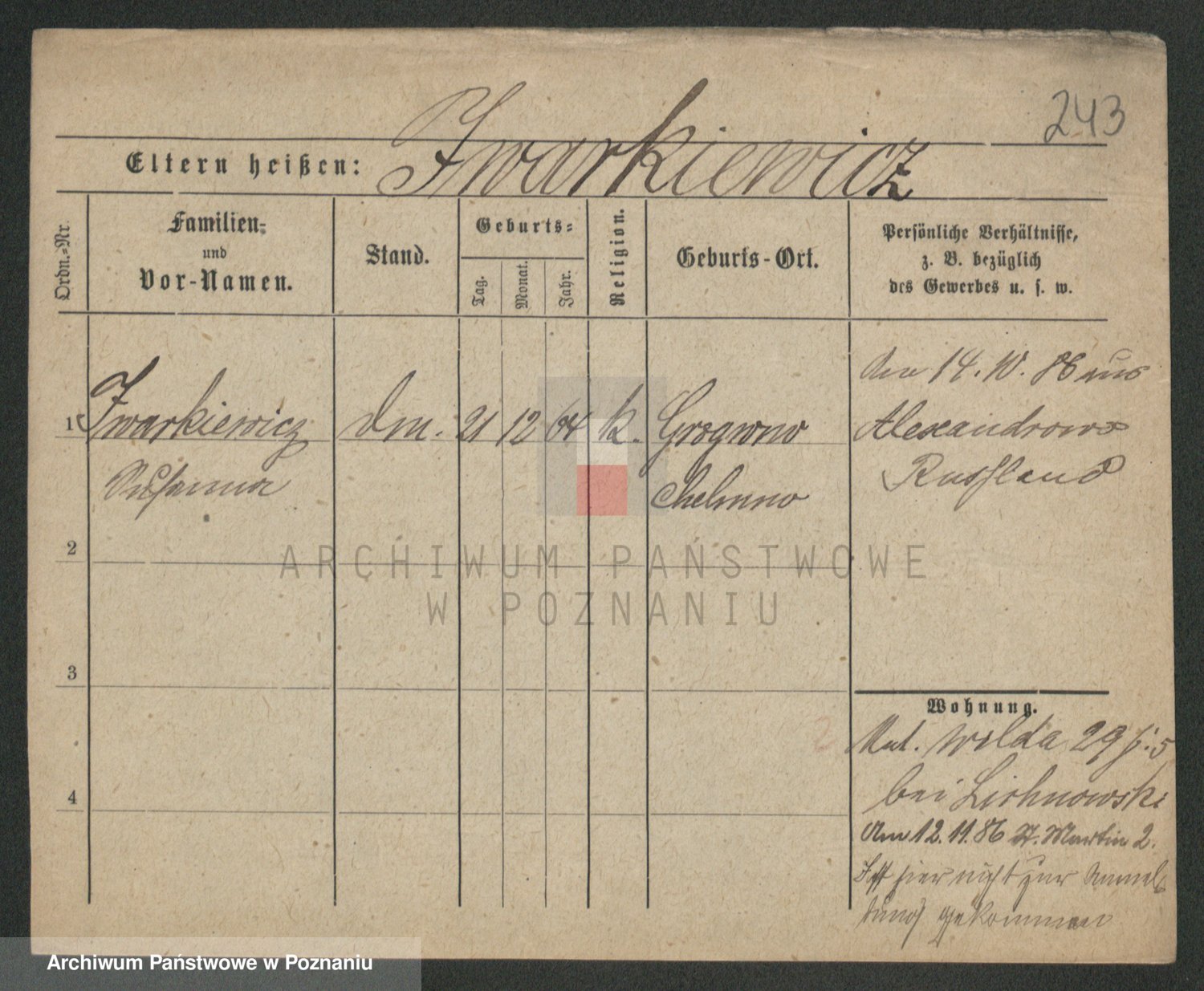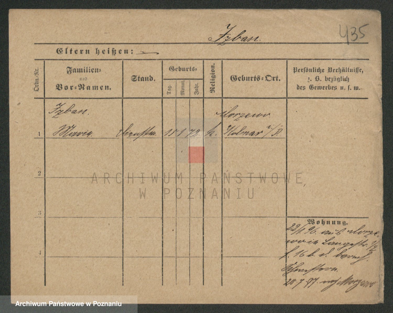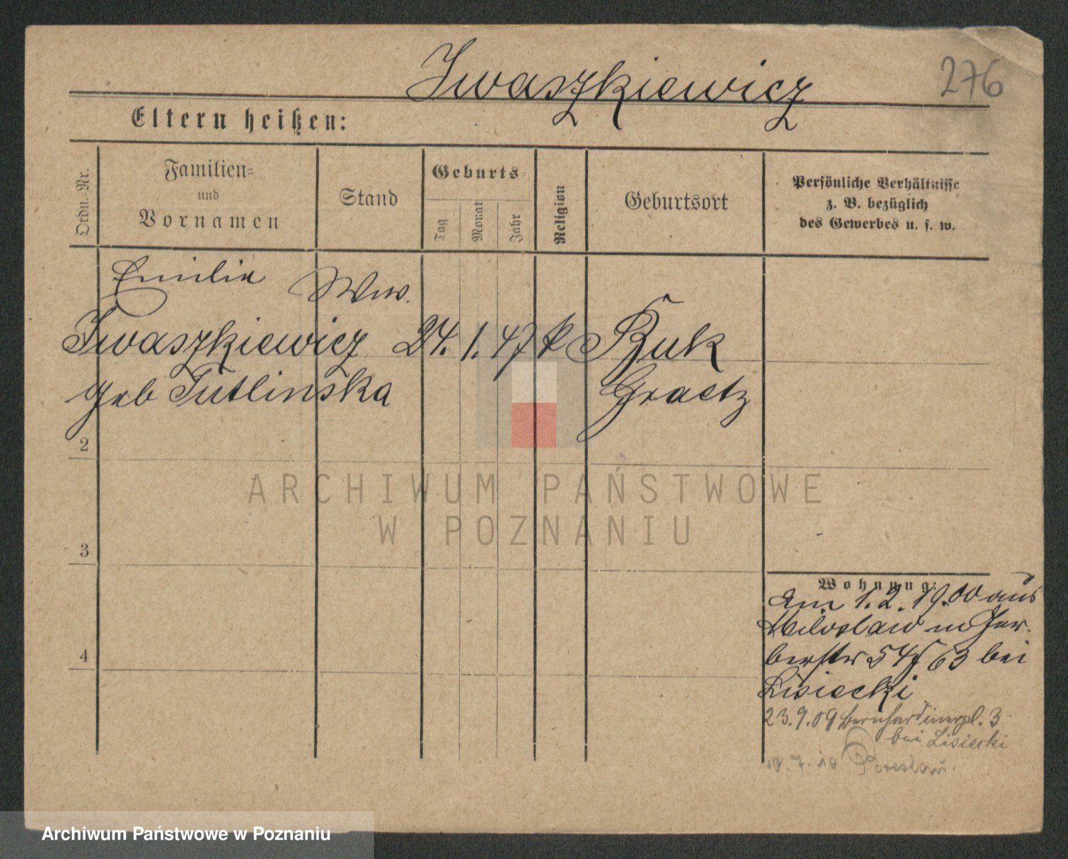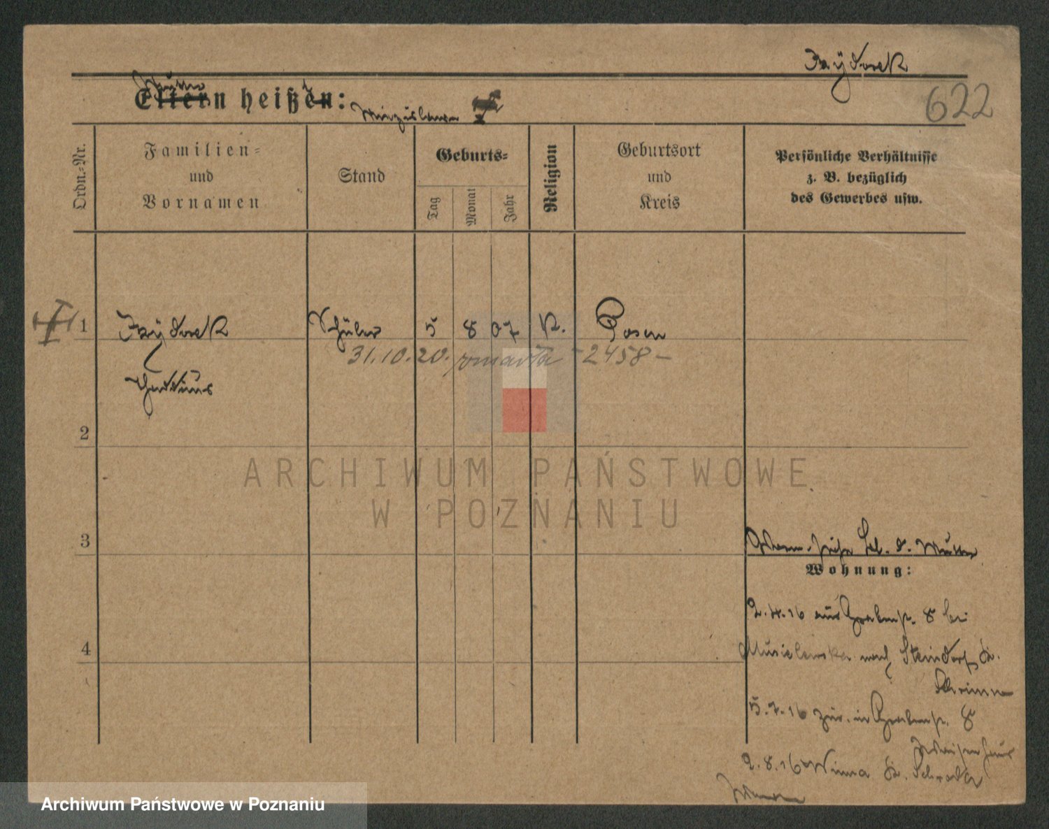 Podgląd karty osobowej dostępny jest po kliknięciu na nazwisko lub ikonkę karty. Można dokonywać powiększenia (ikony na górze) lub przechodzić między kolejnymi skanami (strzałki po bokach).