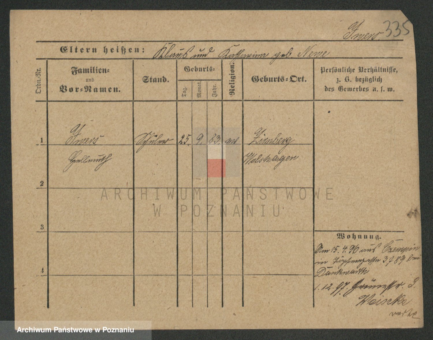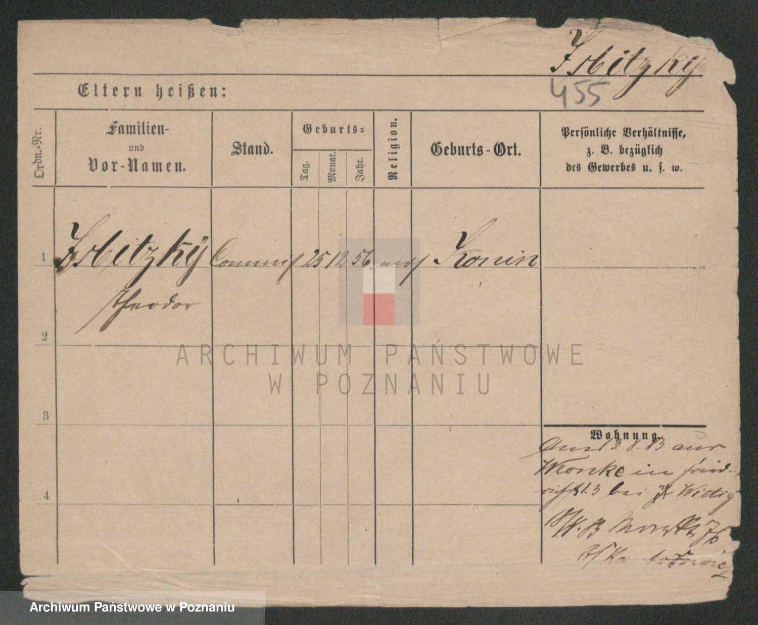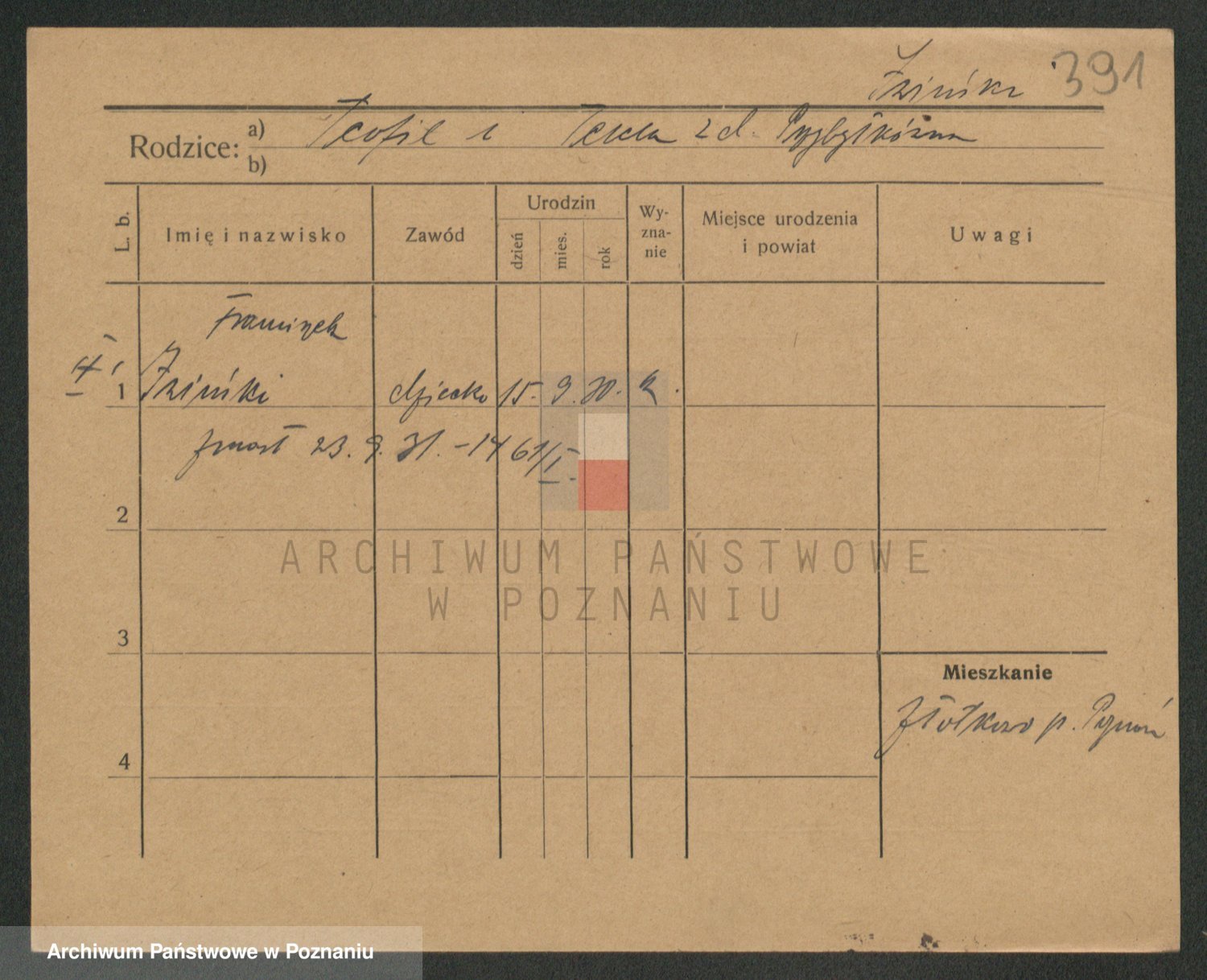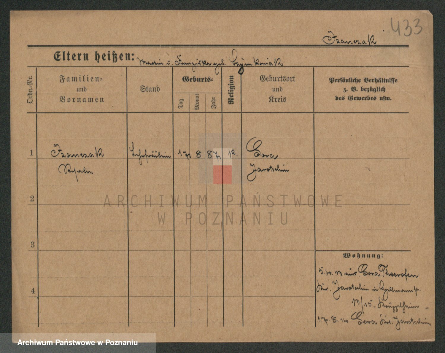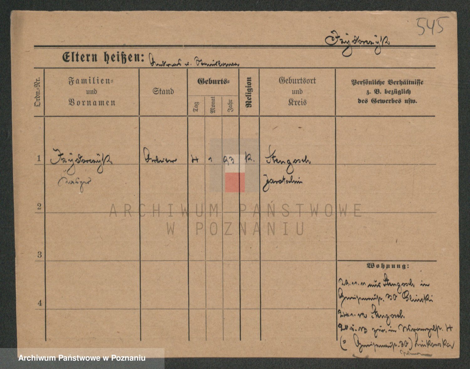 Podgląd karty osobowej dostępny jest po kliknięciu na nazwisko lub ikonkę karty. Można dokonywać powiększenia (ikony na górze) lub przechodzić między kolejnymi skanami (strzałki po bokach).