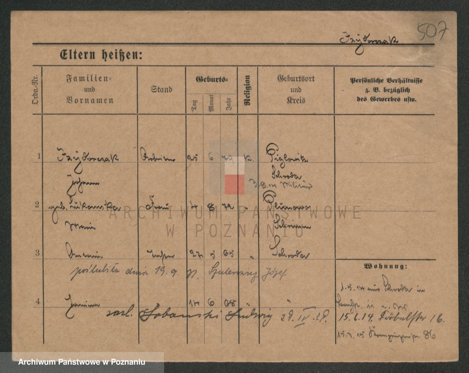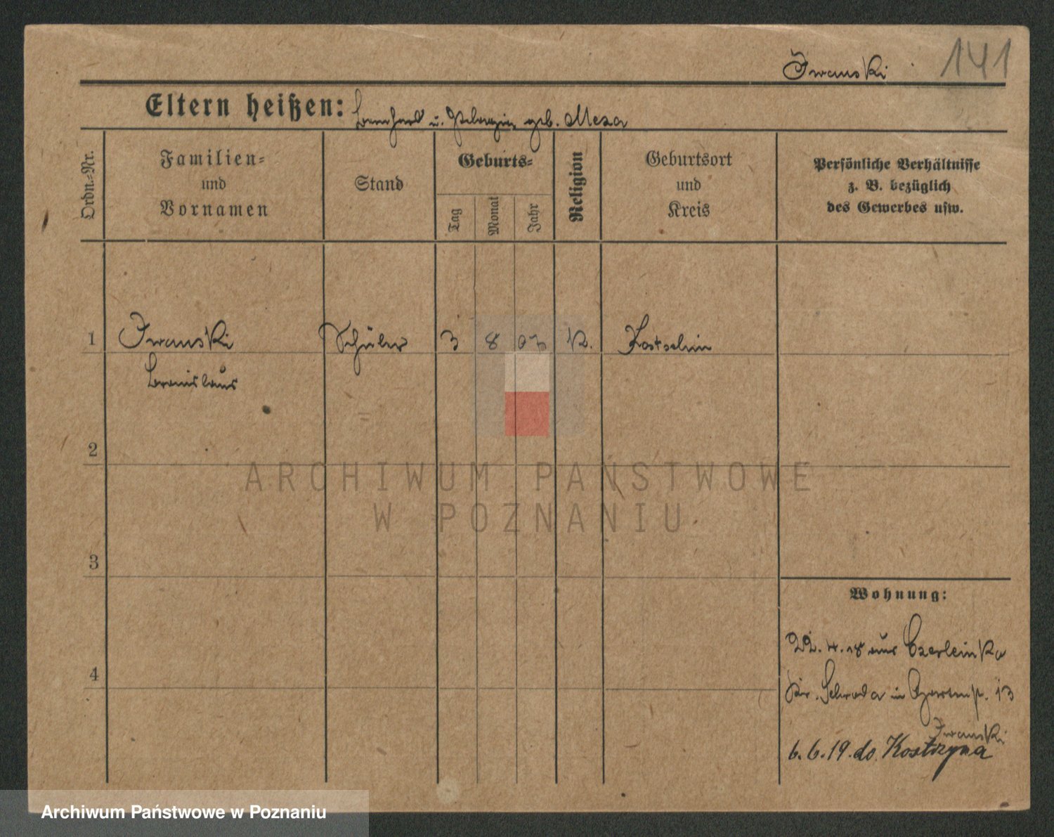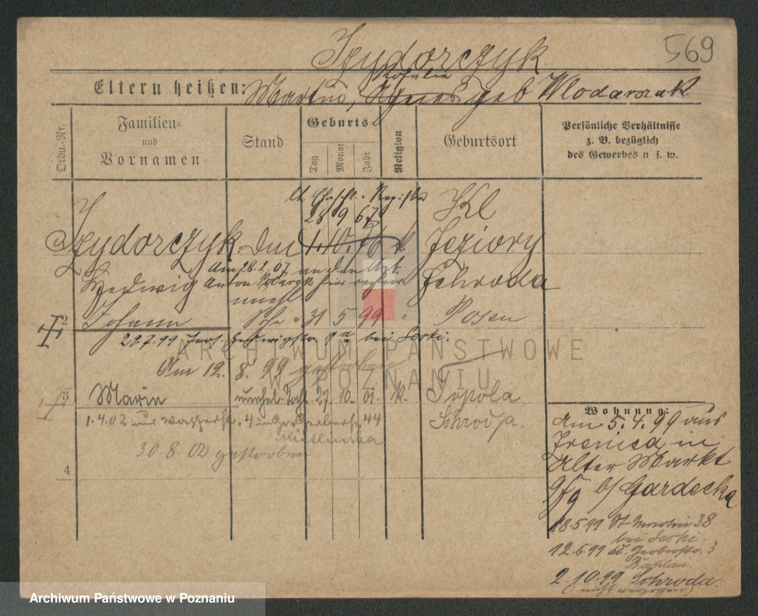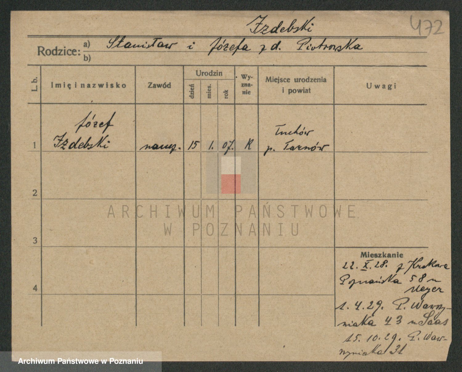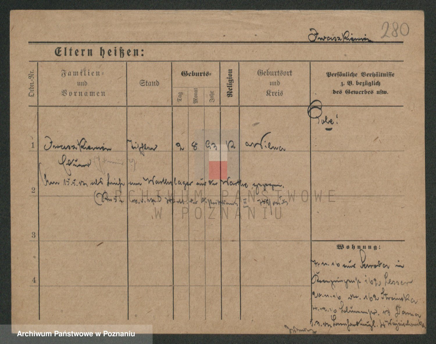 Podgląd karty osobowej dostępny jest po kliknięciu na nazwisko lub ikonkę karty. Można dokonywać powiększenia (ikony na górze) lub przechodzić między kolejnymi skanami (strzałki po bokach).