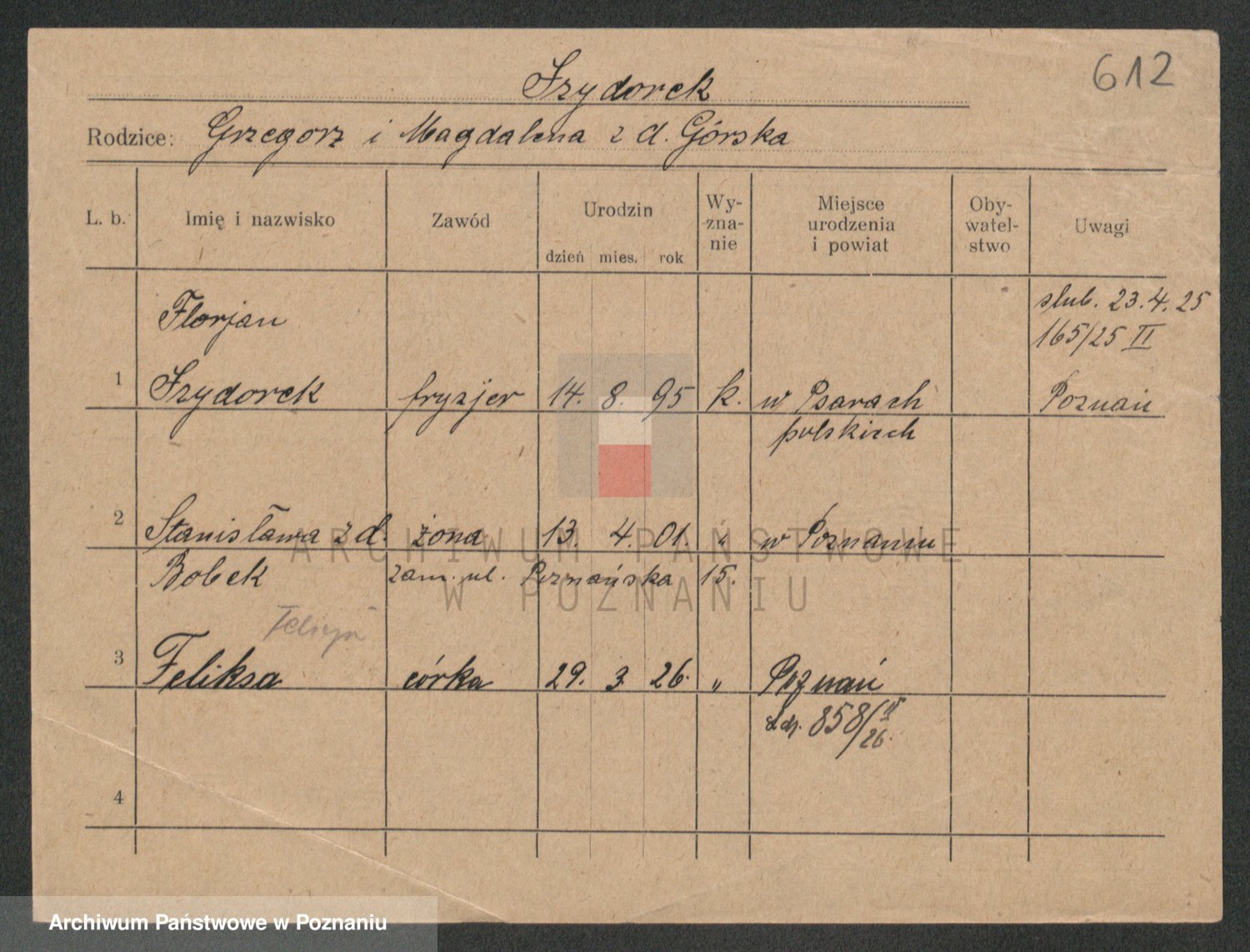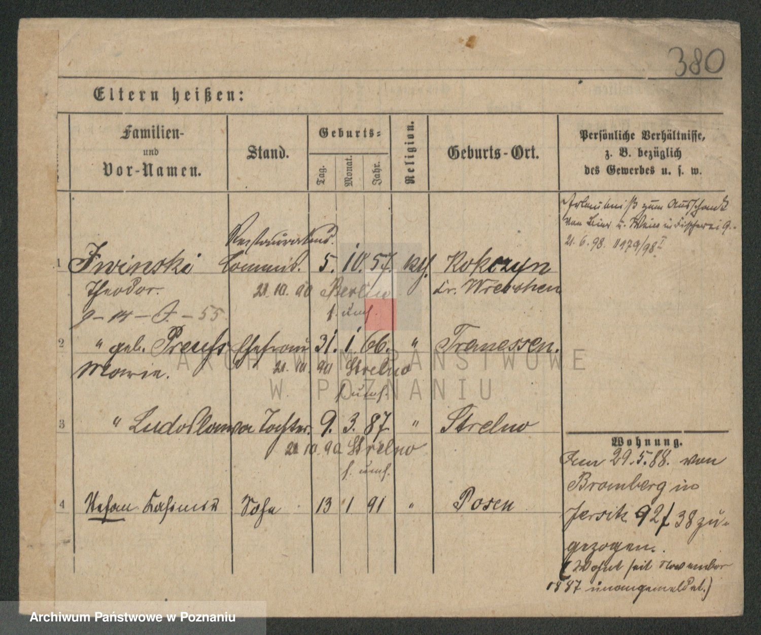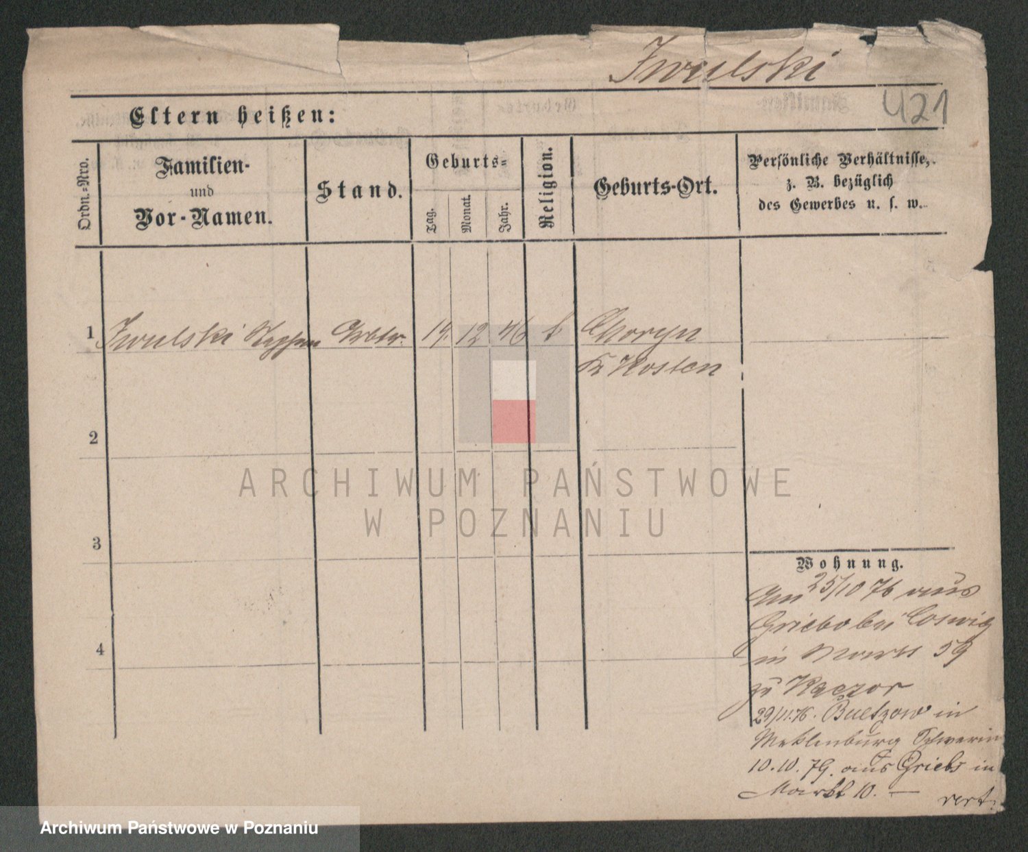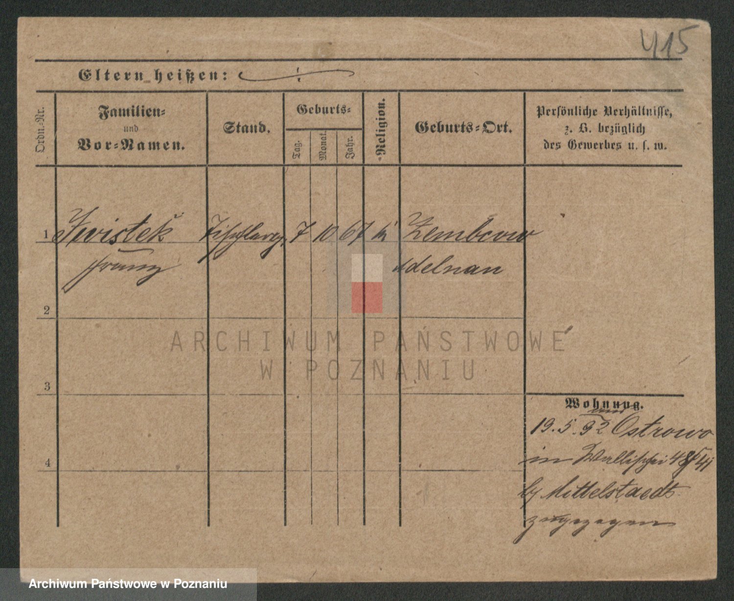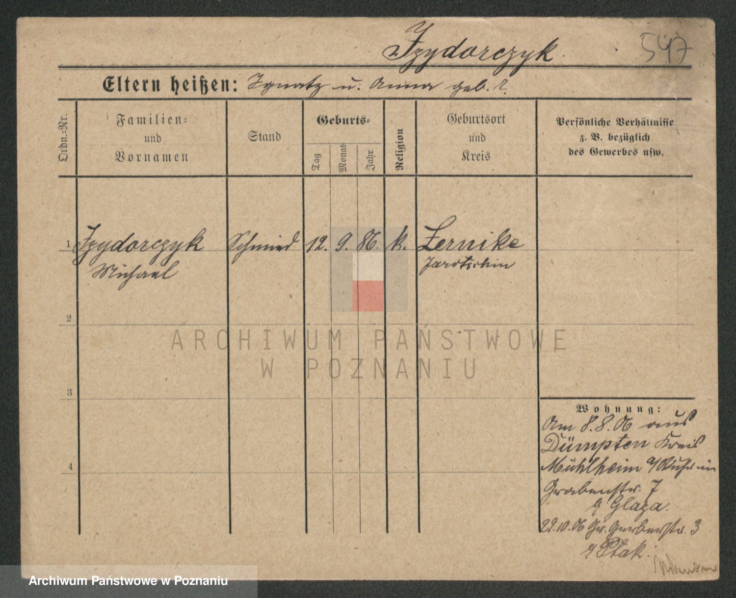 Podgląd karty osobowej dostępny jest po kliknięciu na nazwisko lub ikonkę karty. Można dokonywać powiększenia (ikony na górze) lub przechodzić między kolejnymi skanami (strzałki po bokach).