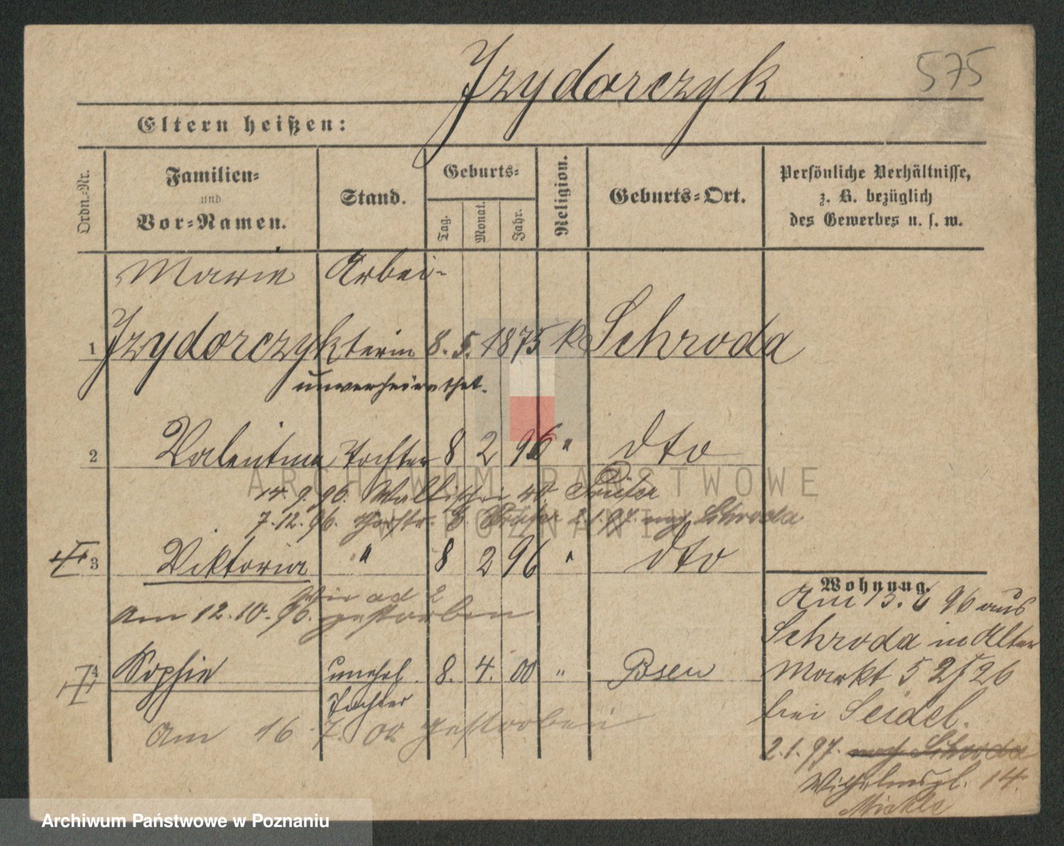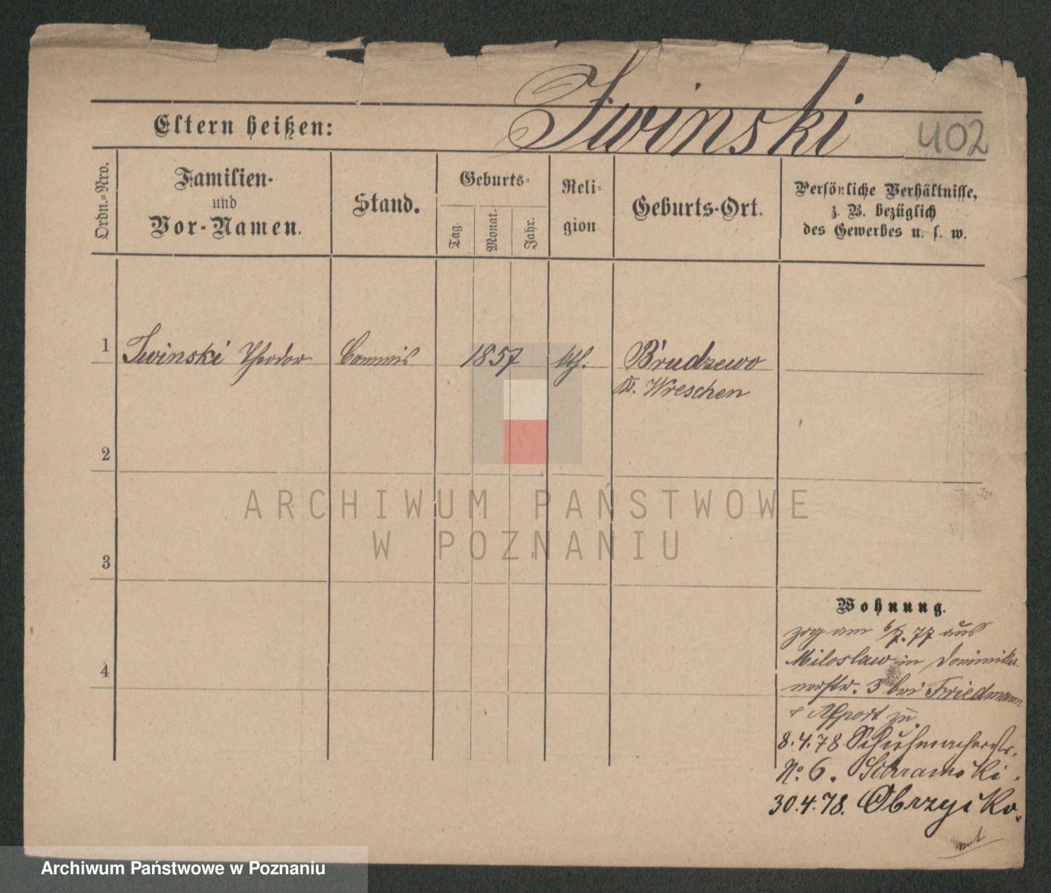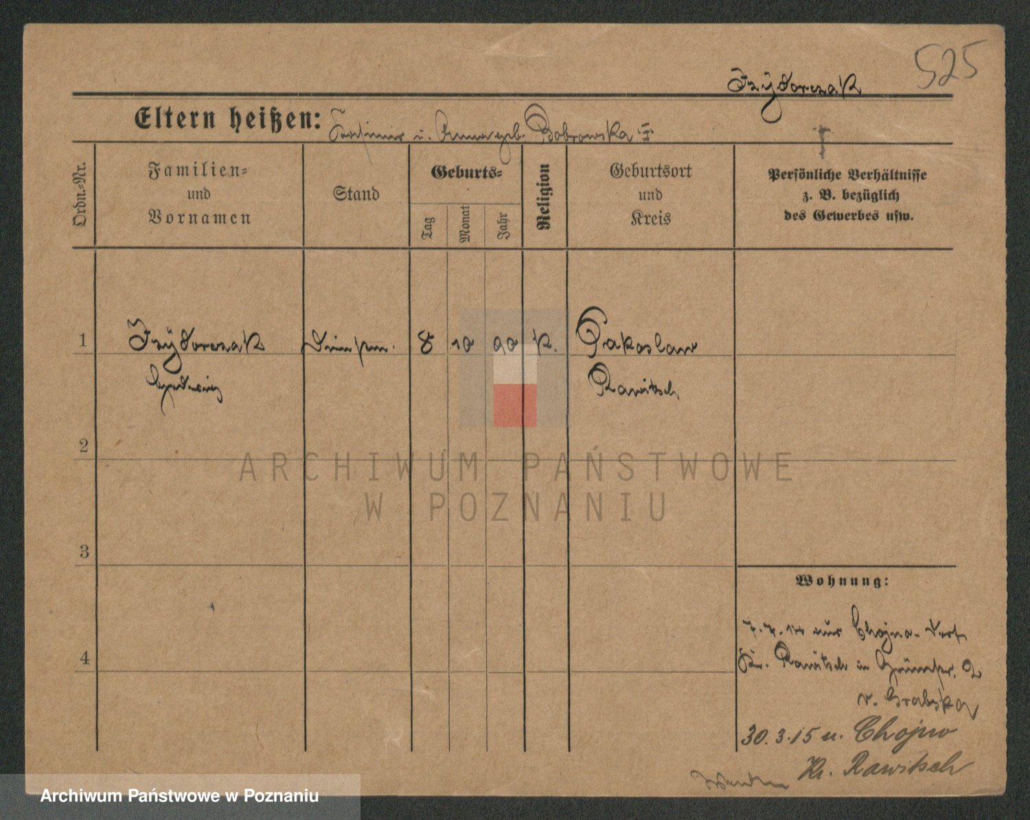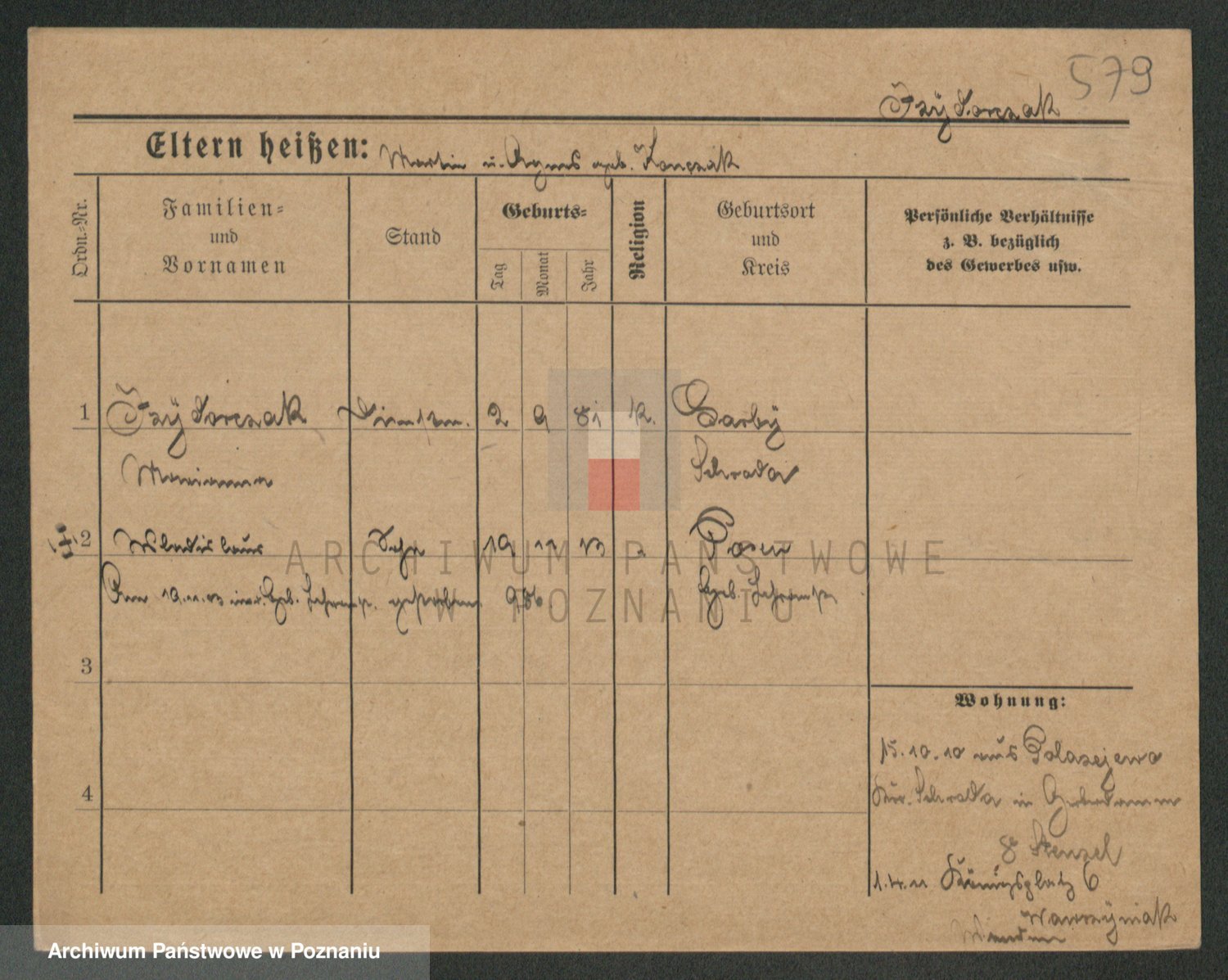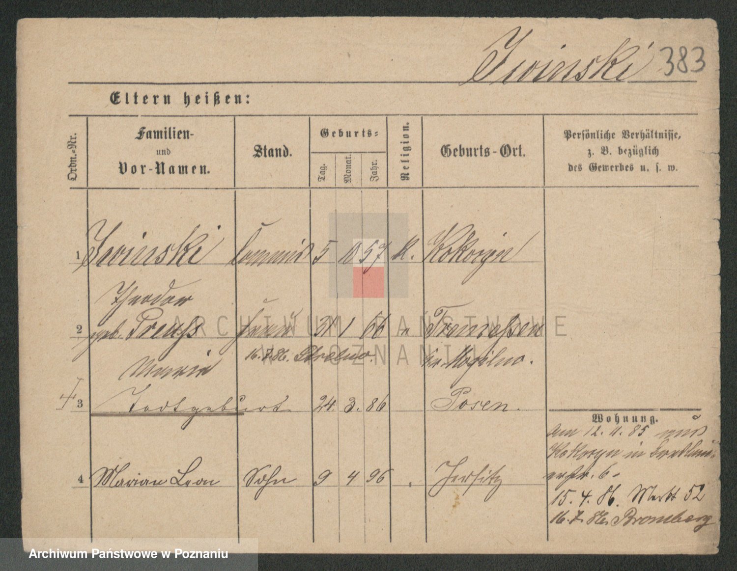 Podgląd karty osobowej dostępny jest po kliknięciu na nazwisko lub ikonkę karty. Można dokonywać powiększenia (ikony na górze) lub przechodzić między kolejnymi skanami (strzałki po bokach).