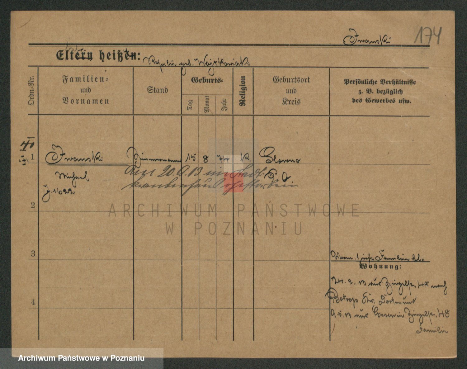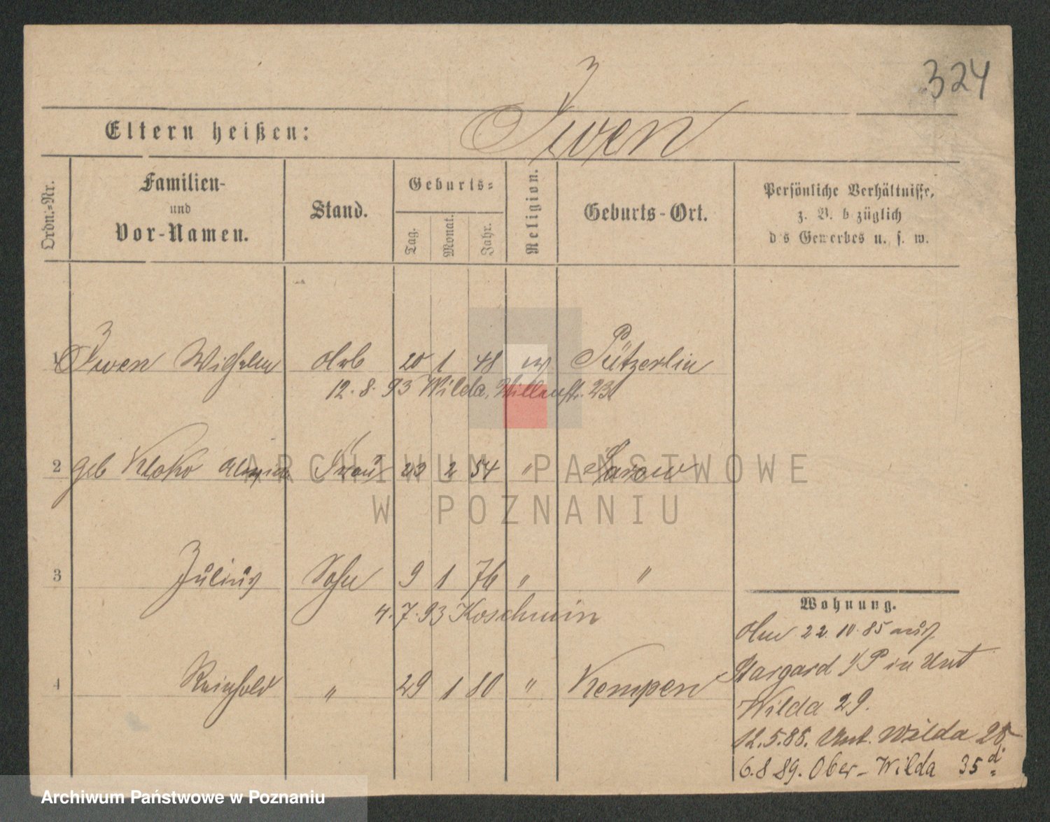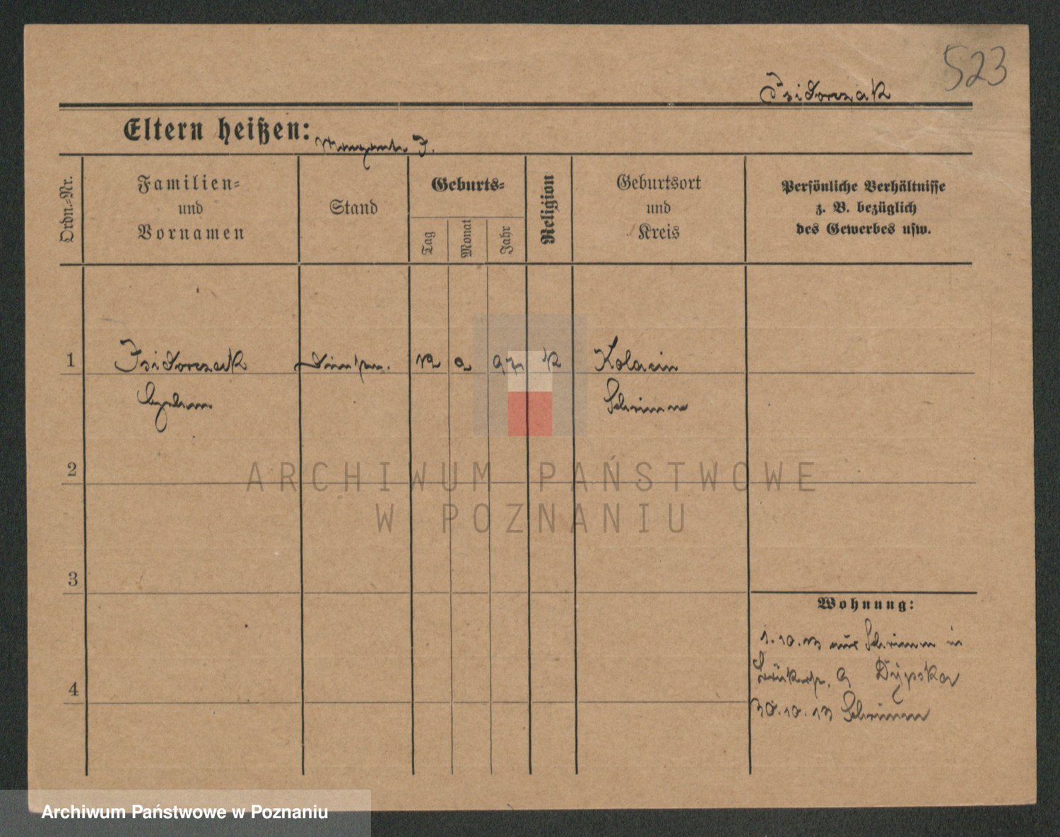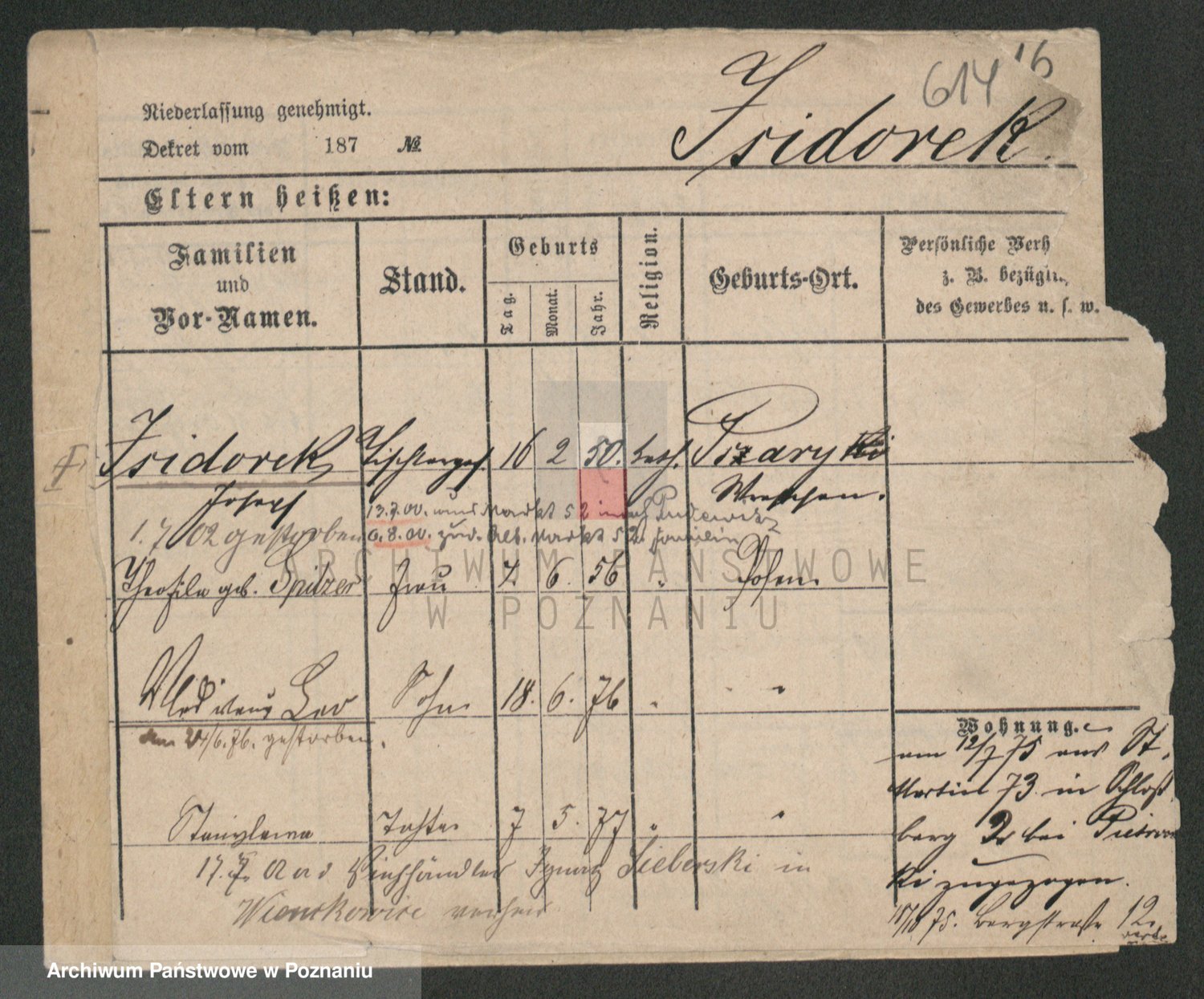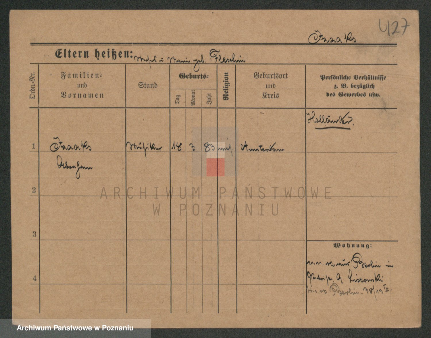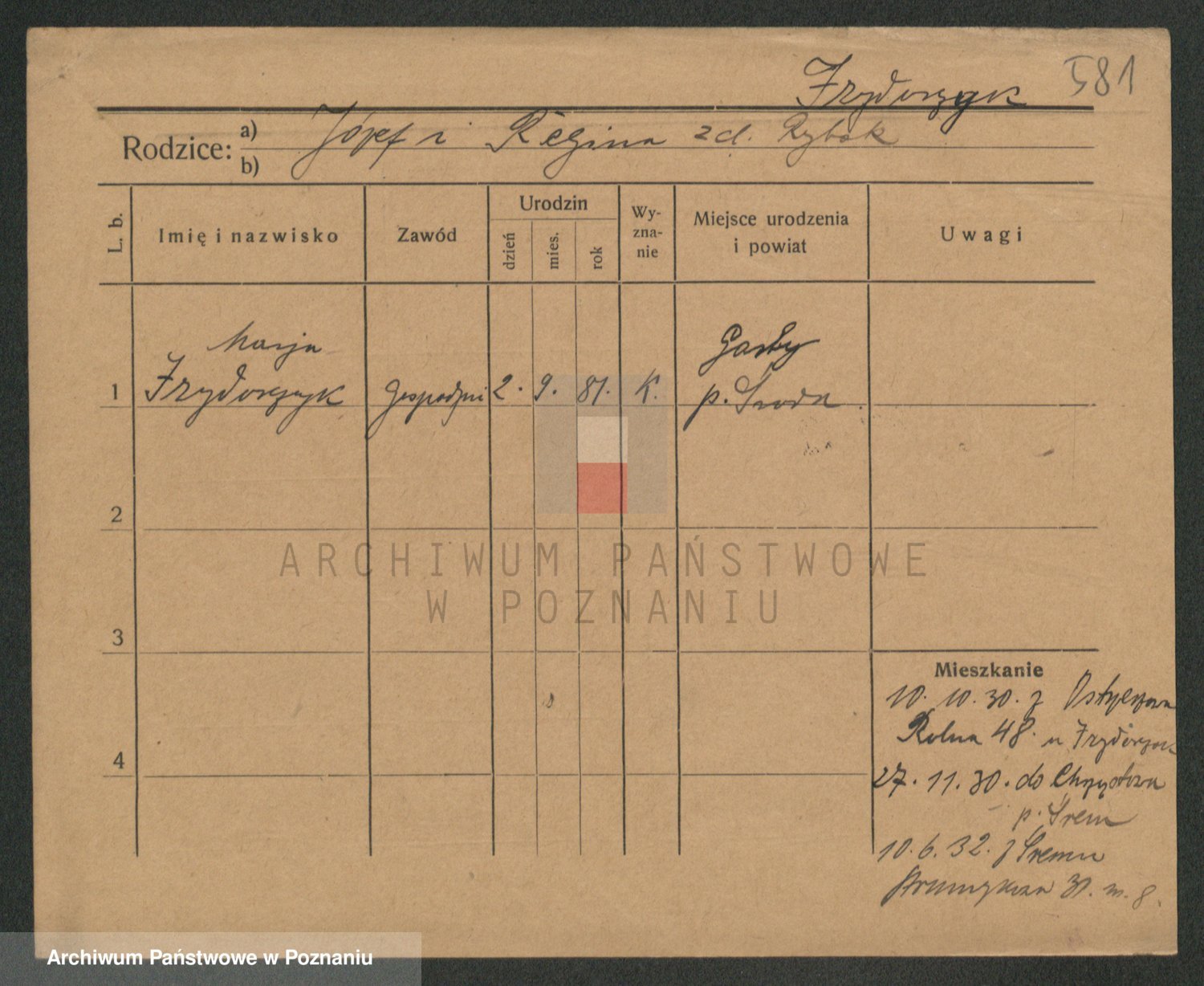 Podgląd karty osobowej dostępny jest po kliknięciu na nazwisko lub ikonkę karty. Można dokonywać powiększenia (ikony na górze) lub przechodzić między kolejnymi skanami (strzałki po bokach).