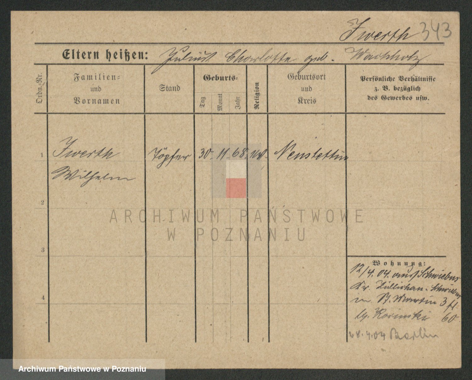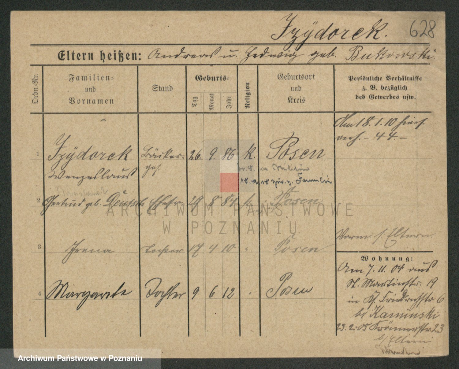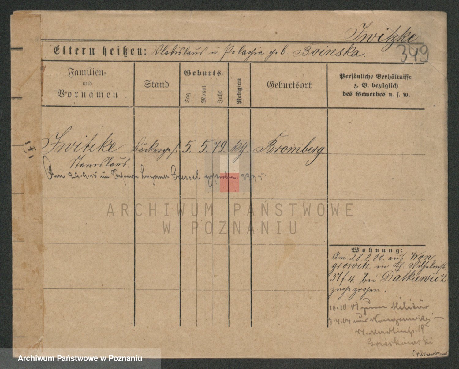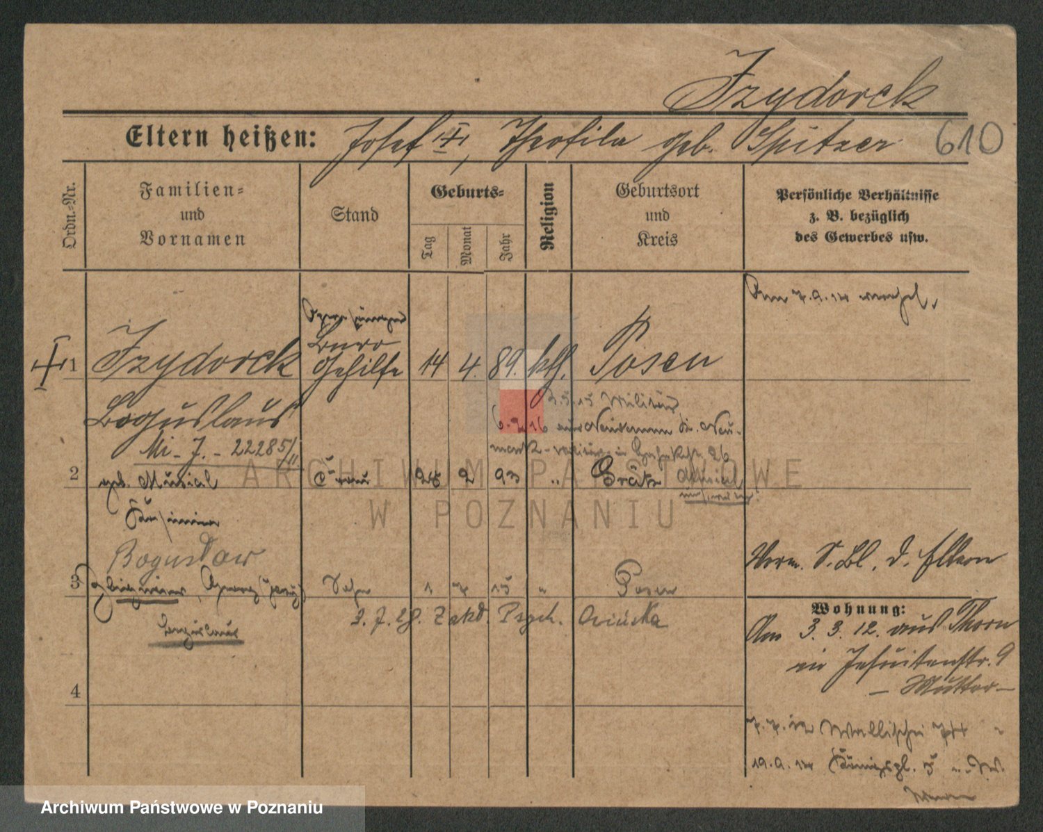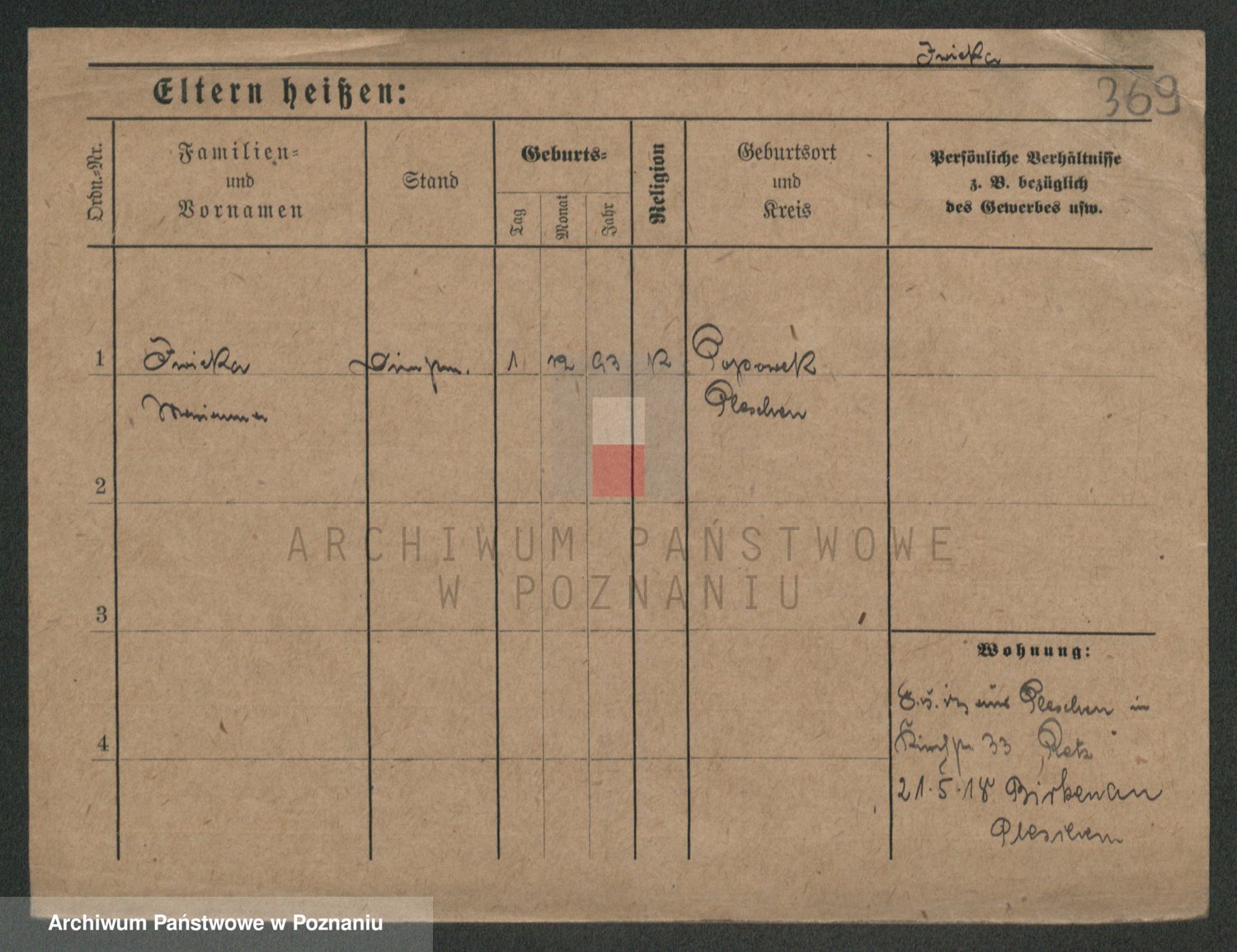 Podgląd karty osobowej dostępny jest po kliknięciu na nazwisko lub ikonkę karty. Można dokonywać powiększenia (ikony na górze) lub przechodzić między kolejnymi skanami (strzałki po bokach).