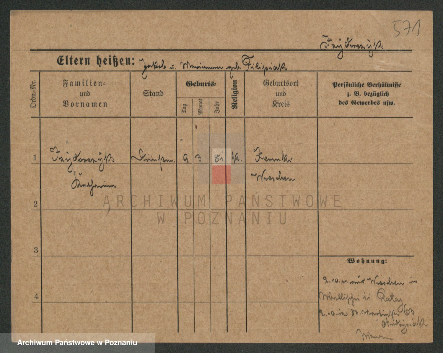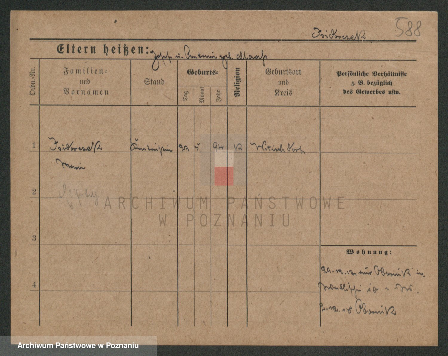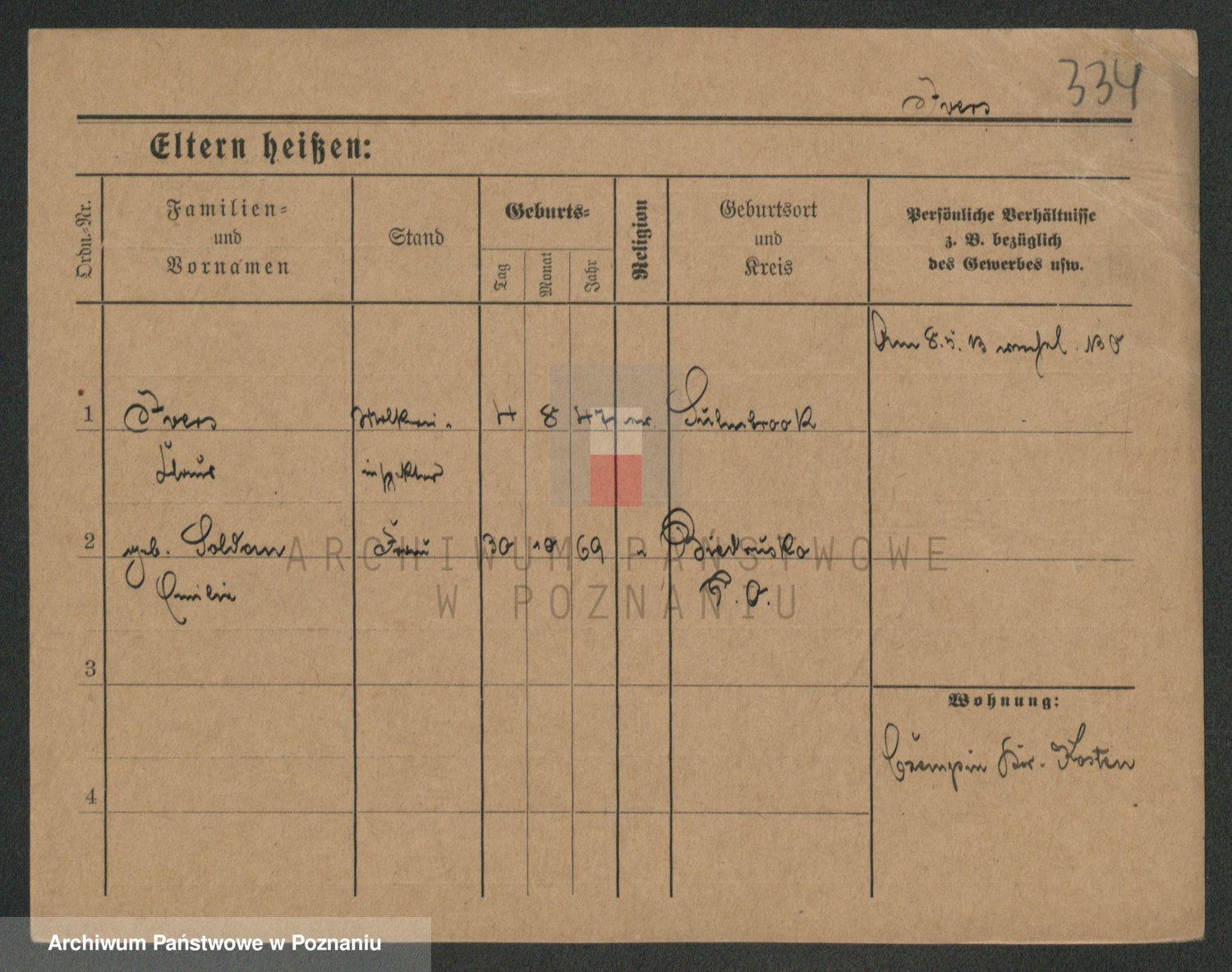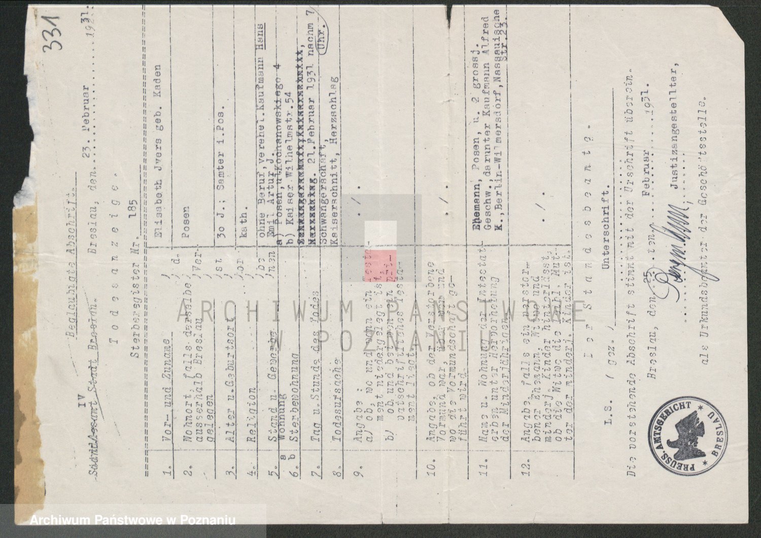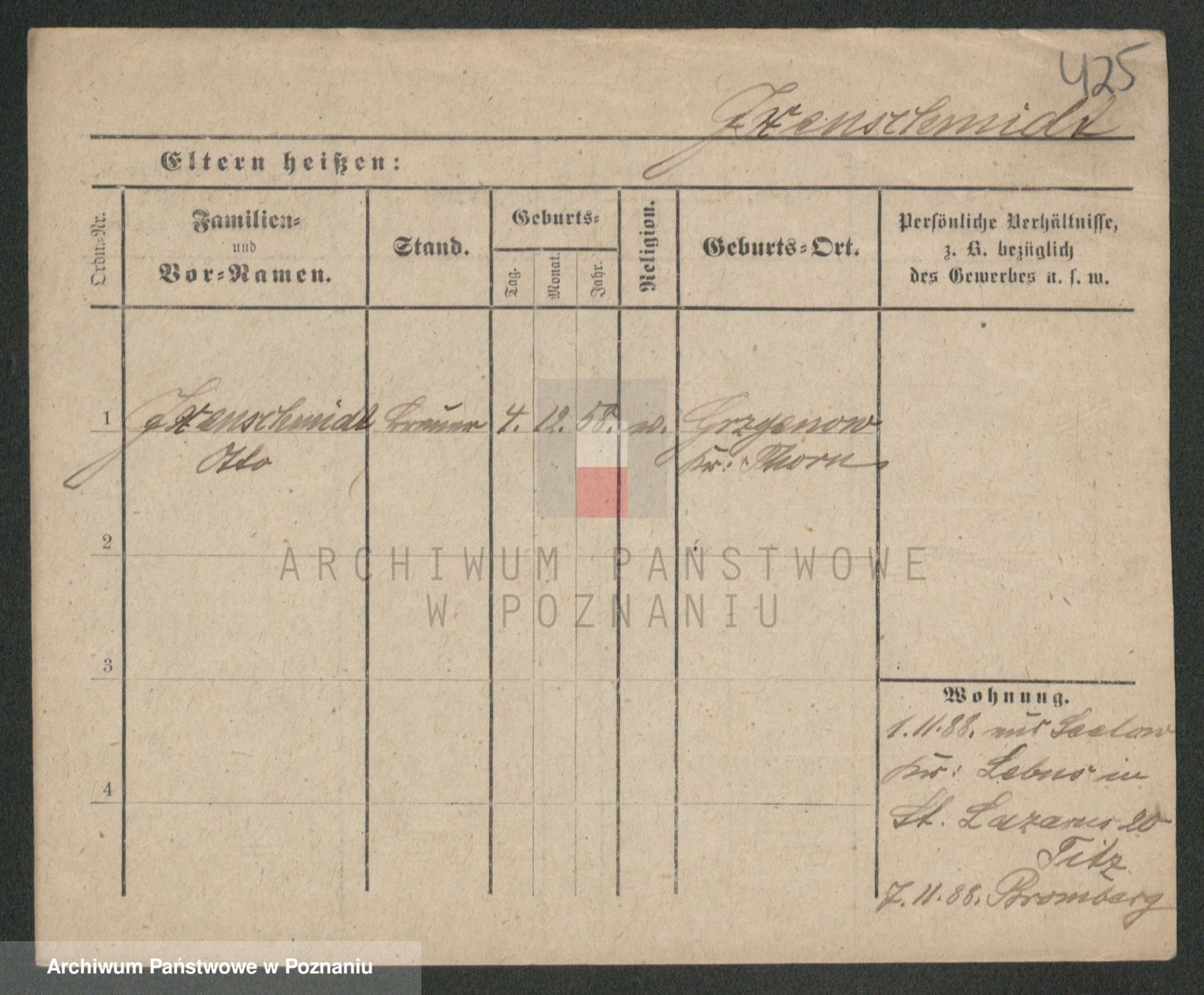 Podgląd karty osobowej dostępny jest po kliknięciu na nazwisko lub ikonkę karty. Można dokonywać powiększenia (ikony na górze) lub przechodzić między kolejnymi skanami (strzałki po bokach).