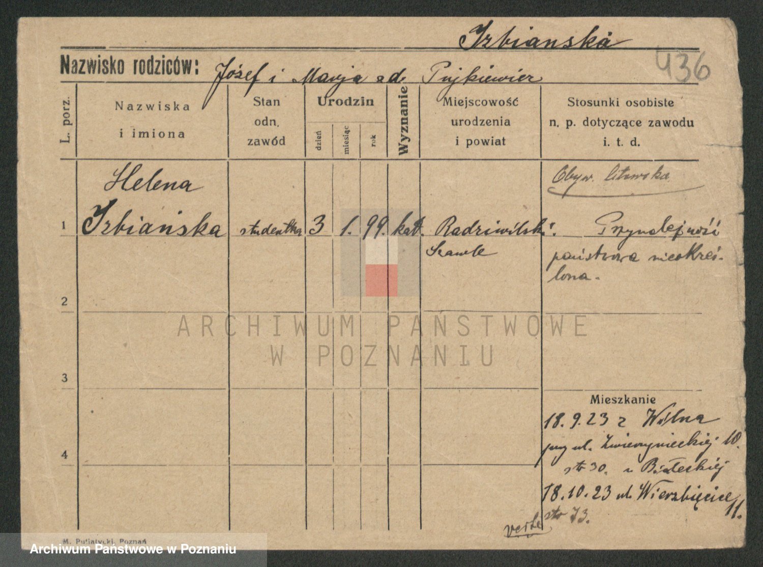 Iwanowicz z d. Tykocińska, Irena