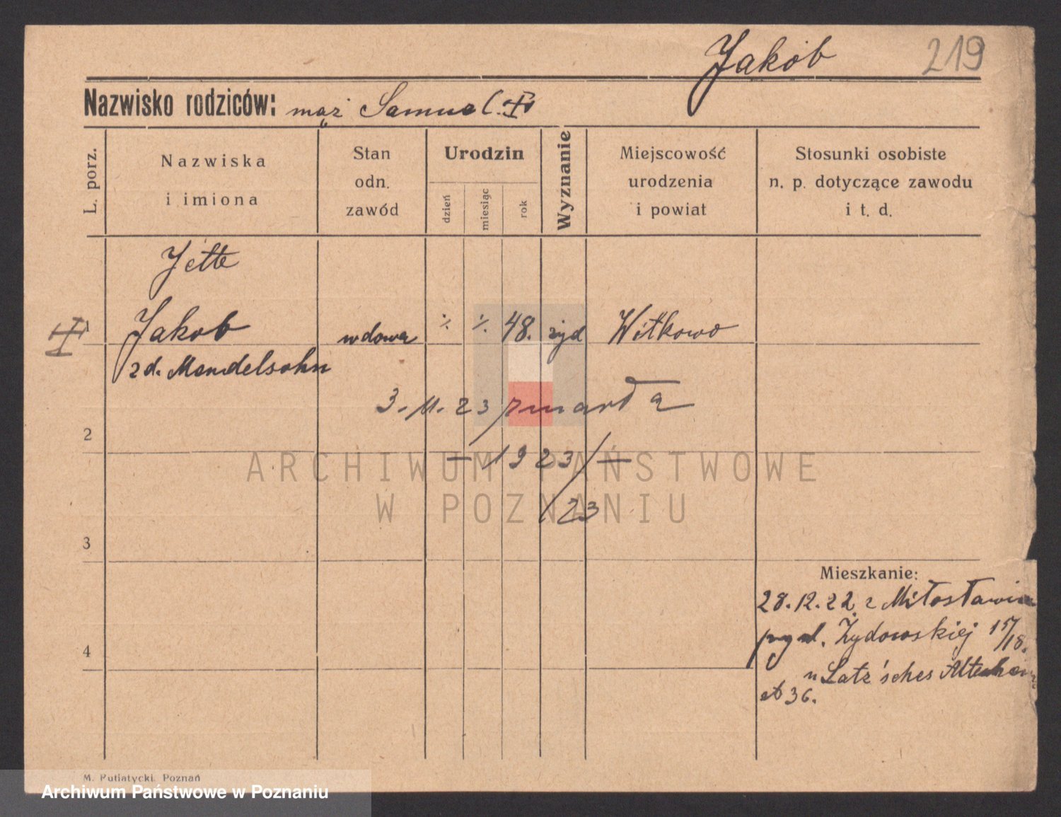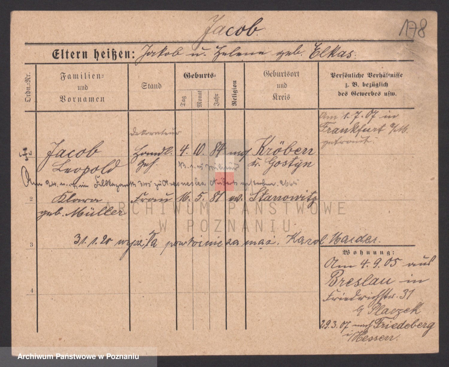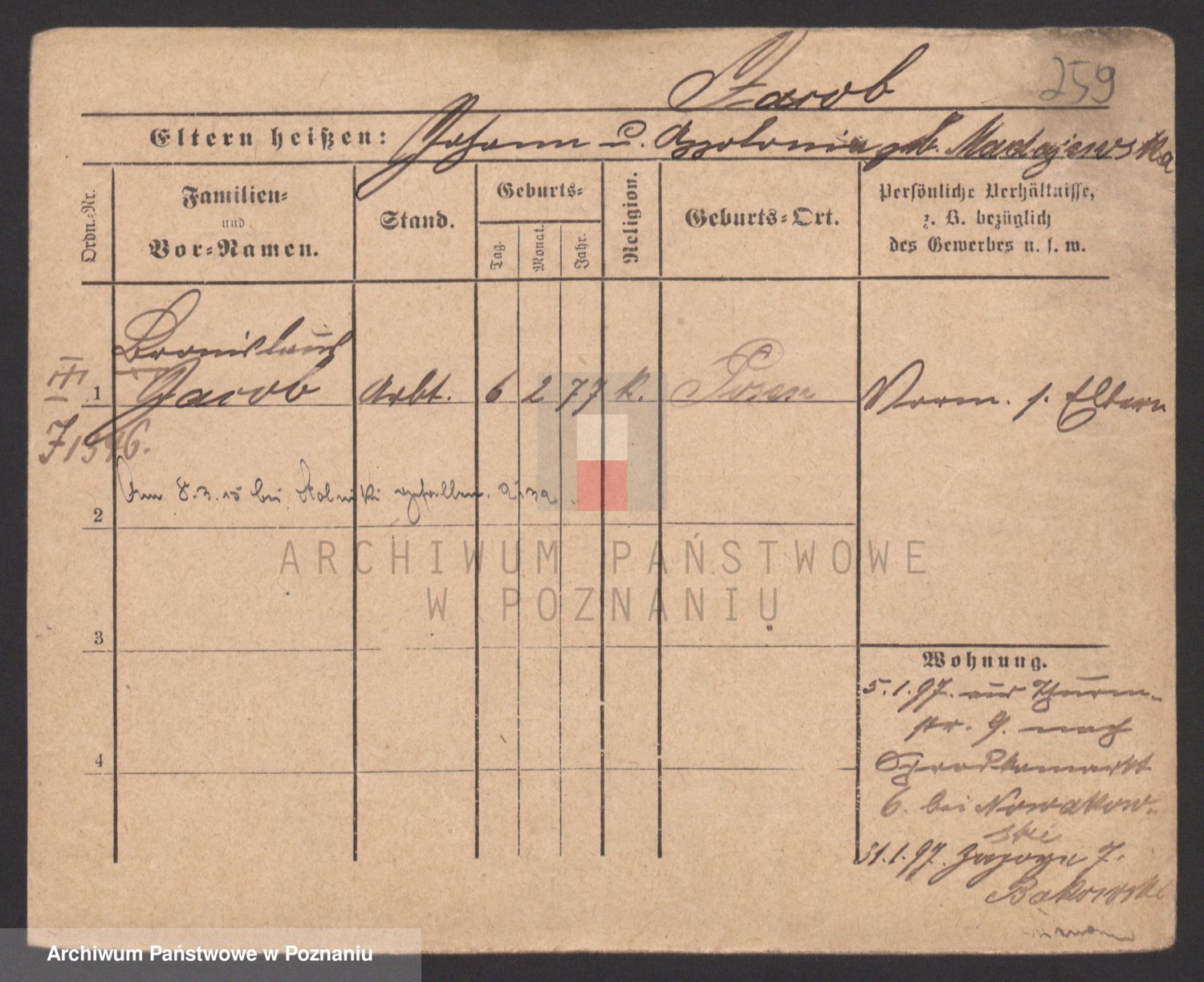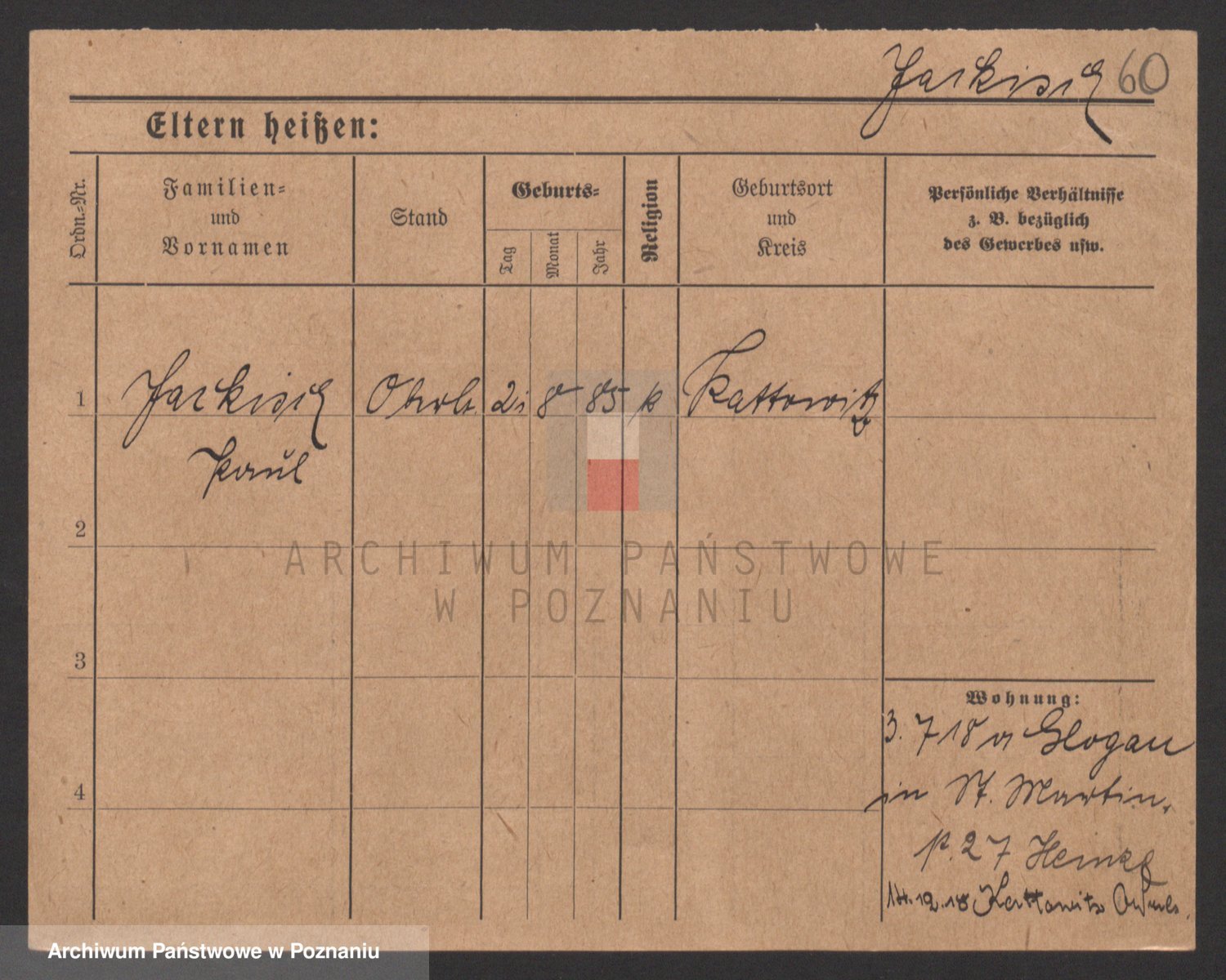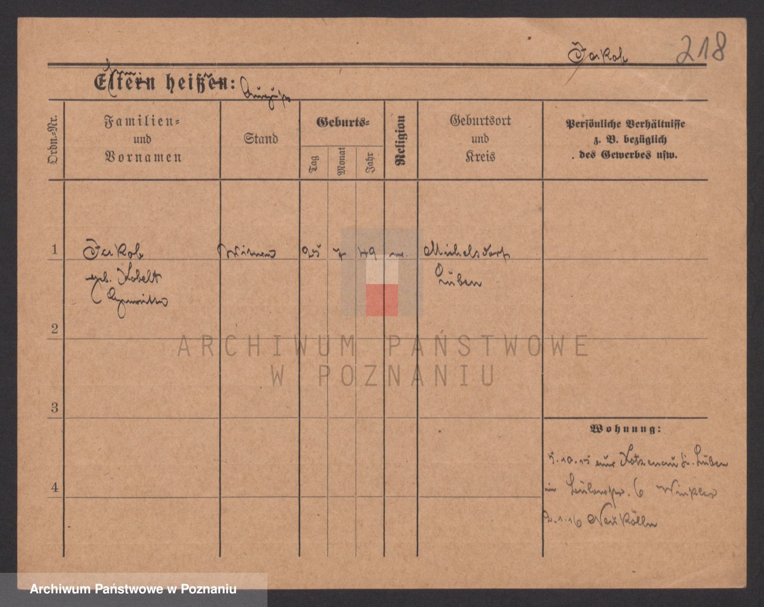 Podgląd karty osobowej dostępny jest po kliknięciu na nazwisko lub ikonkę karty. Można dokonywać powiększenia (ikony na górze) lub przechodzić między kolejnymi skanami (strzałki po bokach).