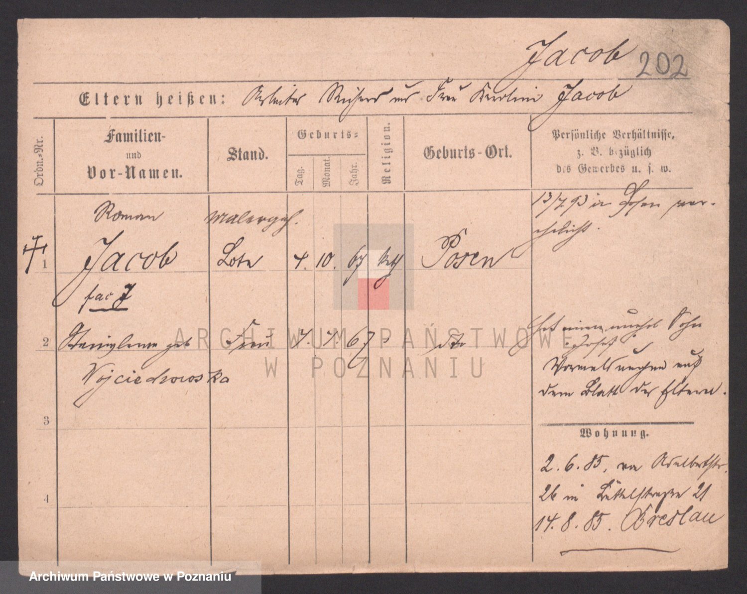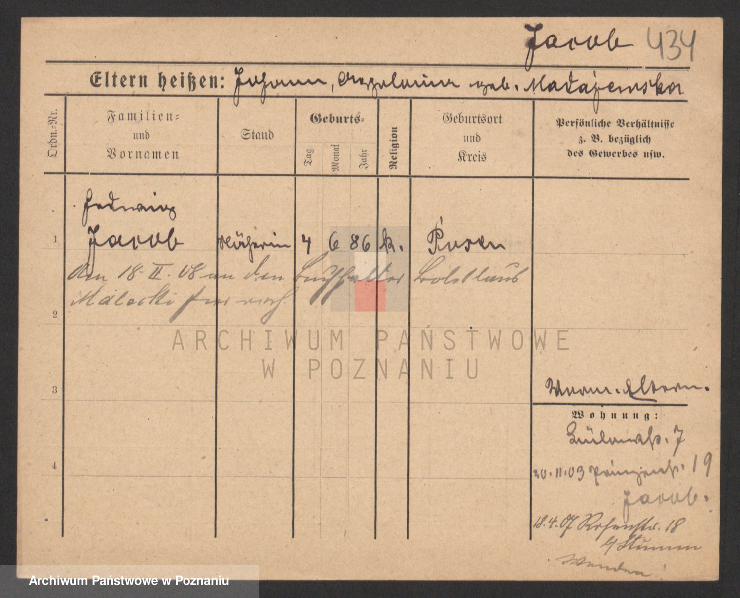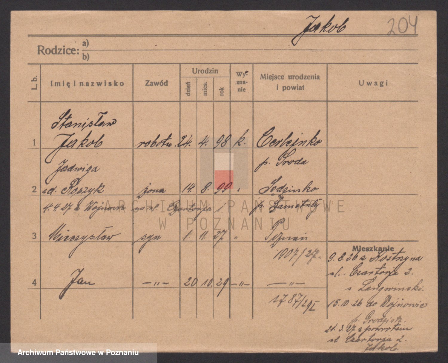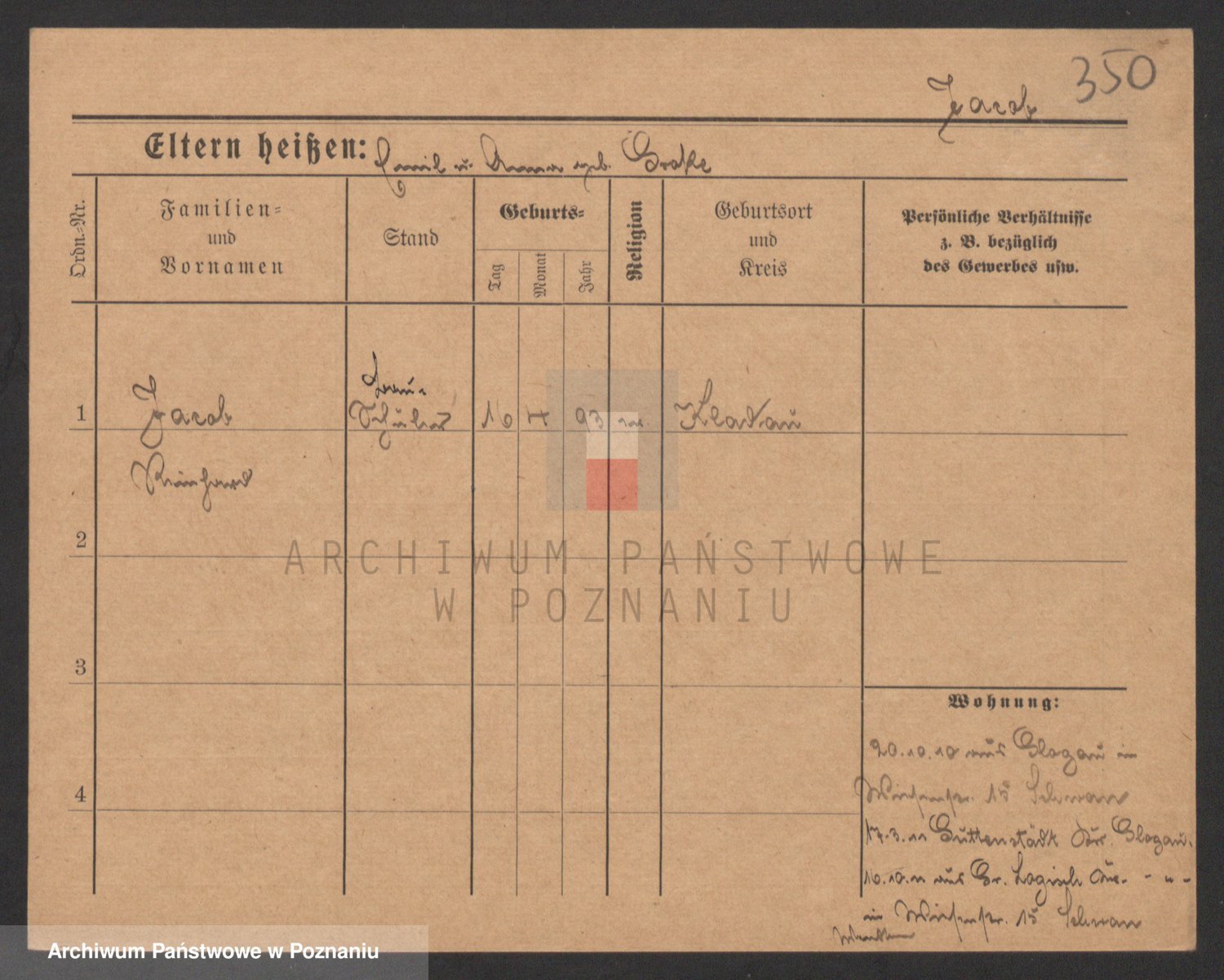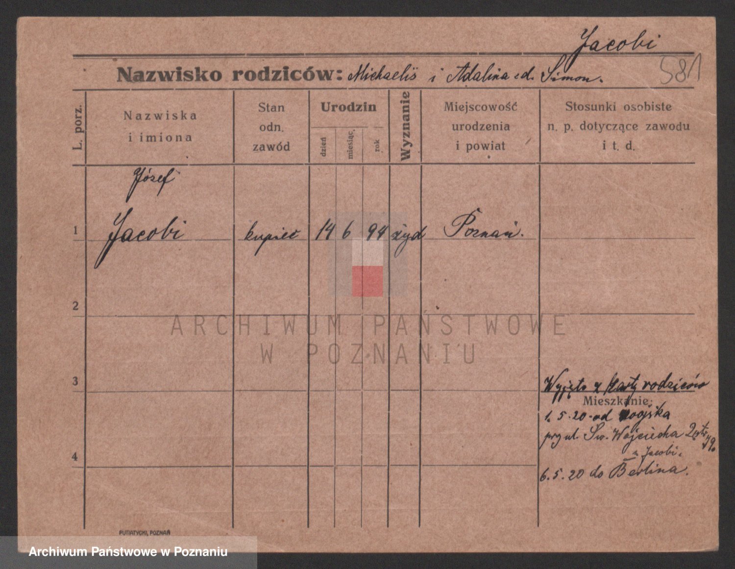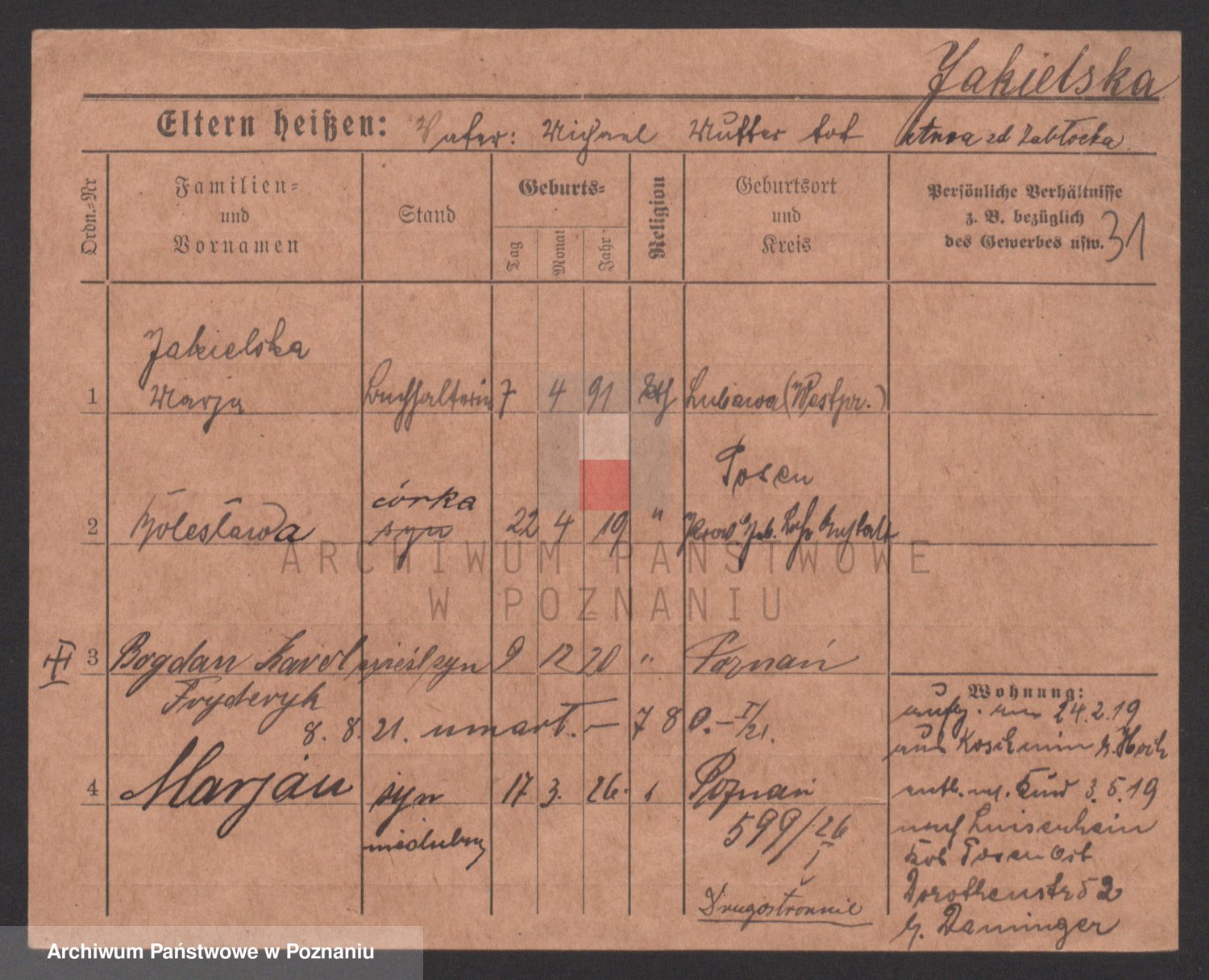 Podgląd karty osobowej dostępny jest po kliknięciu na nazwisko lub ikonkę karty. Można dokonywać powiększenia (ikony na górze) lub przechodzić między kolejnymi skanami (strzałki po bokach).