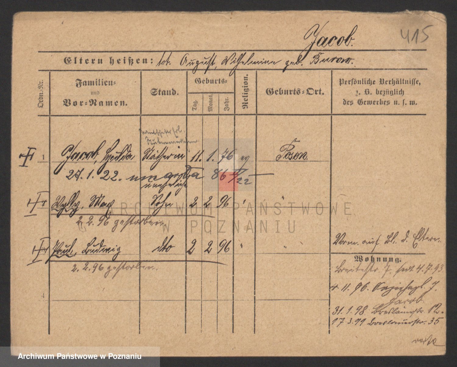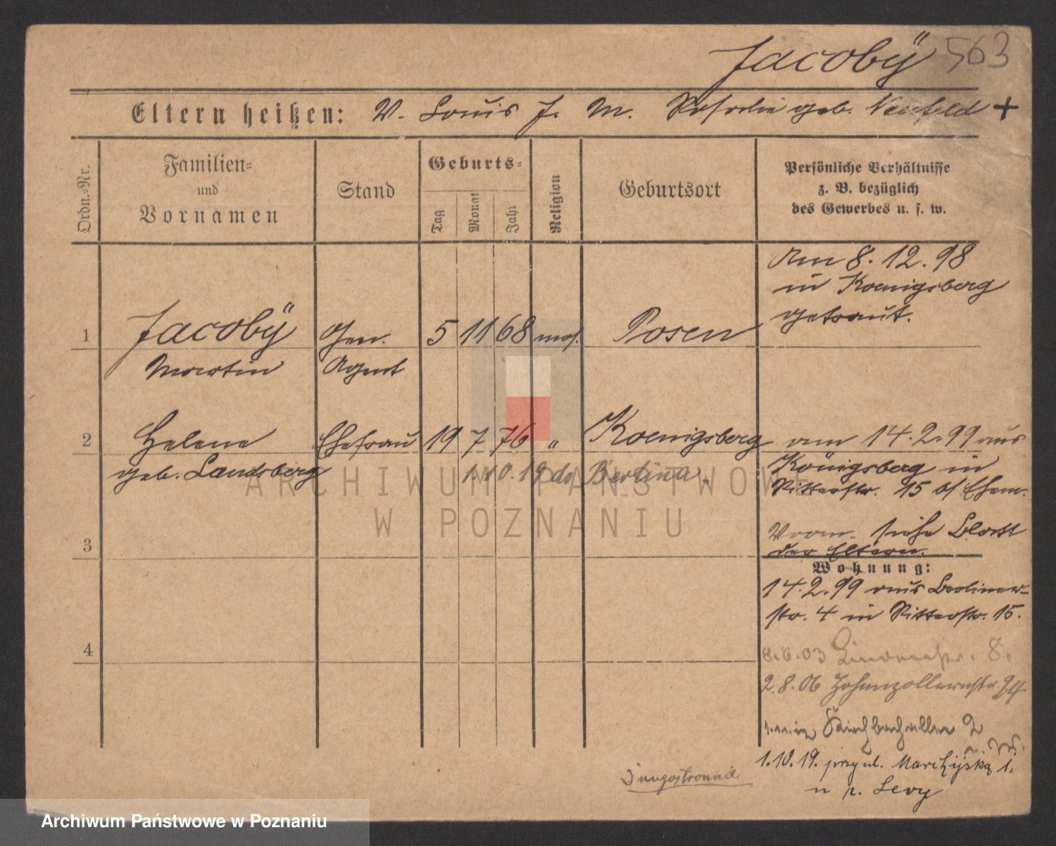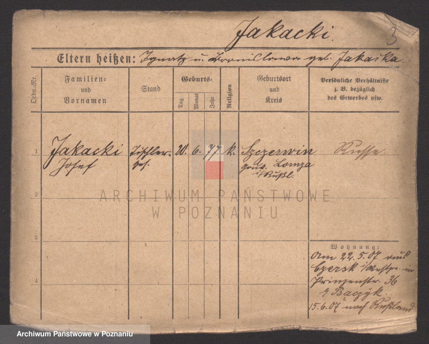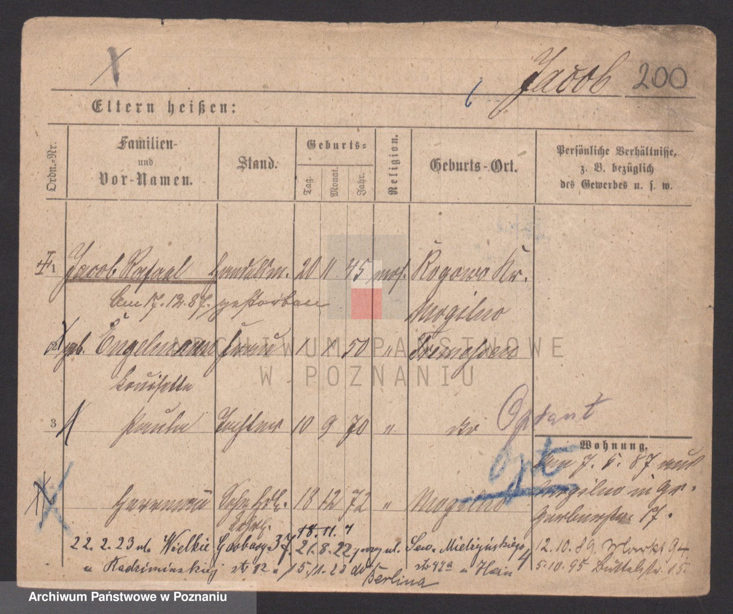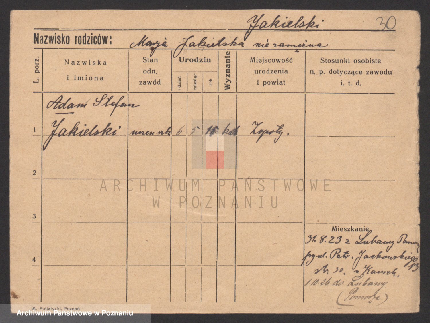 Podgląd karty osobowej dostępny jest po kliknięciu na nazwisko lub ikonkę karty. Można dokonywać powiększenia (ikony na górze) lub przechodzić między kolejnymi skanami (strzałki po bokach).