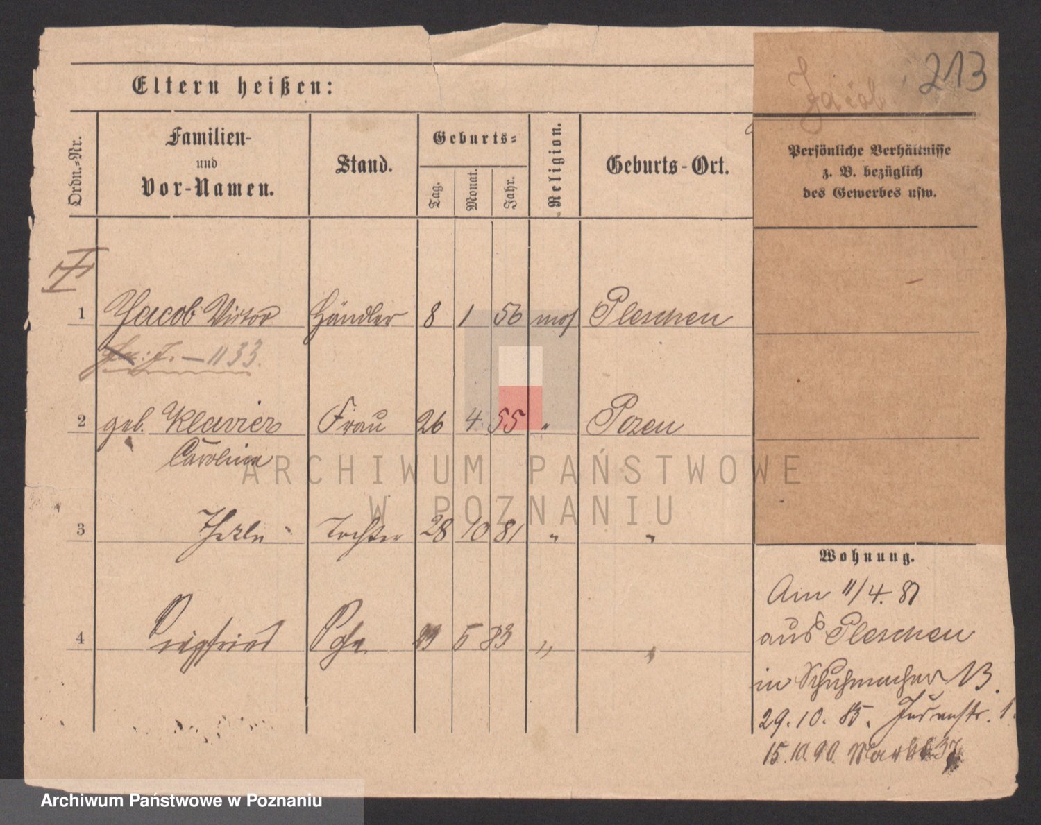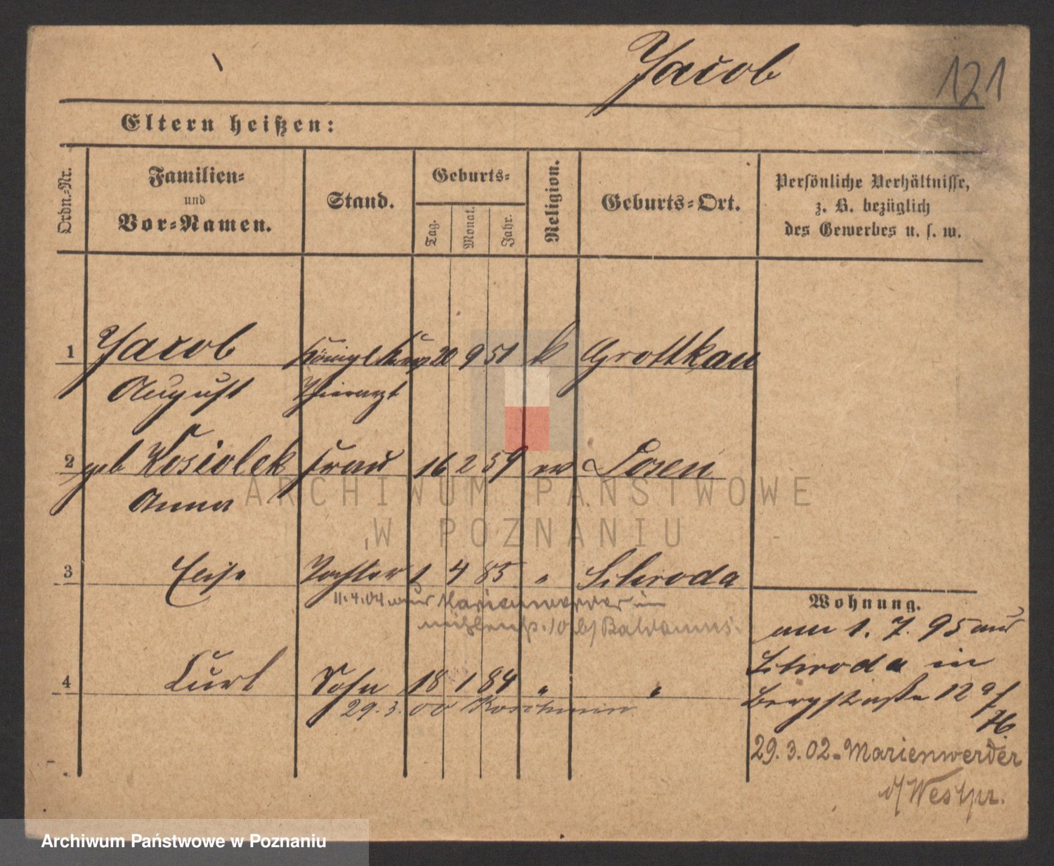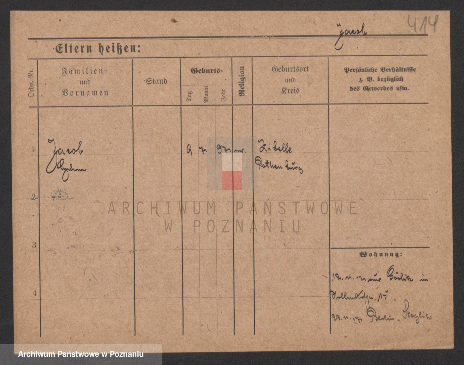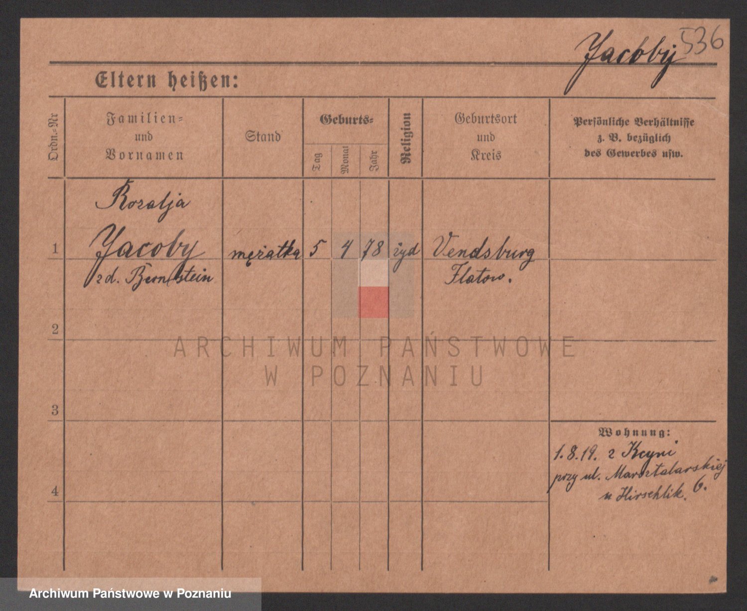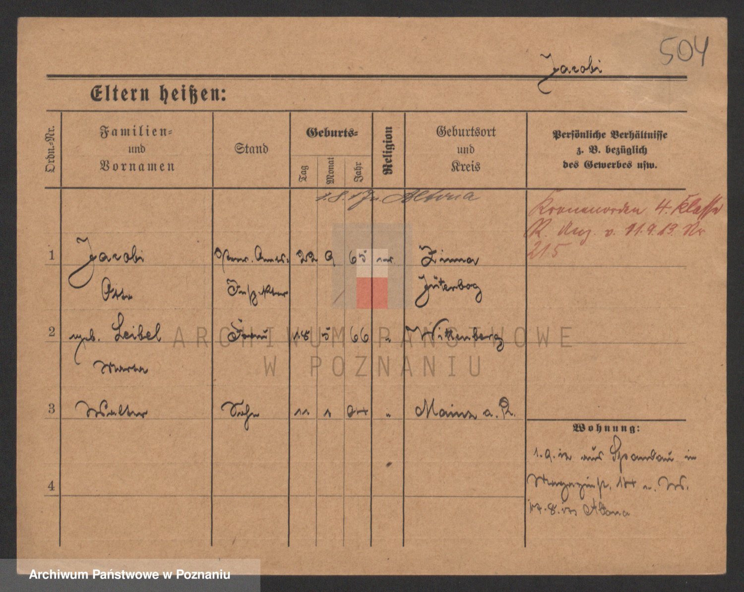 Podgląd karty osobowej dostępny jest po kliknięciu na nazwisko lub ikonkę karty. Można dokonywać powiększenia (ikony na górze) lub przechodzić między kolejnymi skanami (strzałki po bokach).