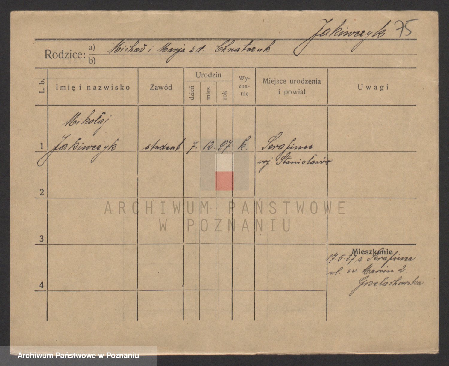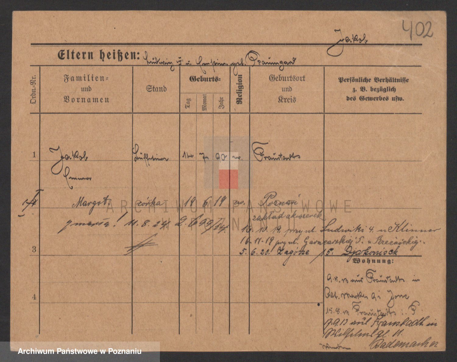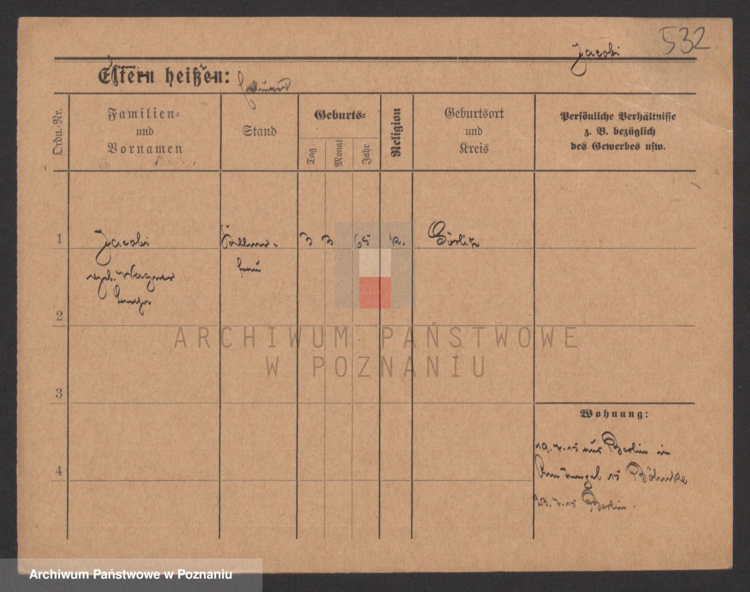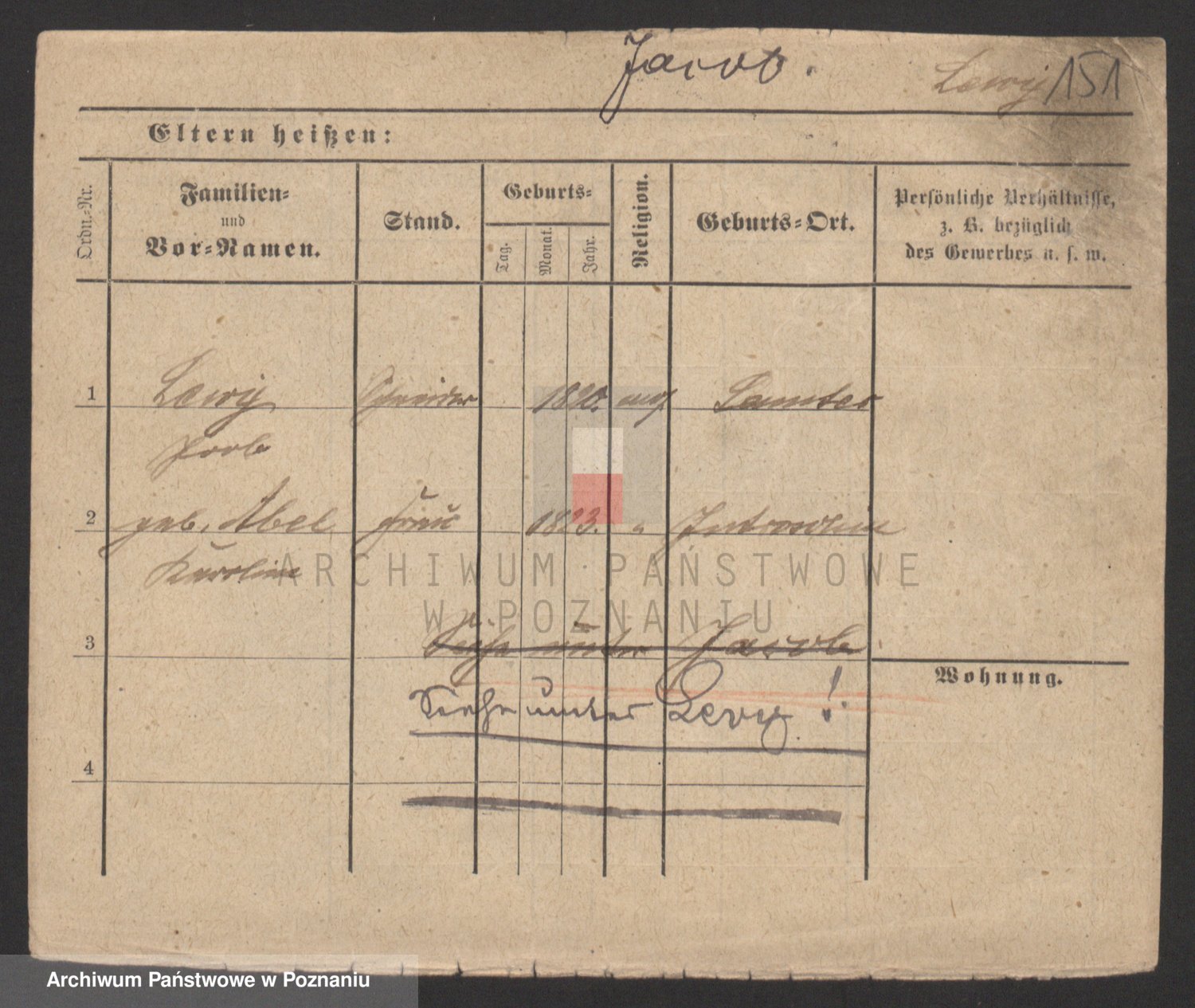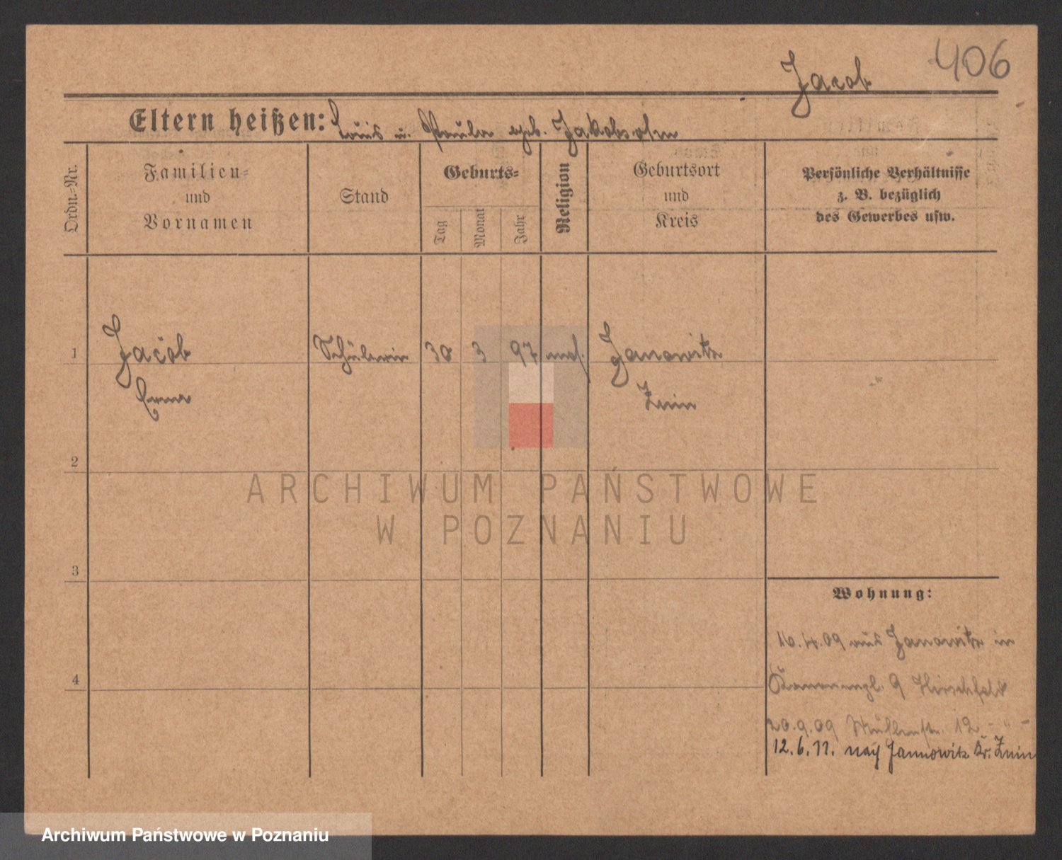 Podgląd karty osobowej dostępny jest po kliknięciu na nazwisko lub ikonkę karty. Można dokonywać powiększenia (ikony na górze) lub przechodzić między kolejnymi skanami (strzałki po bokach).