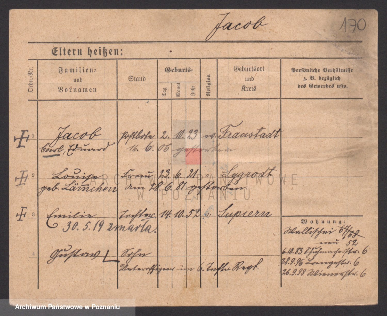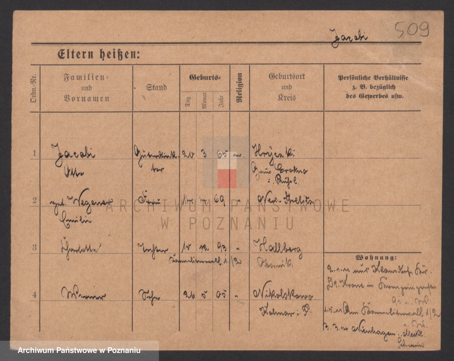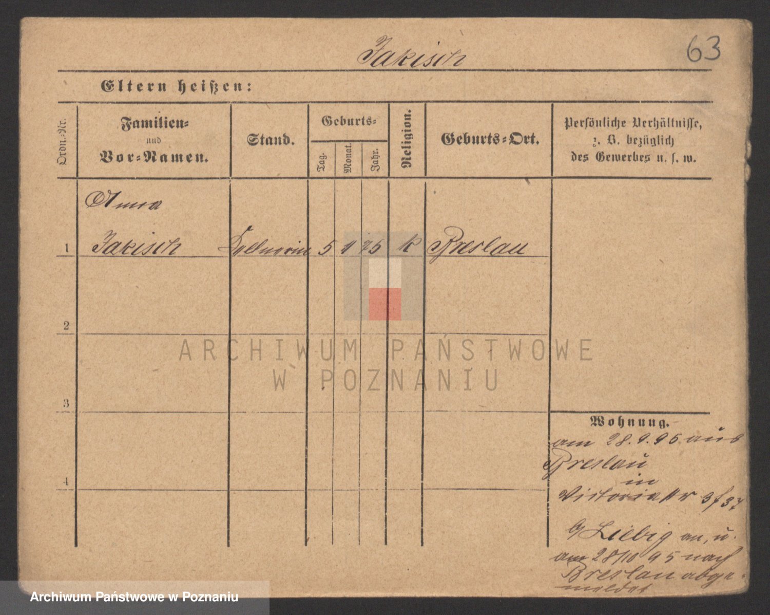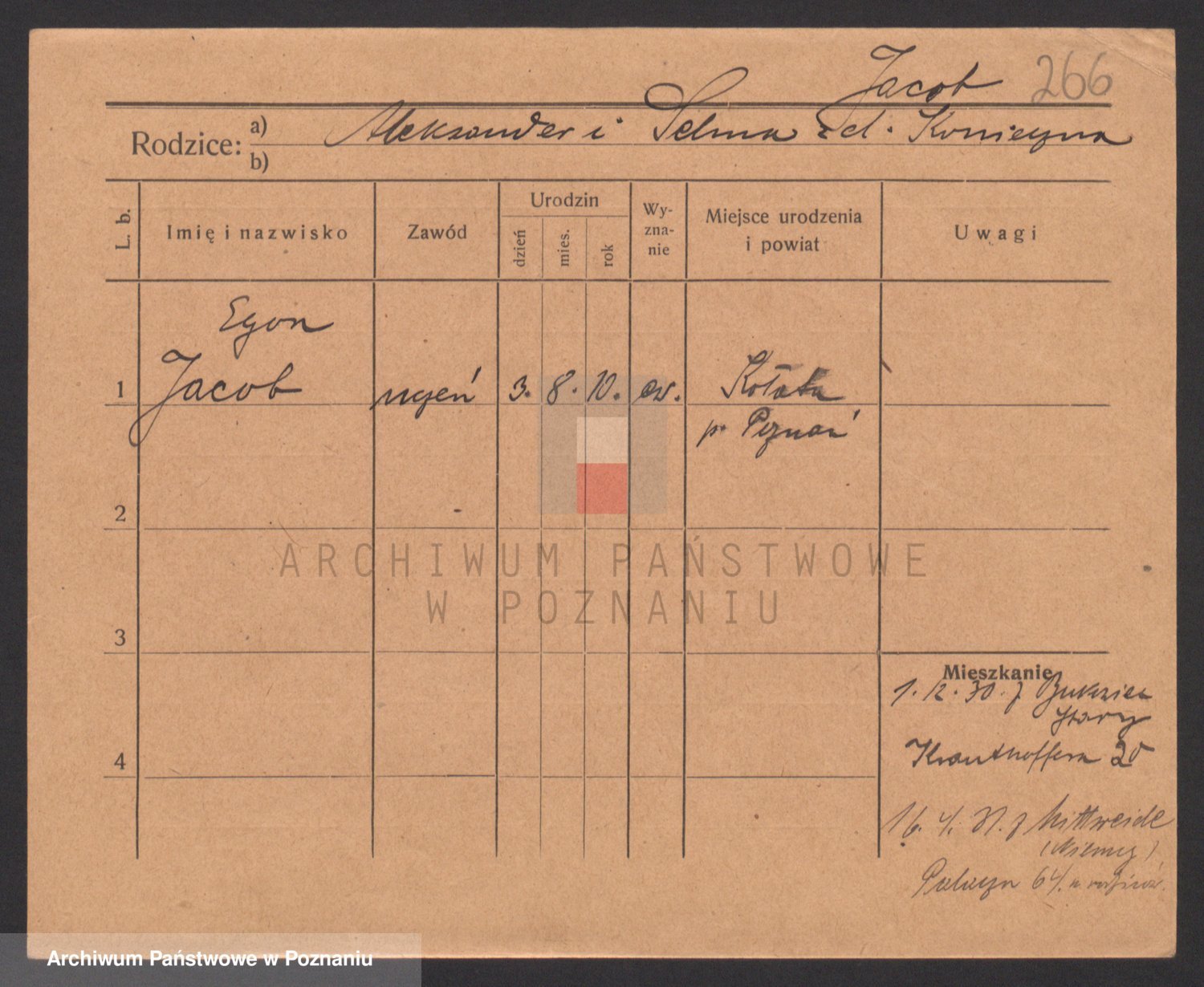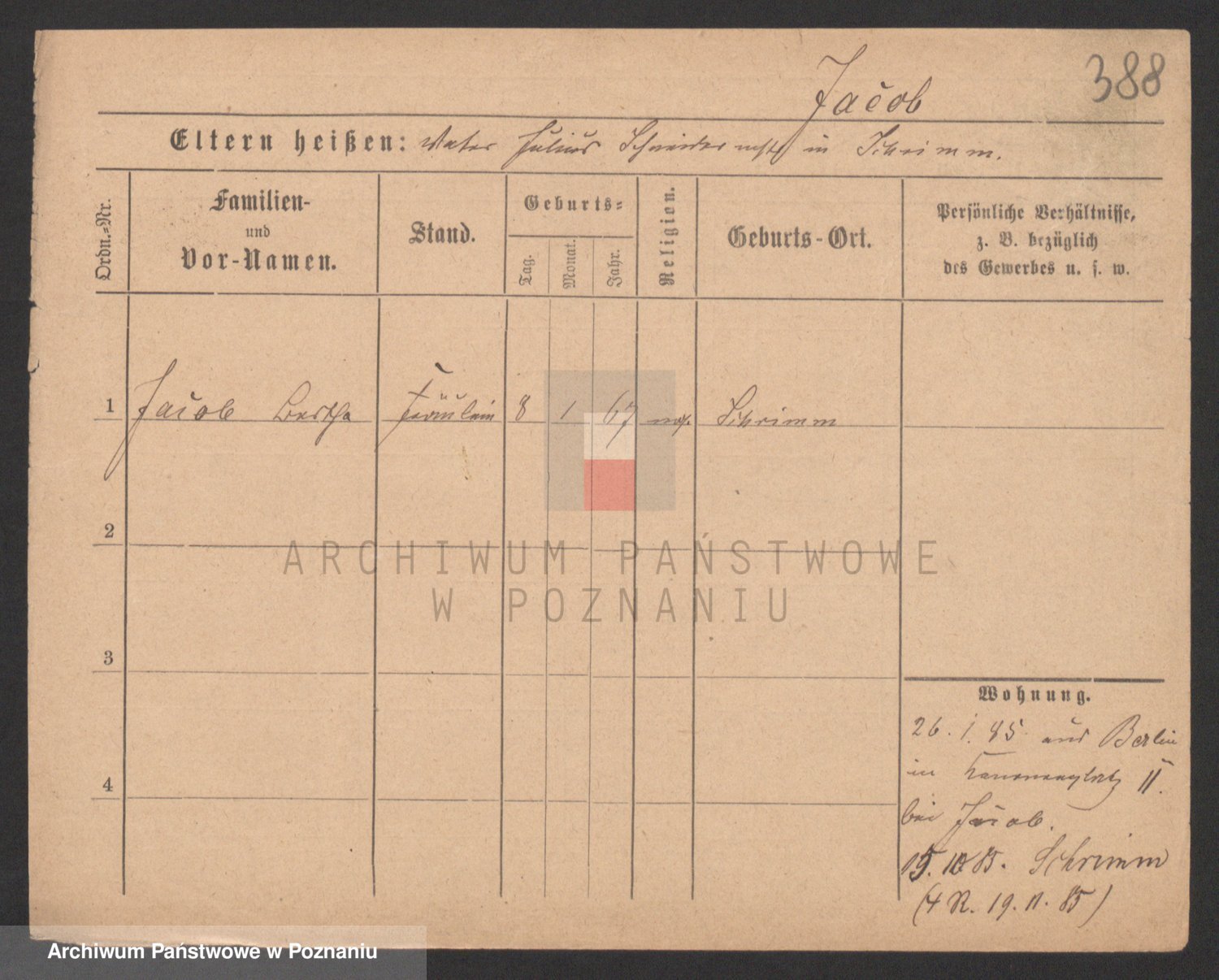 Podgląd karty osobowej dostępny jest po kliknięciu na nazwisko lub ikonkę karty. Można dokonywać powiększenia (ikony na górze) lub przechodzić między kolejnymi skanami (strzałki po bokach).