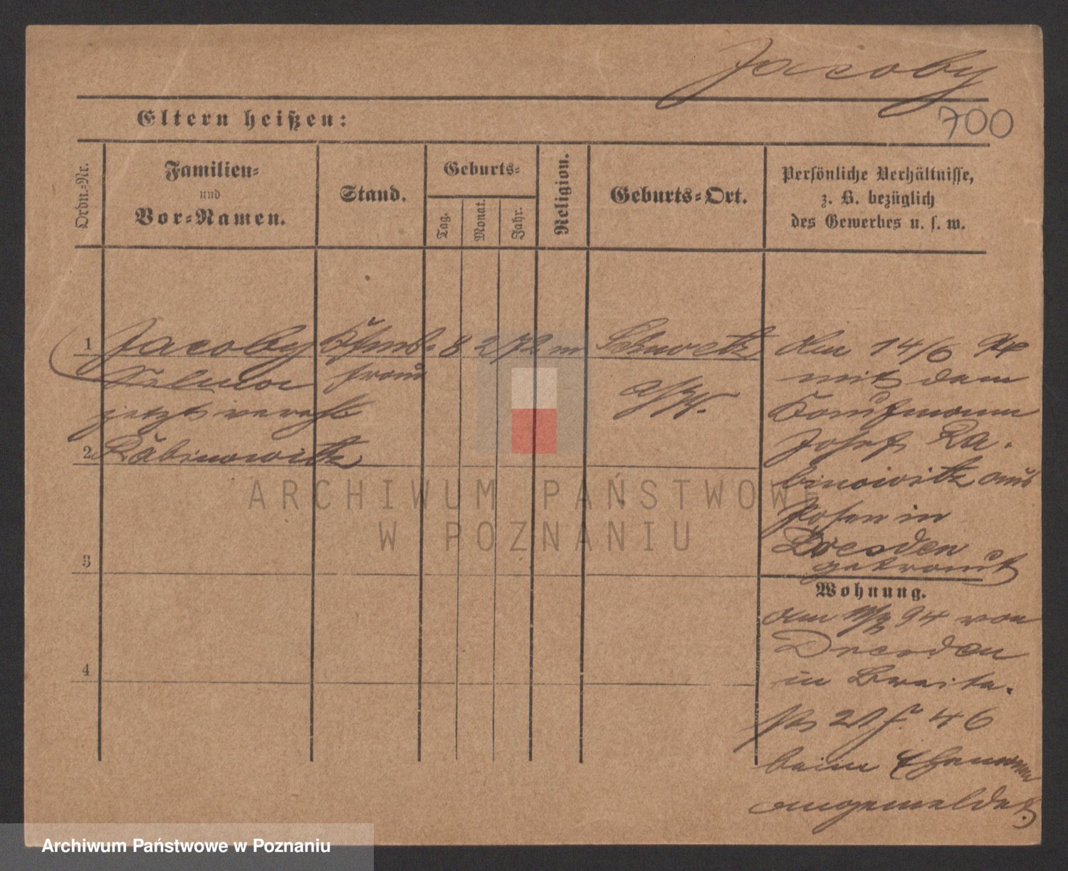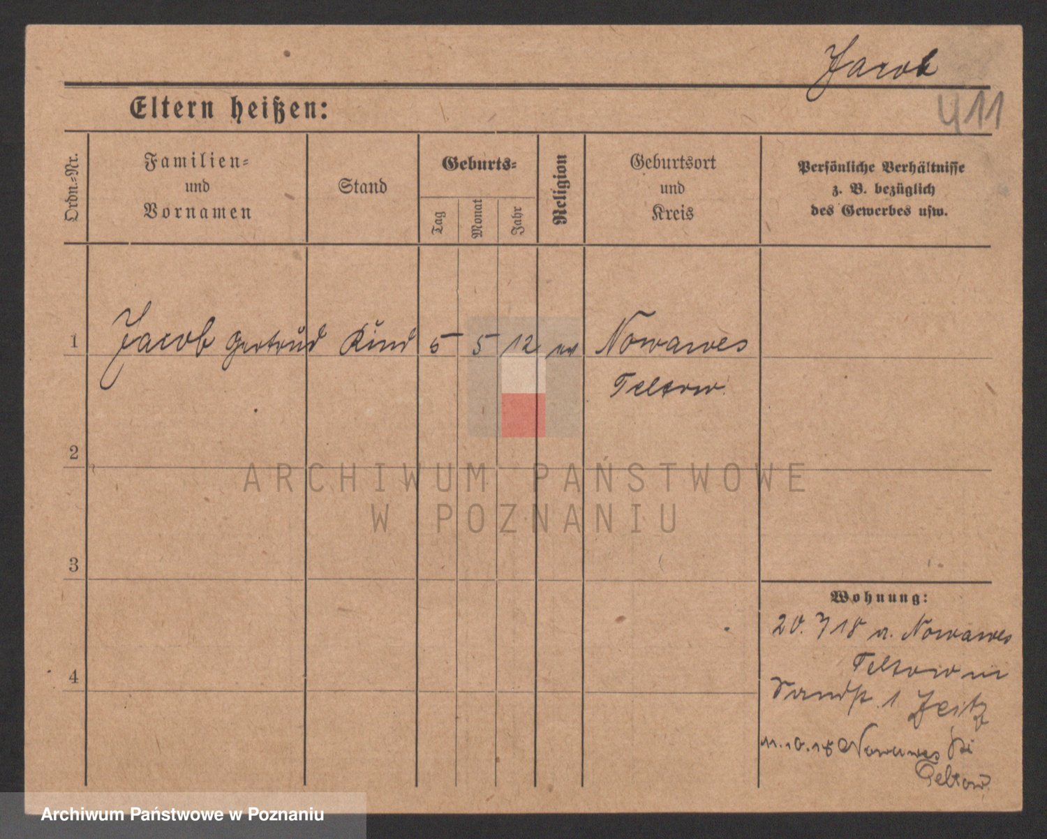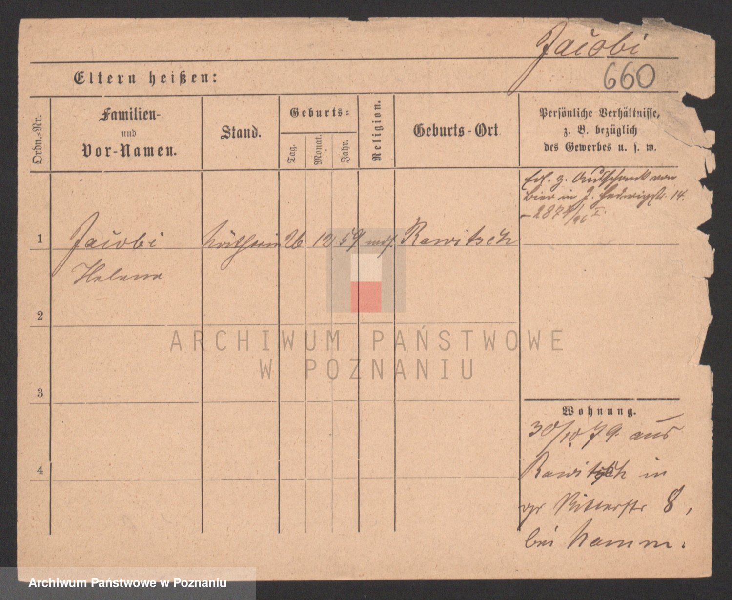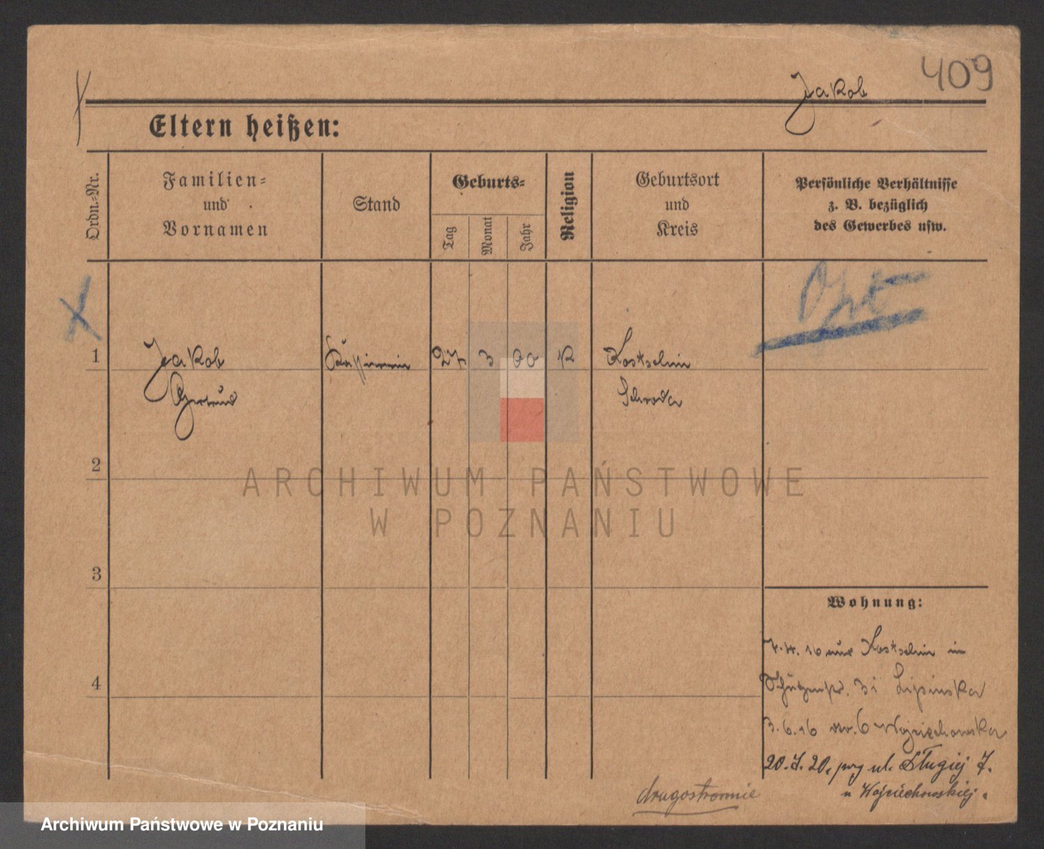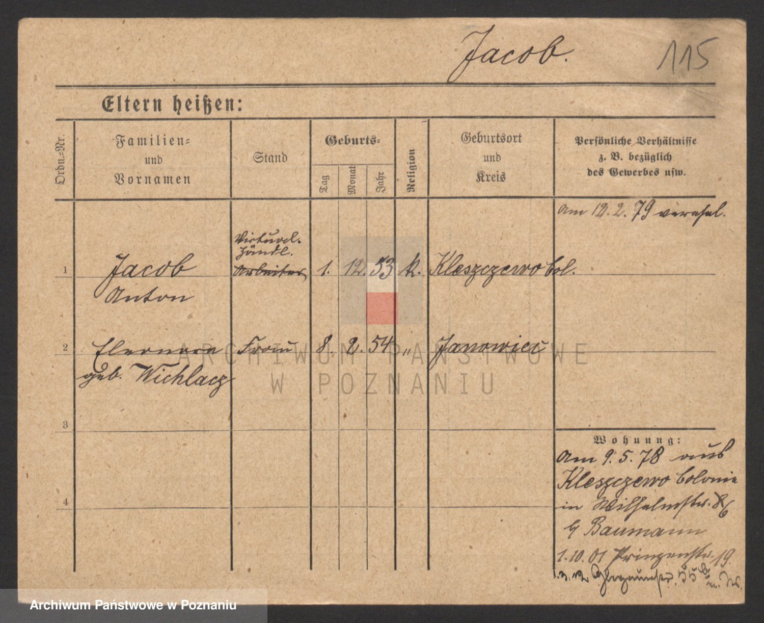 Podgląd karty osobowej dostępny jest po kliknięciu na nazwisko lub ikonkę karty. Można dokonywać powiększenia (ikony na górze) lub przechodzić między kolejnymi skanami (strzałki po bokach).