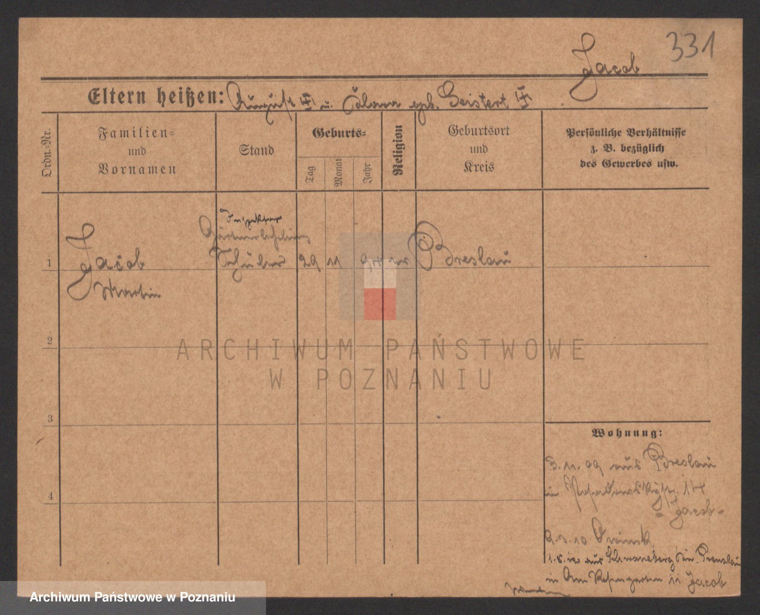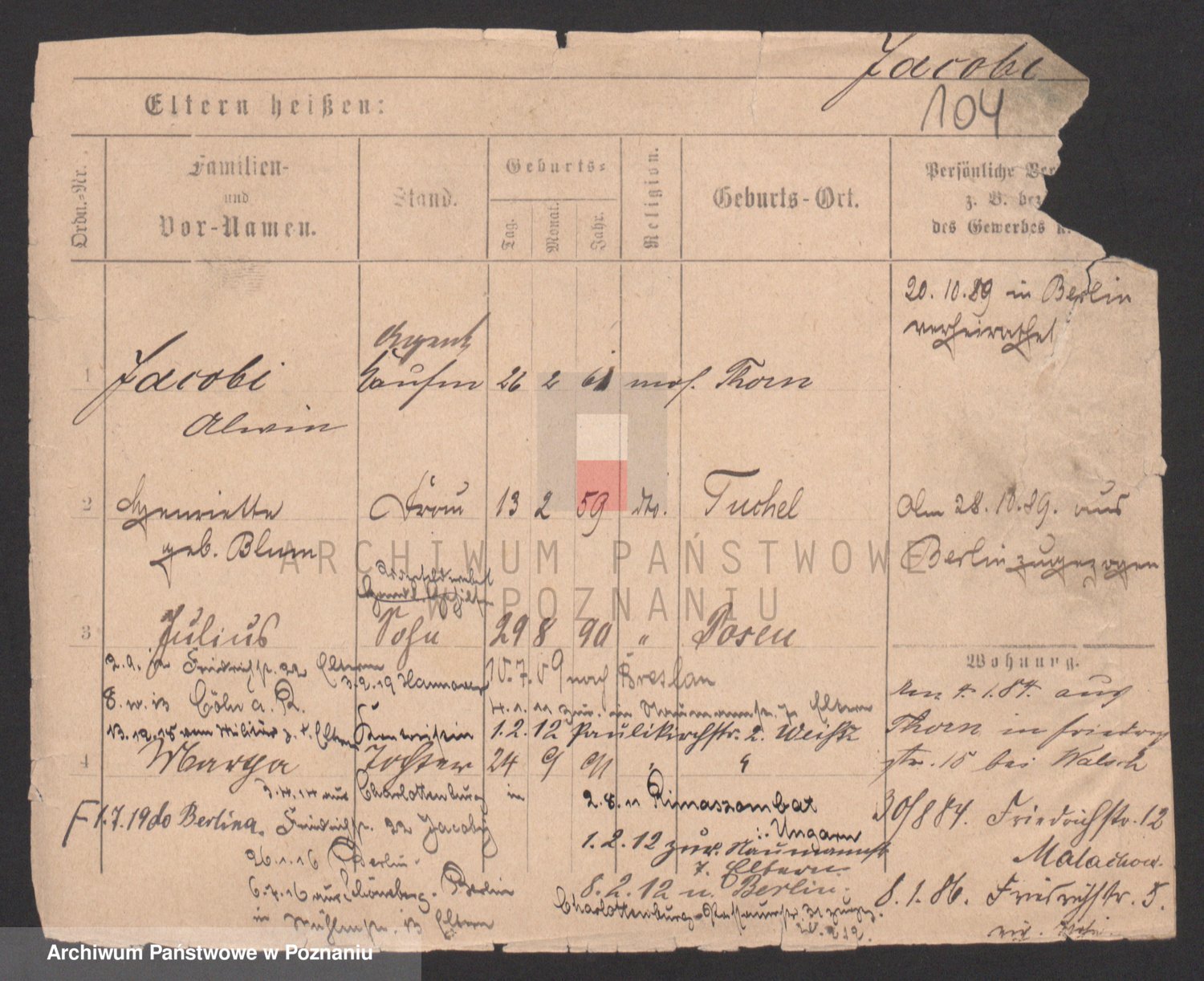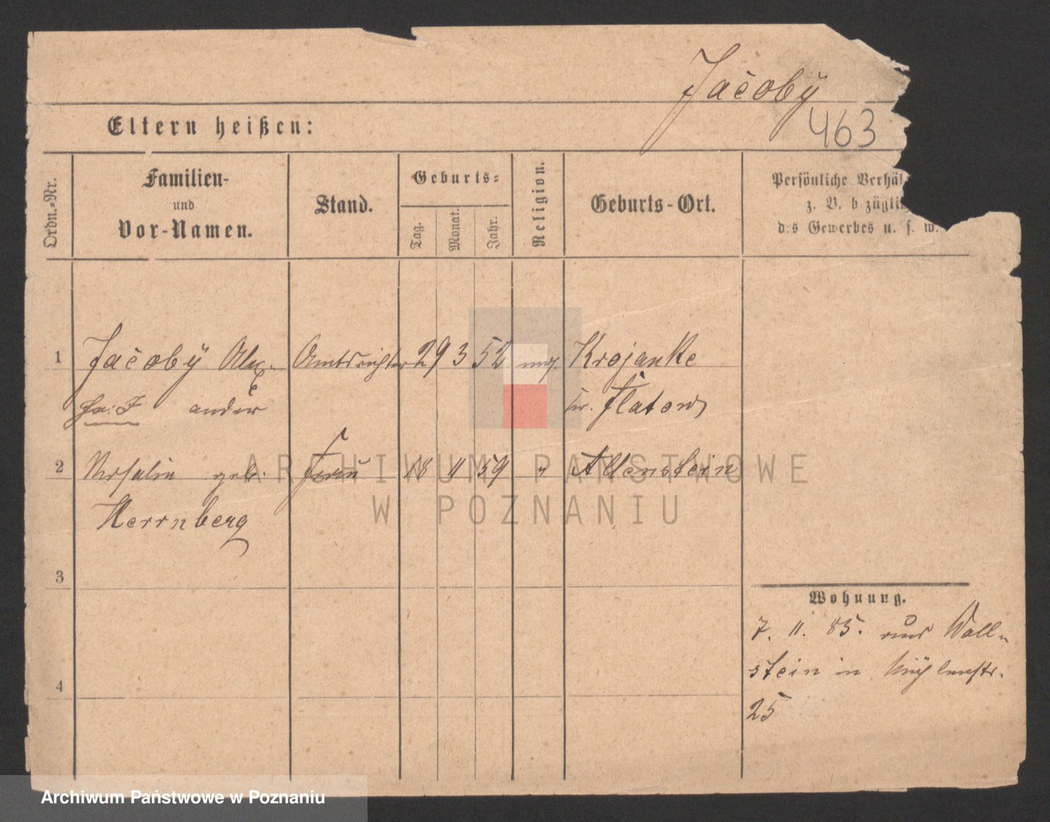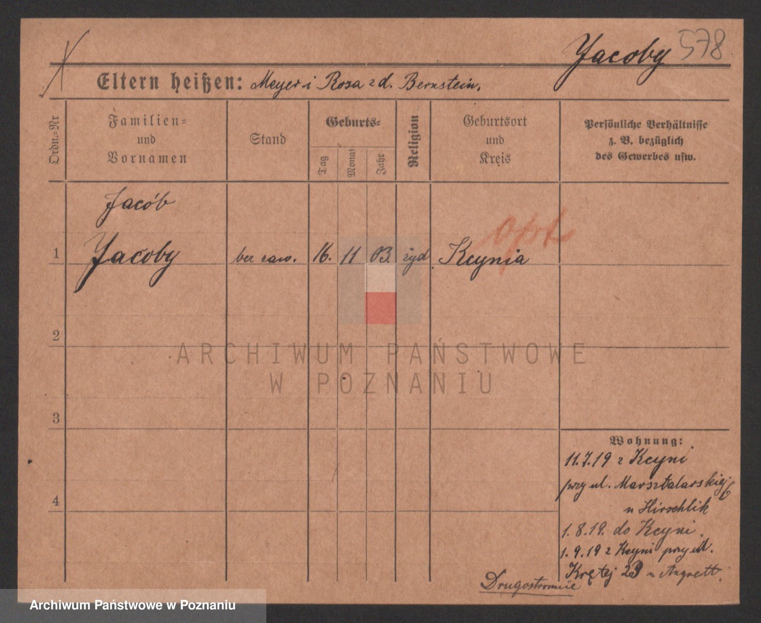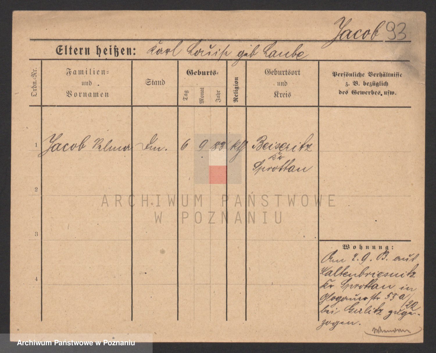 Podgląd karty osobowej dostępny jest po kliknięciu na nazwisko lub ikonkę karty. Można dokonywać powiększenia (ikony na górze) lub przechodzić między kolejnymi skanami (strzałki po bokach).